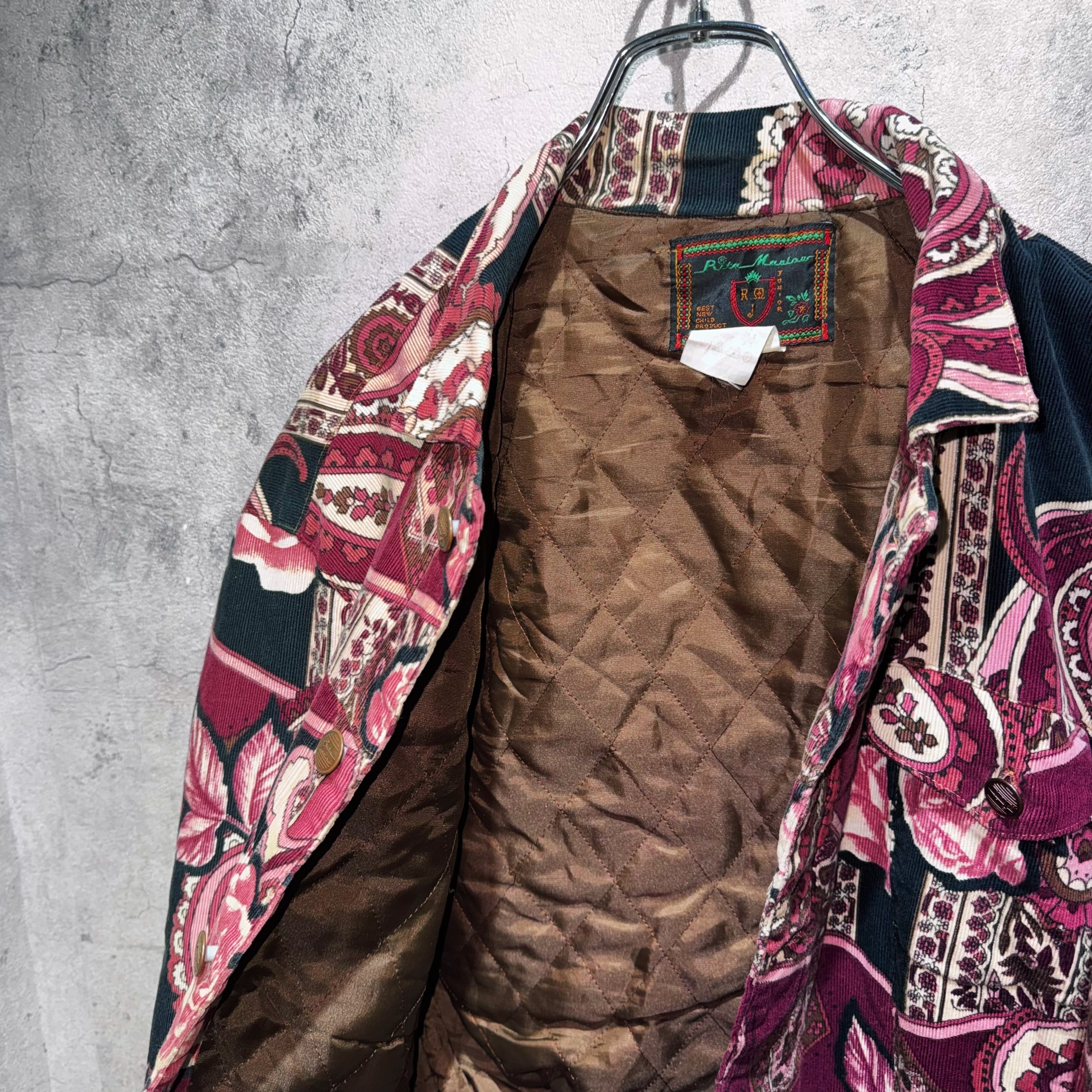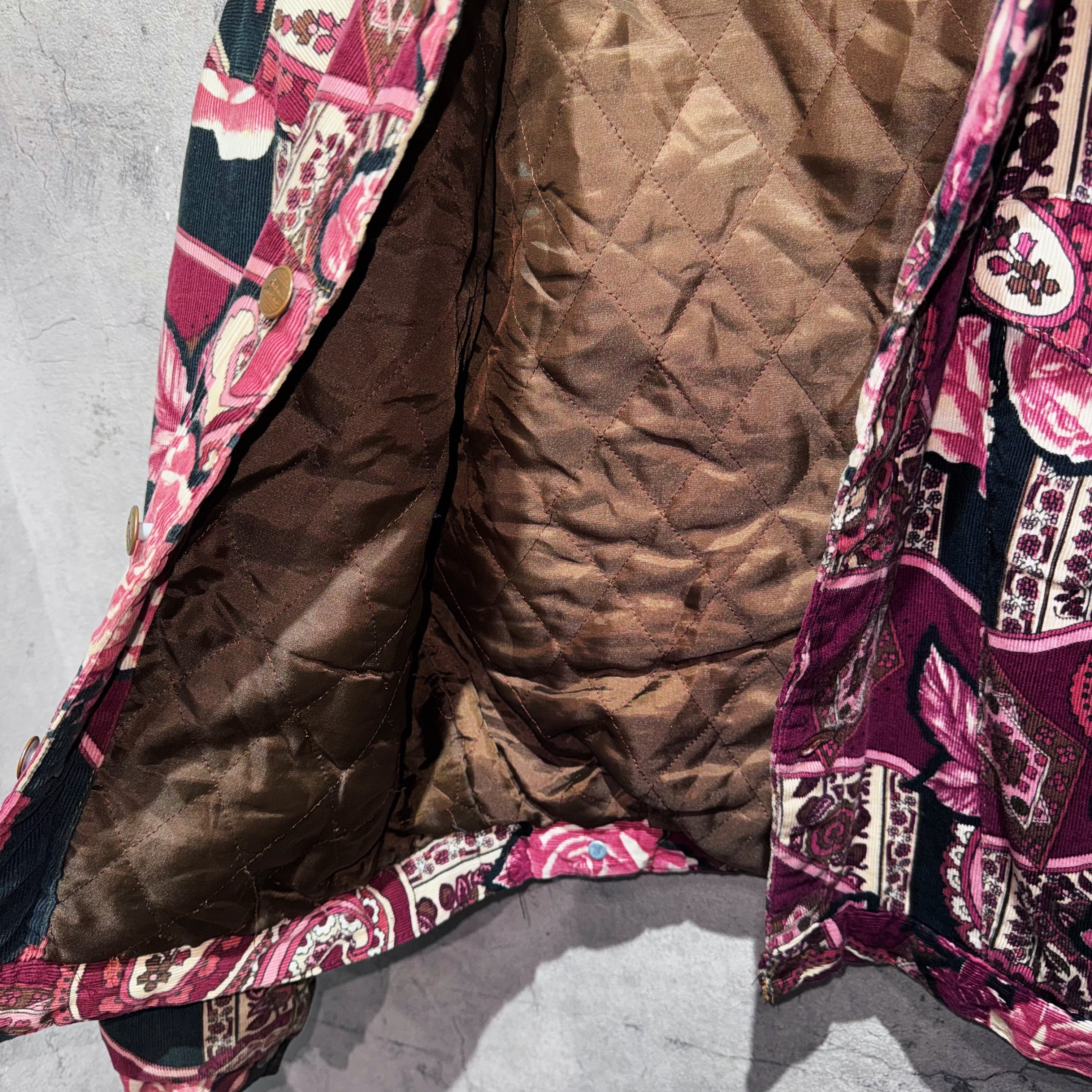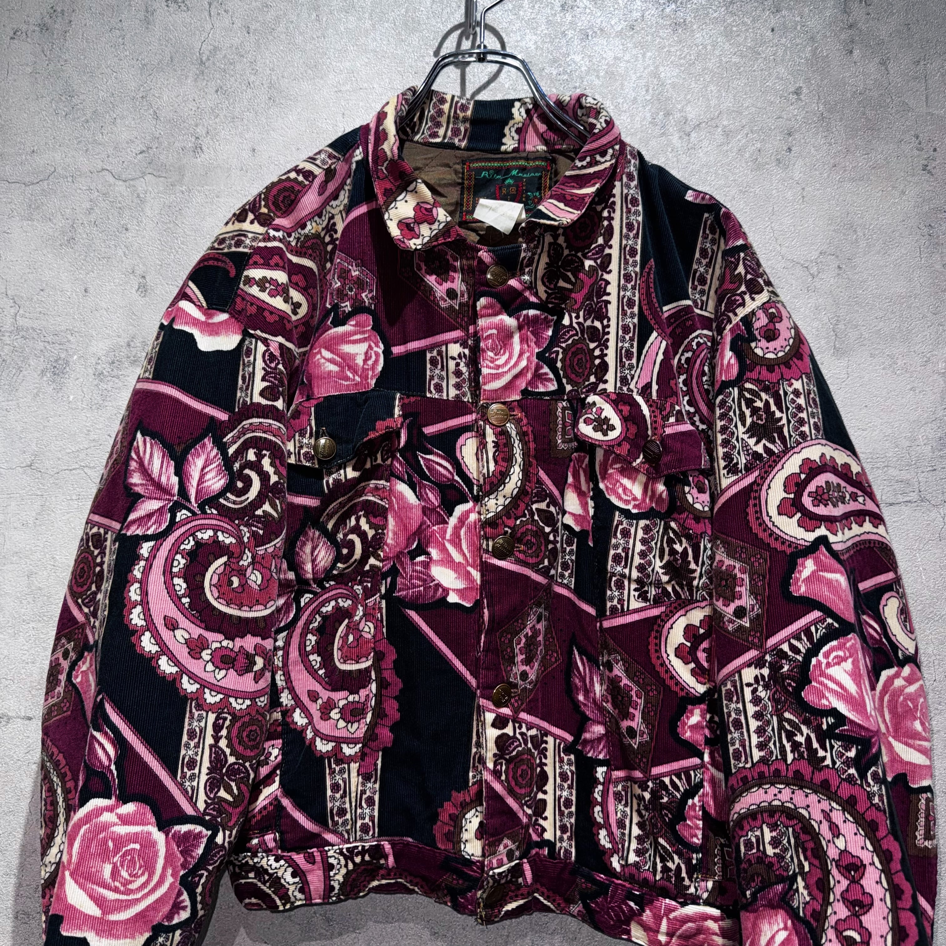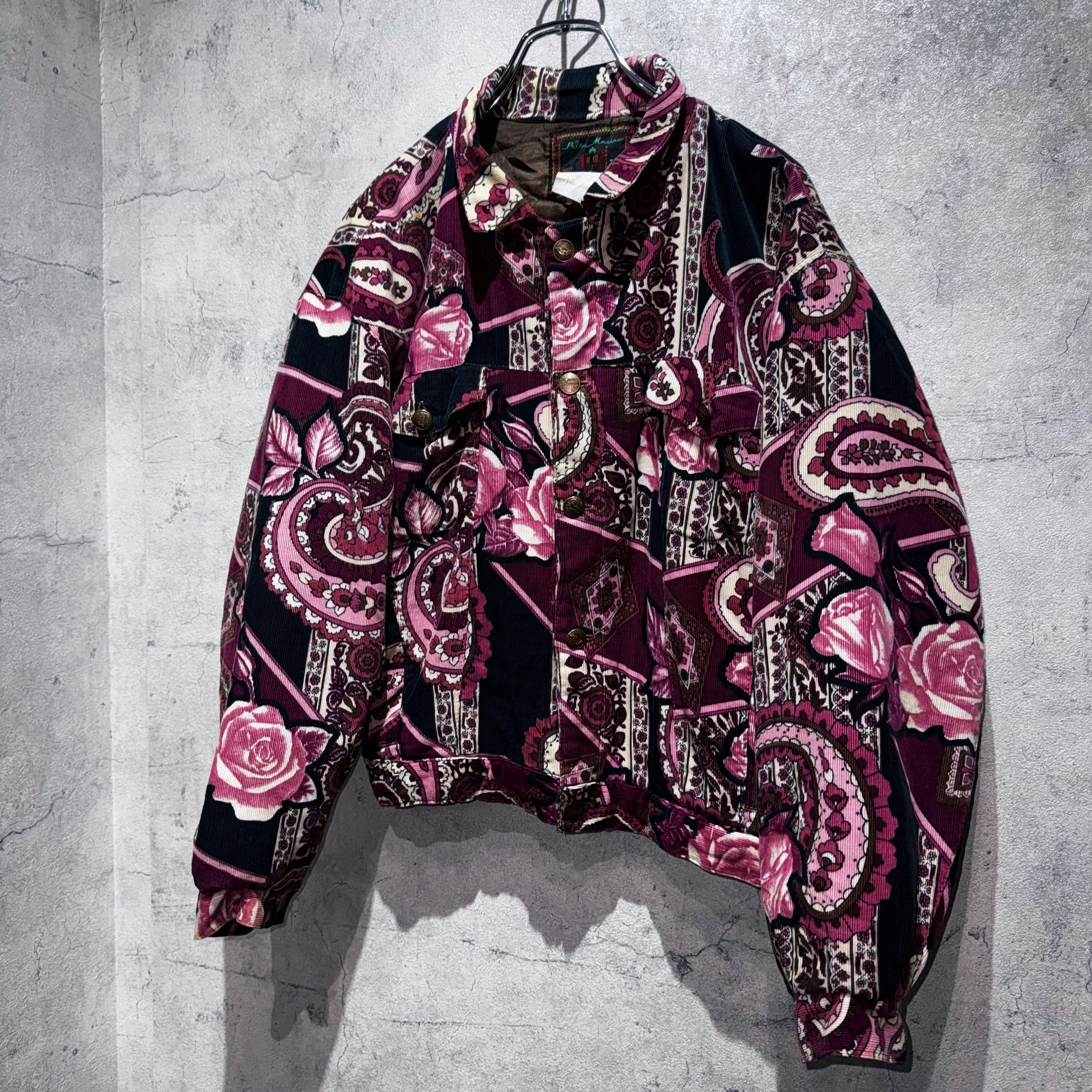 高級感のあるペイズリーと花柄を組み合わせ、美しいカラーリングで仕上げたコーデュロイジャケット。