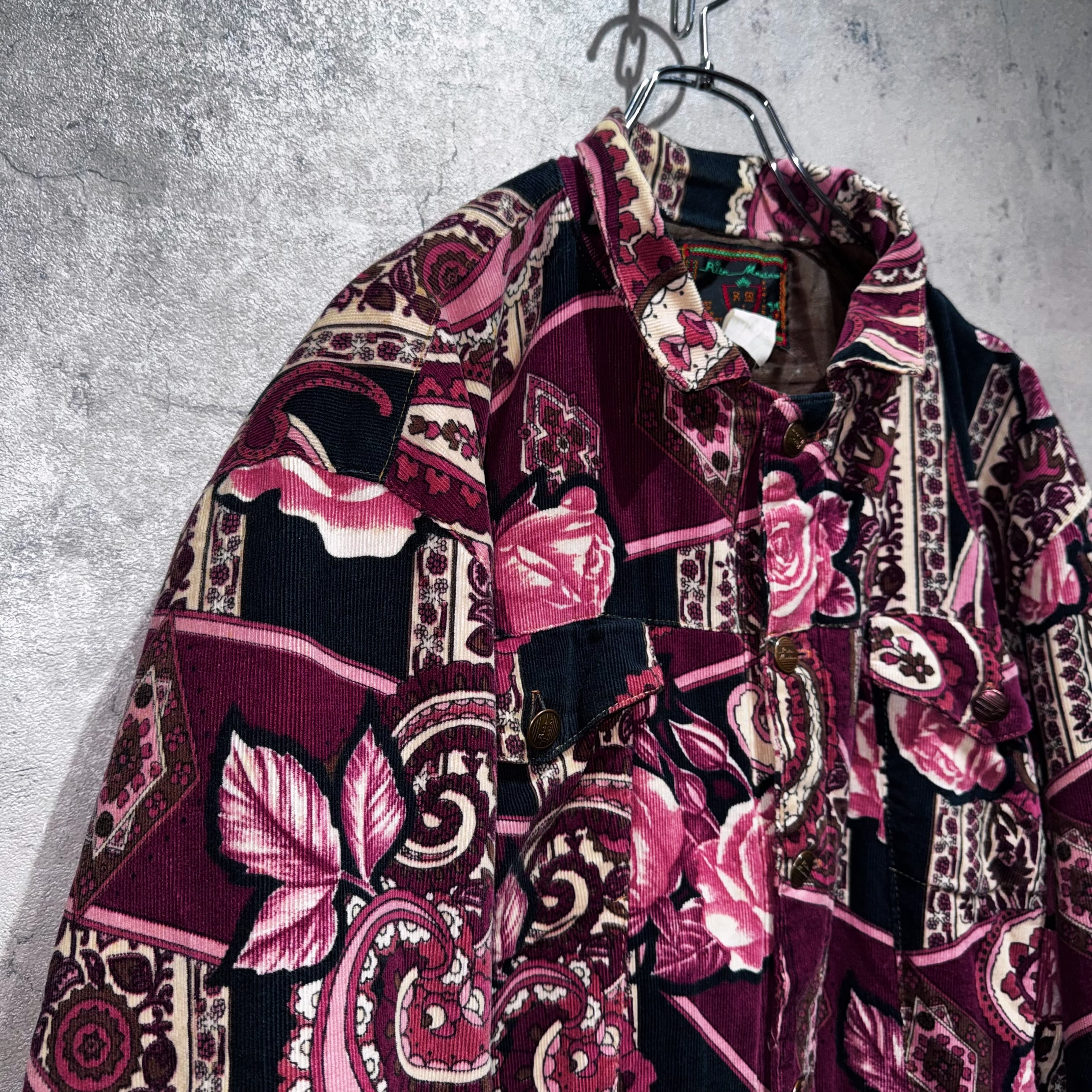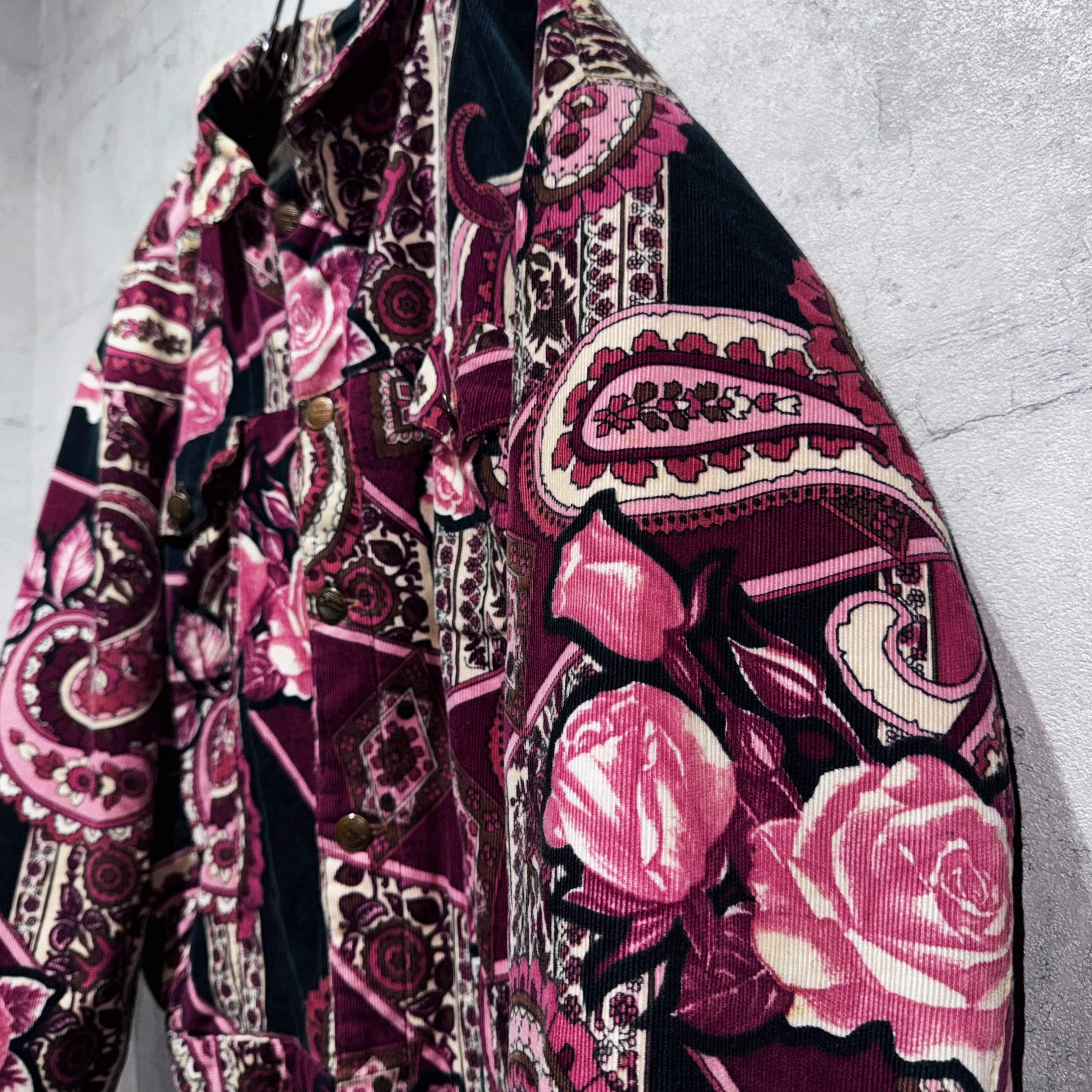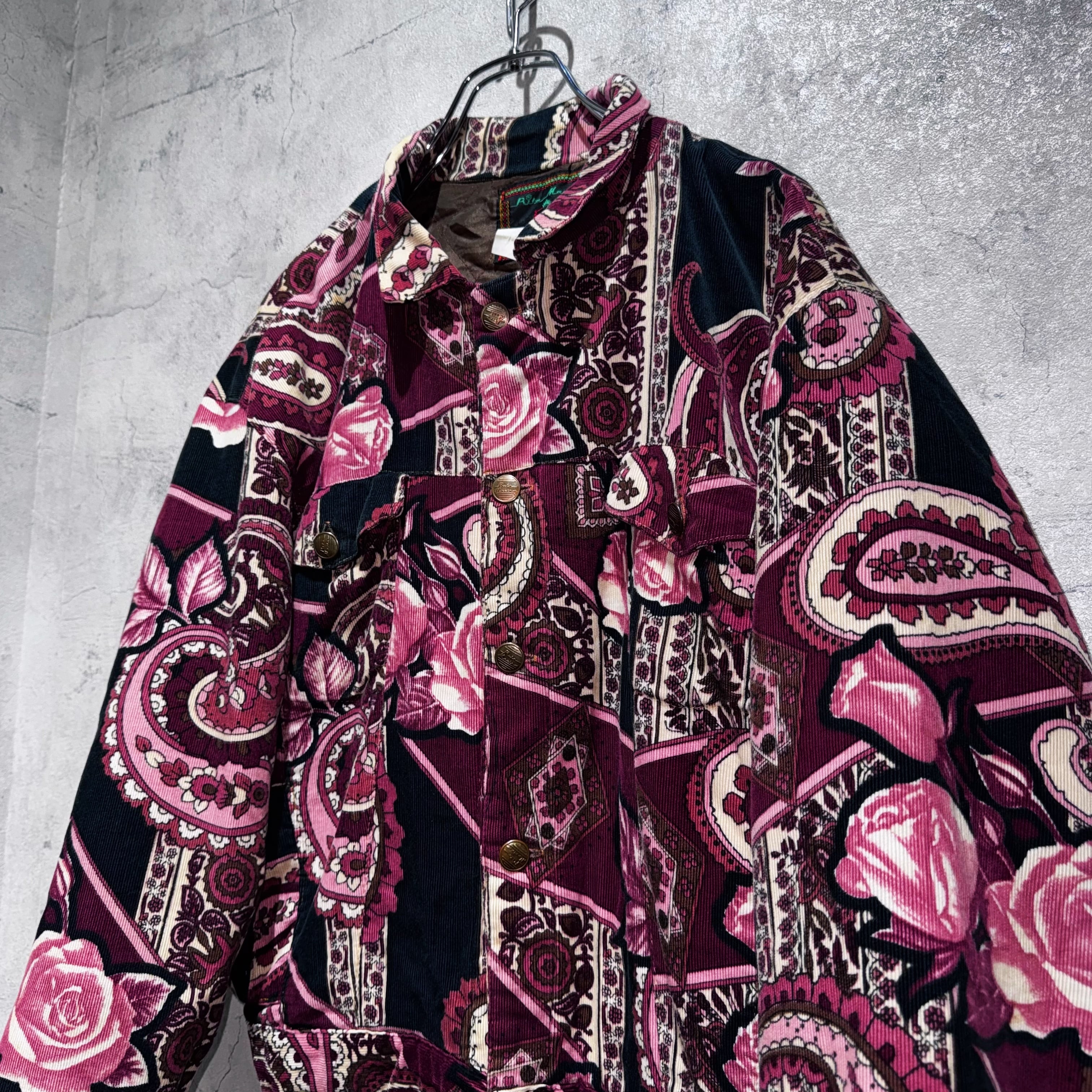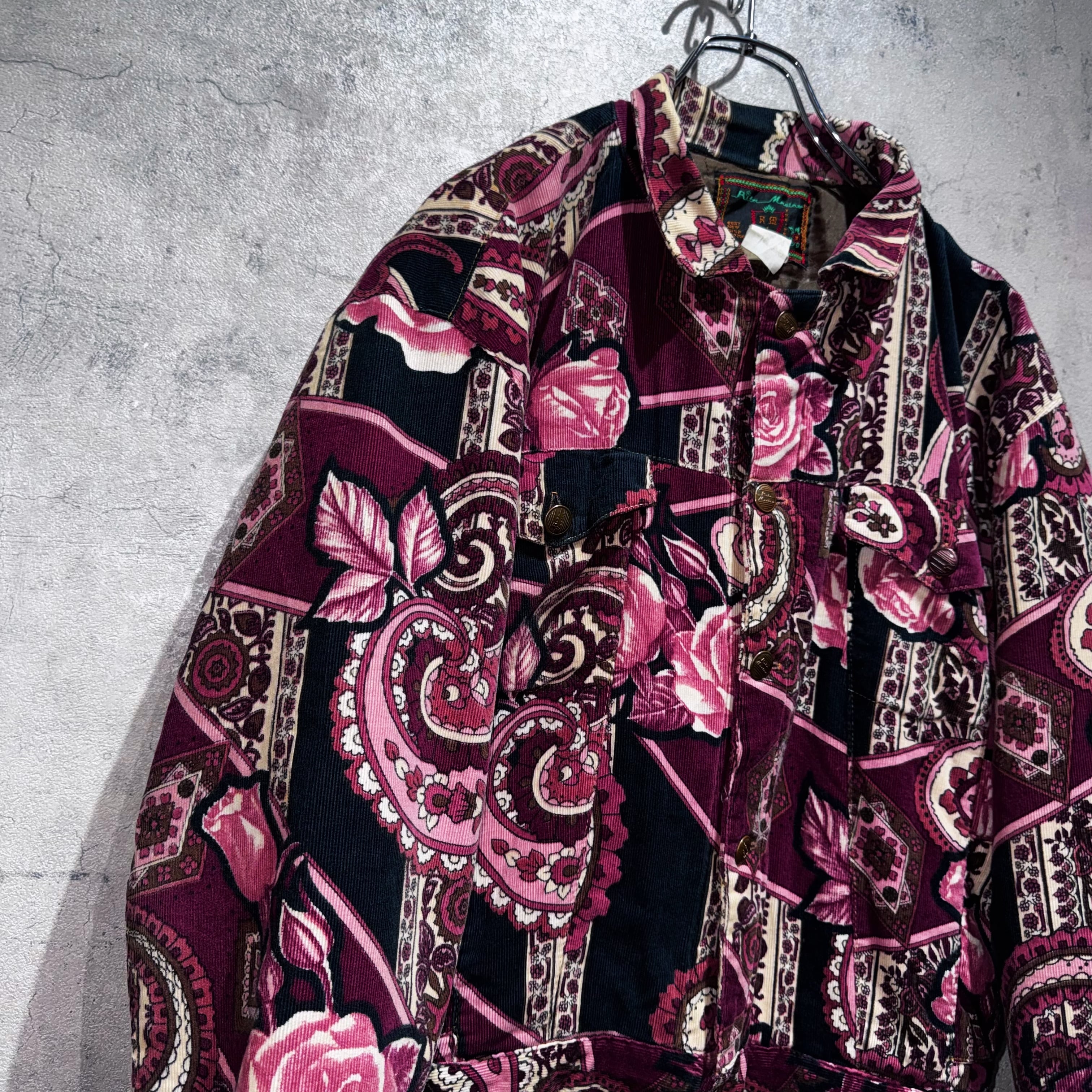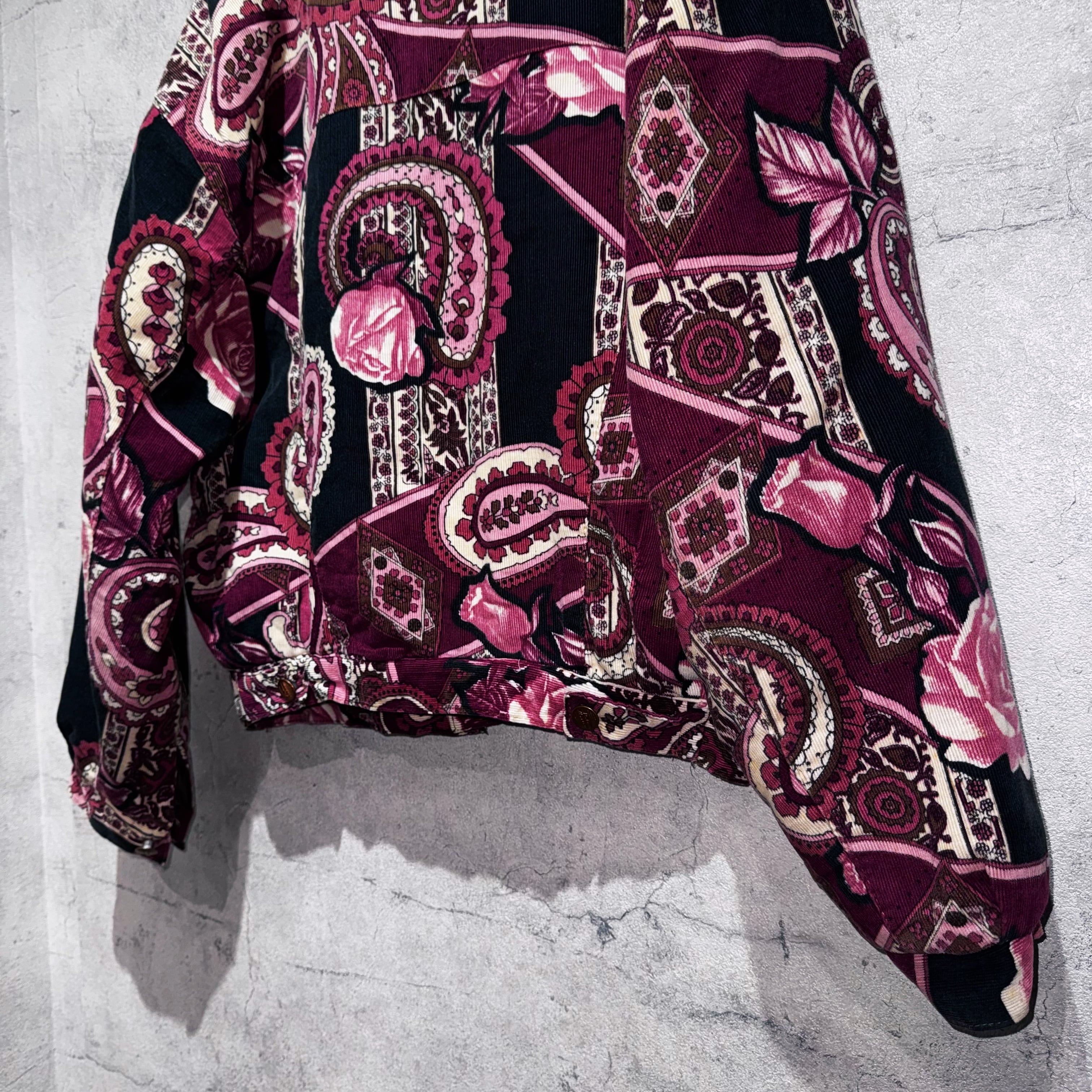 高級感のあるペイズリーと花柄を組み合わせ、美しいカラーリングで仕上げたコーデュロイジャケット。