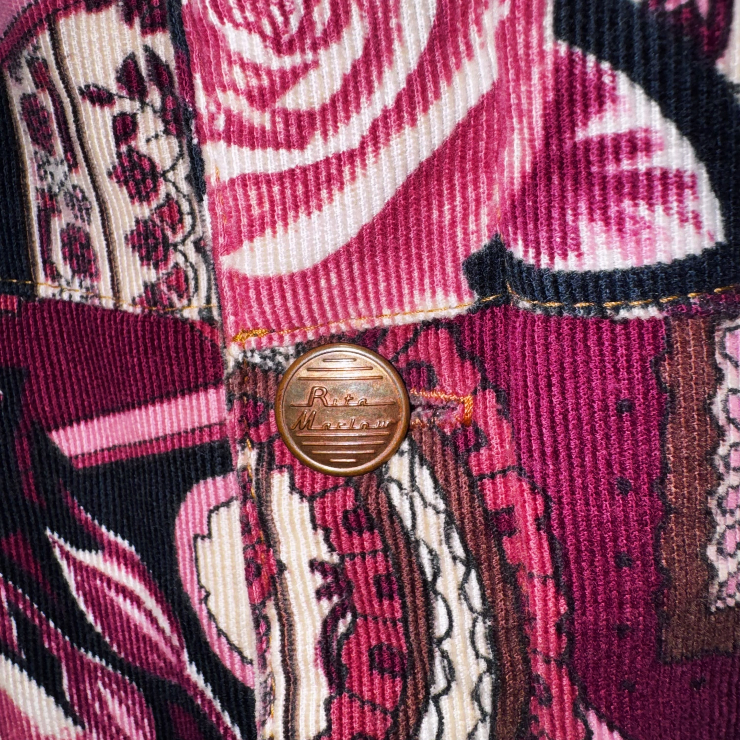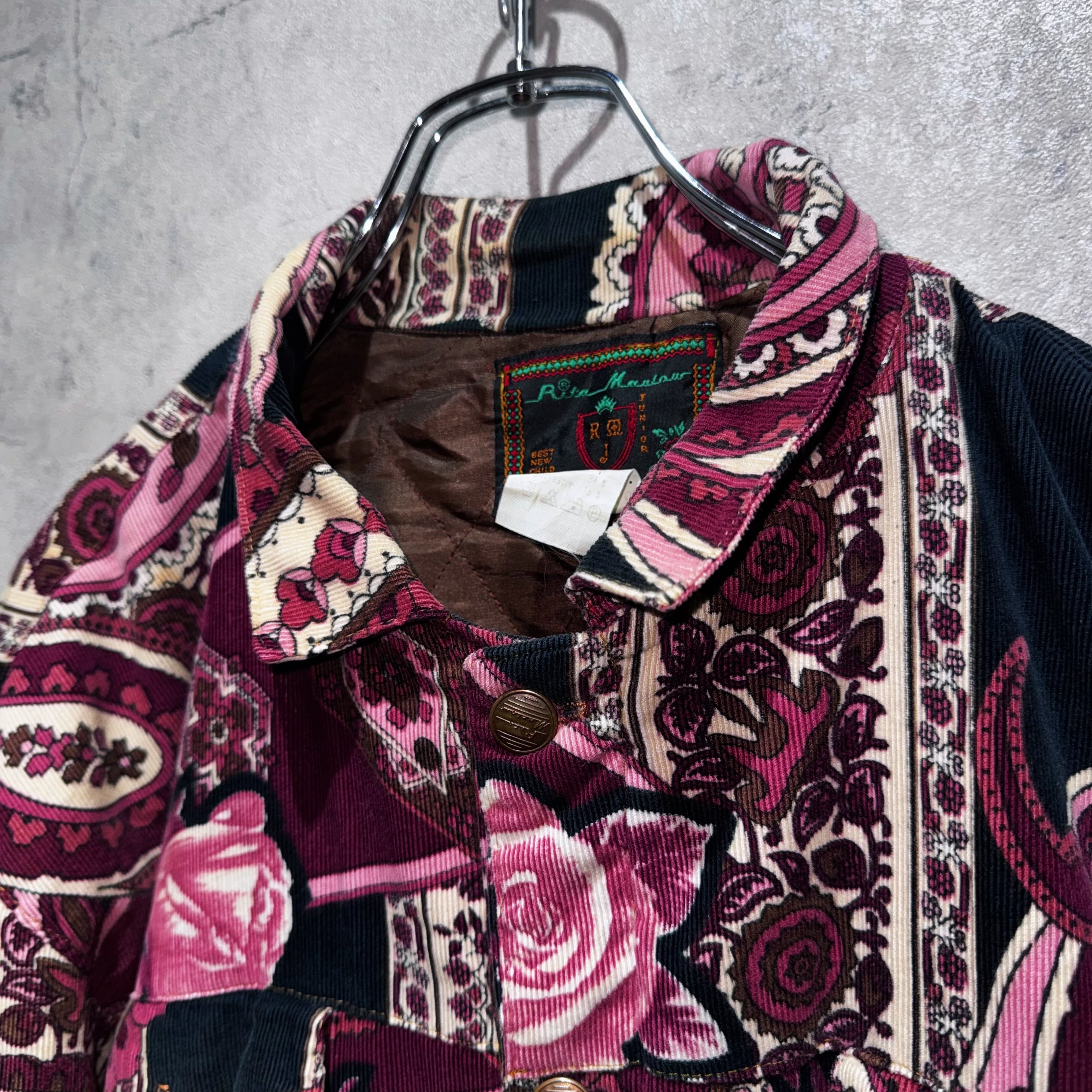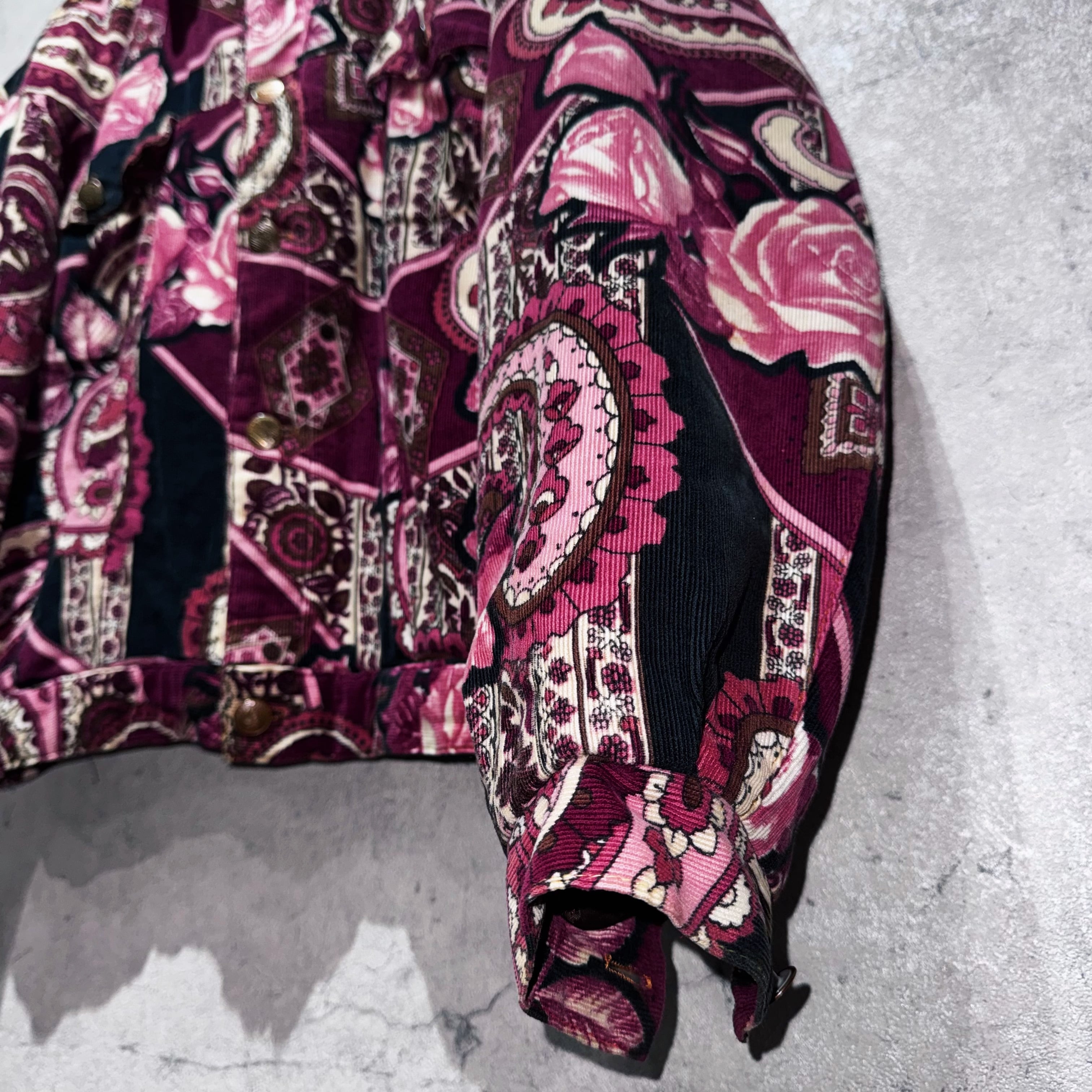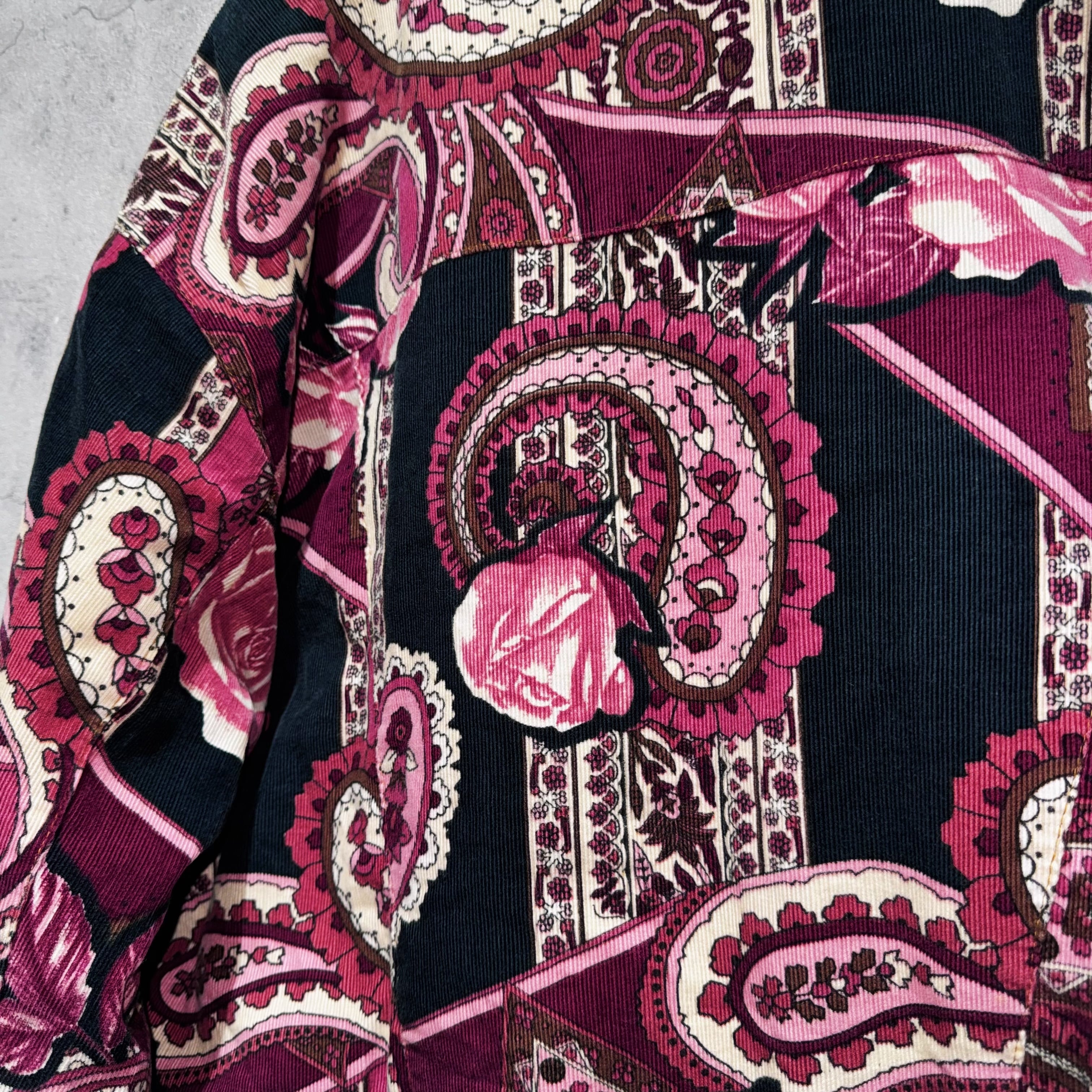 高級感のあるペイズリーと花柄を組み合わせ、美しいカラーリングで仕上げたコーデュロイジャケット。