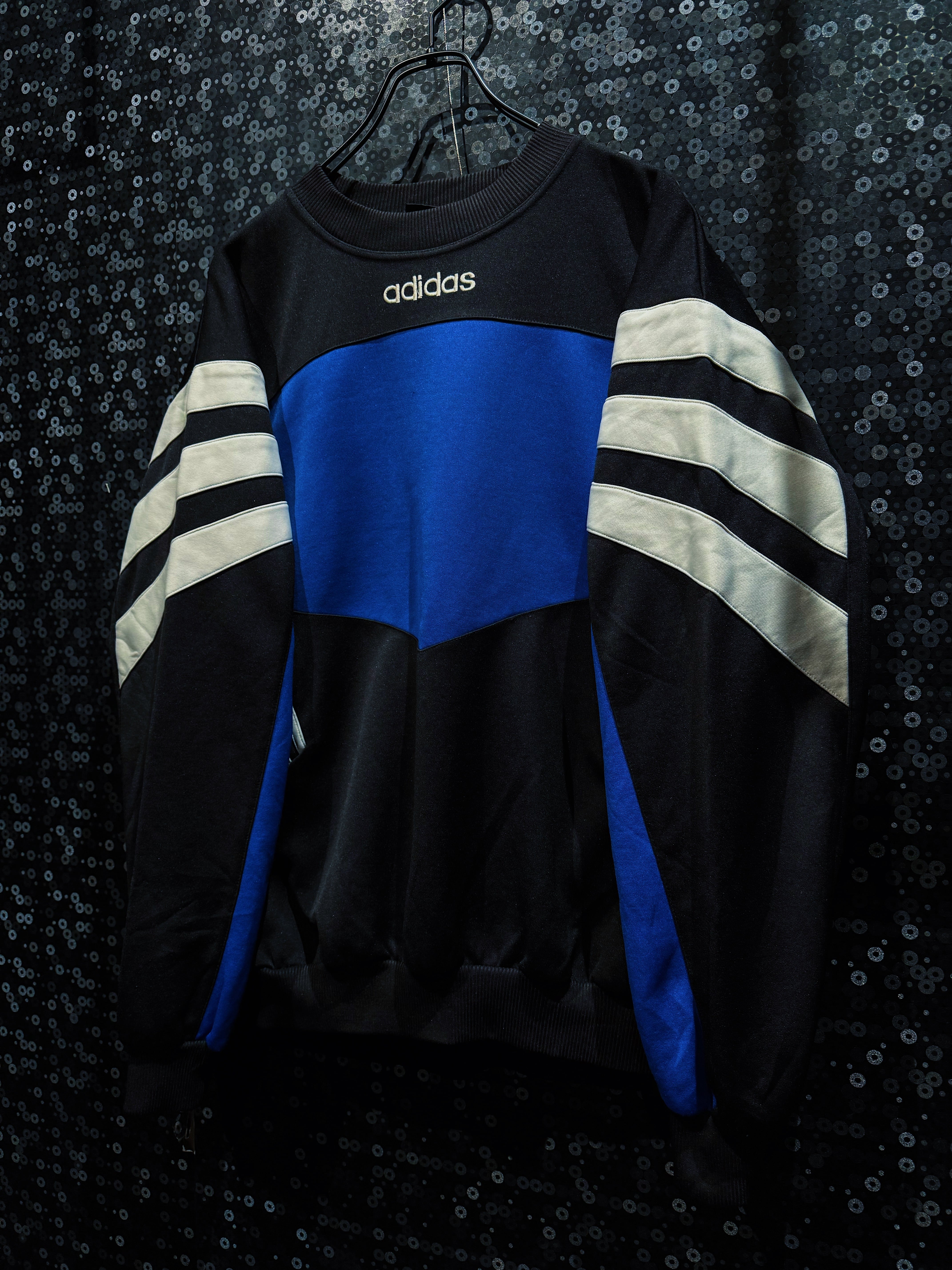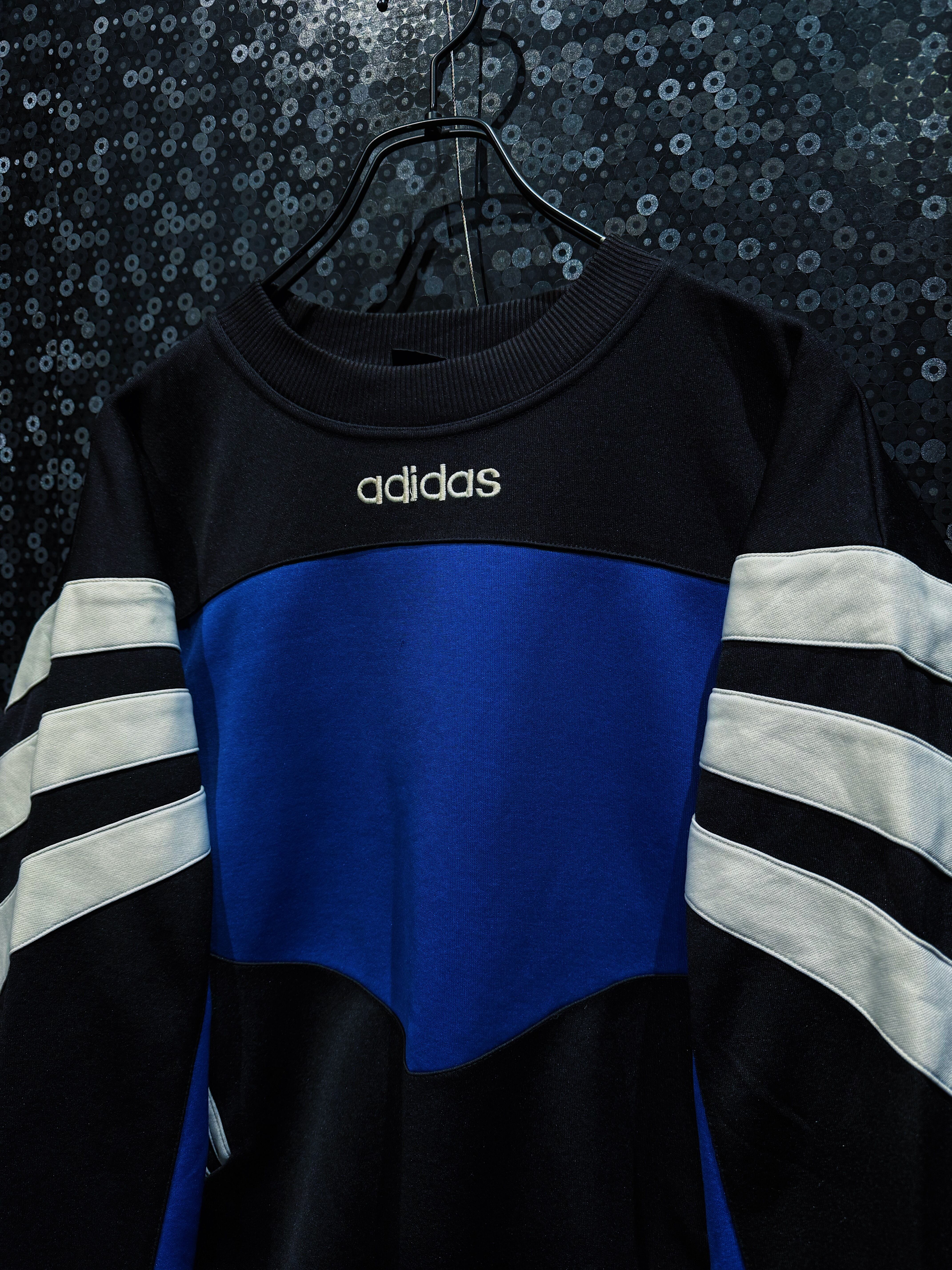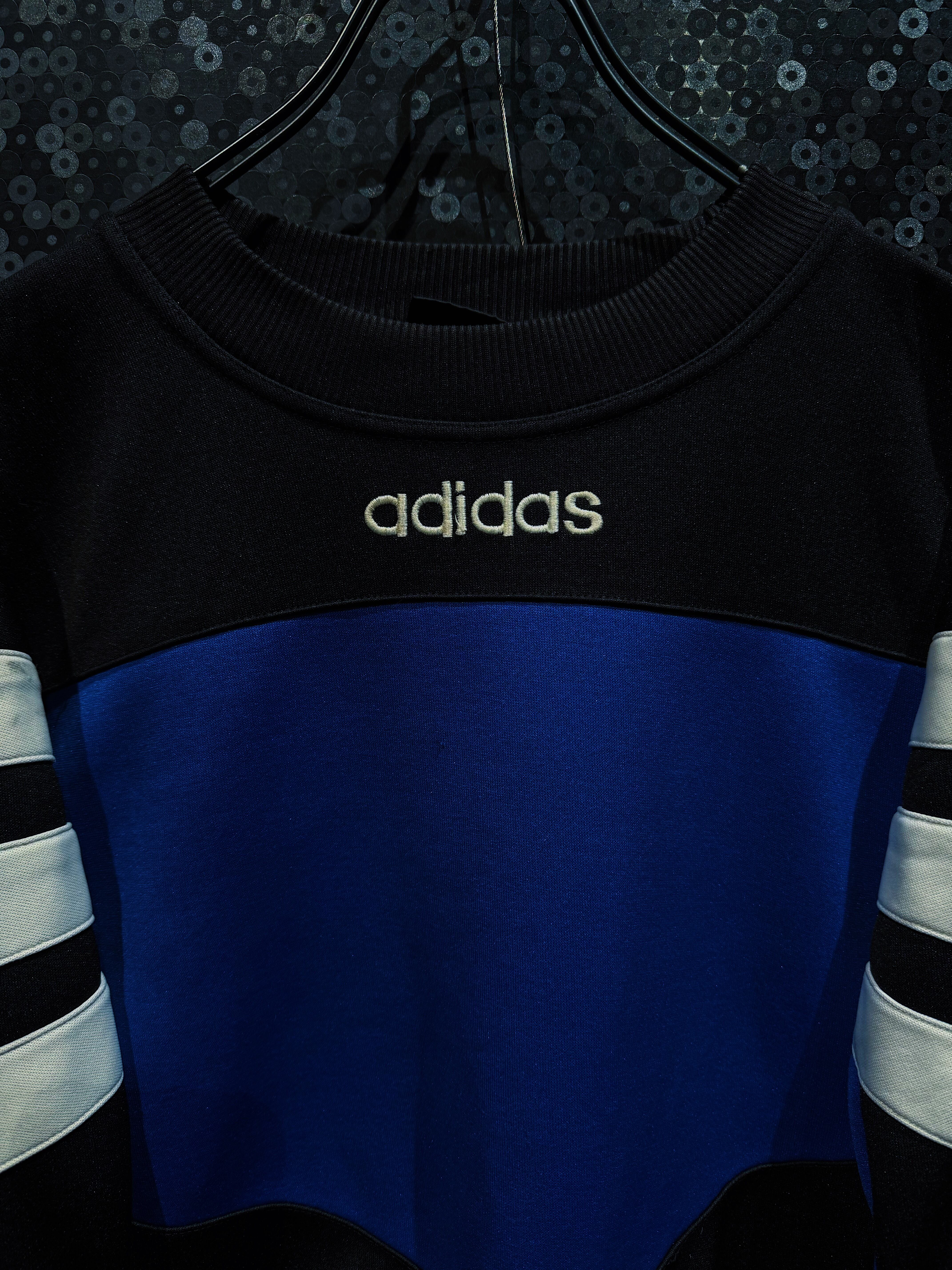90年代adidasらしい大胆な切替デザインが光る、スウェットプルオーバー。