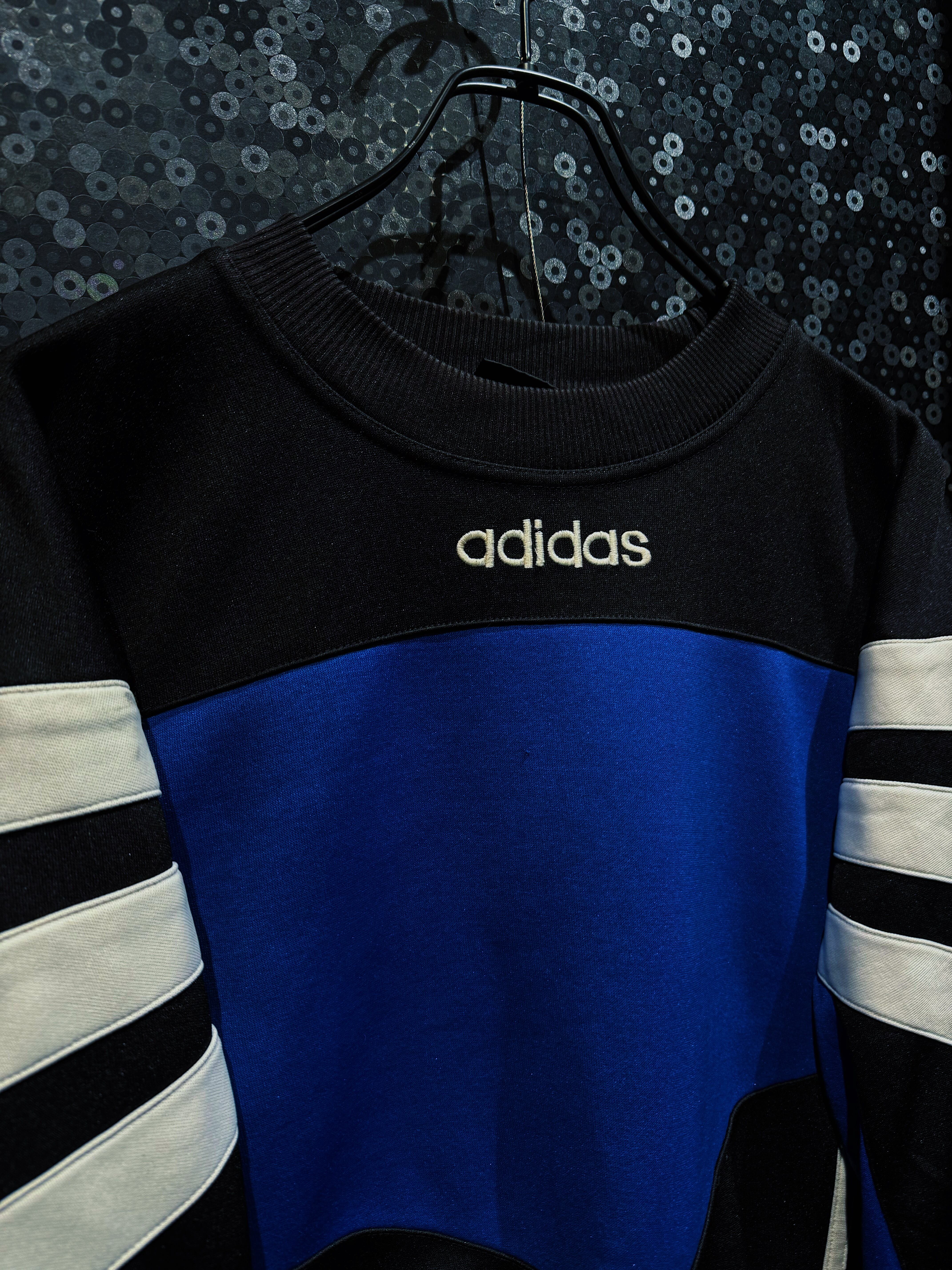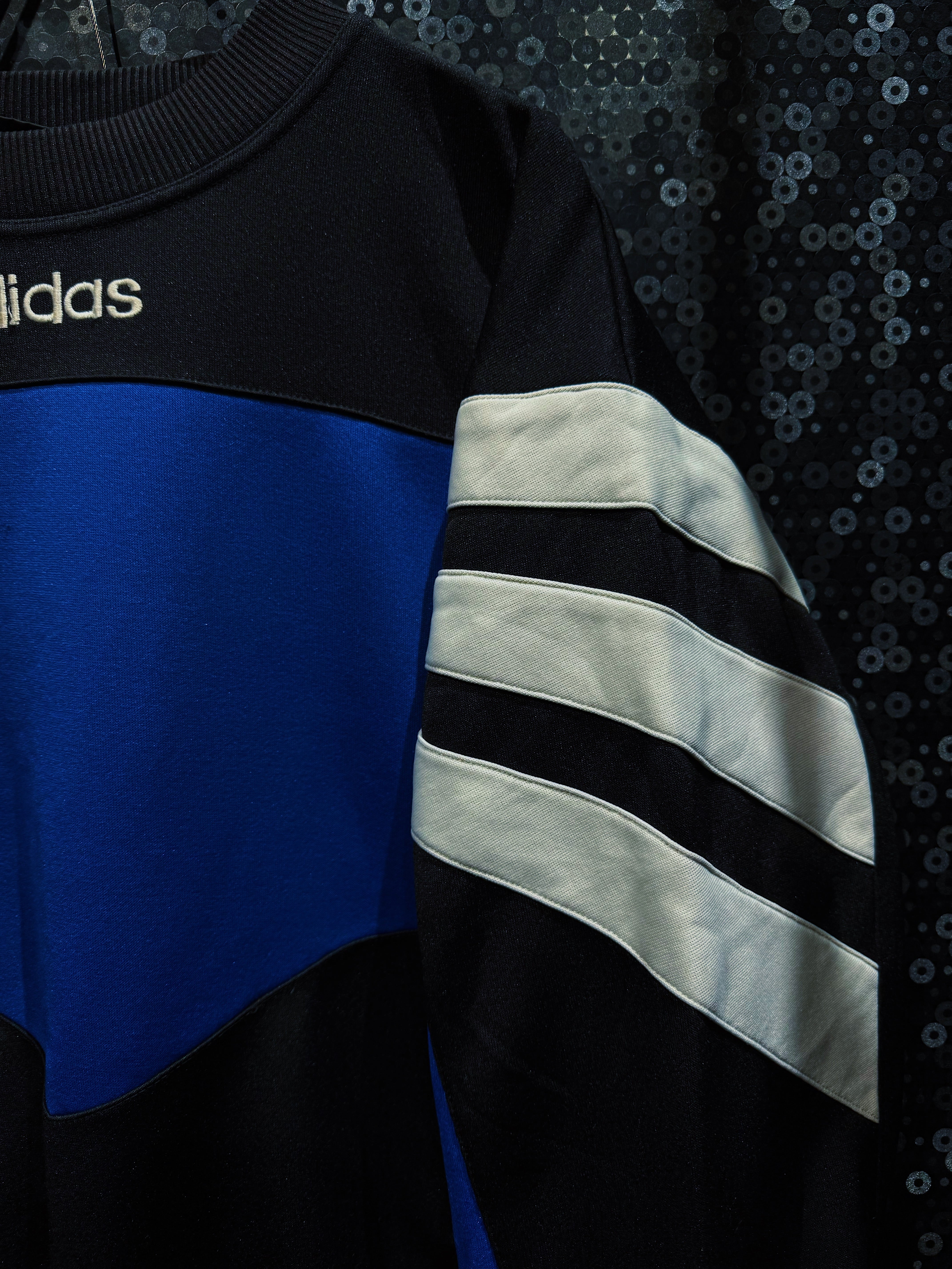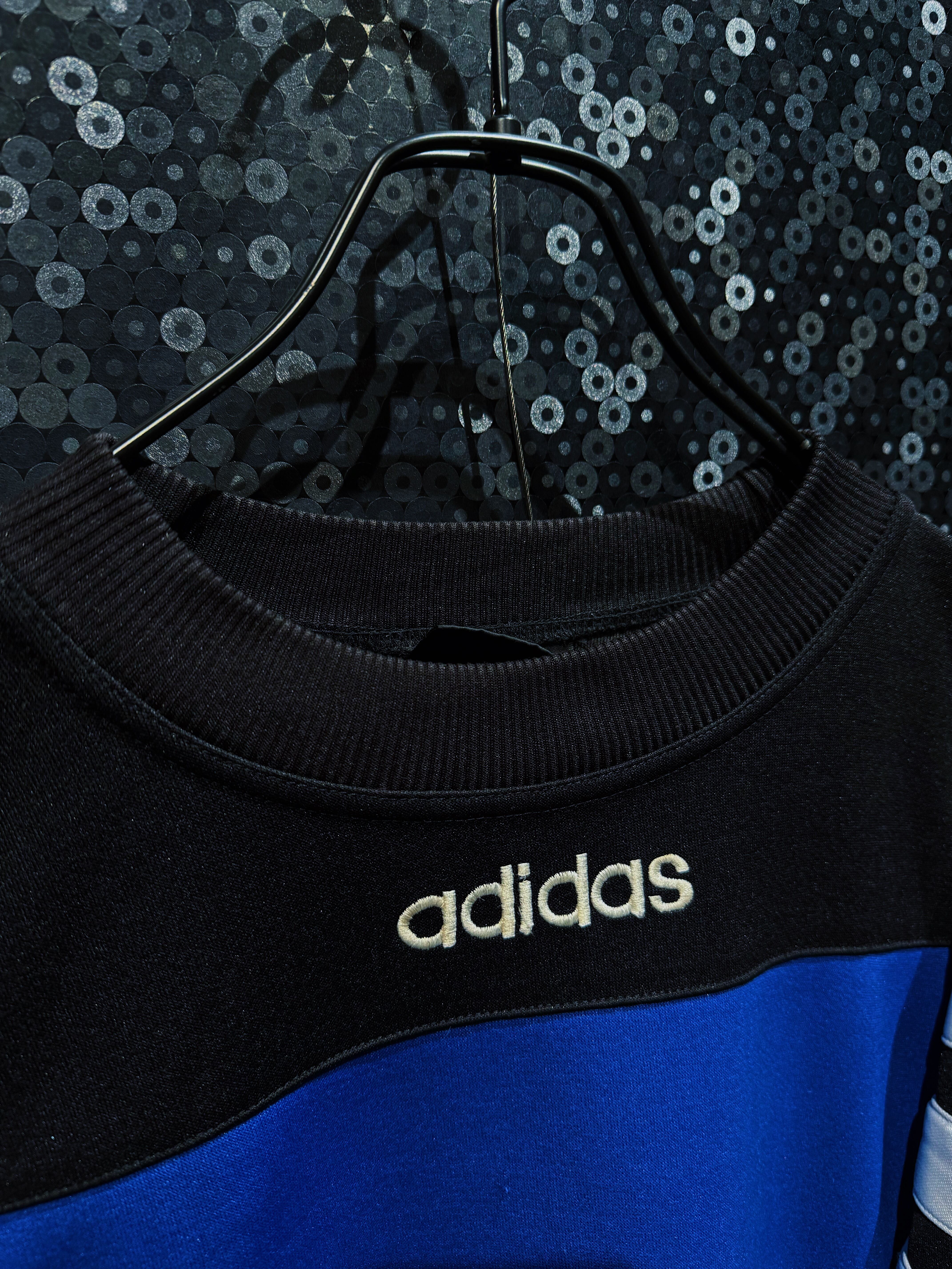 90年代adidasらしい大胆な切替デザインが光る、スウェットプルオーバー。