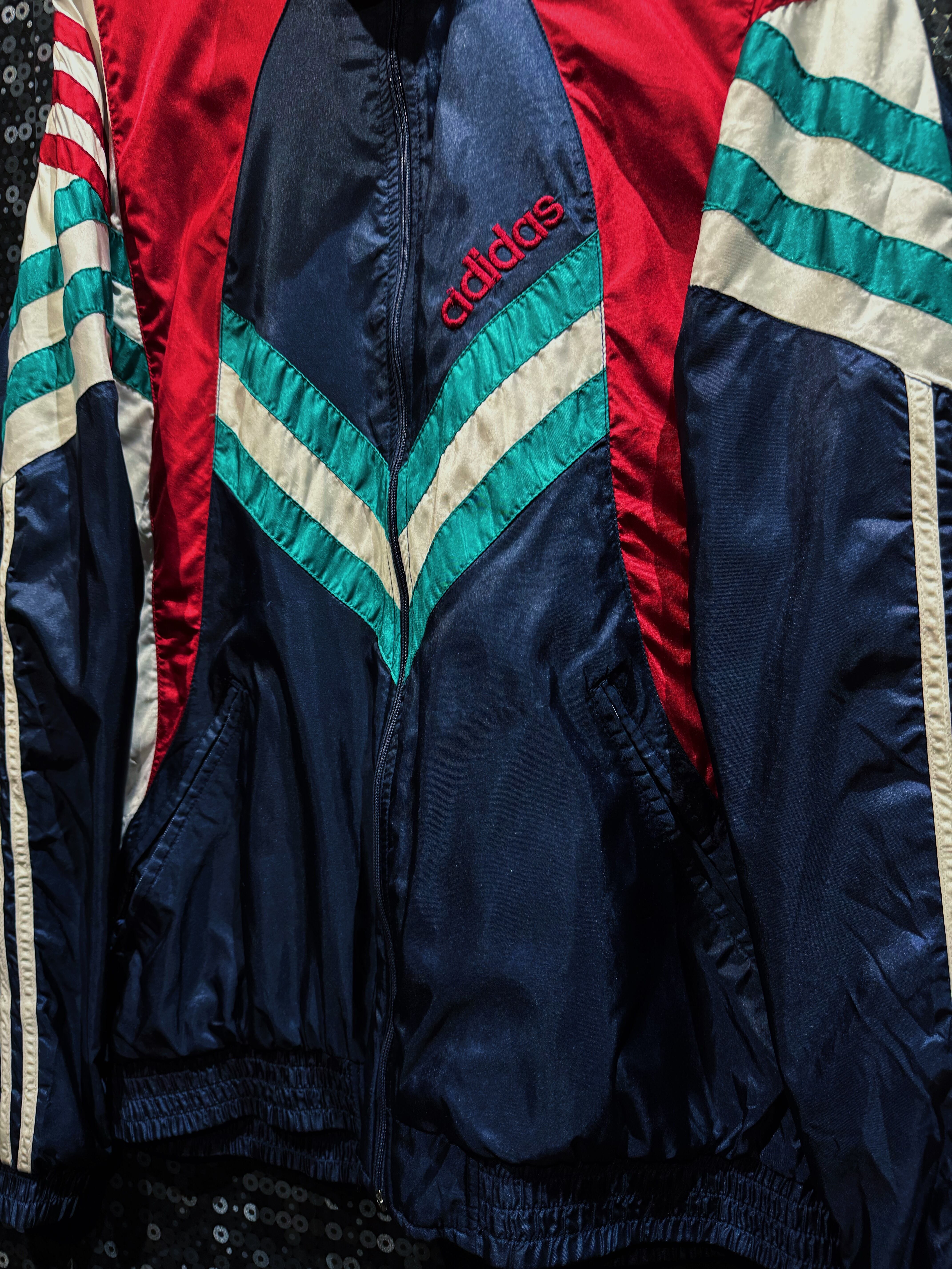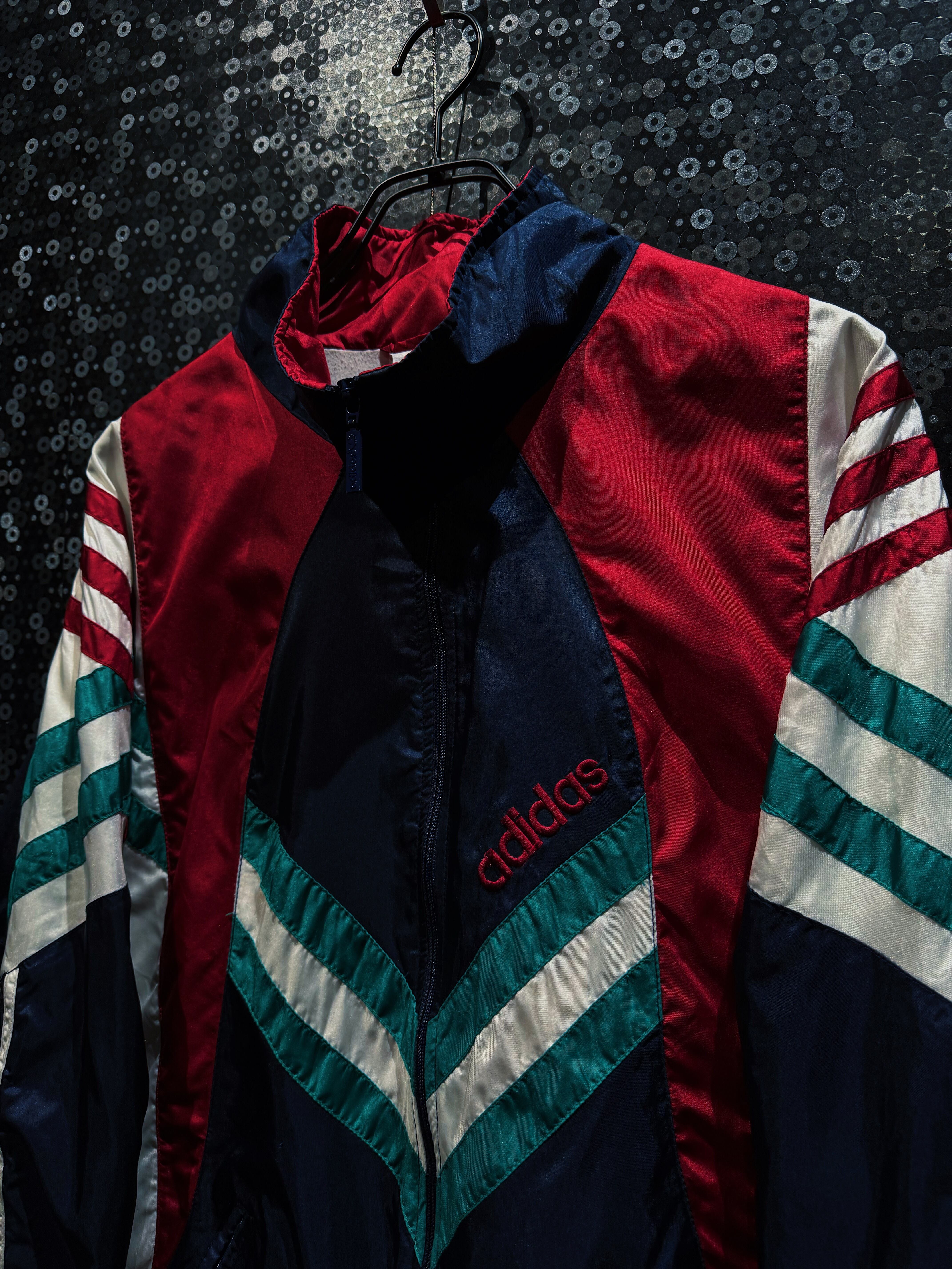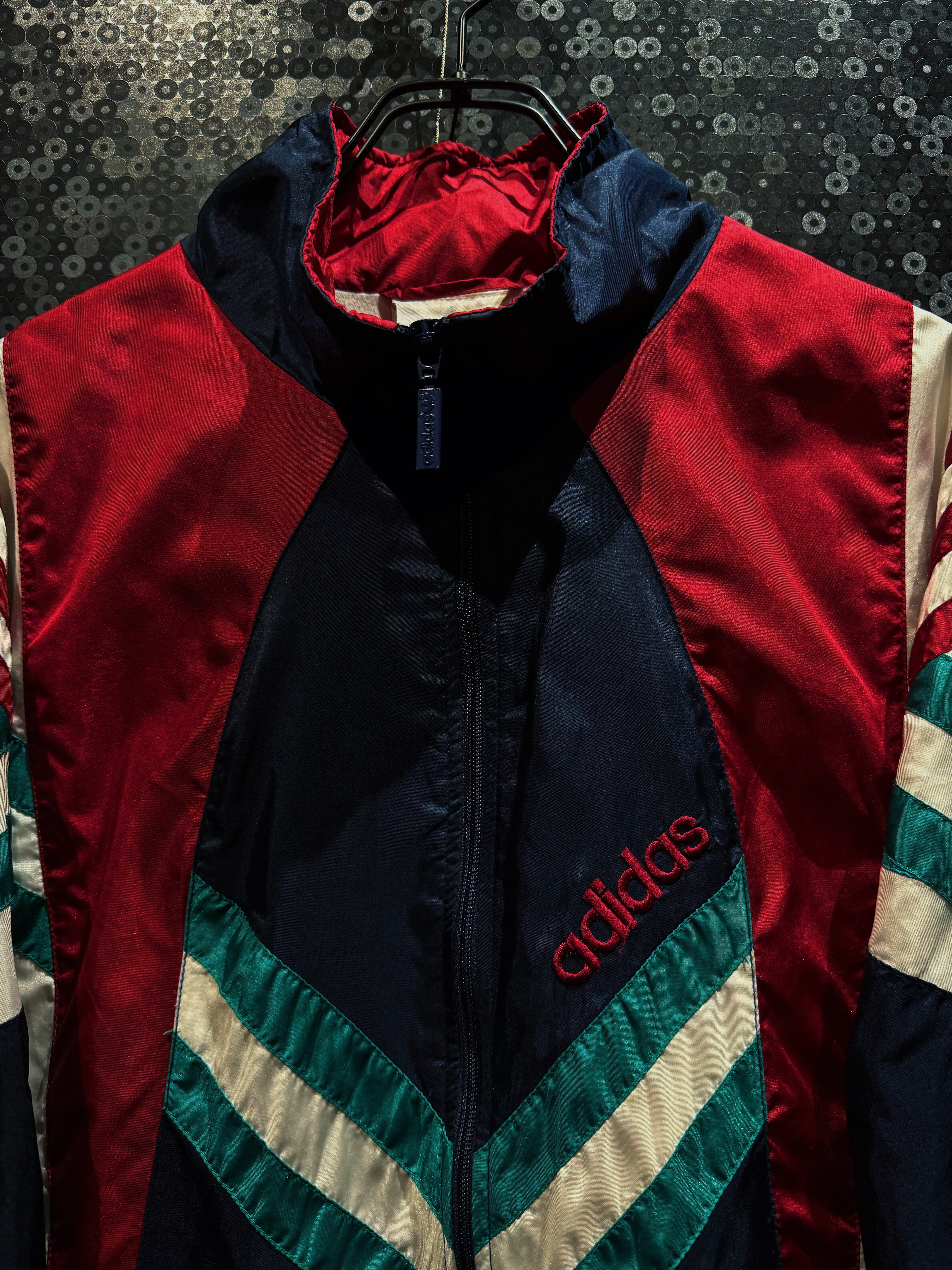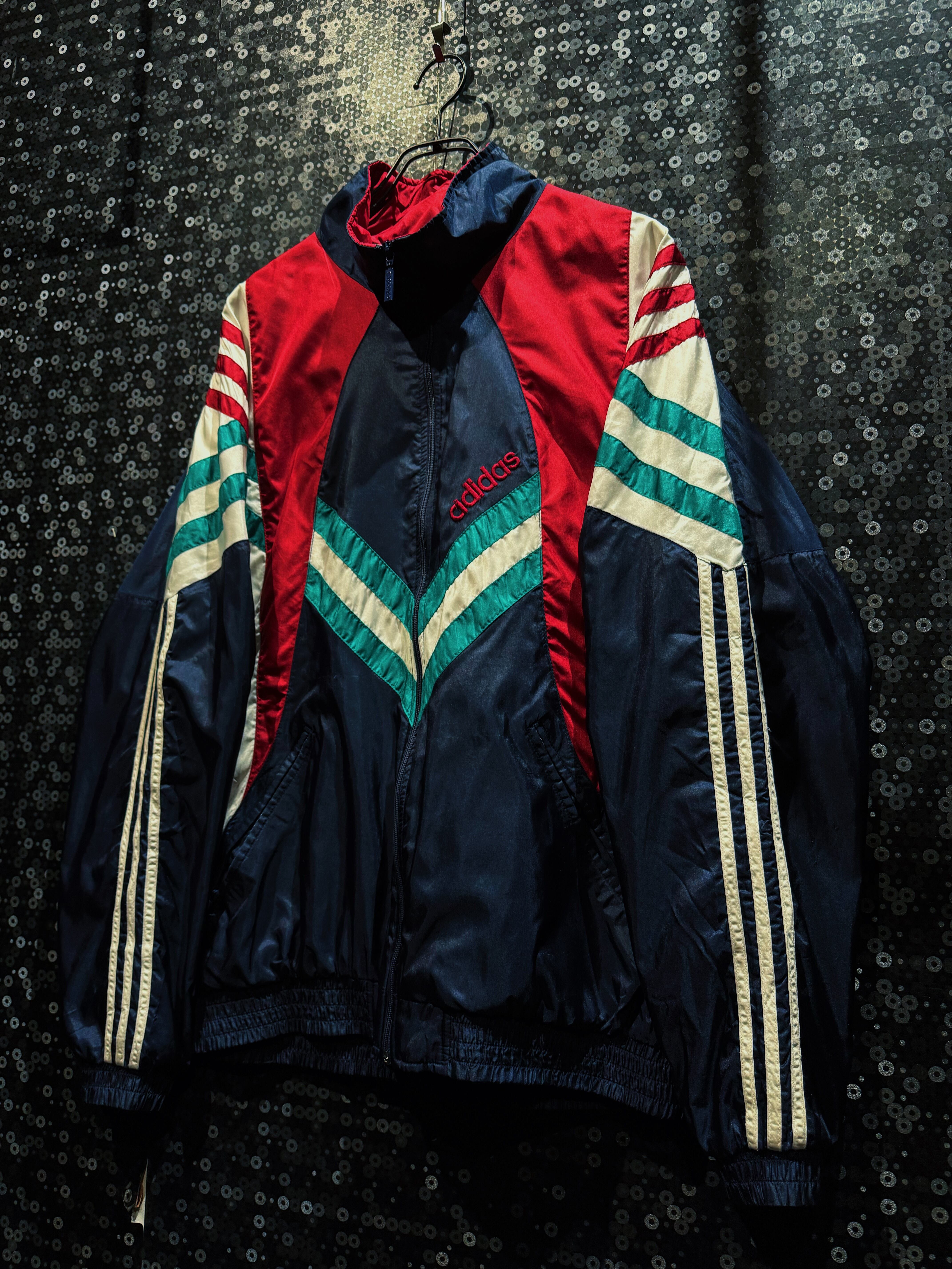 90年代adidasらしさが爆発しているマルチカラーナイロントラックジャケット。