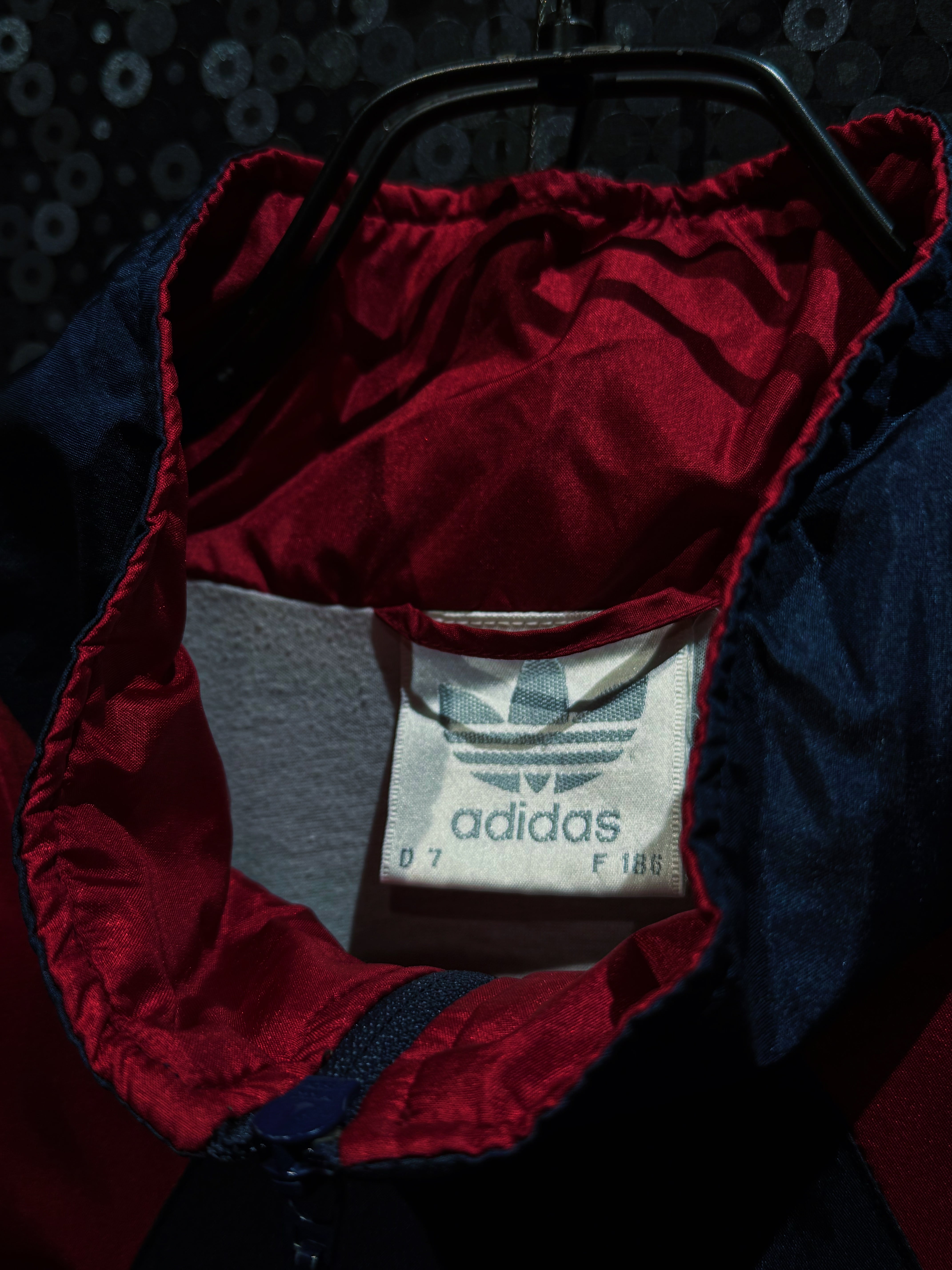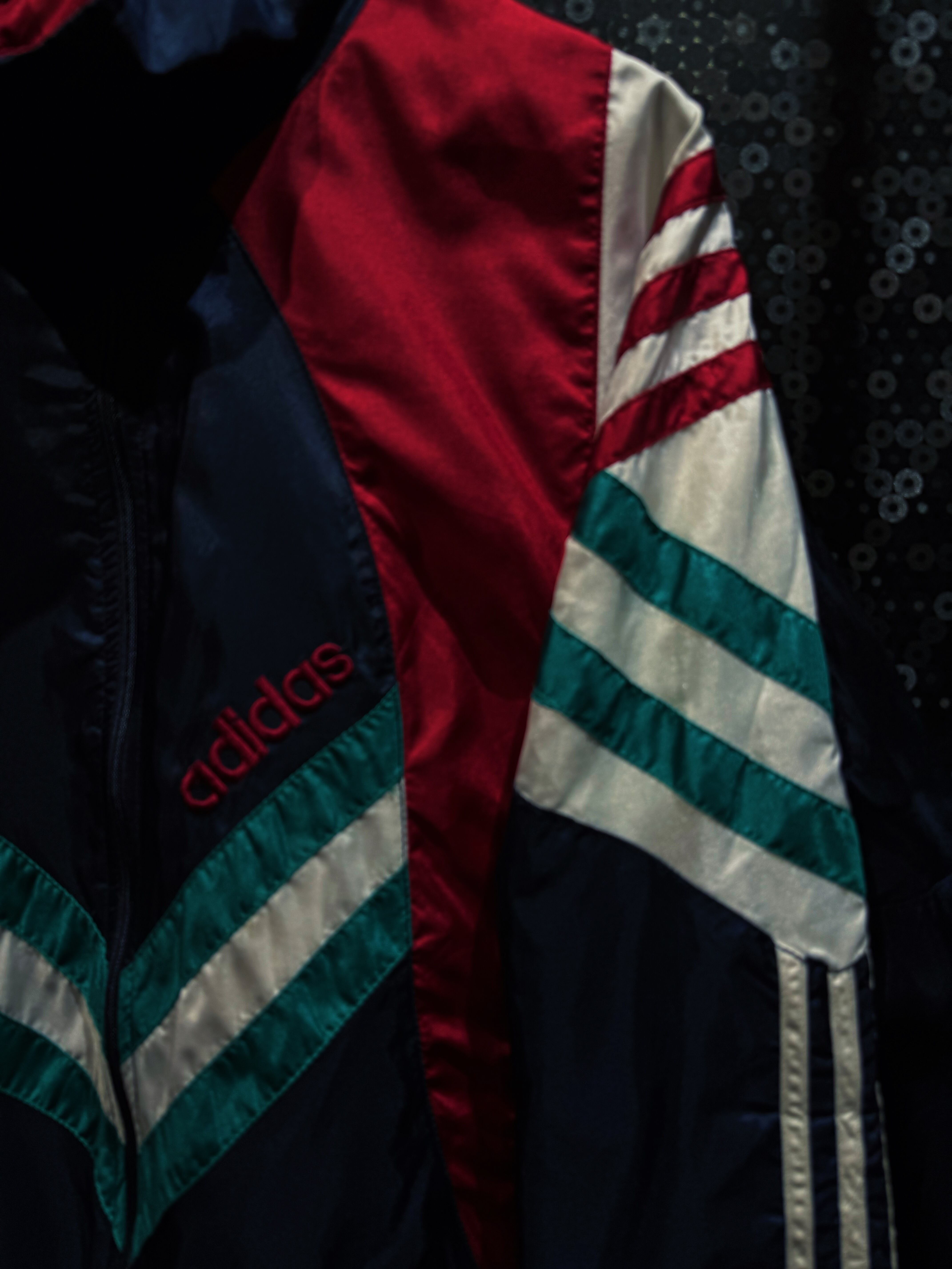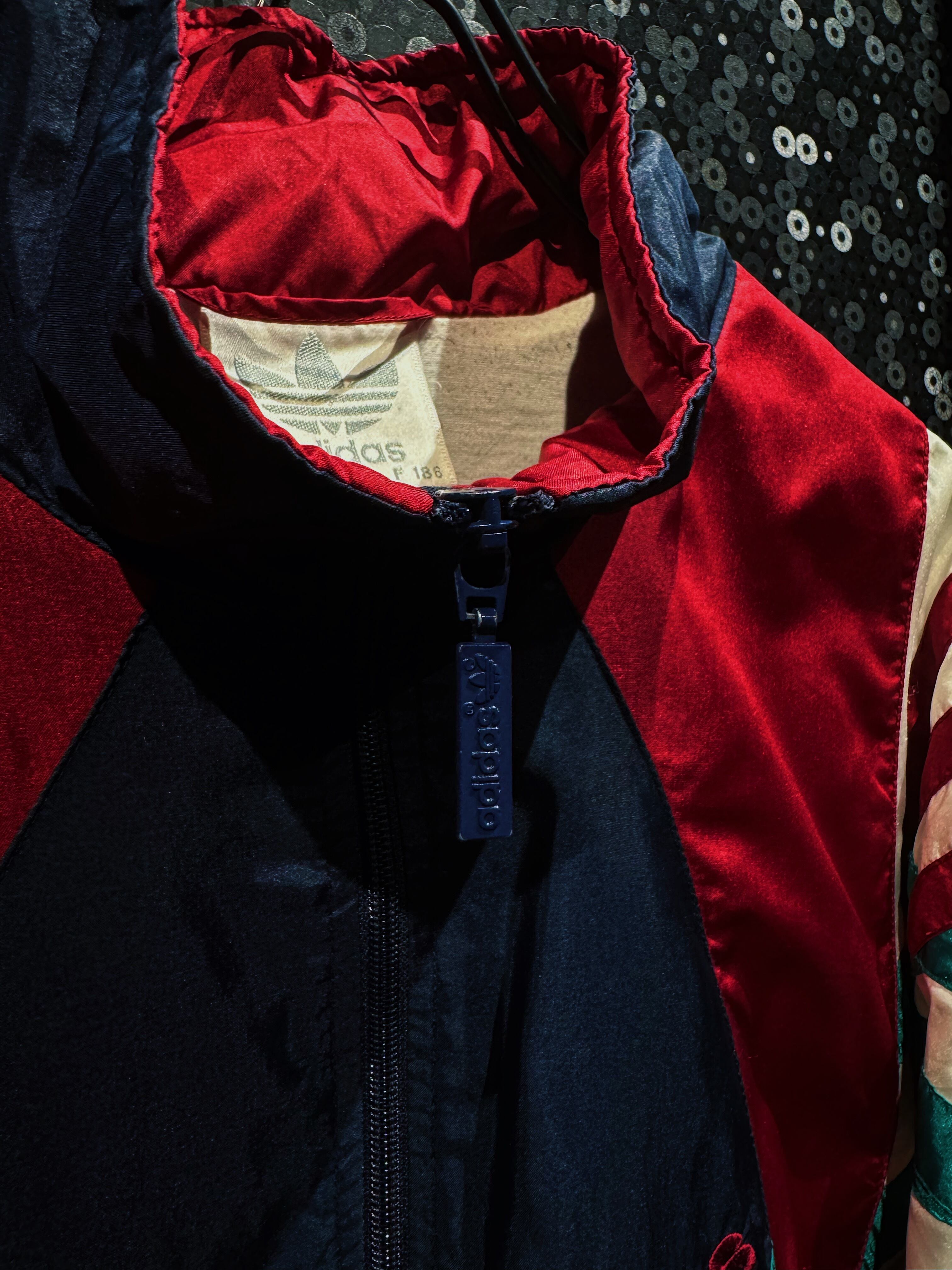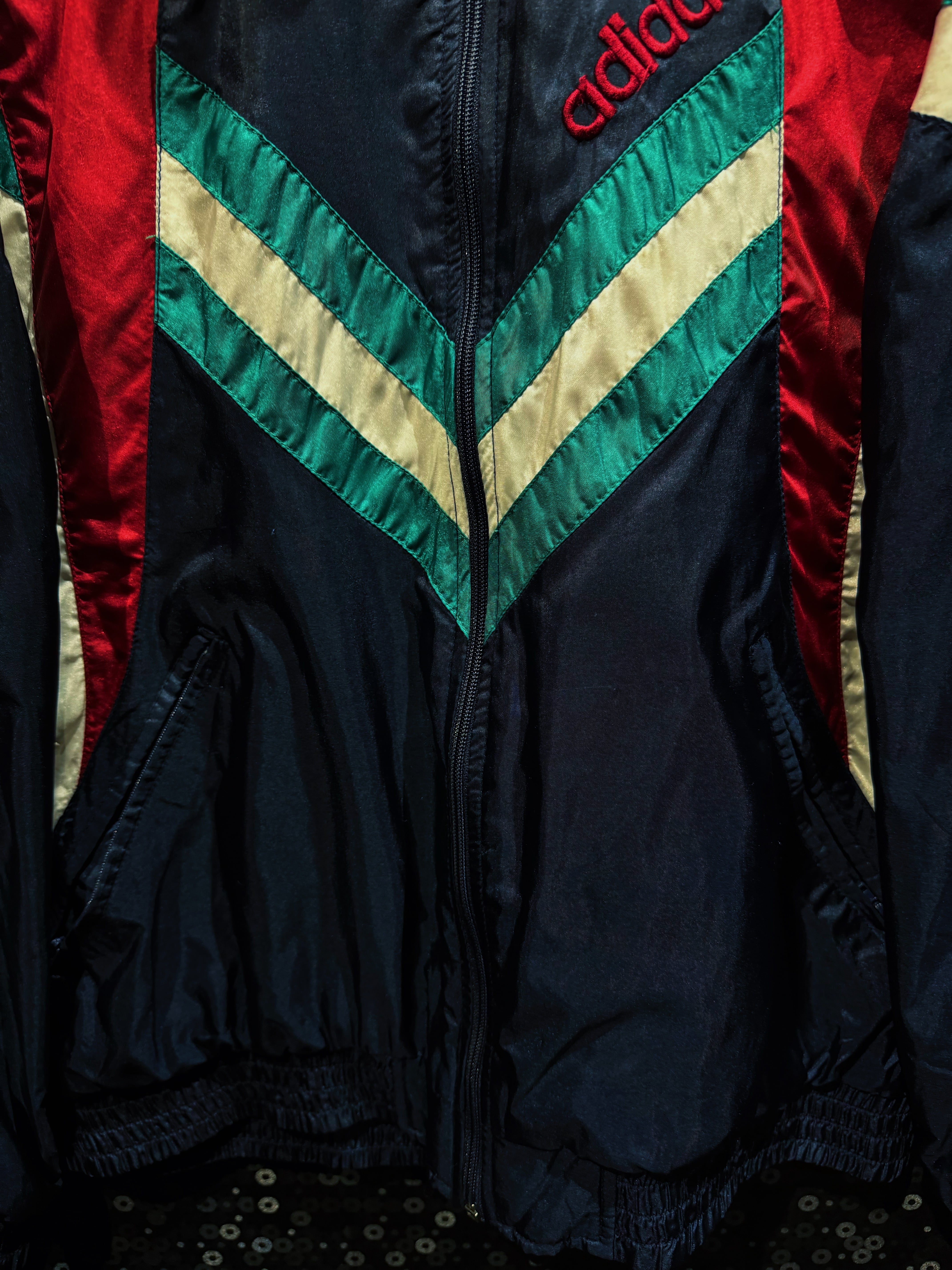90年代adidasらしさが爆発しているマルチカラーナイロントラックジャケット。