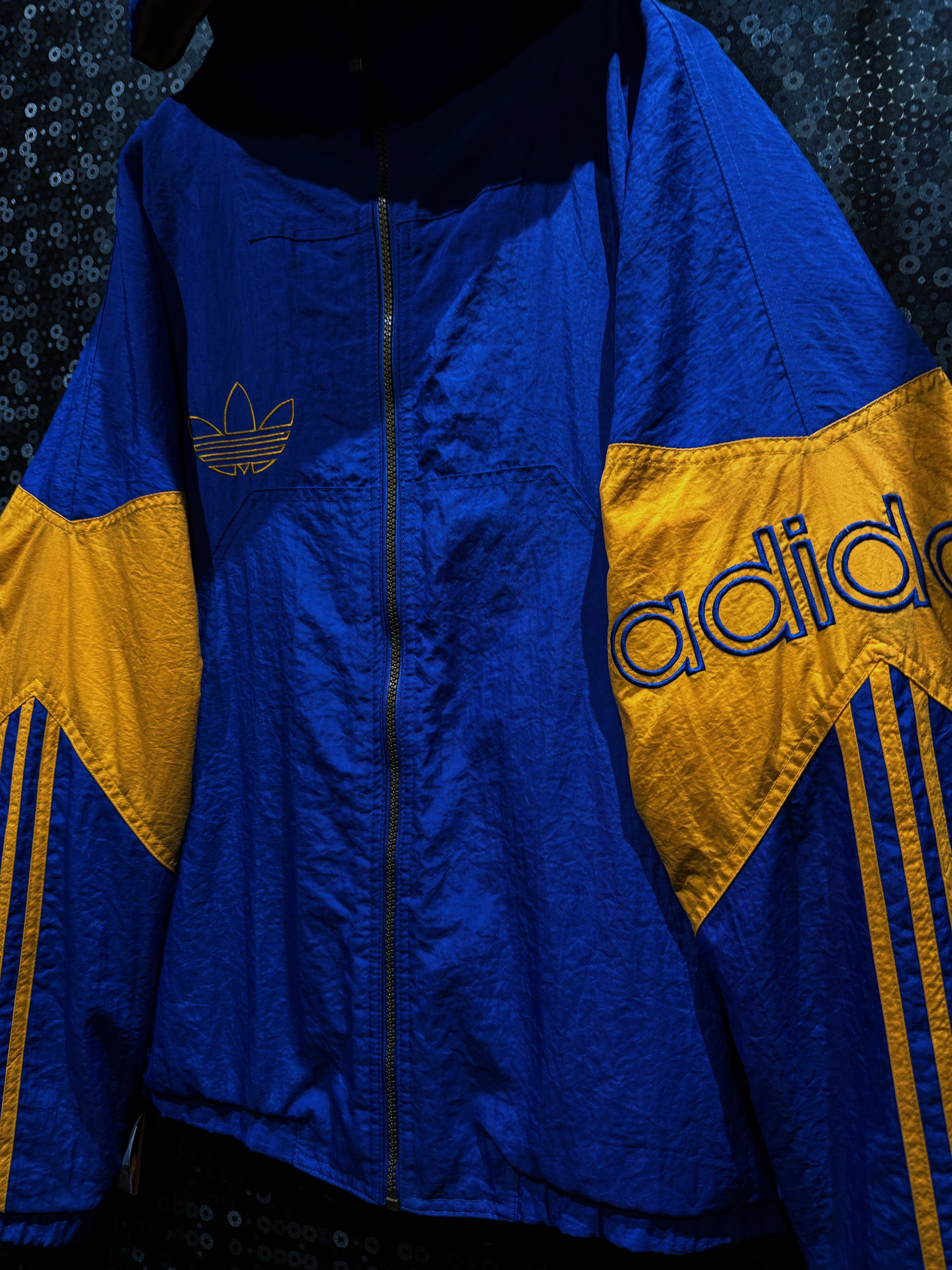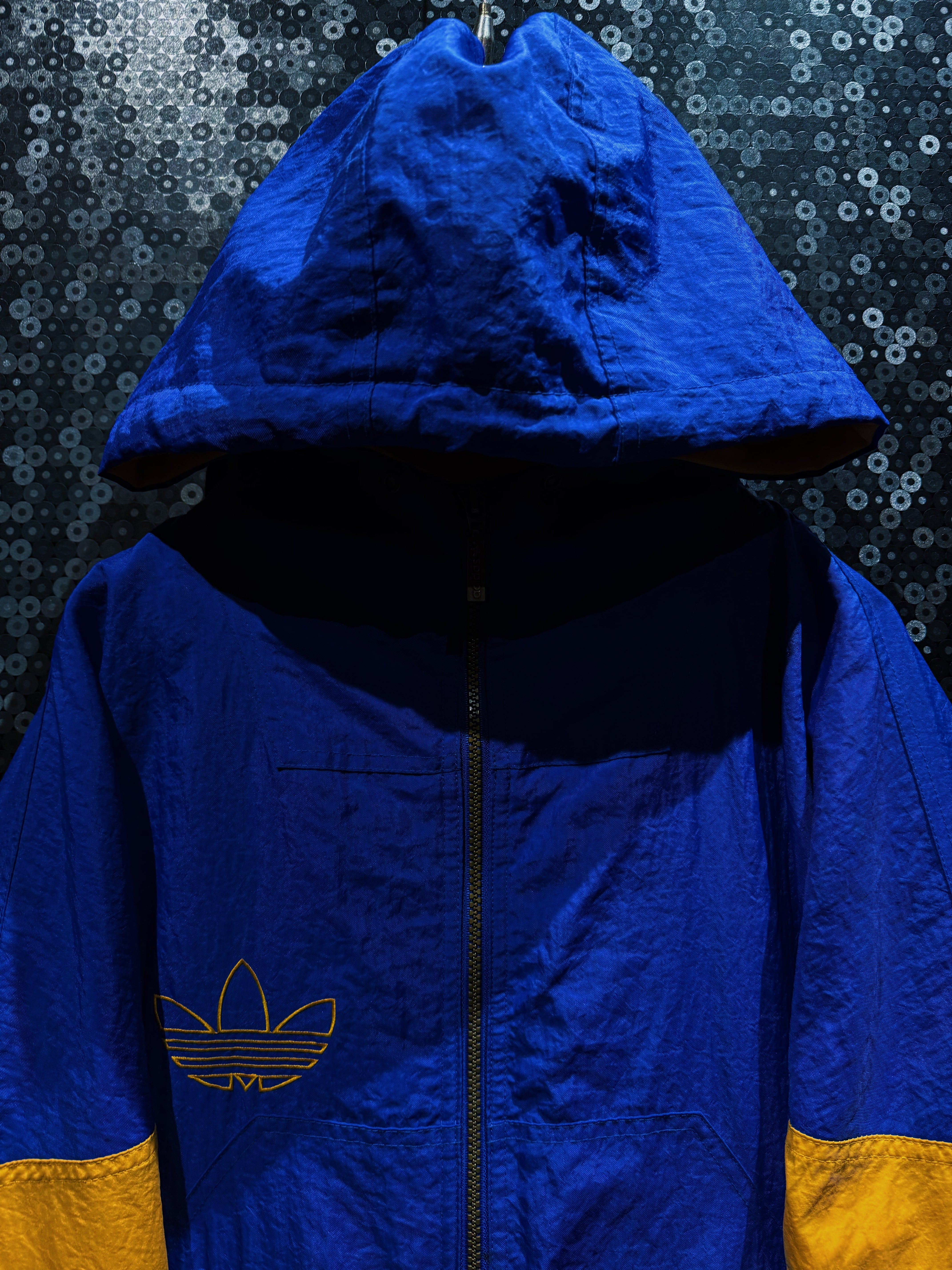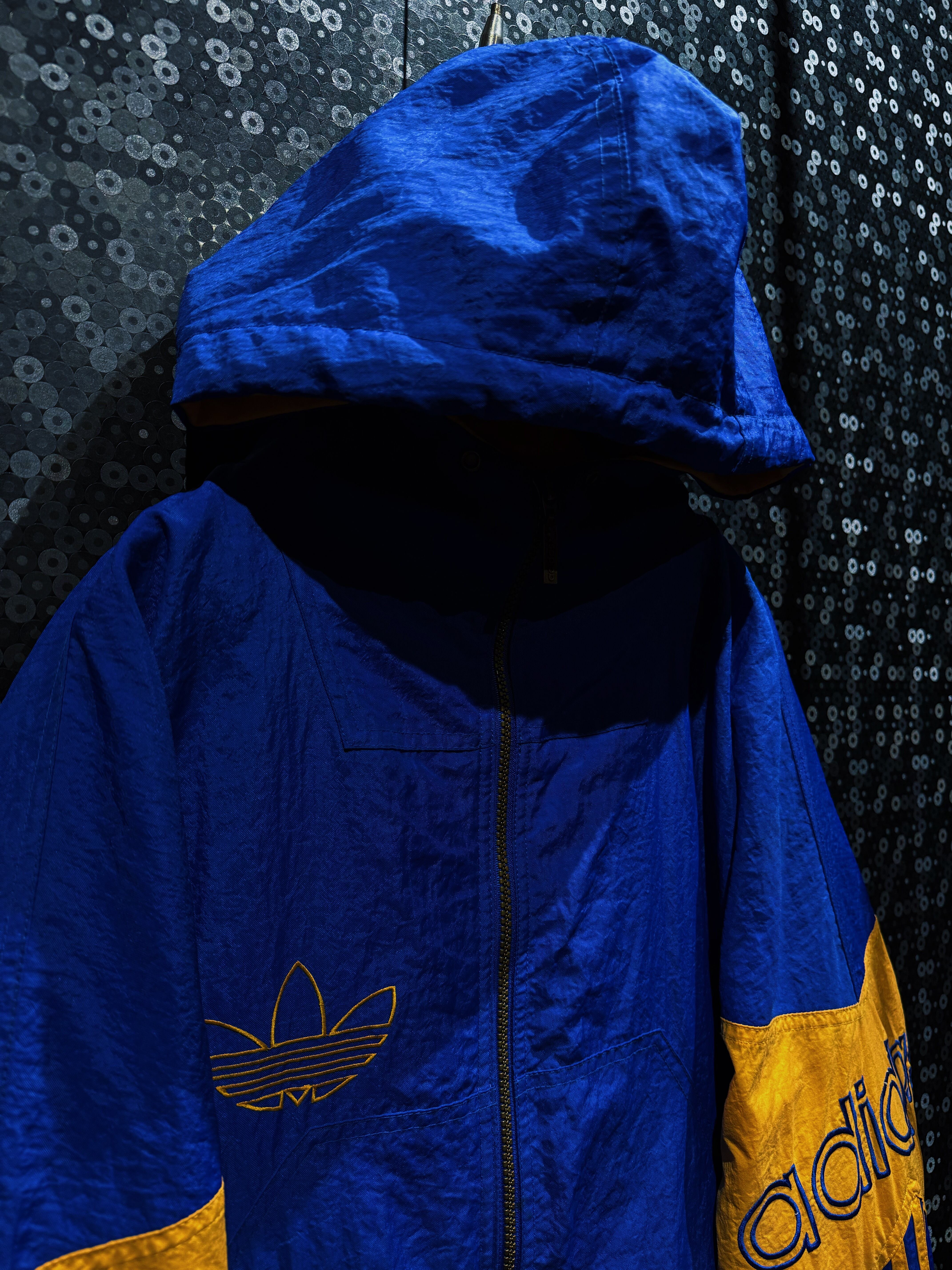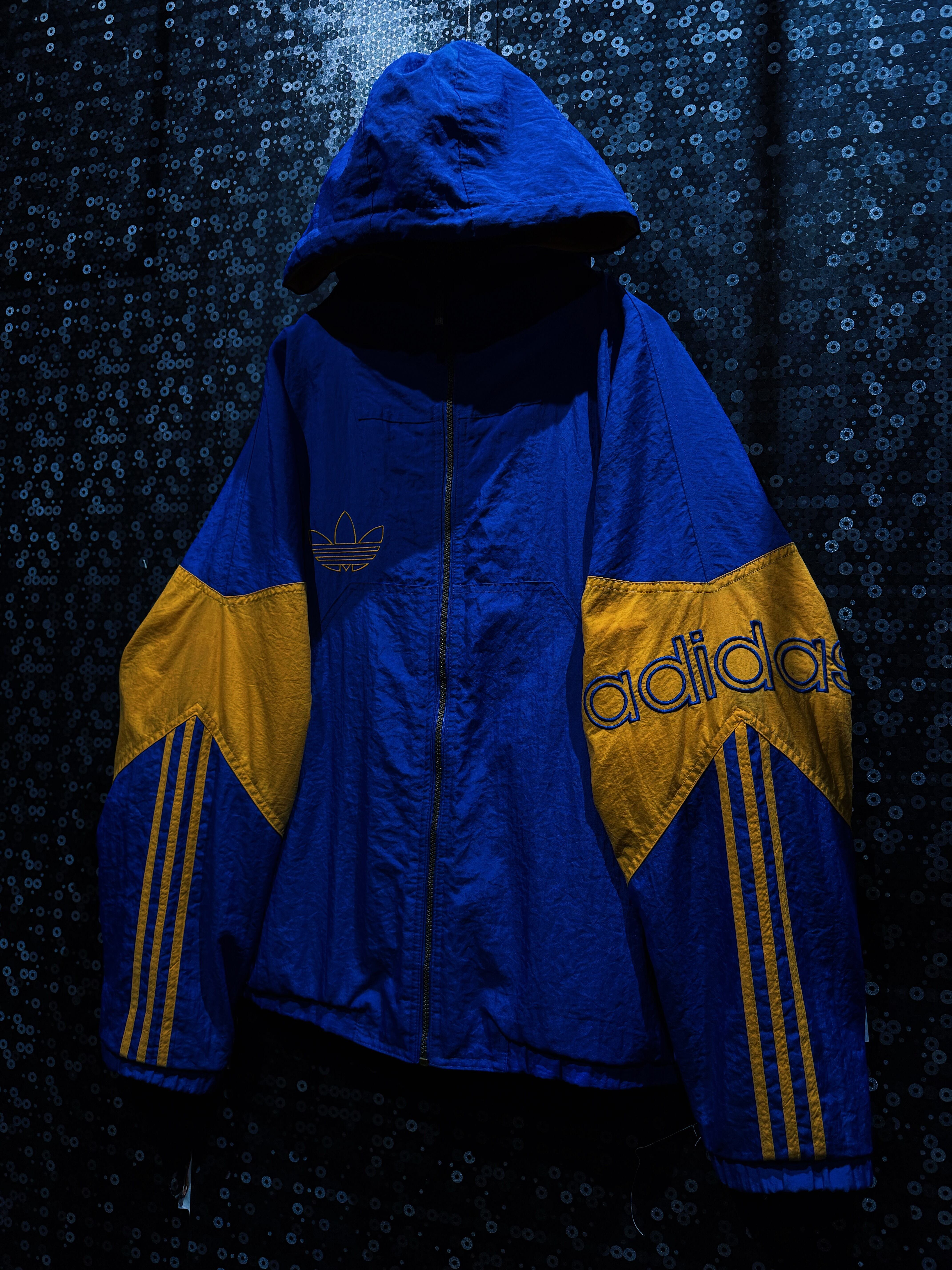 90年代後期〜00年代初頭の空気を纏った、adidas Originals ナイロンフーディージャケット。ATHLETICラインではなく、王道“Originals”の文脈で展開されたビッグロゴデザイン。