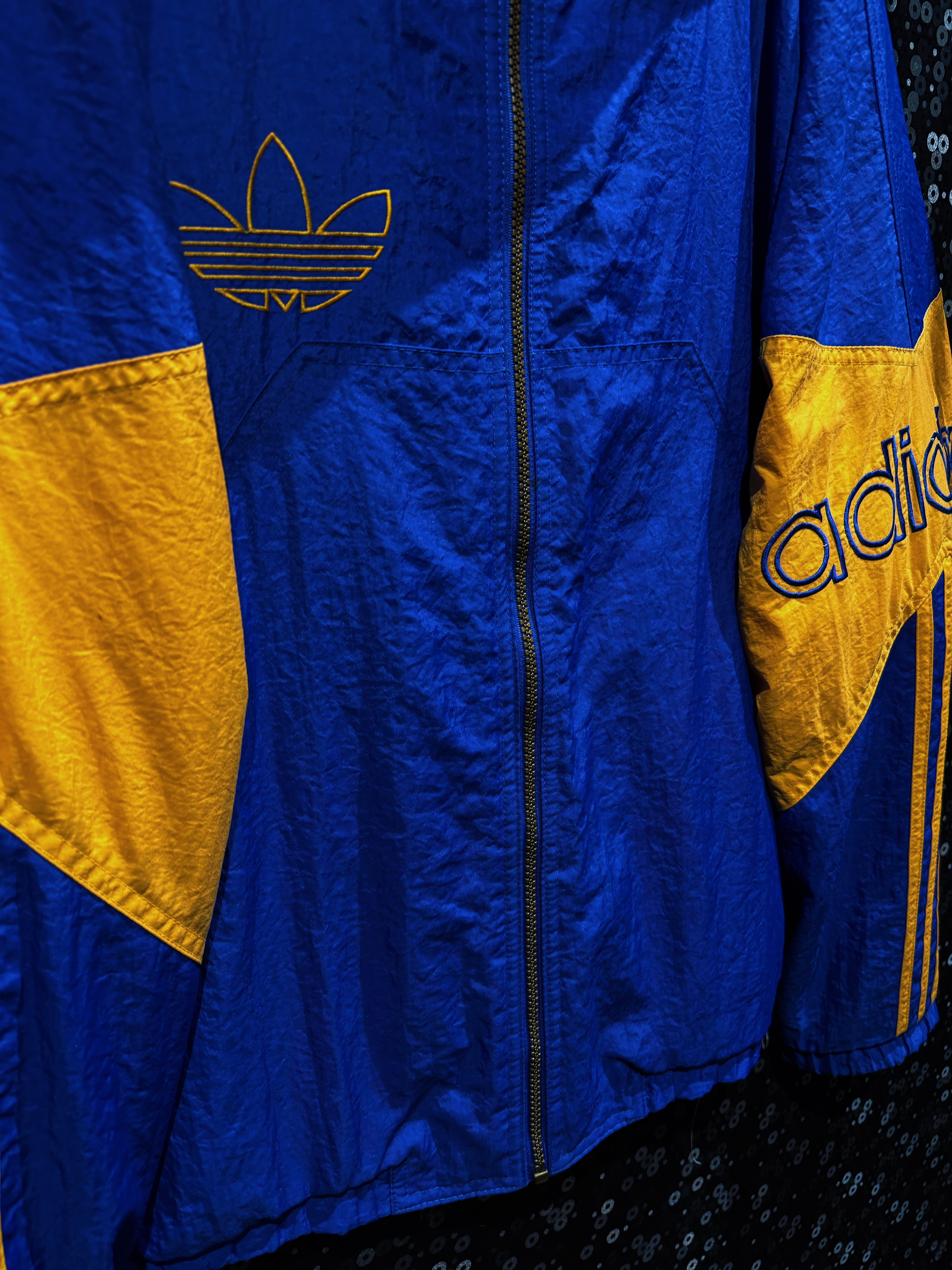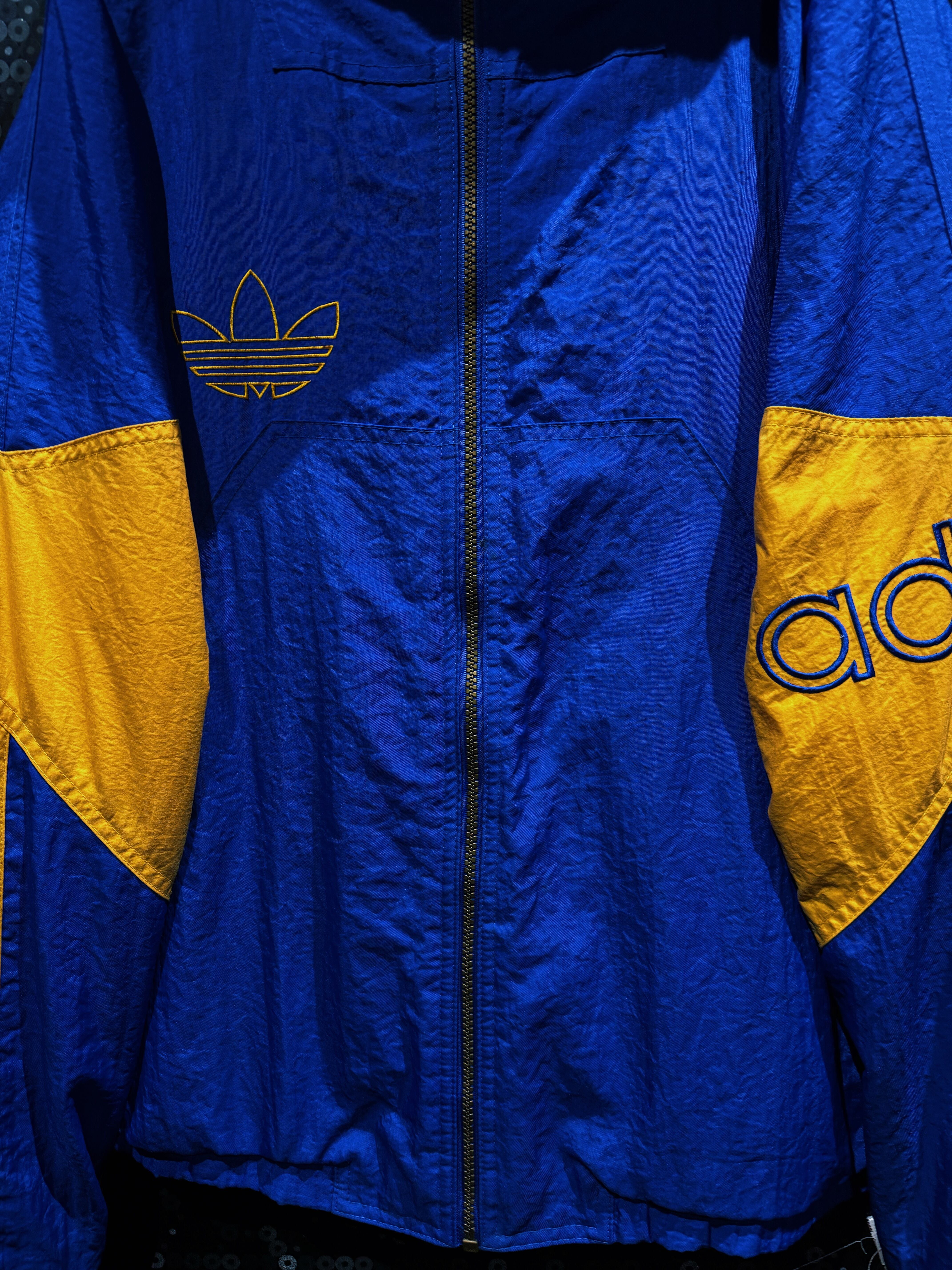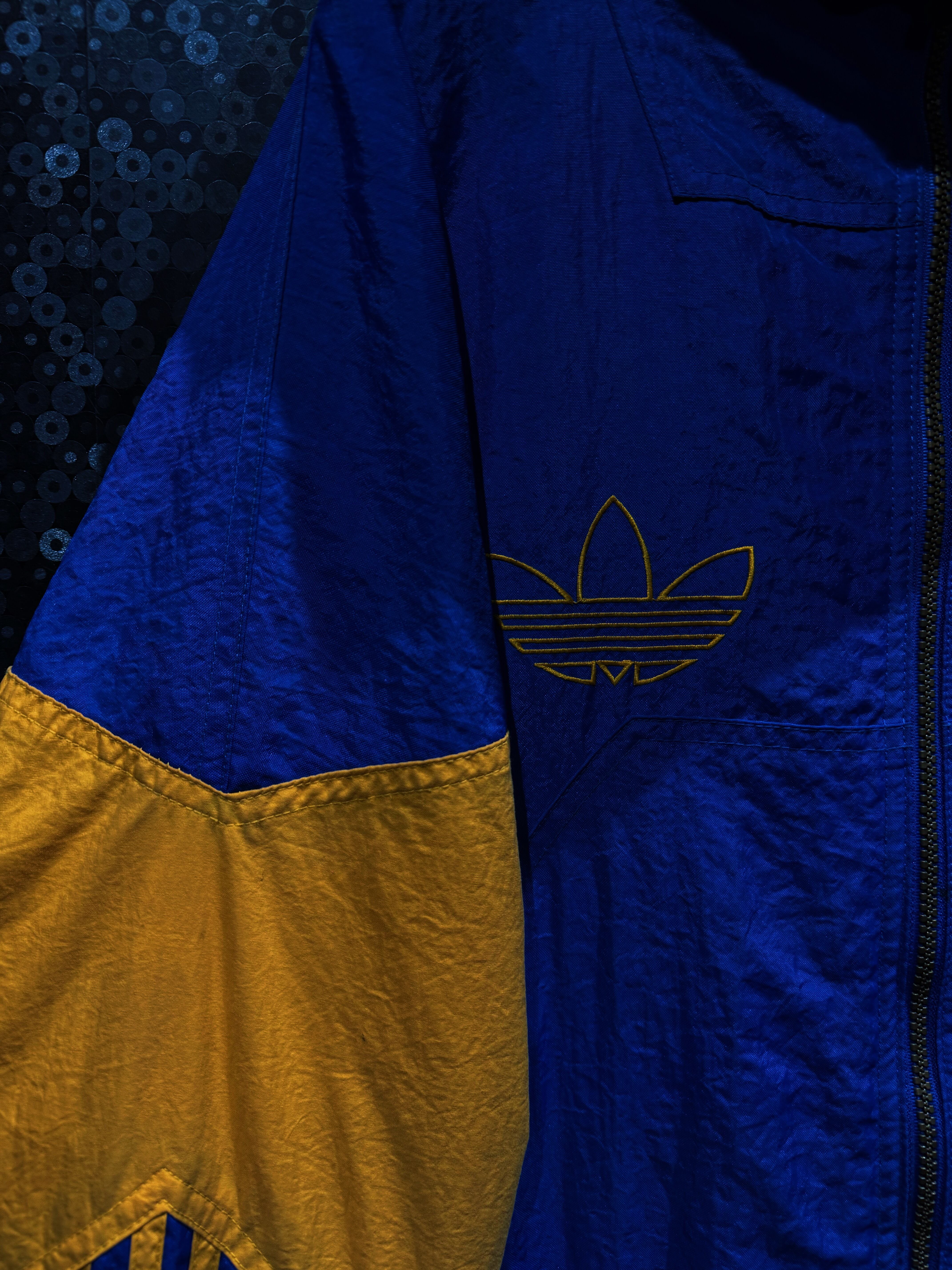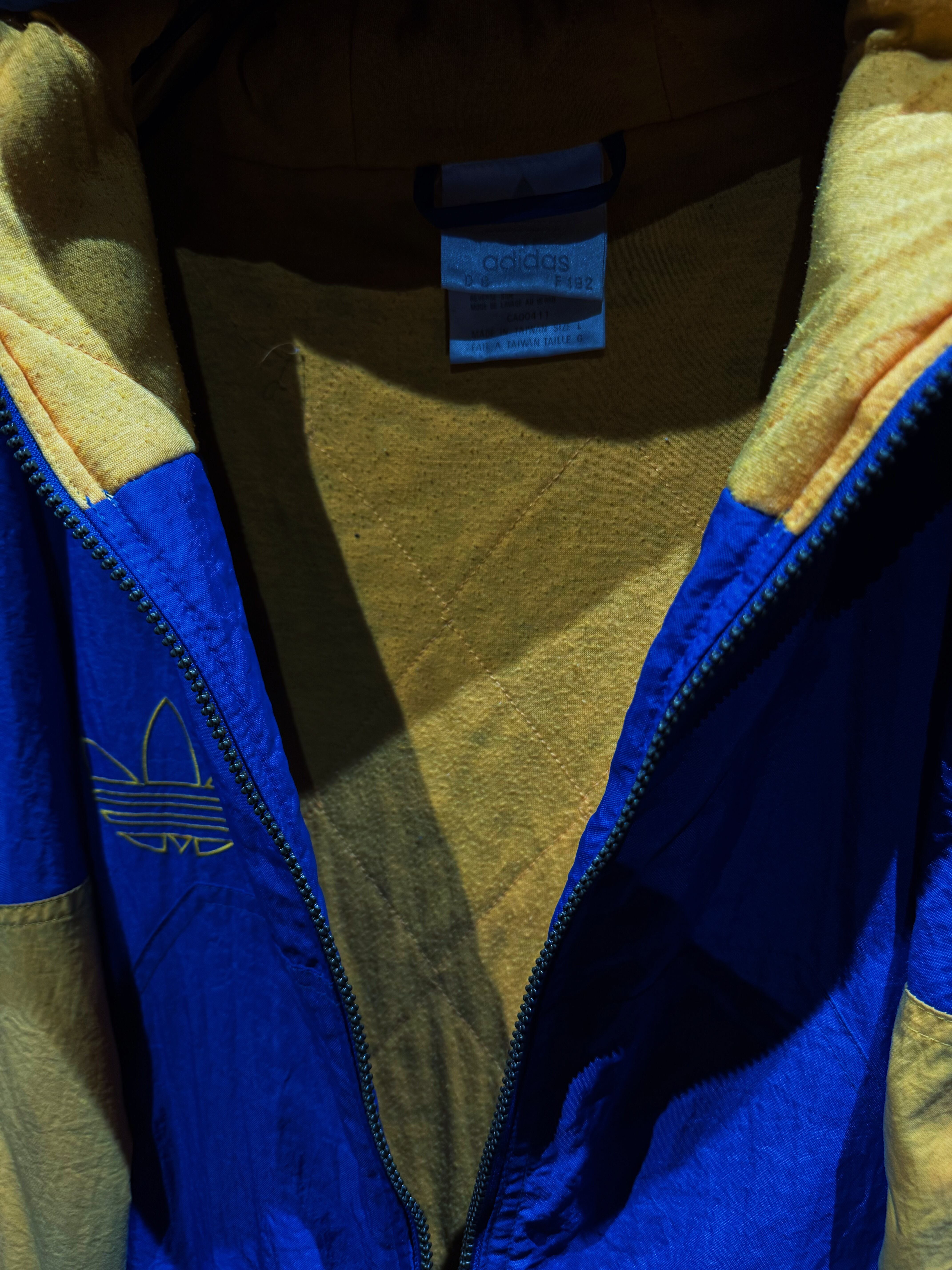 90年代後期〜00年代初頭の空気を纏った、adidas Originals ナイロンフーディージャケット。ATHLETICラインではなく、王道“Originals”の文脈で展開されたビッグロゴデザイン。