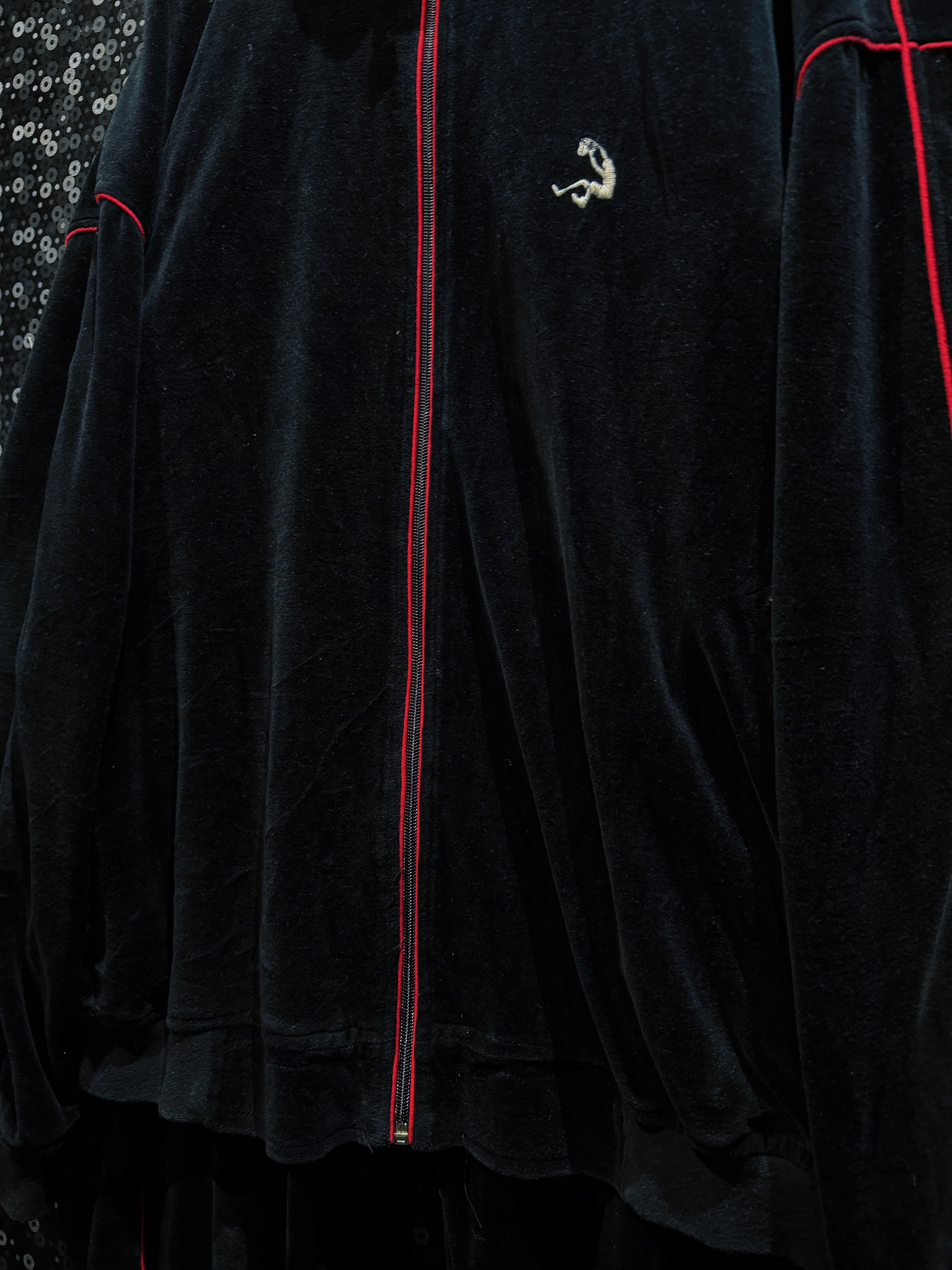 【ÆIEM】“PRO CLUB” Vintage Black Velour × Red Piping Soccer Motif Track Setup