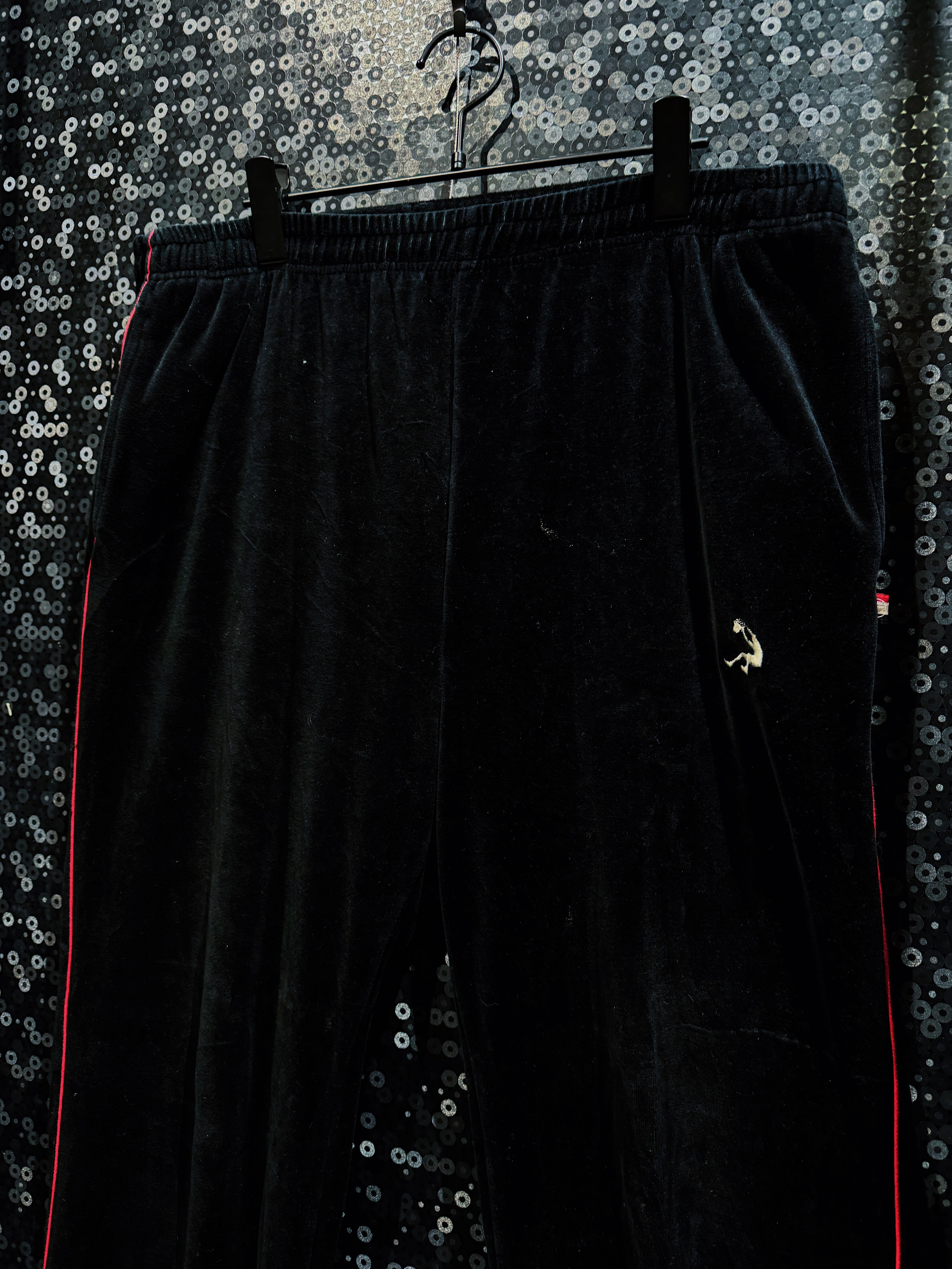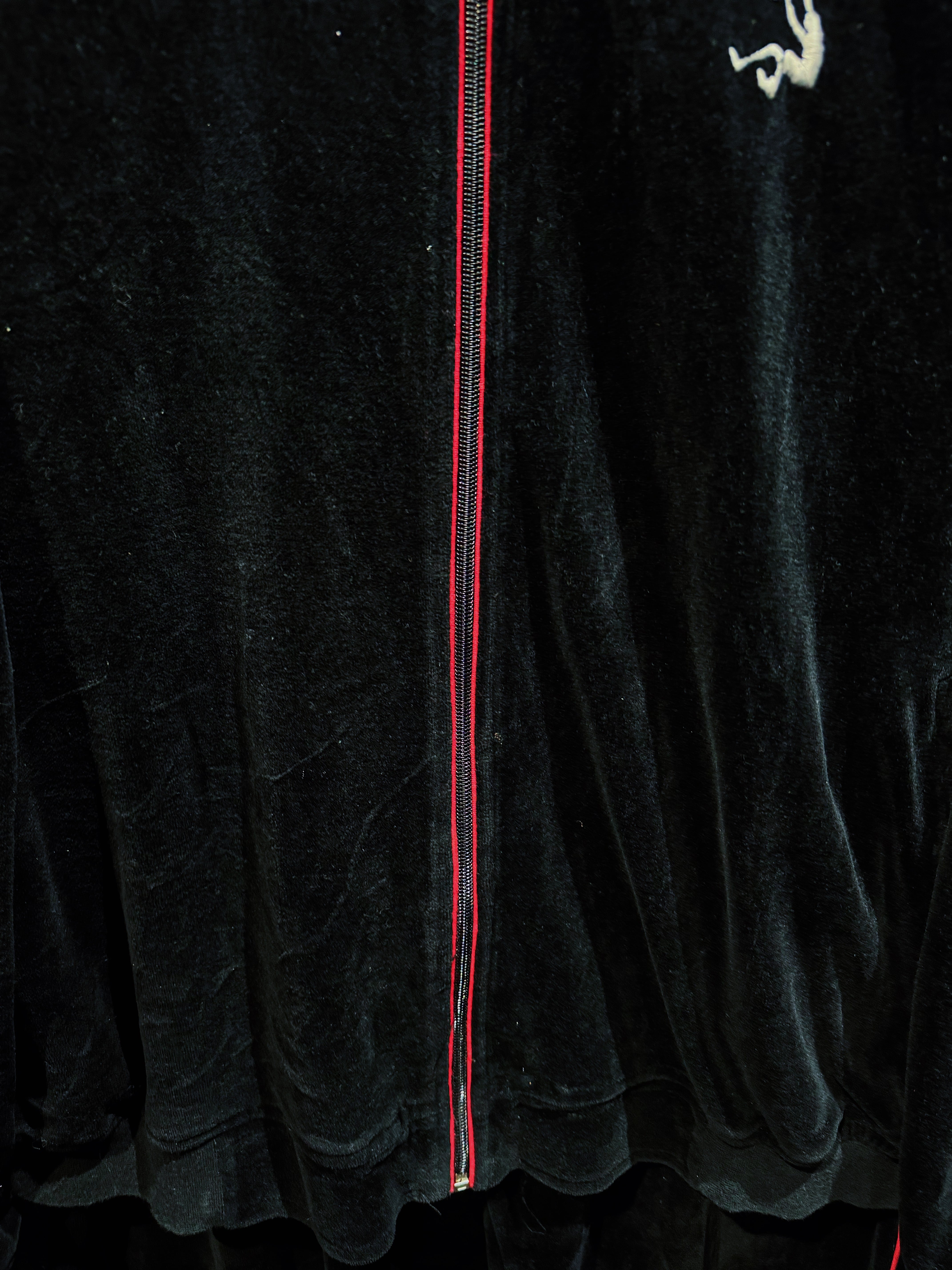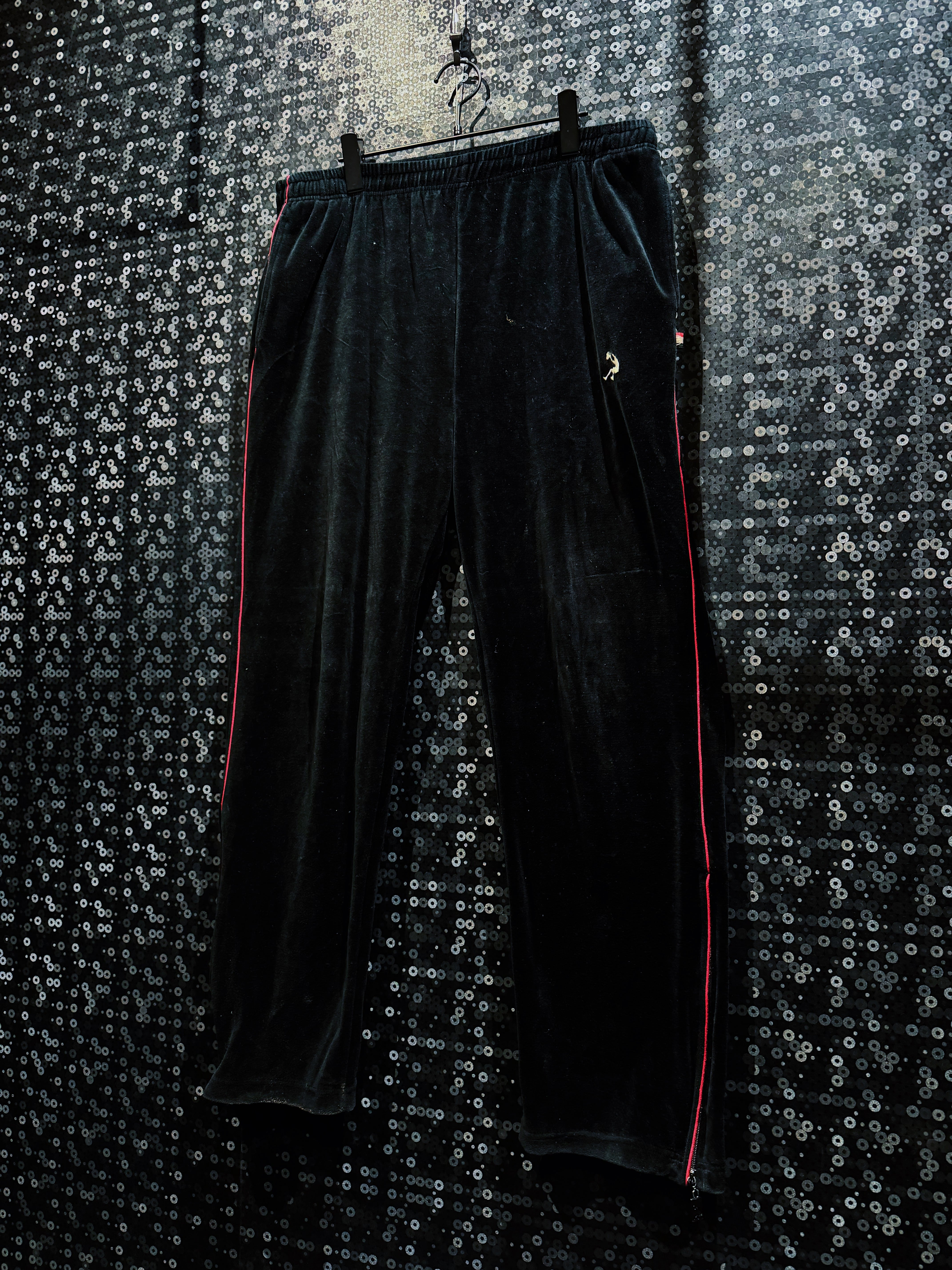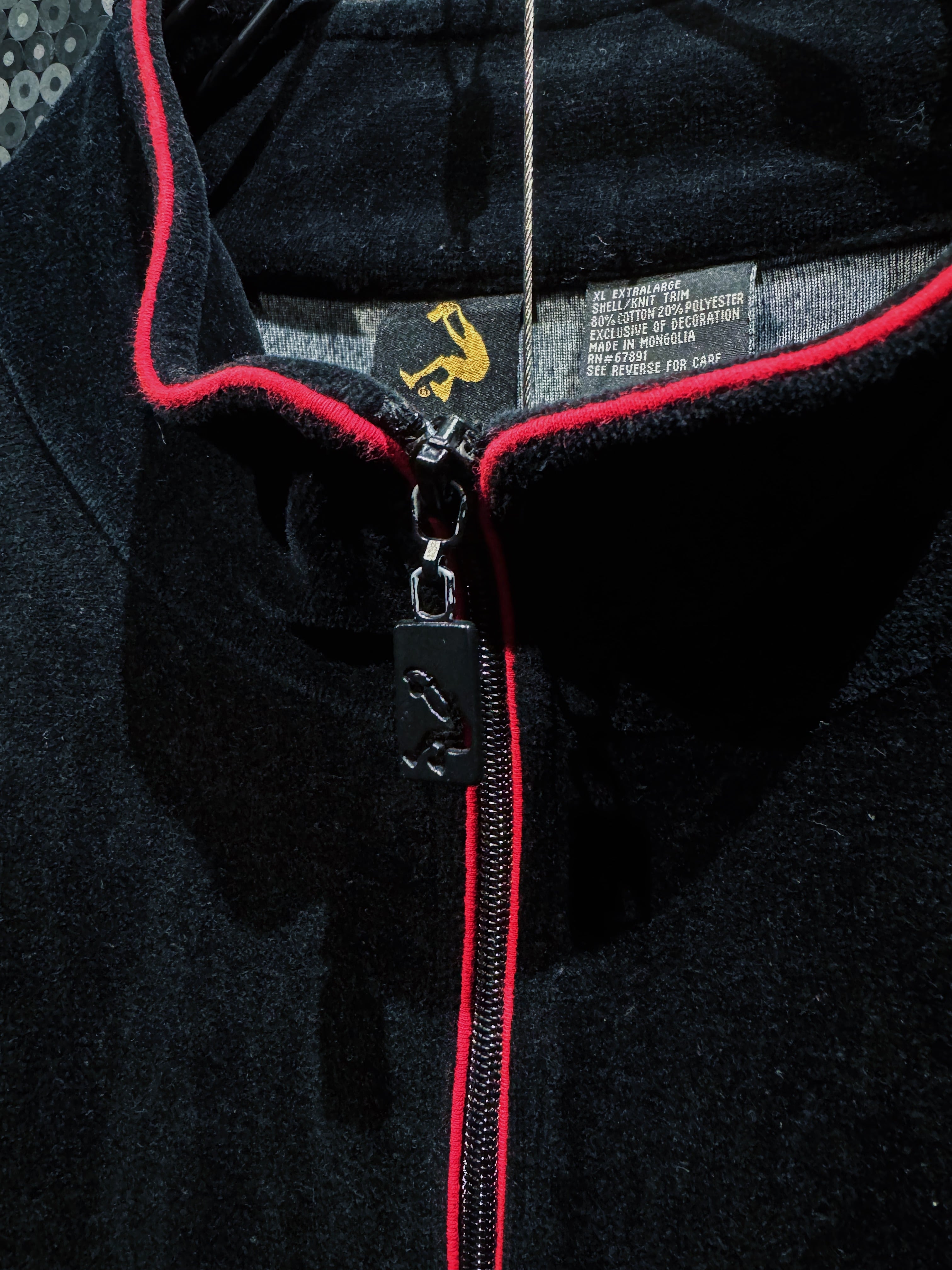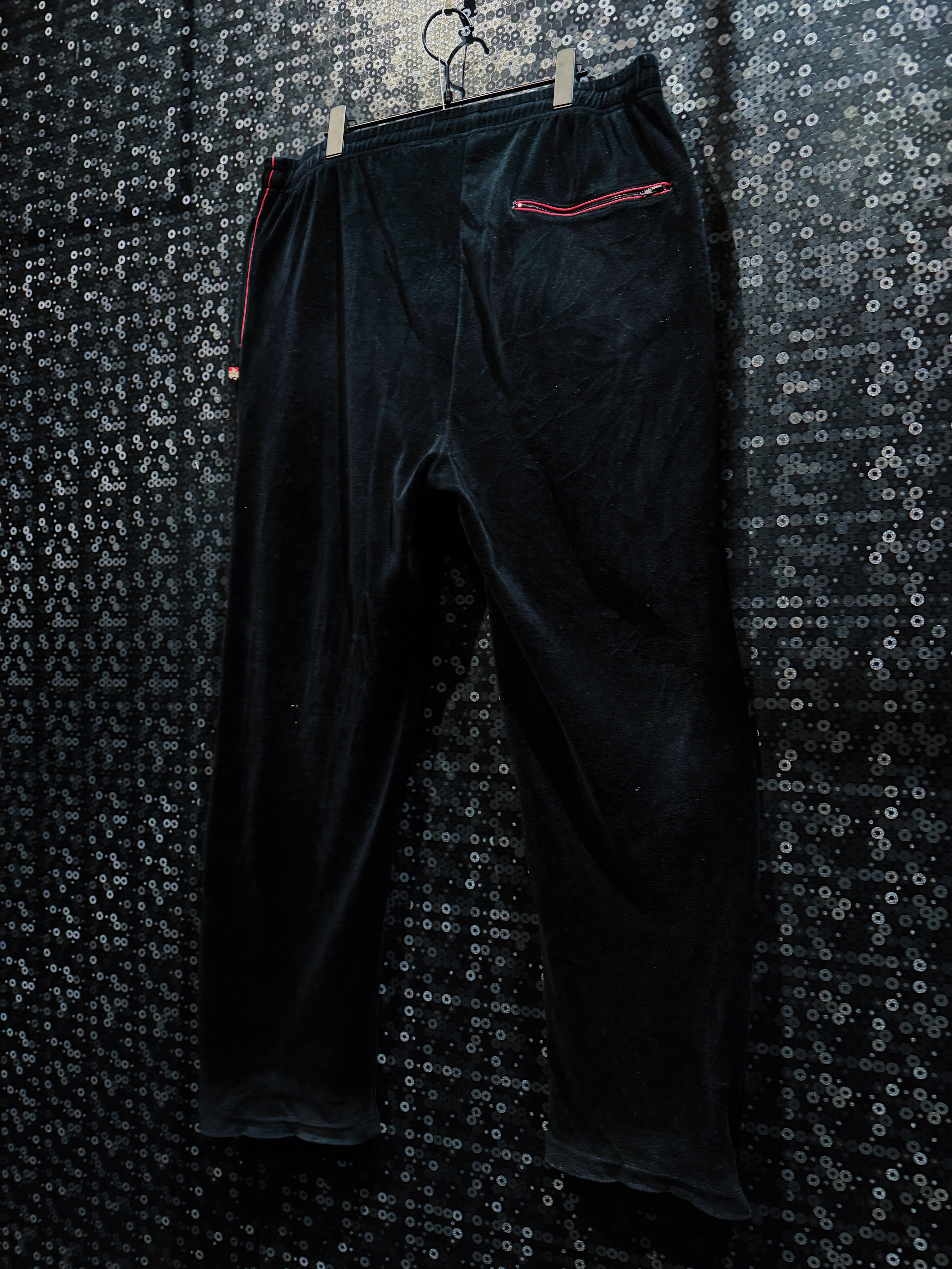 LAストリートの定番ブランド“PRO CLUB”による、重厚ブラックベロアのヴィンテージトラックセットアップ。肉厚で滑らかなベロアボディに、鋭く走るレッドパイピング。無骨さと色気を併せ持つ、まさに“黒の説得力”を体現した一着。