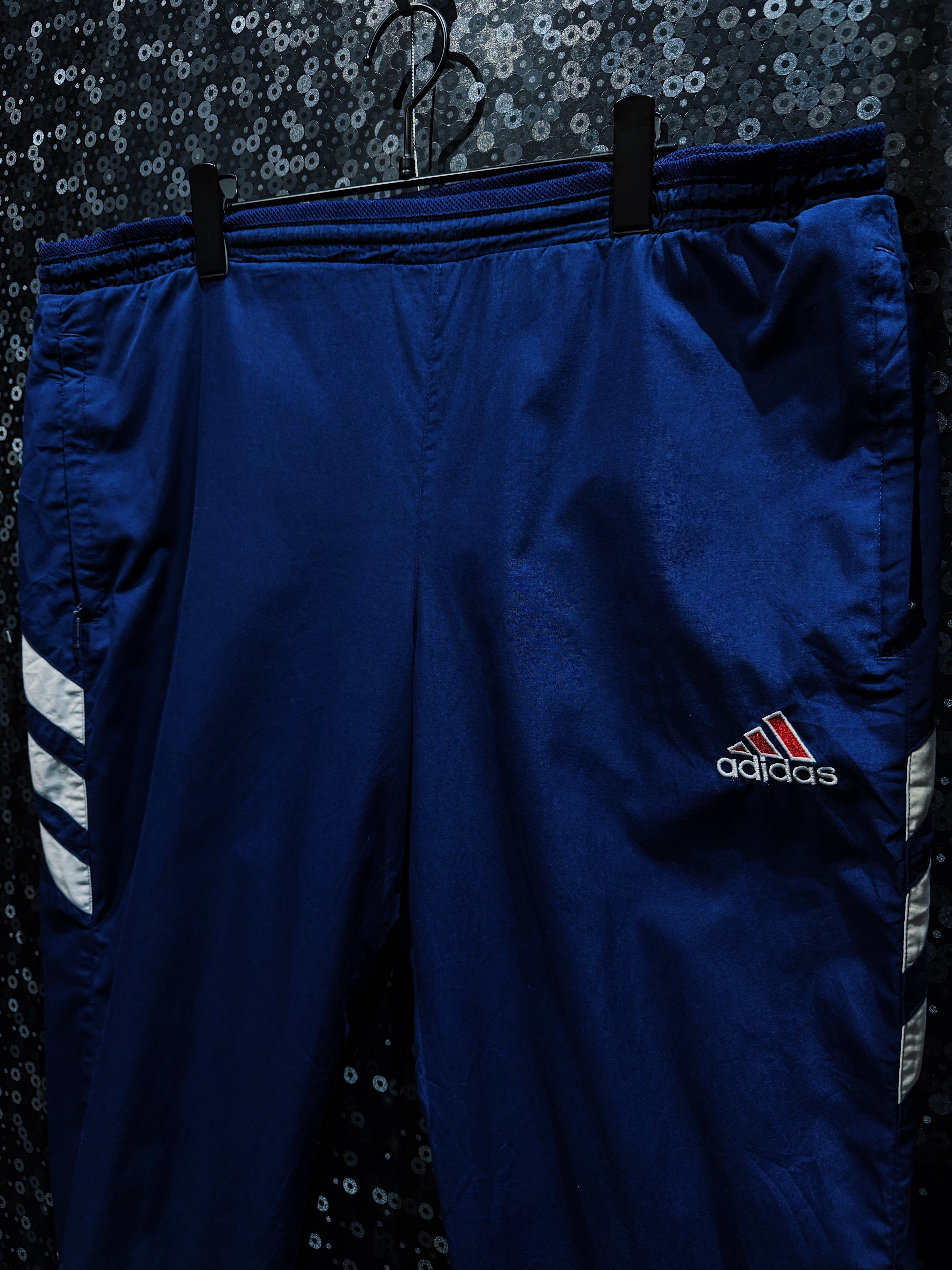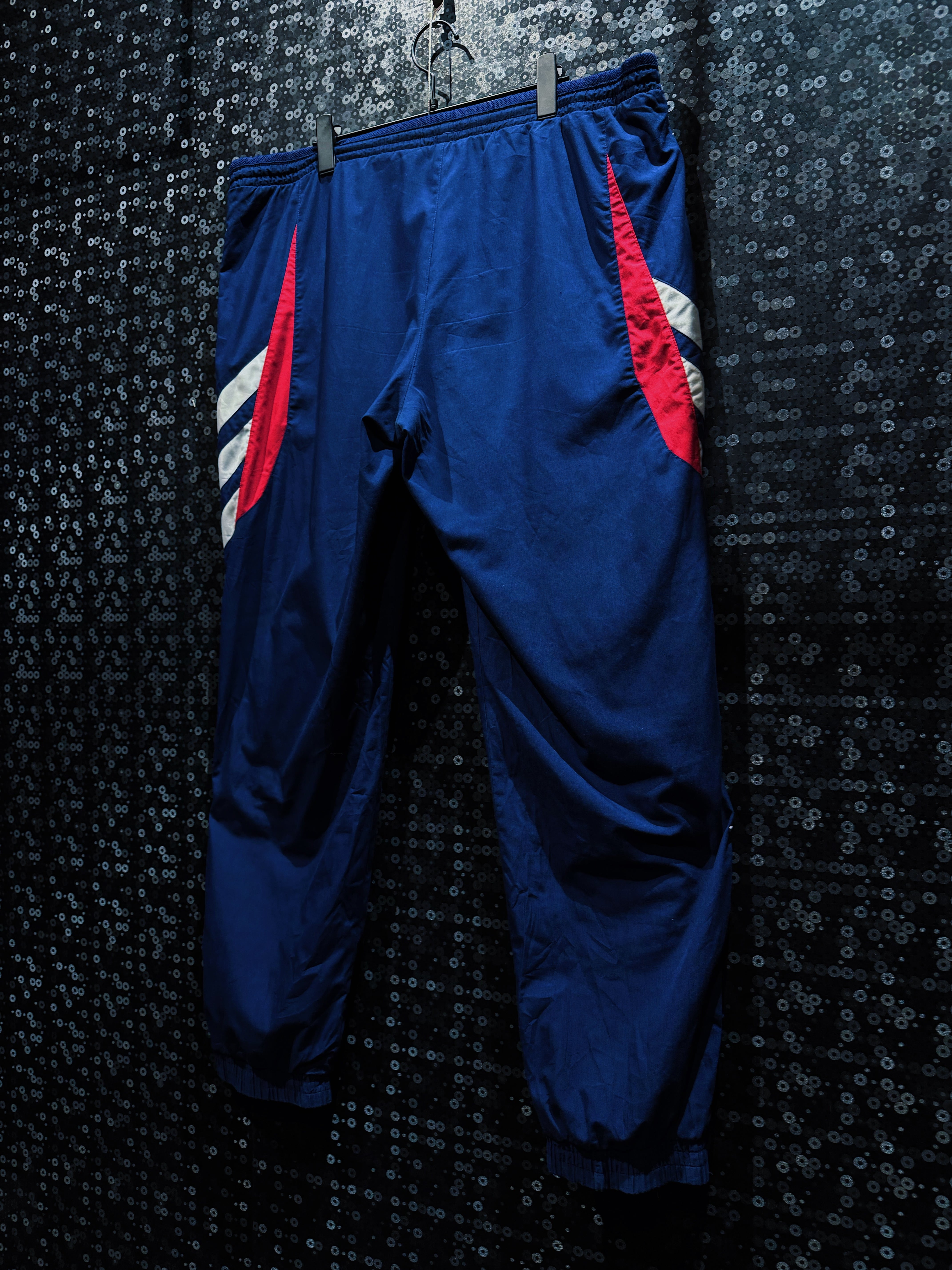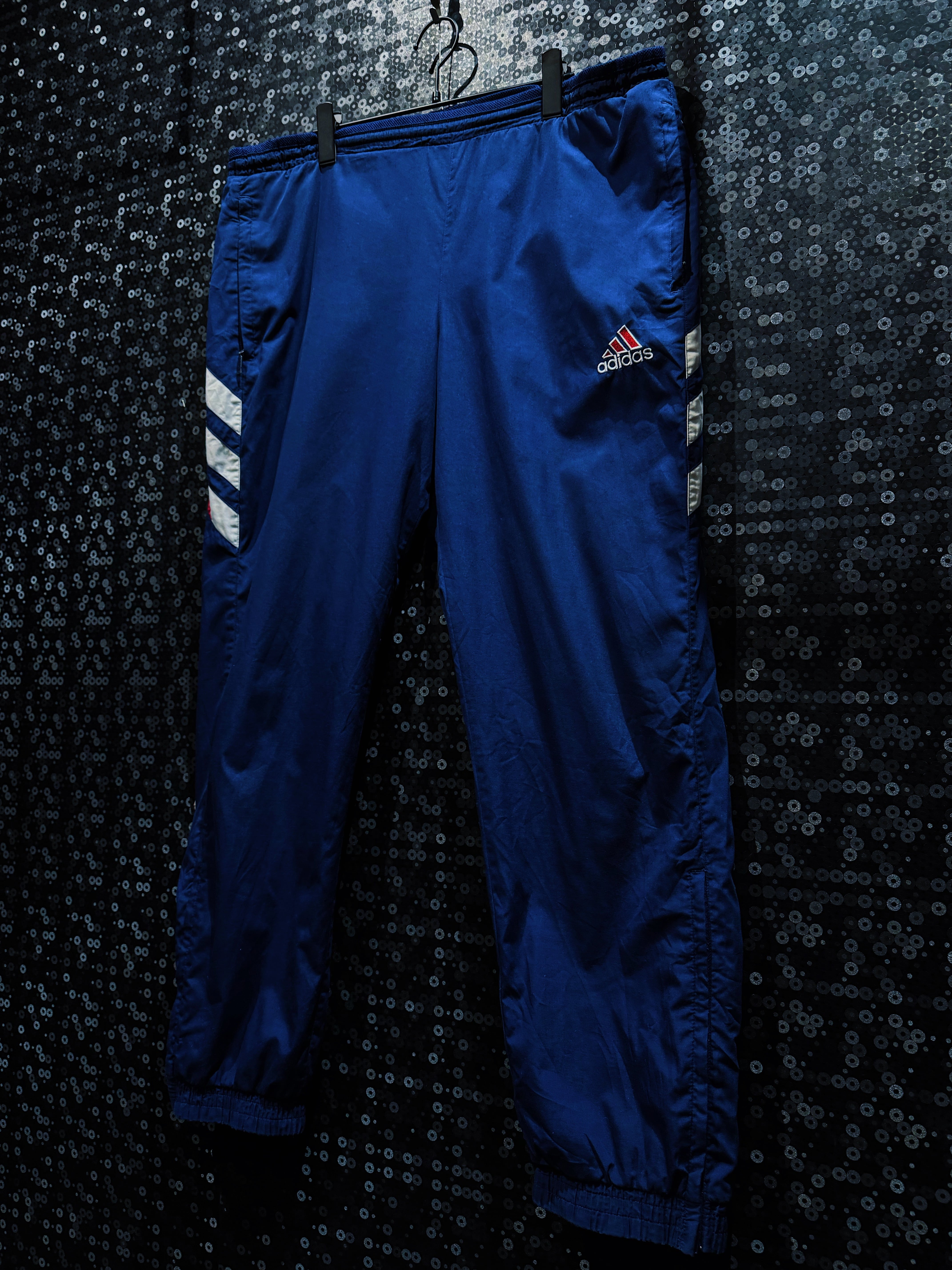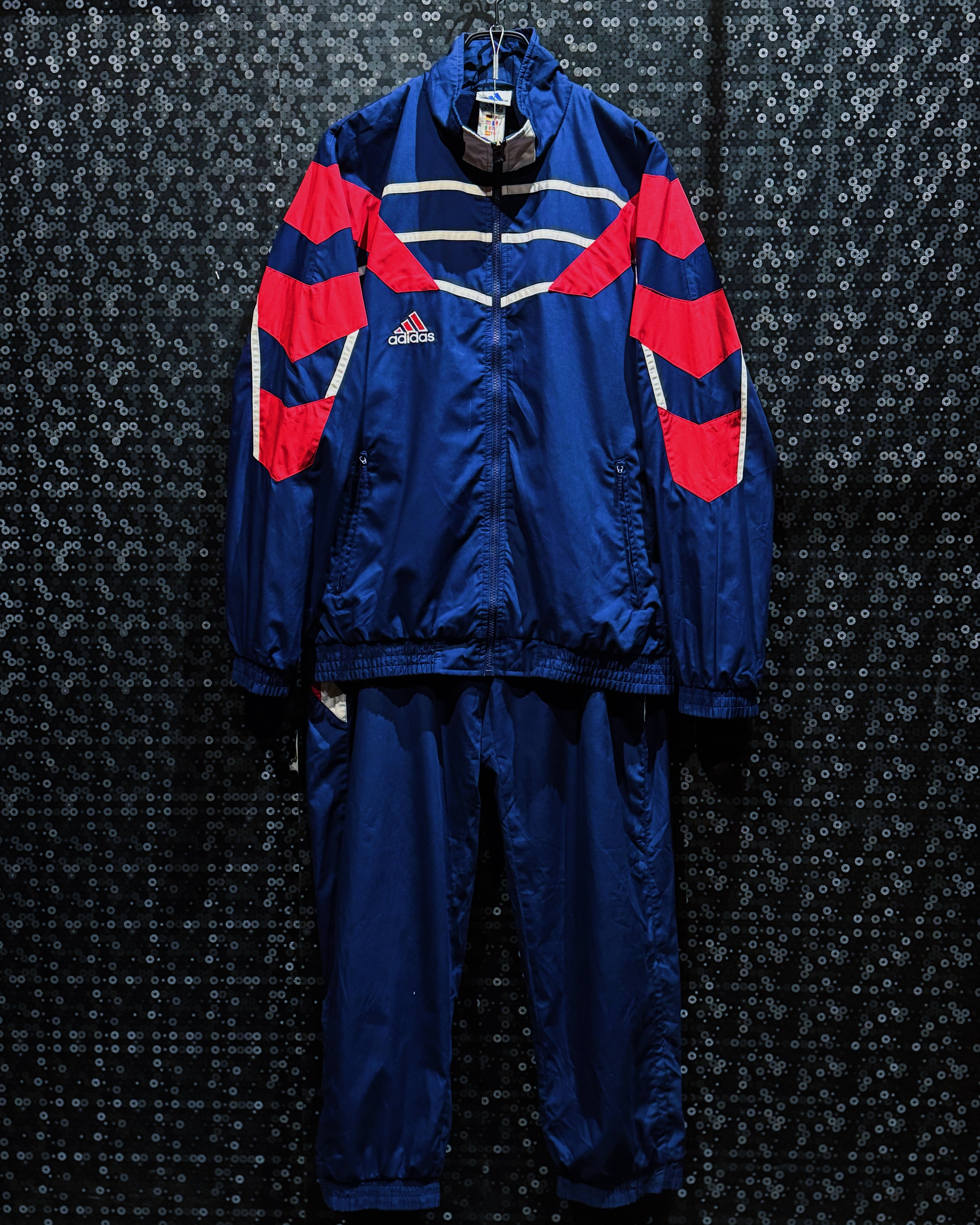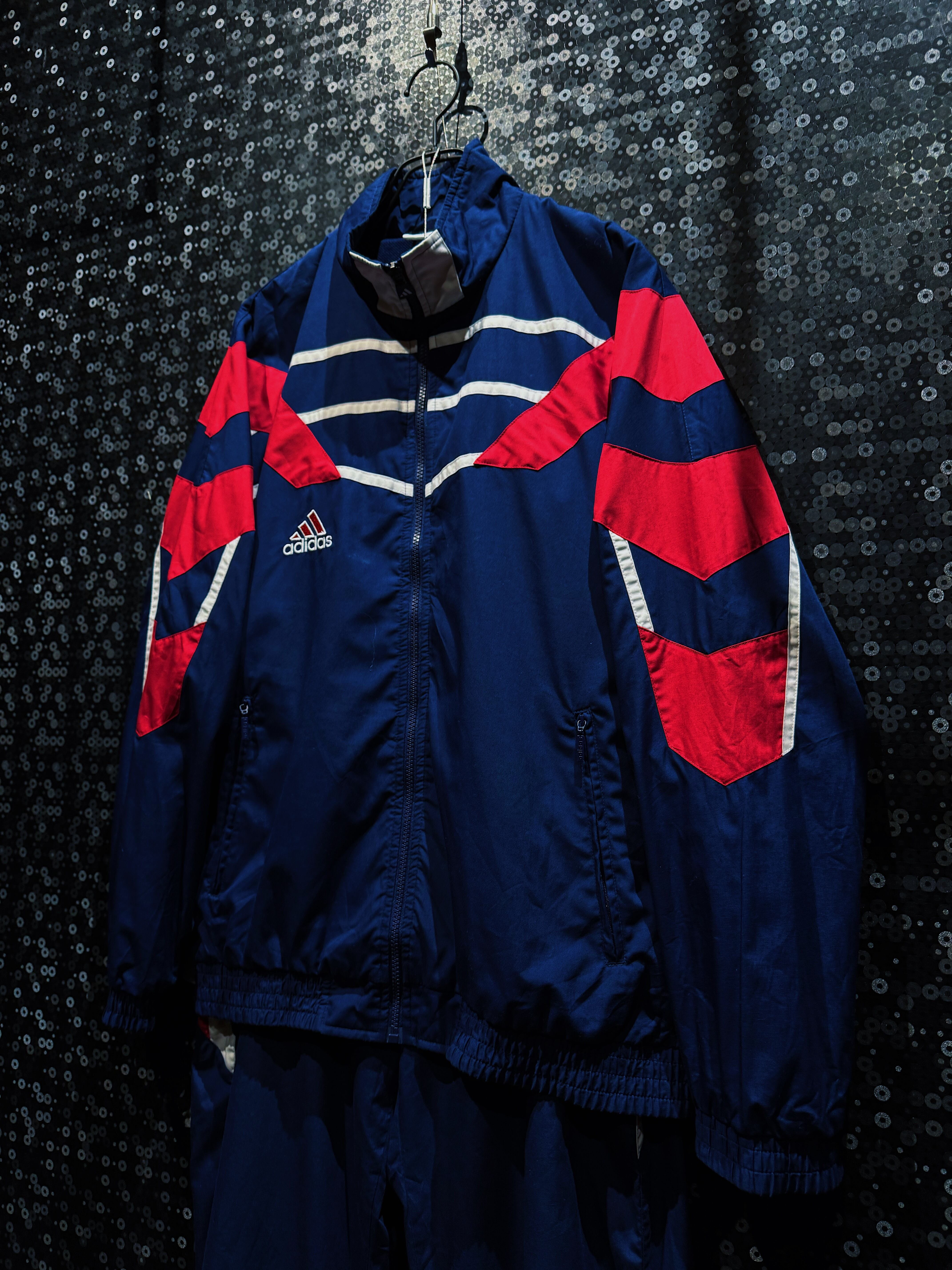 スポーツ由来の機能美と、現在のストリートにもハマるグラフィック感覚が共存した、adidasヴィンテージの王道ナイロンセット。