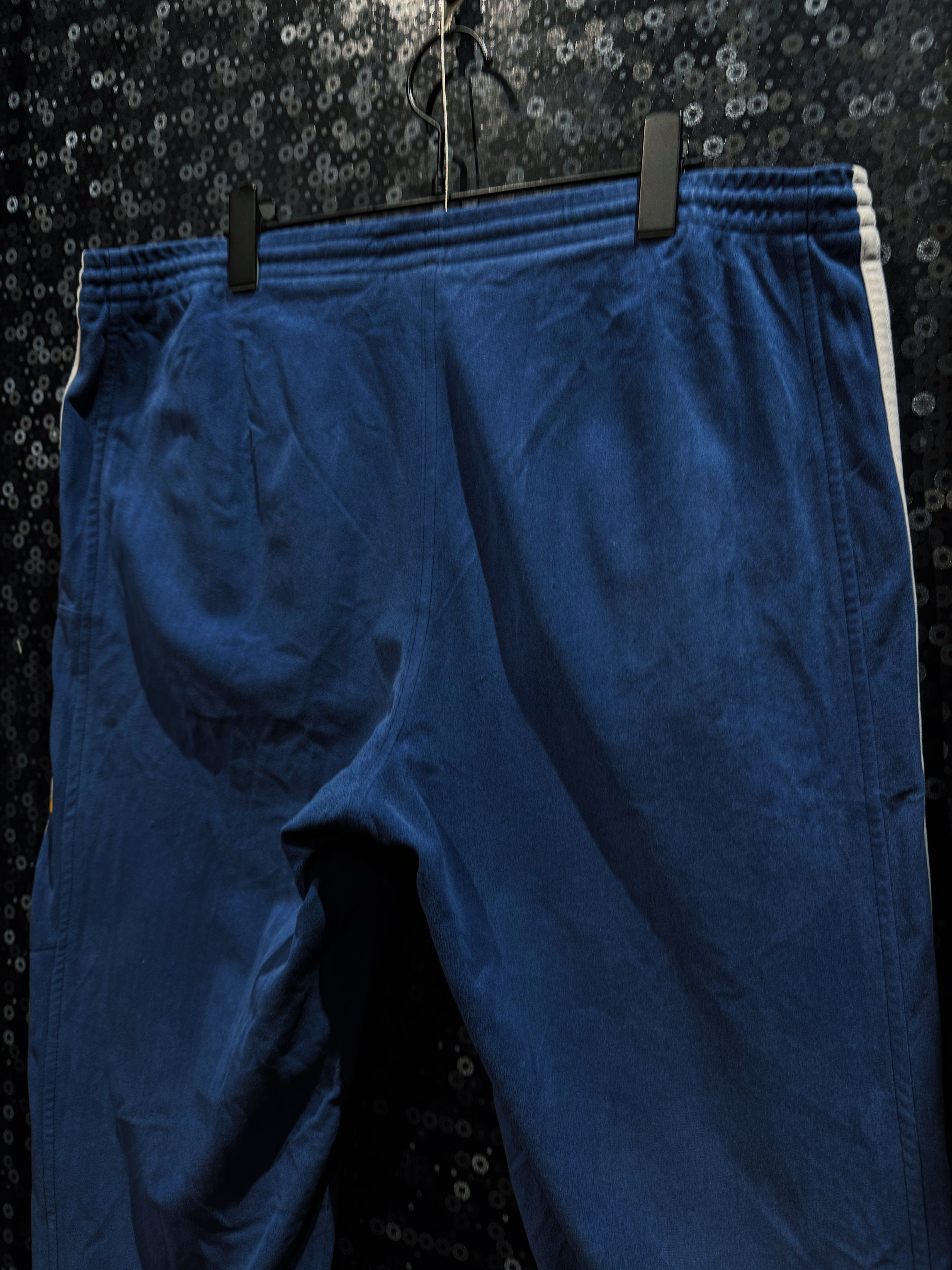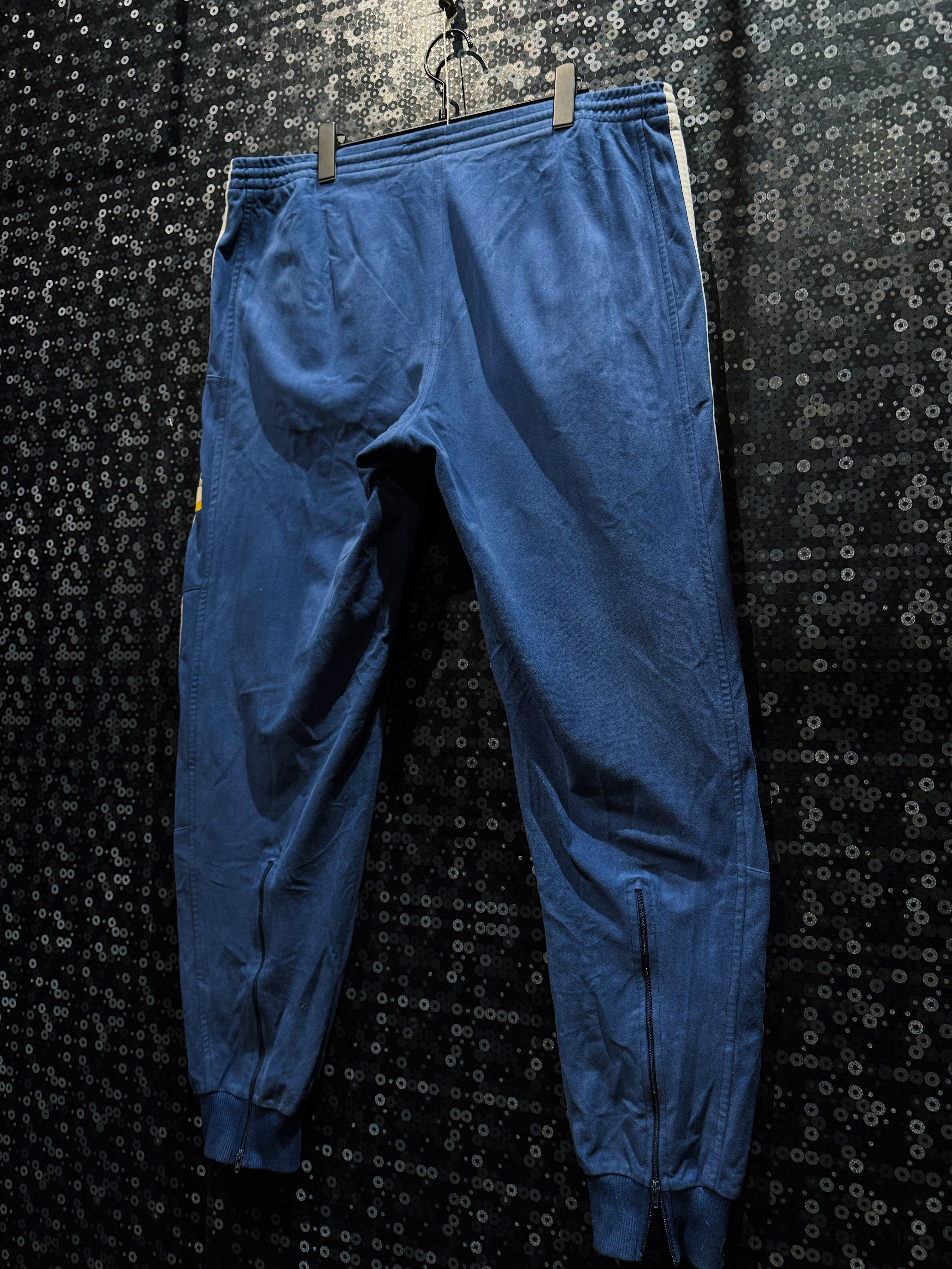 柔らかく起毛したベロア特有の光沢と、ホワイトのスリーストライプが生むコントラストは、当時のスポーツウェアでありながら現在のストリートにも強くフィットするバランス。上下で着た際の完成度は非常に高く、単体使いでも主役、セットアップでは圧倒的な存在感を放つ。