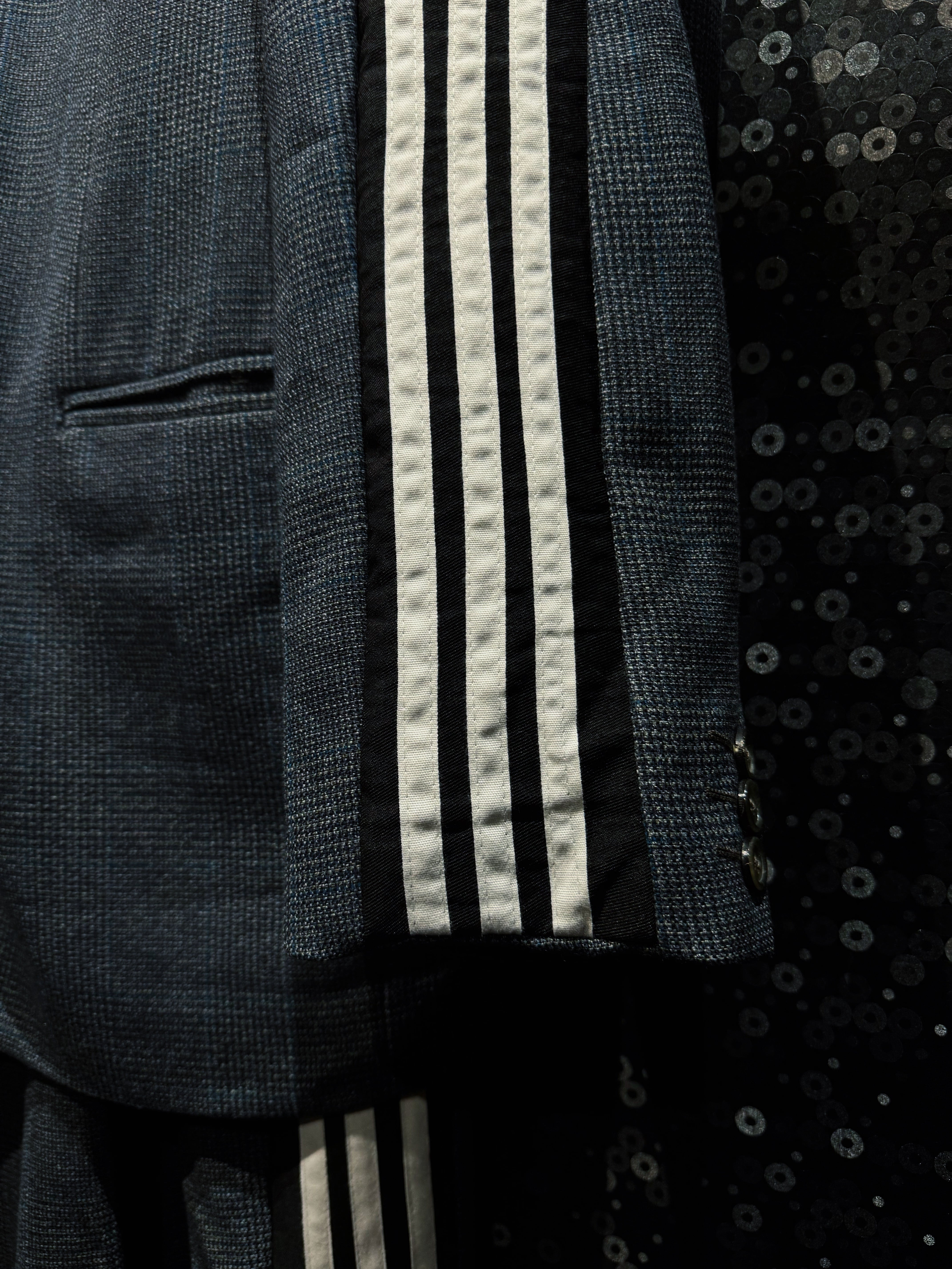 モードでドレッシーな極上のセットアップにシティーポップでハイストリートなスリーストライプや上質なトラックテキスタイルを"融合"させてハイモード×ハイストリートなアイテムに。