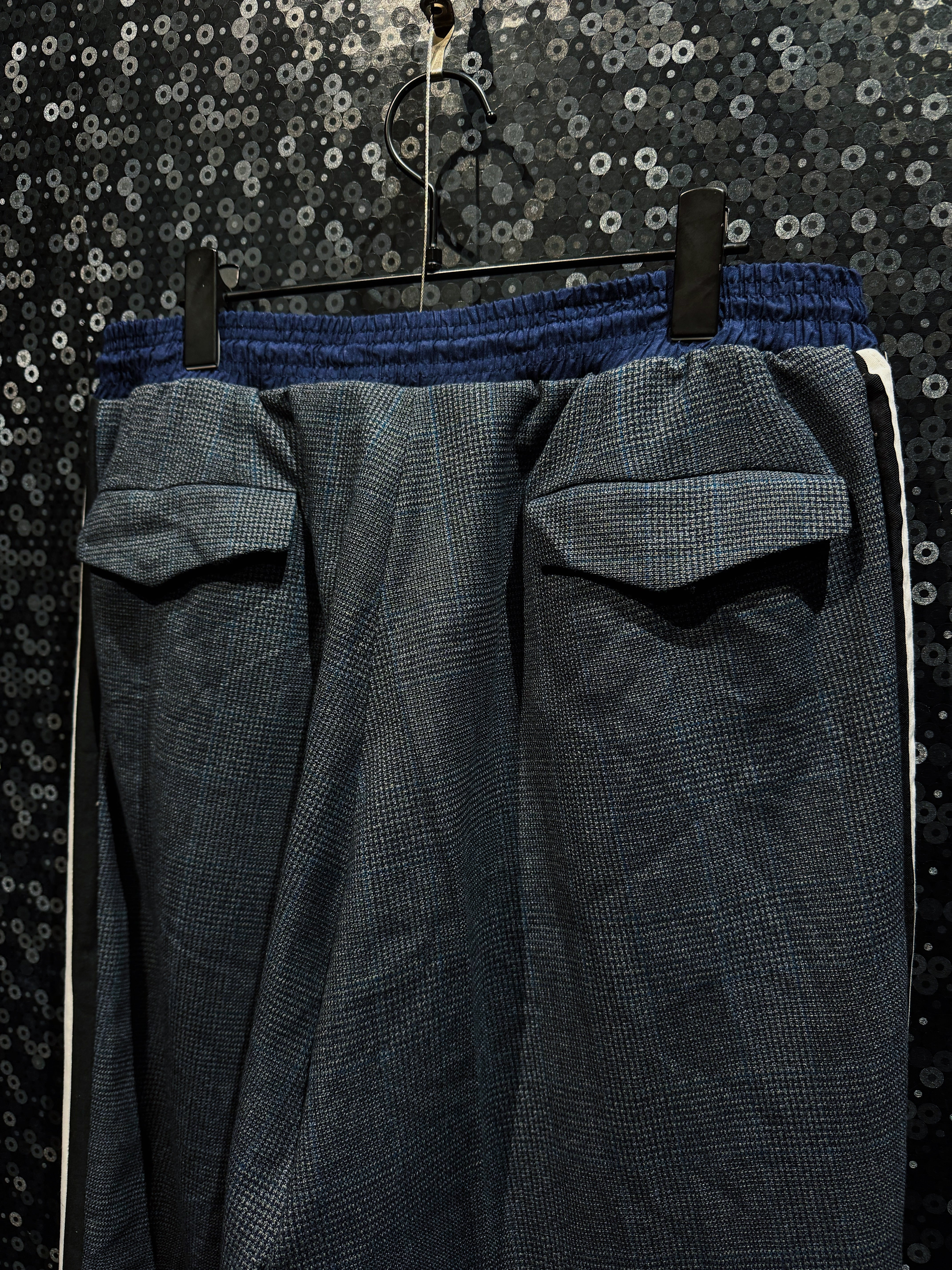 パンツはドレッシーさや、極上のラグジュアリーシルエットゆえにスラックスベースで既存のトラックパンツなどより軽やかでシルエットは最高級、スニーカー、ドレスシューズなどを合わせてもなお雰囲気漂うサイジング。ベルトではなくウエストゴムタイプで至高の履き心地。