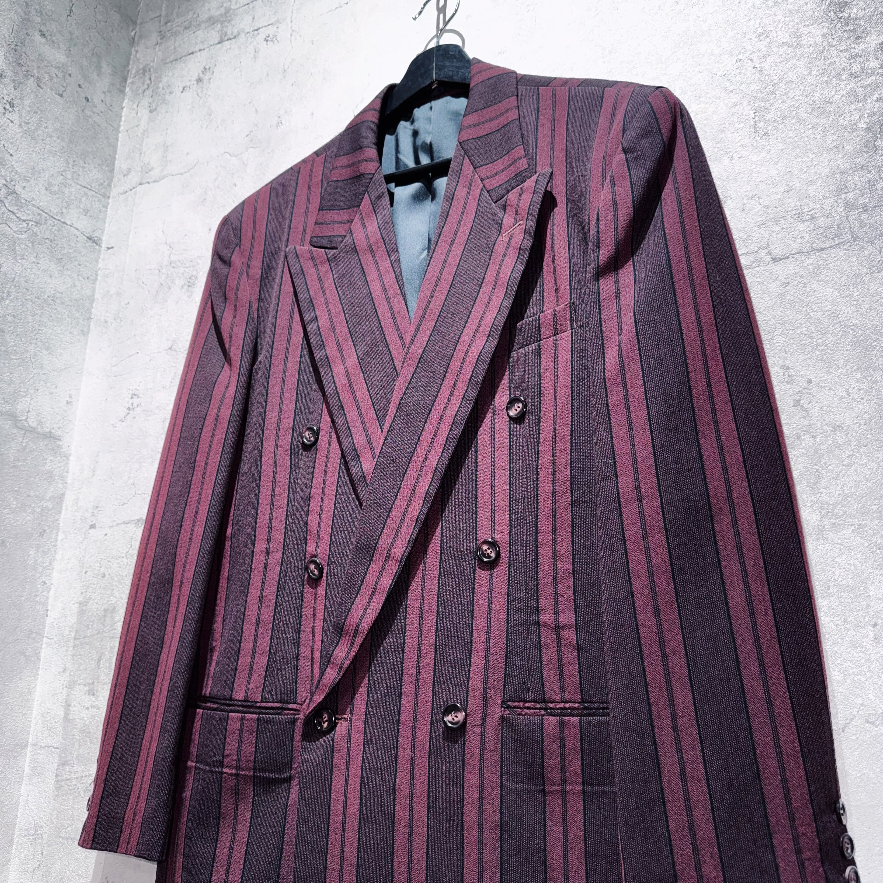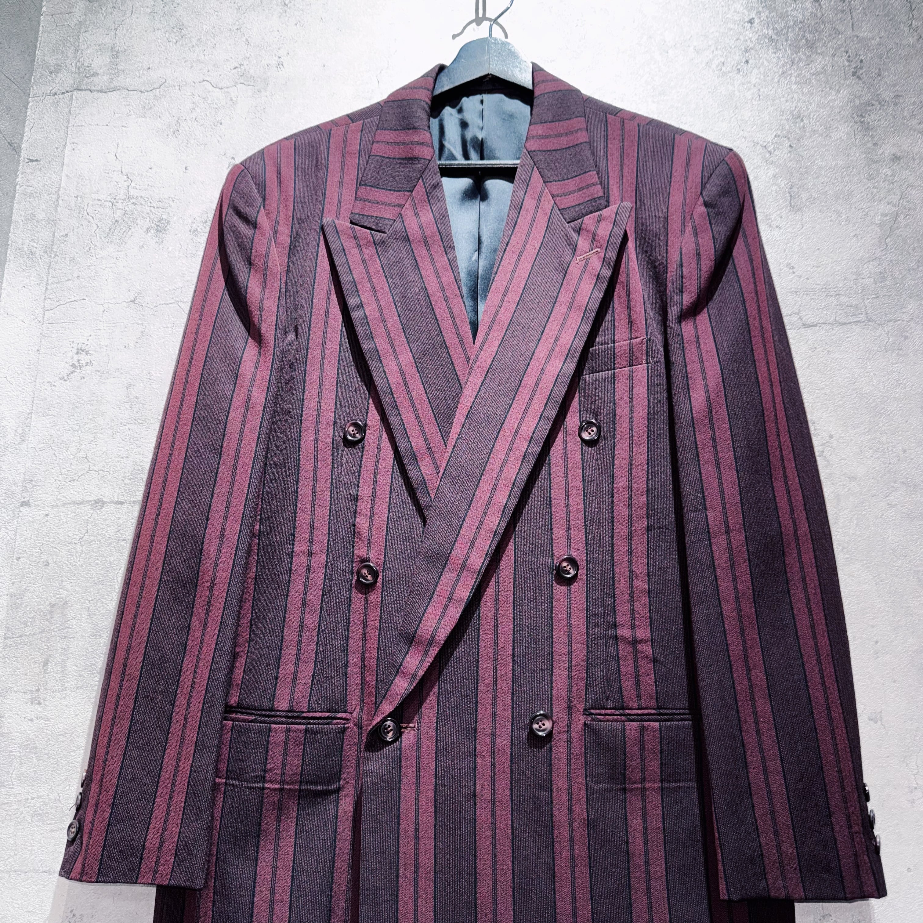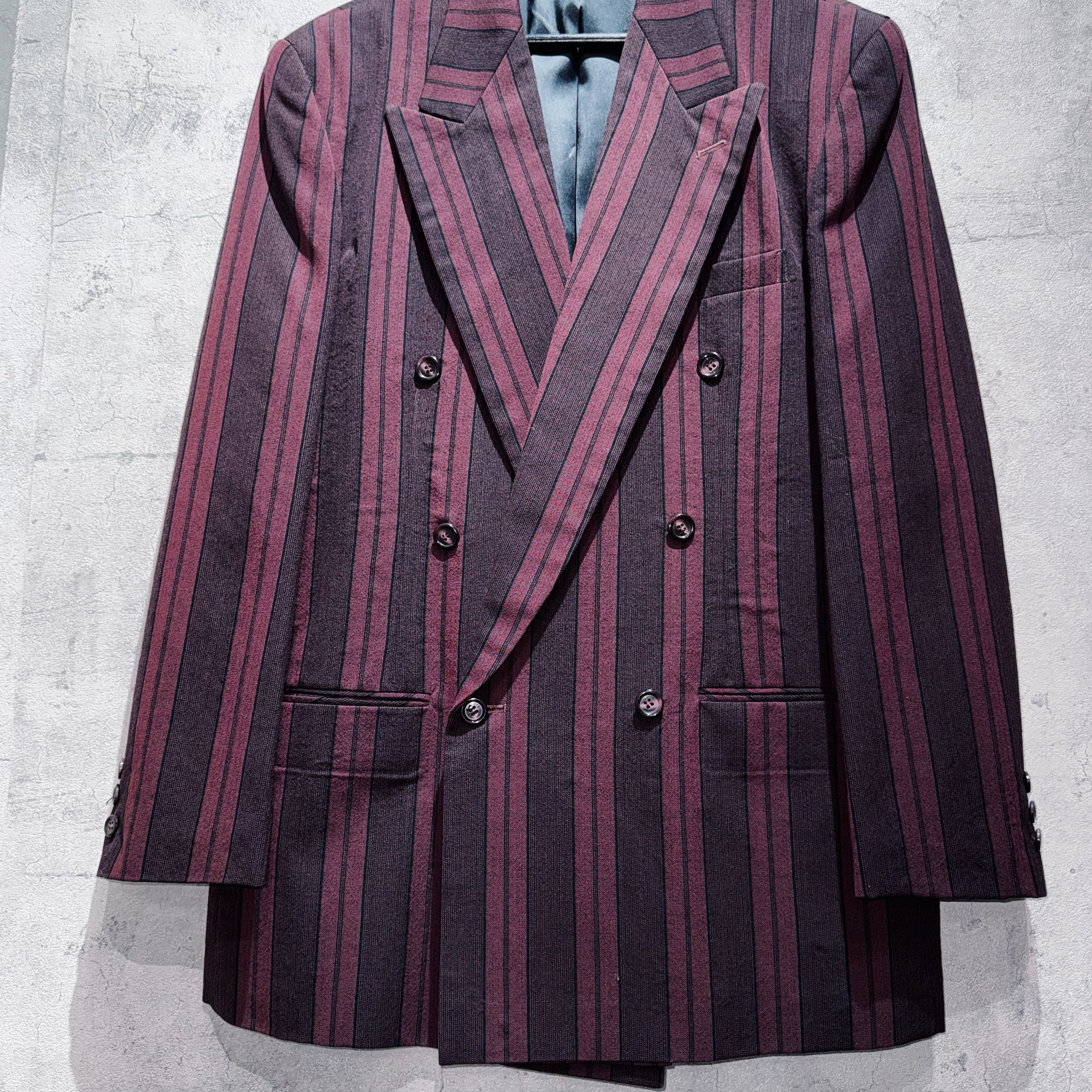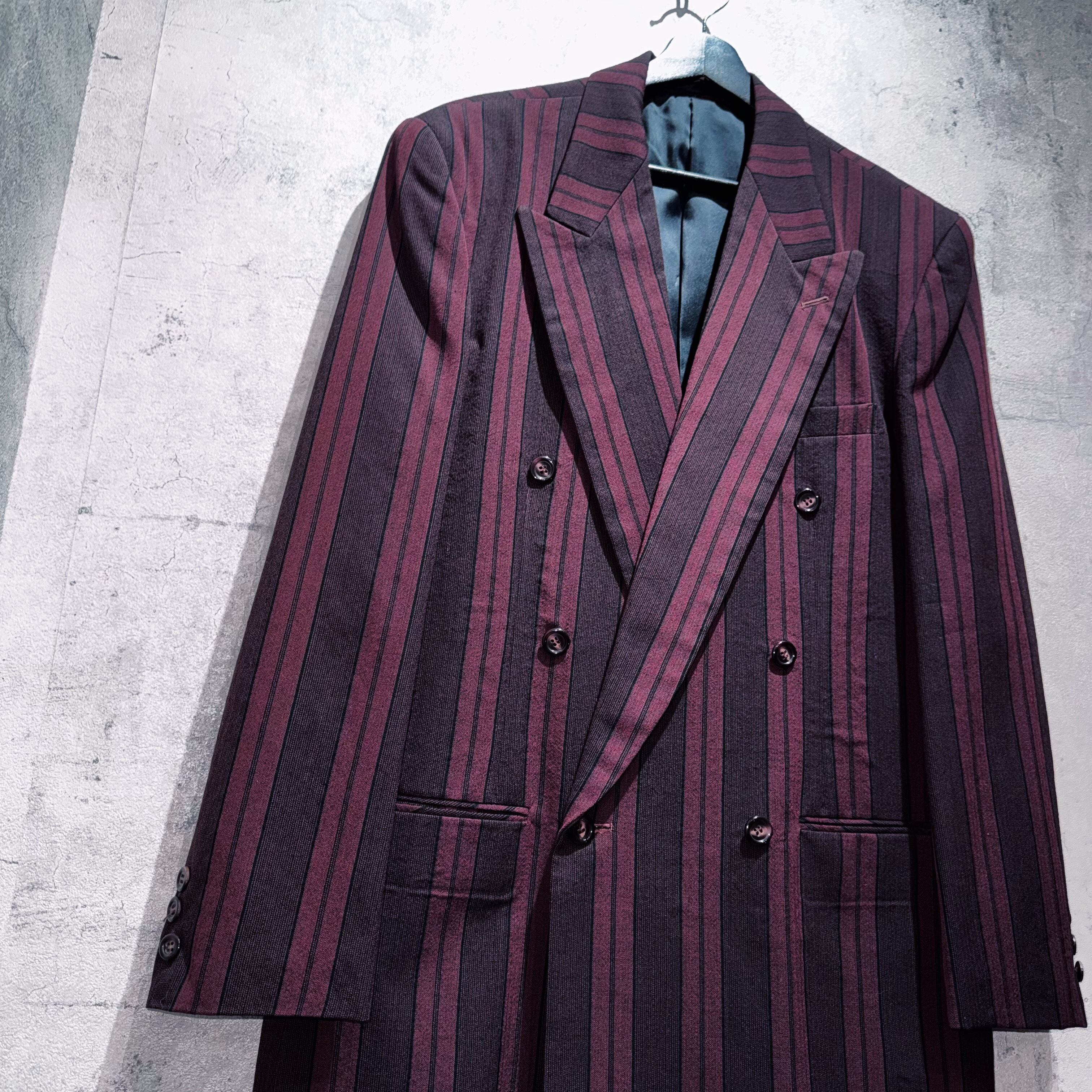 90年代バーガンディカラーシックスボタンダブルブレストストライプセットアップ。