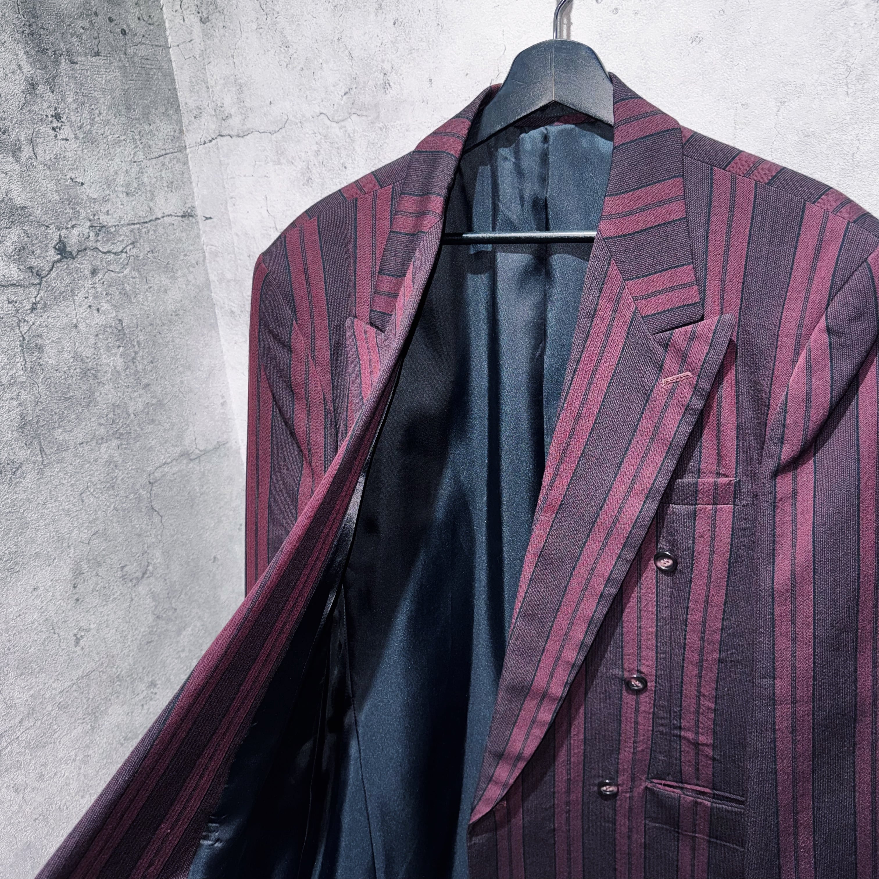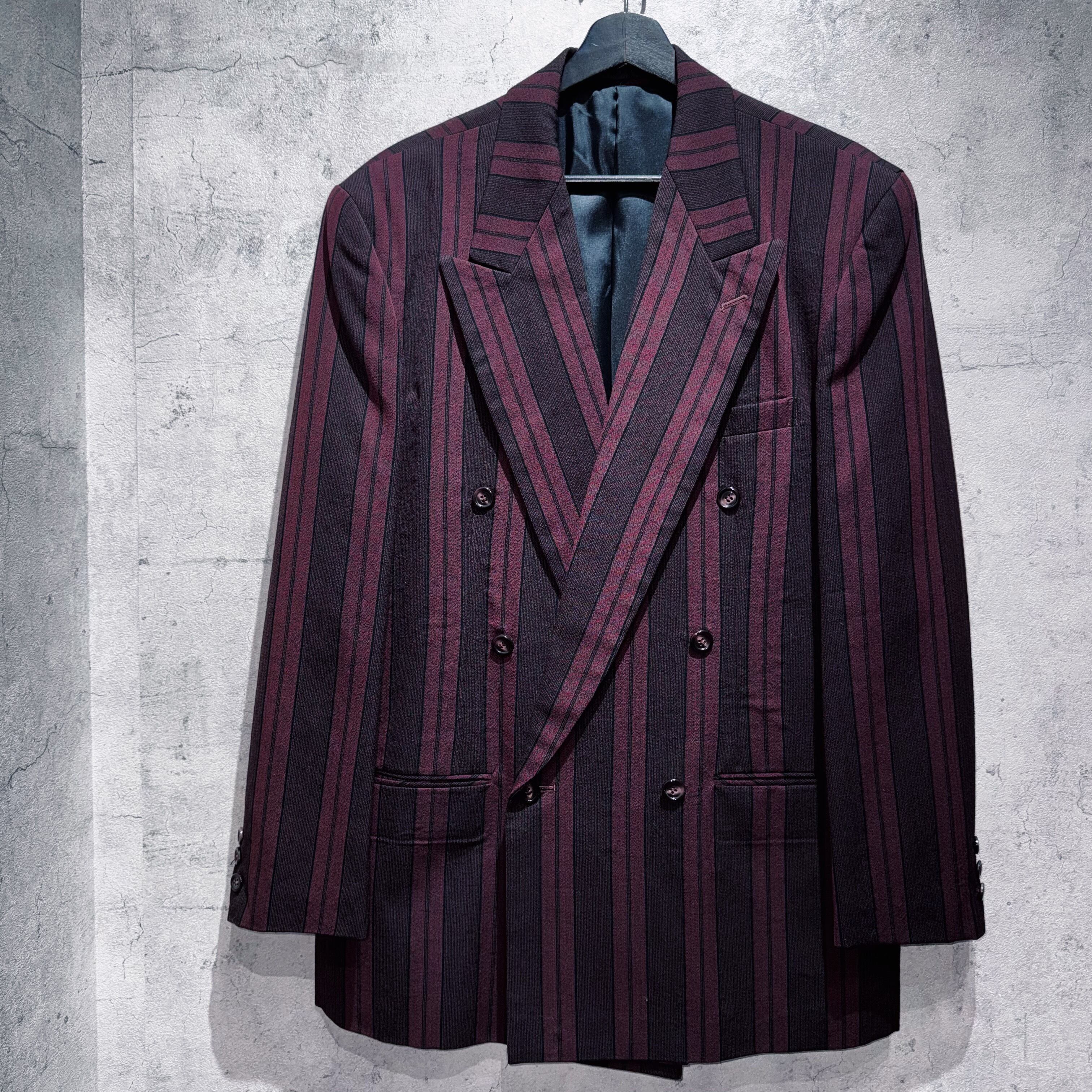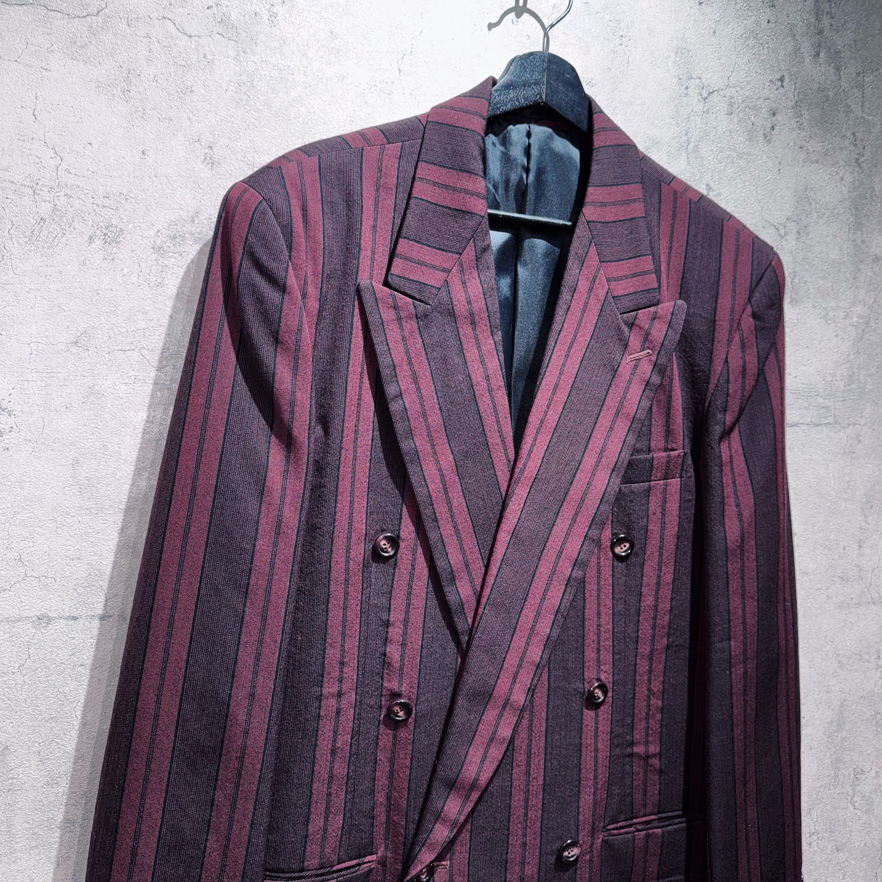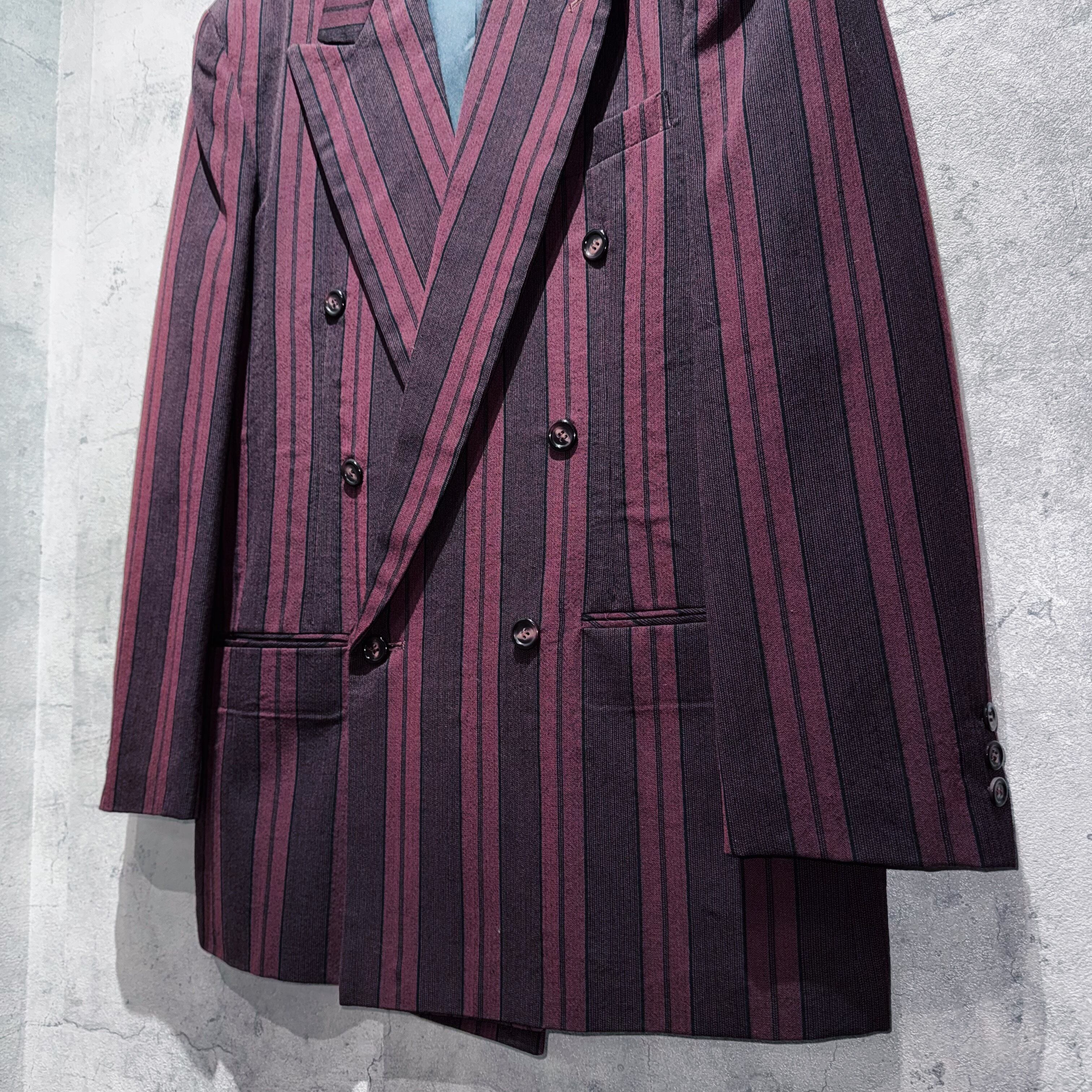 90年代バーガンディカラーシックスボタンダブルブレストストライプセットアップ。