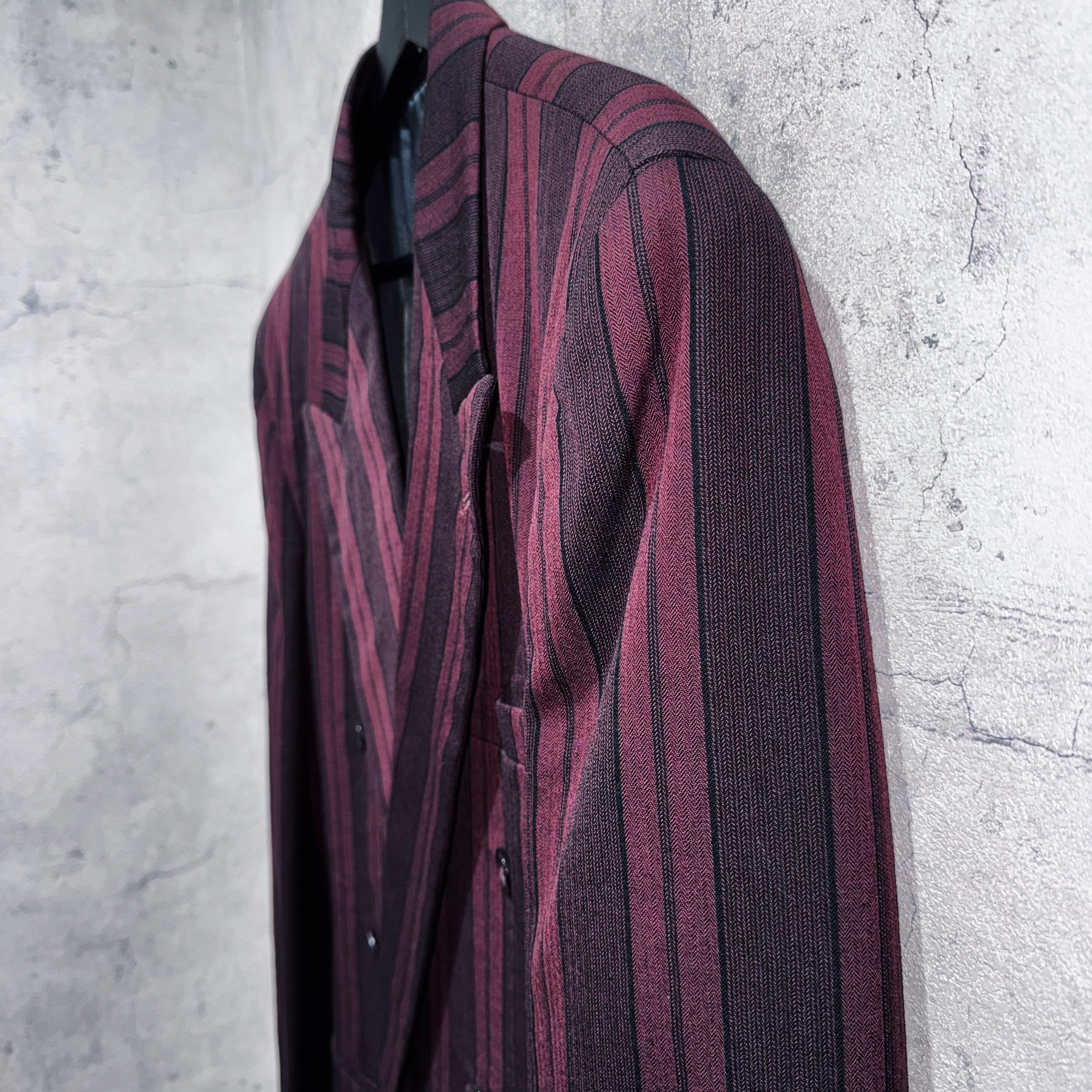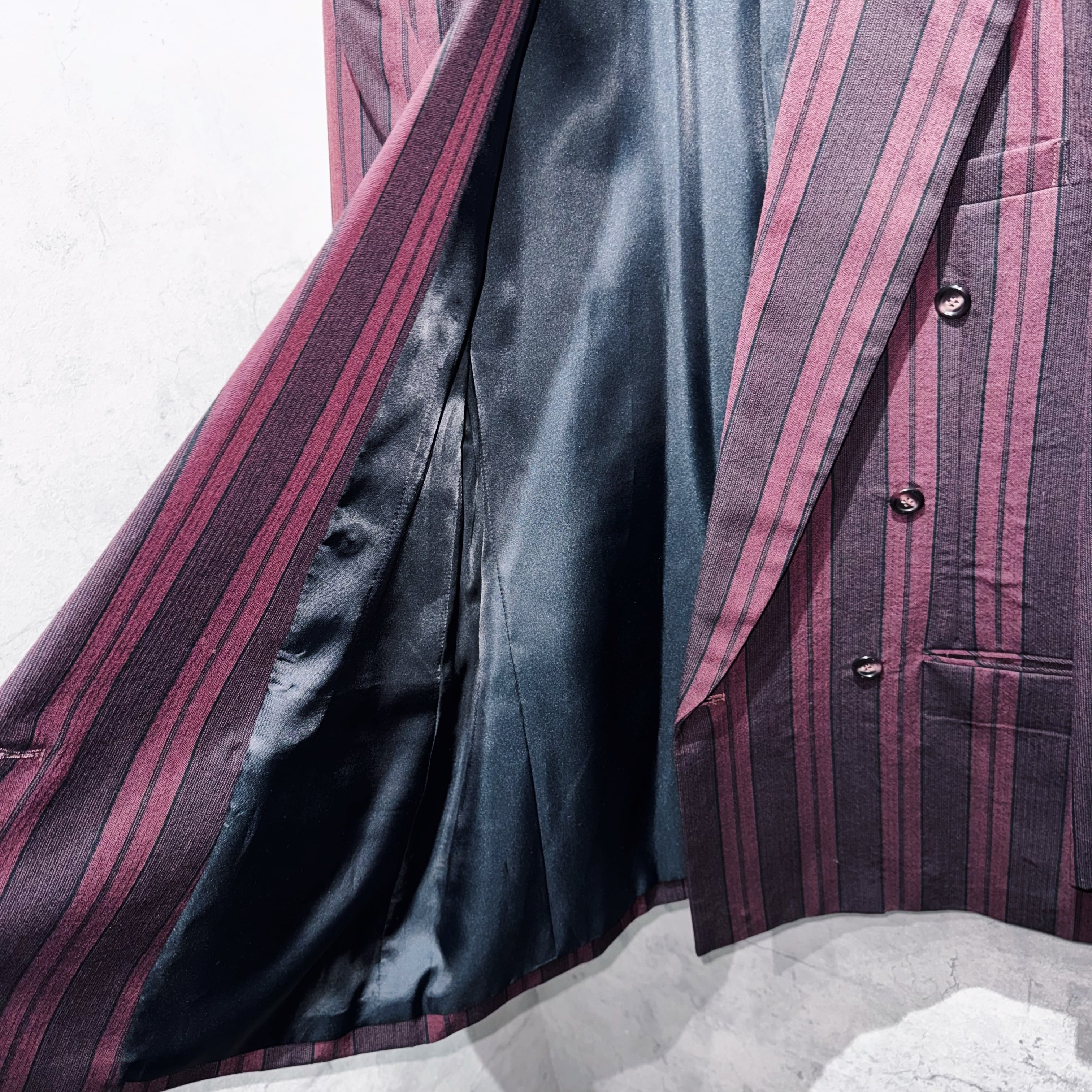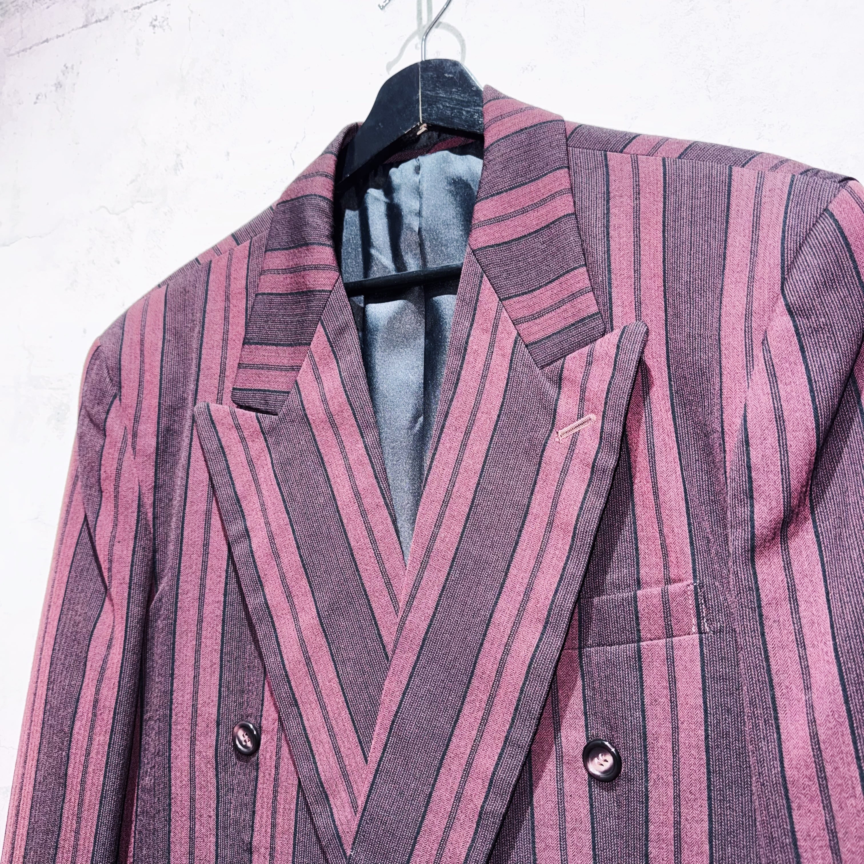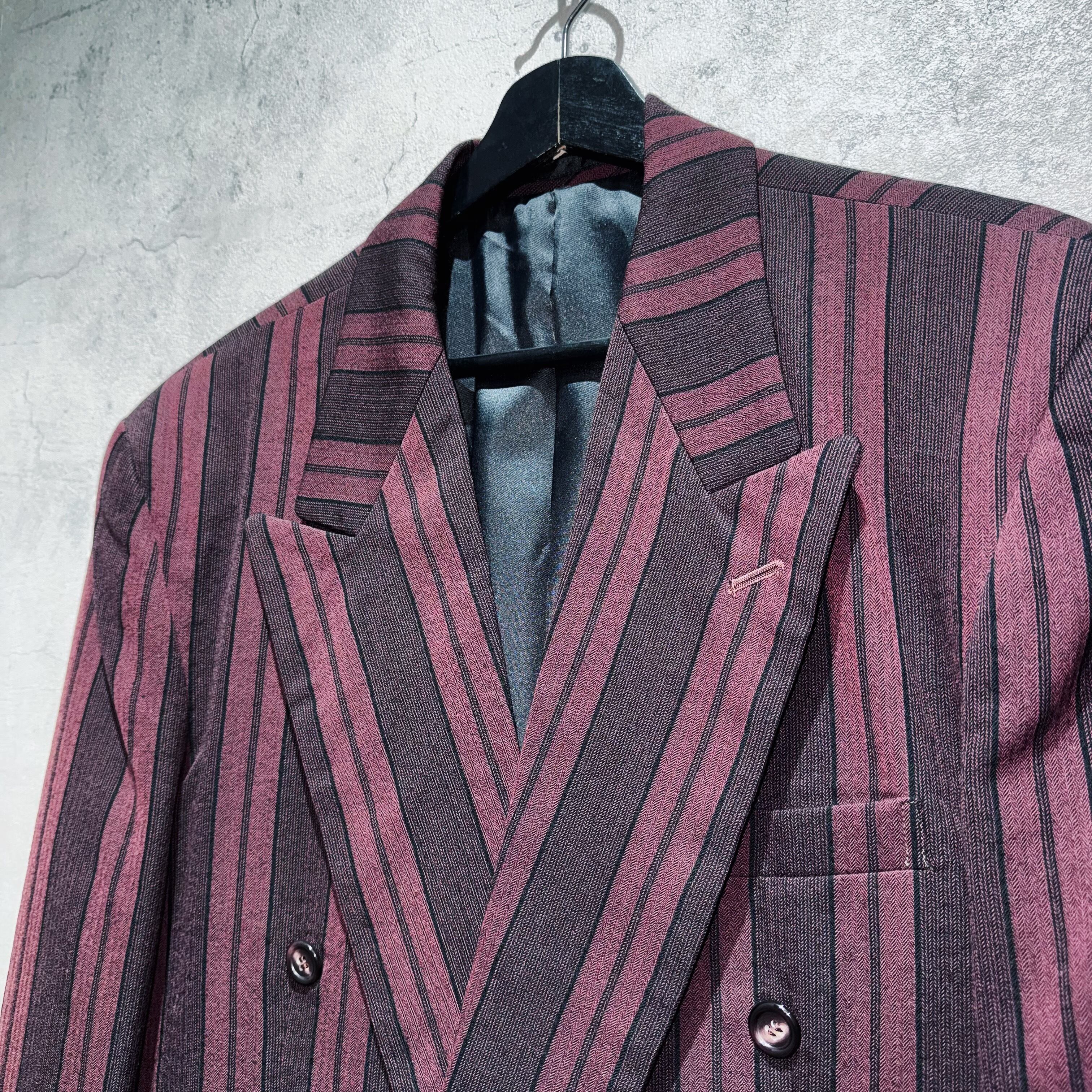90年代バーガンディカラーシックスボタンダブルブレストストライプセットアップ。