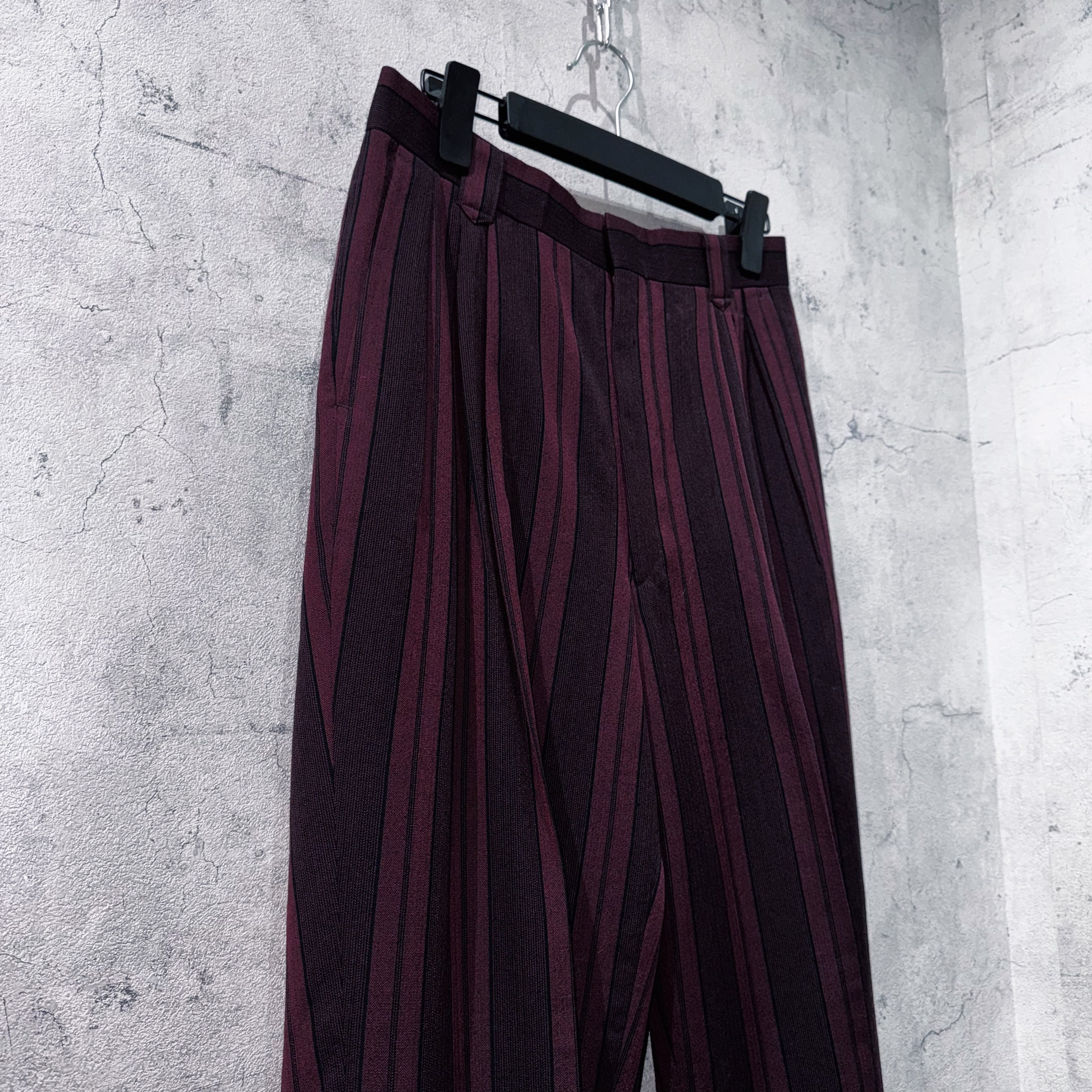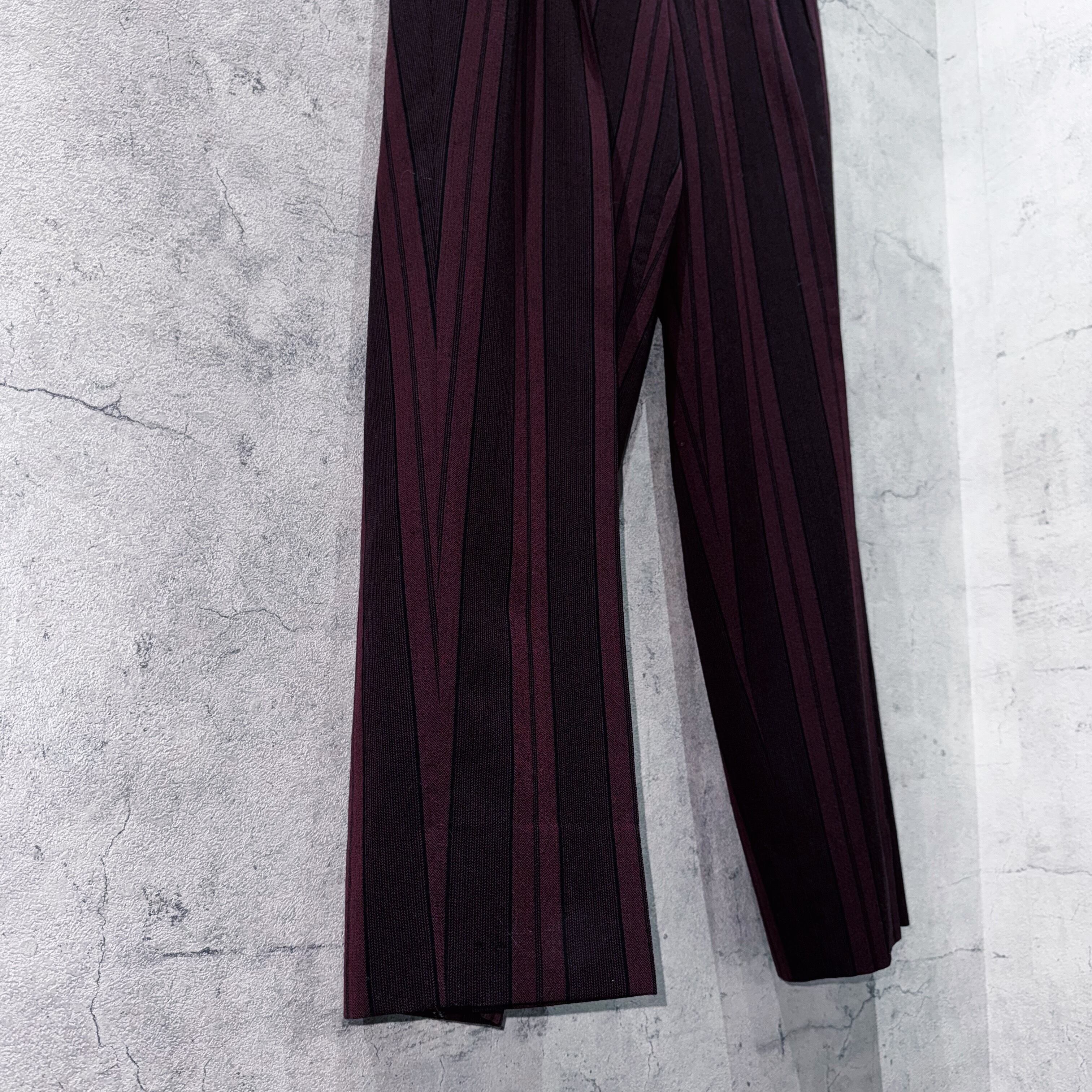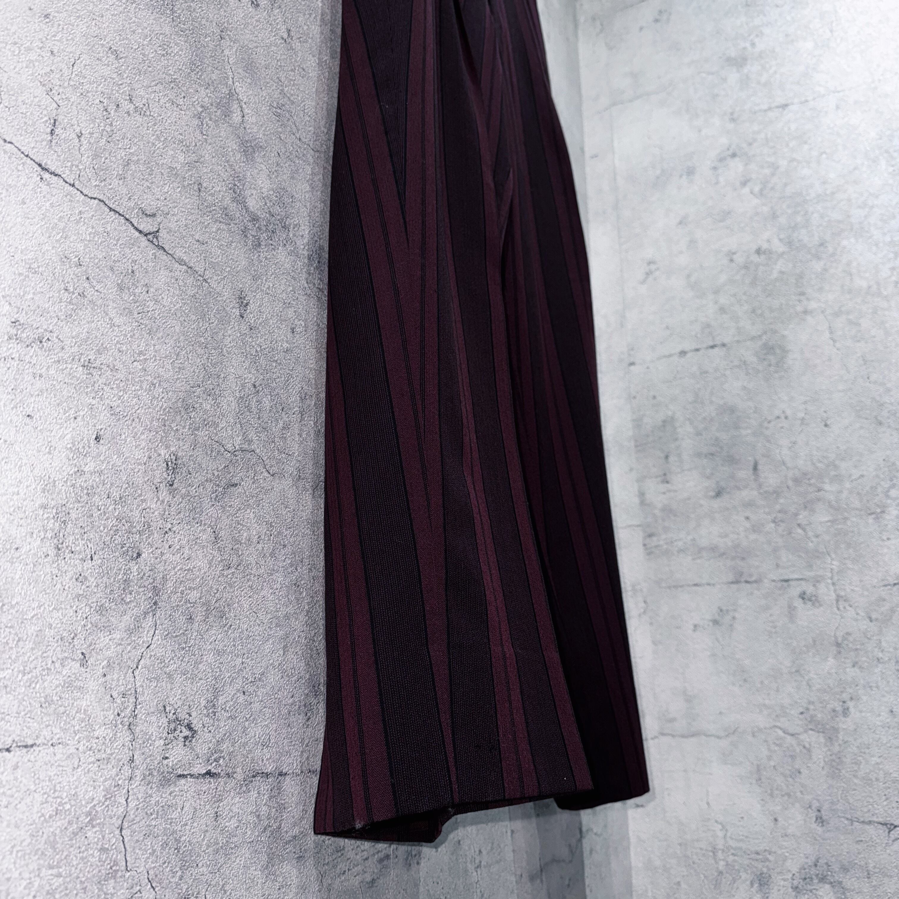 深みのあるバーガンディをベースに、縦に走るストライプが色気と品格を同時に演出。