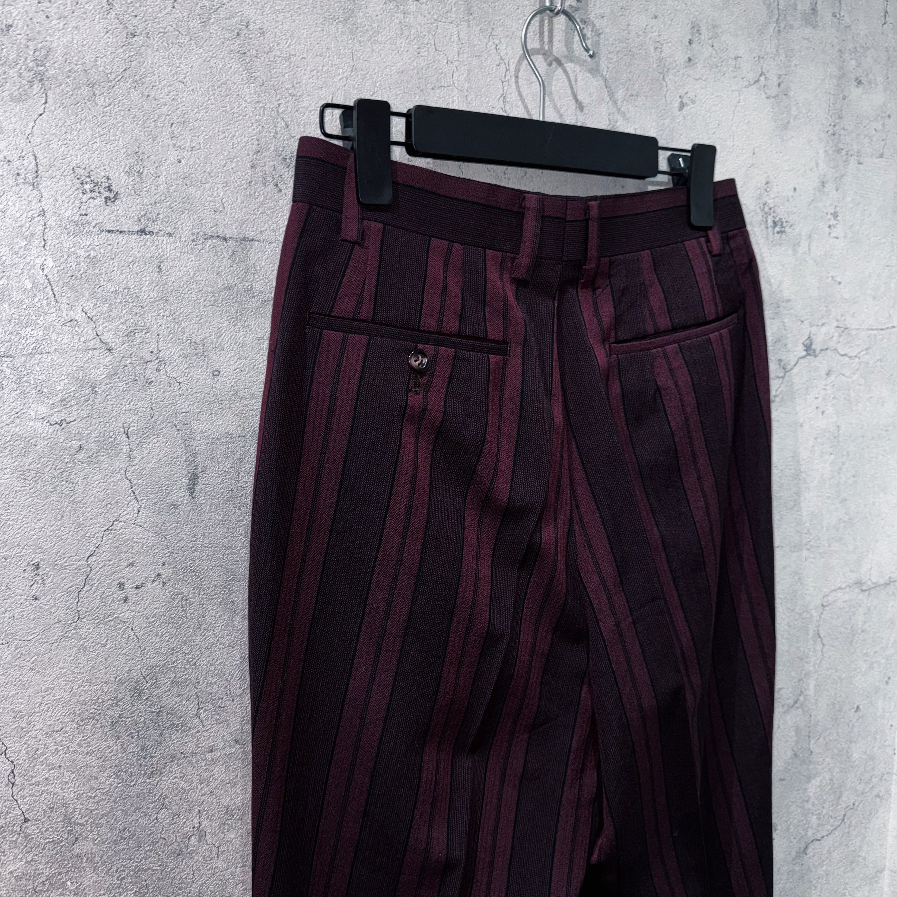 パンツはセンタープレス入りの美しい筒状シルエット。ストライプの縦ライン効果によりスタイルアップも抜群。セットで着用すれば圧倒的な存在感を放ちます。