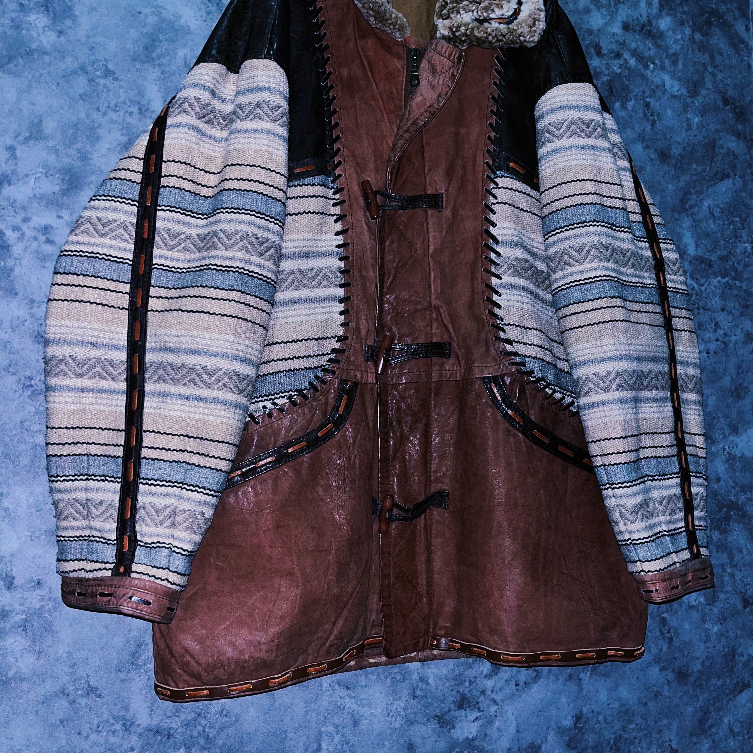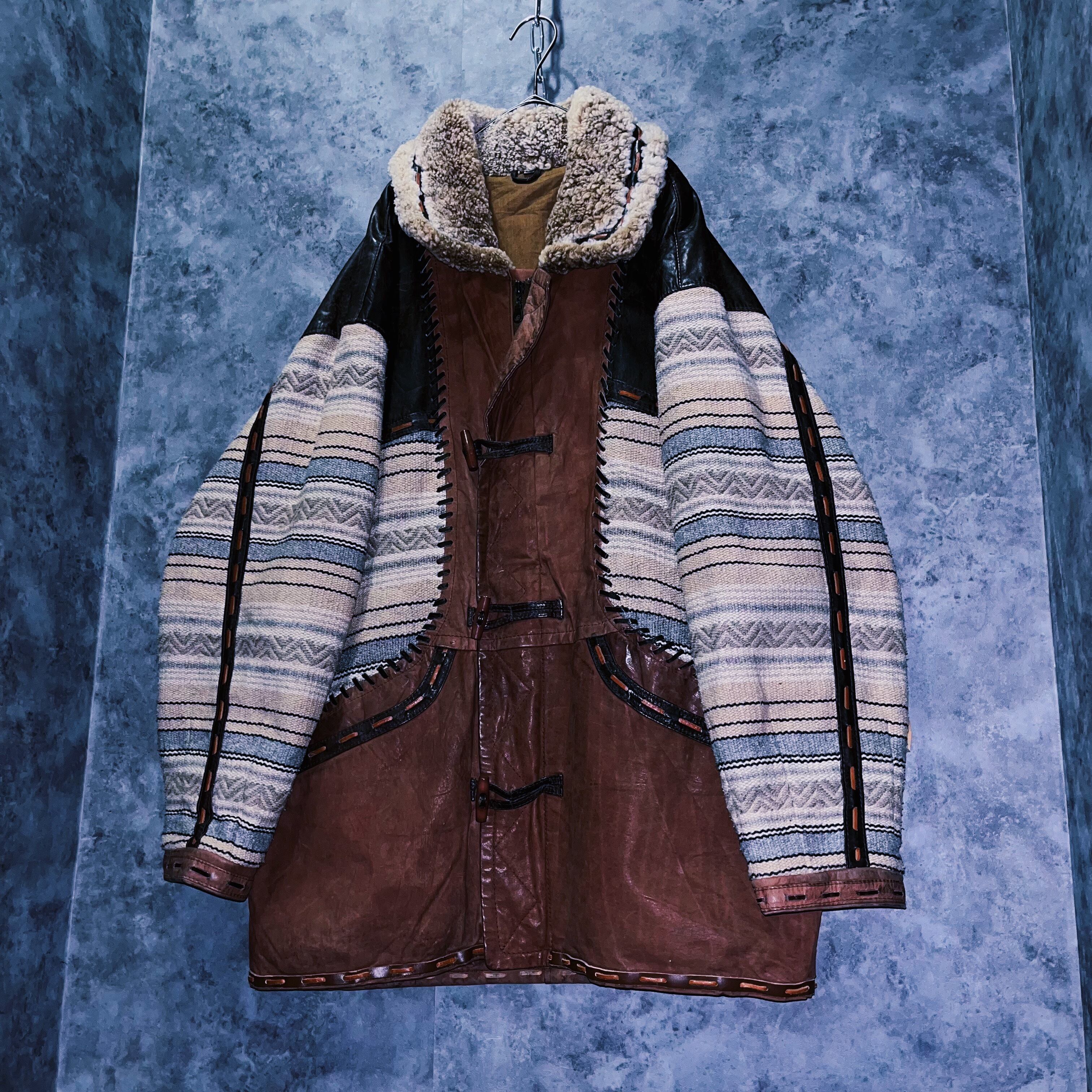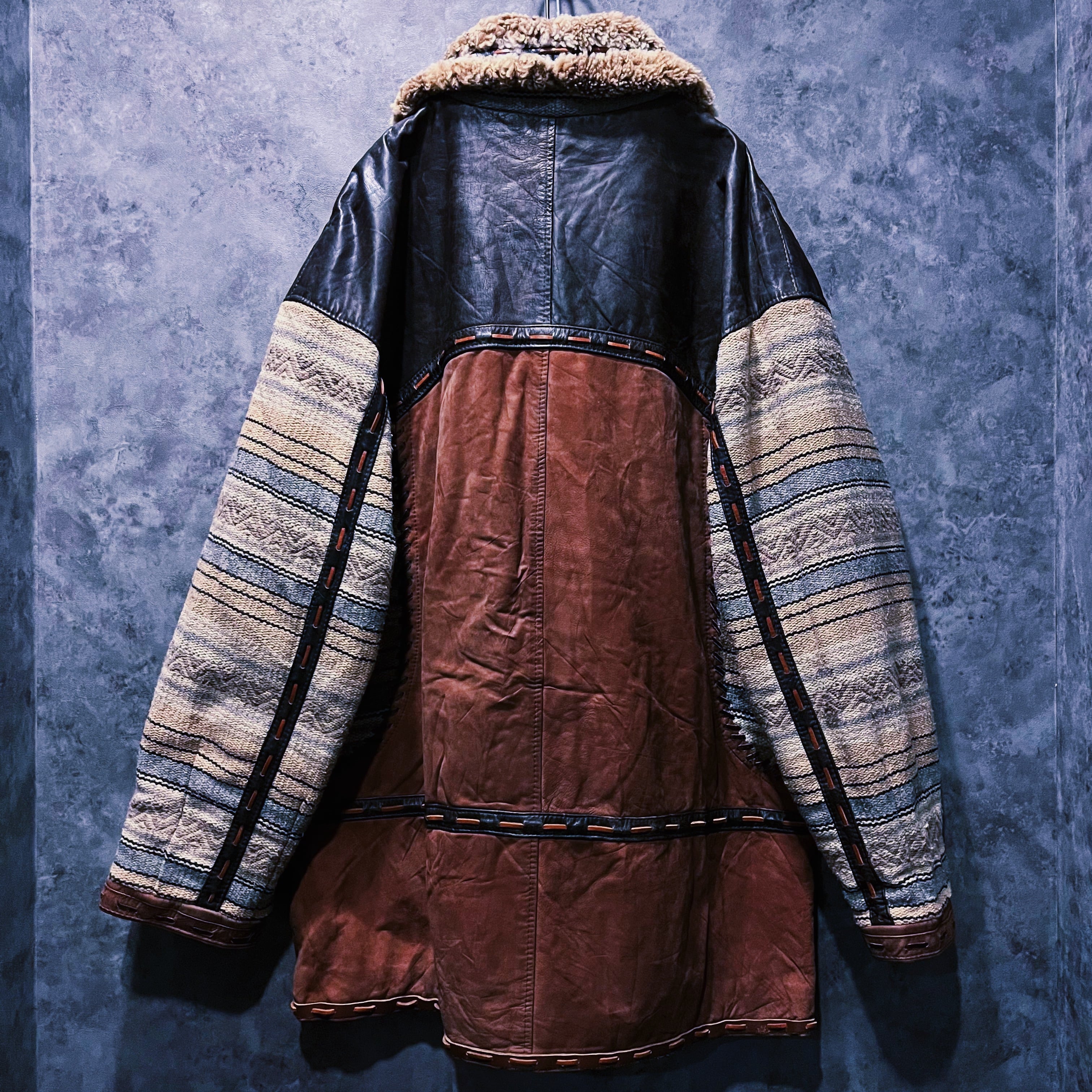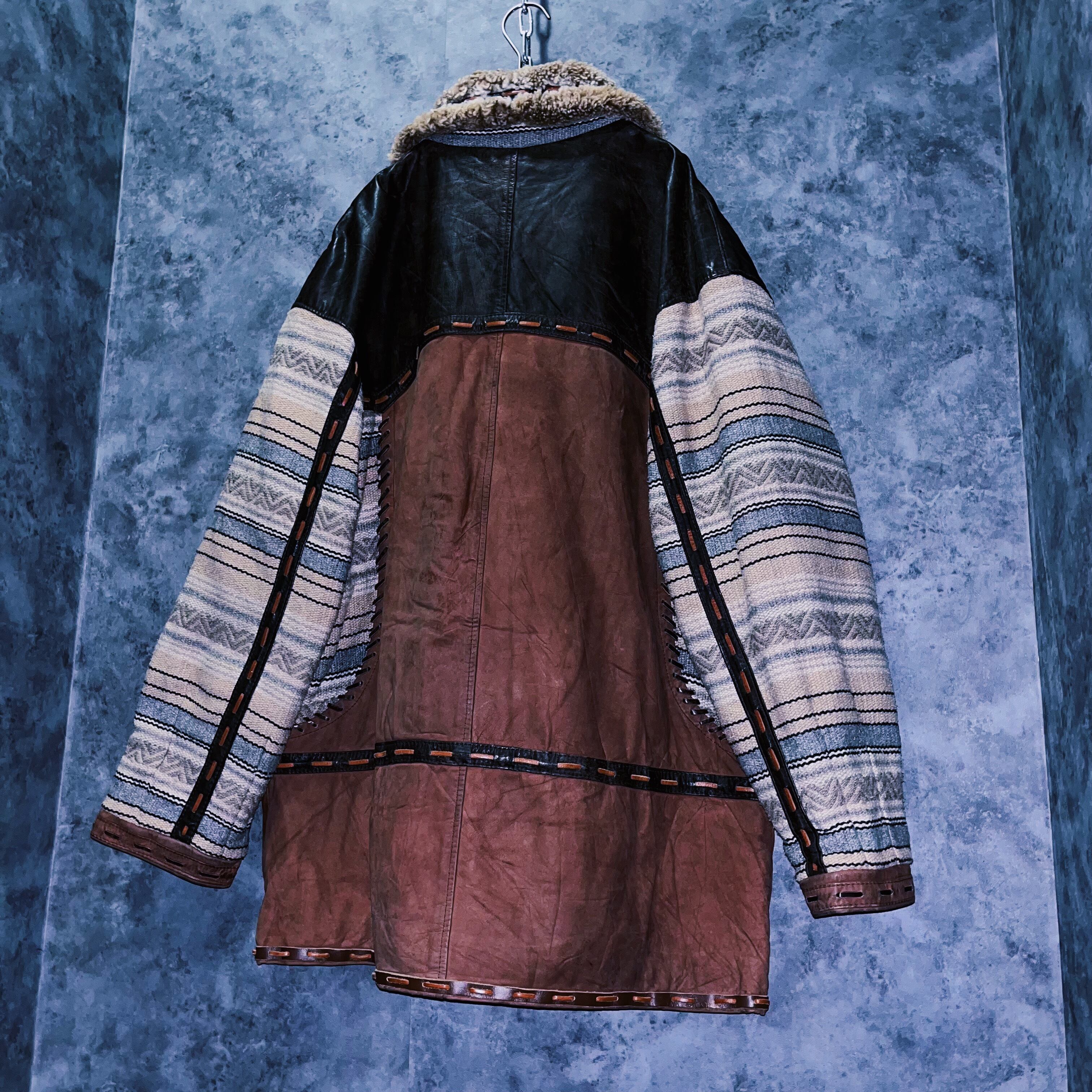 ユーロヴィンテージネイティブパターンブラウンレザーボアジャケット