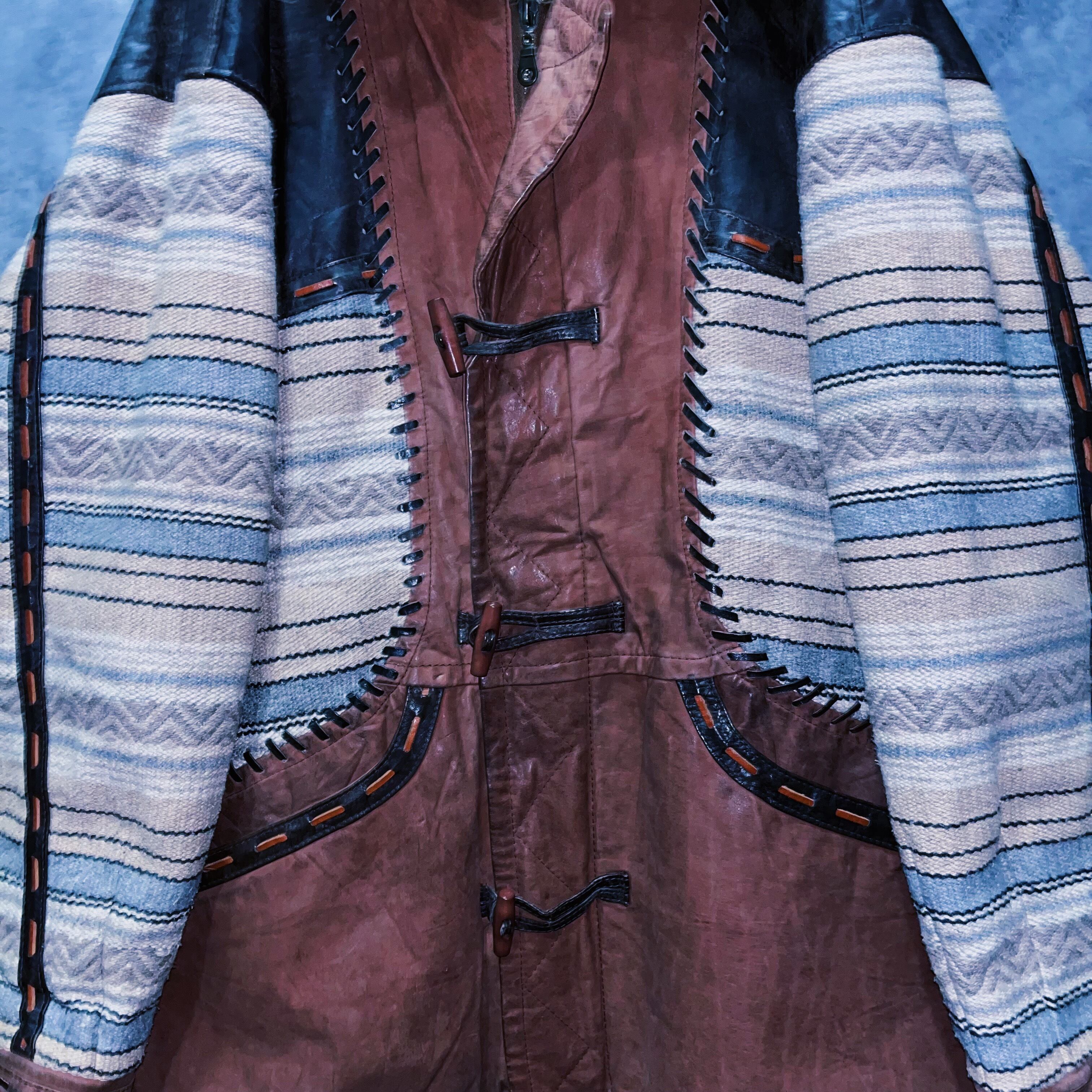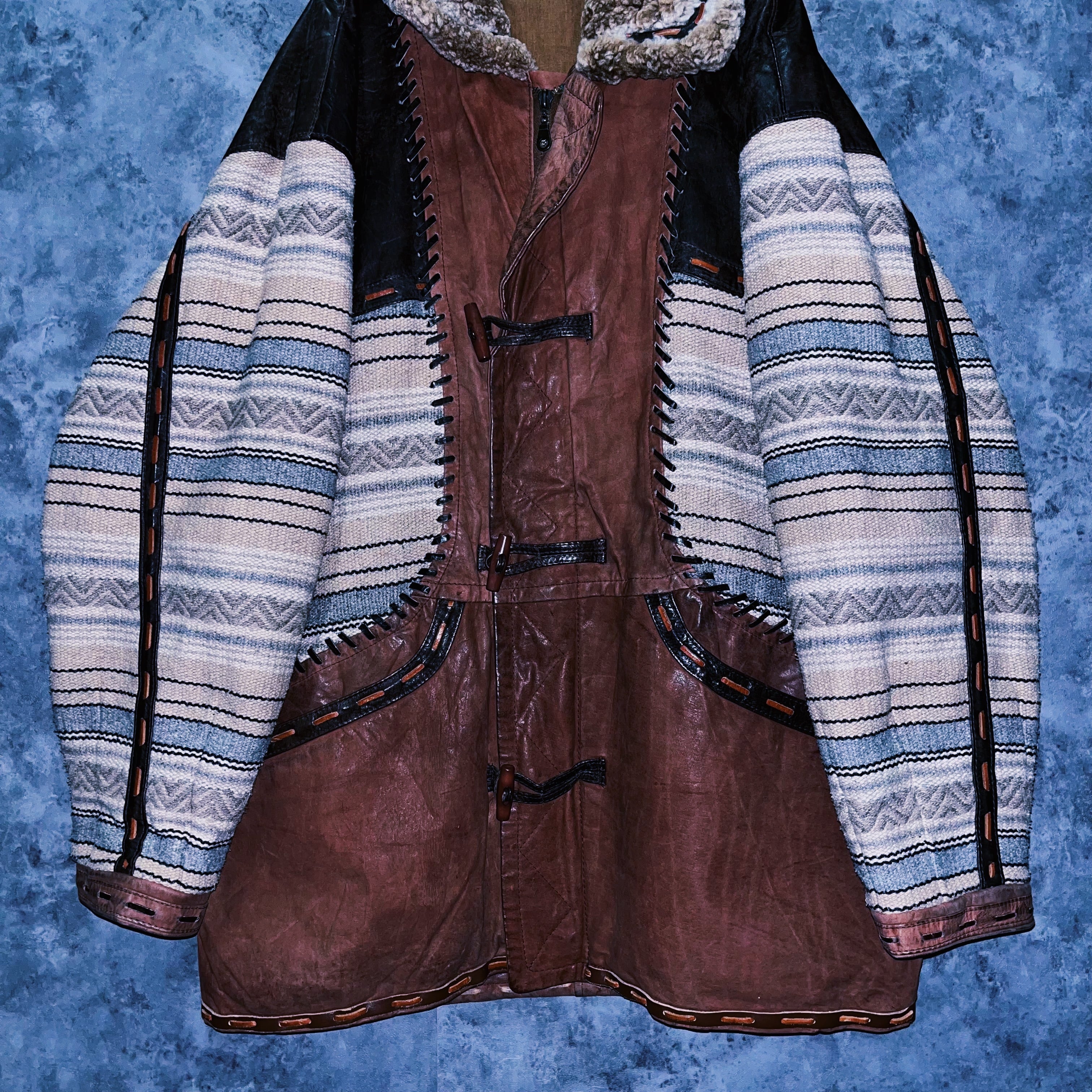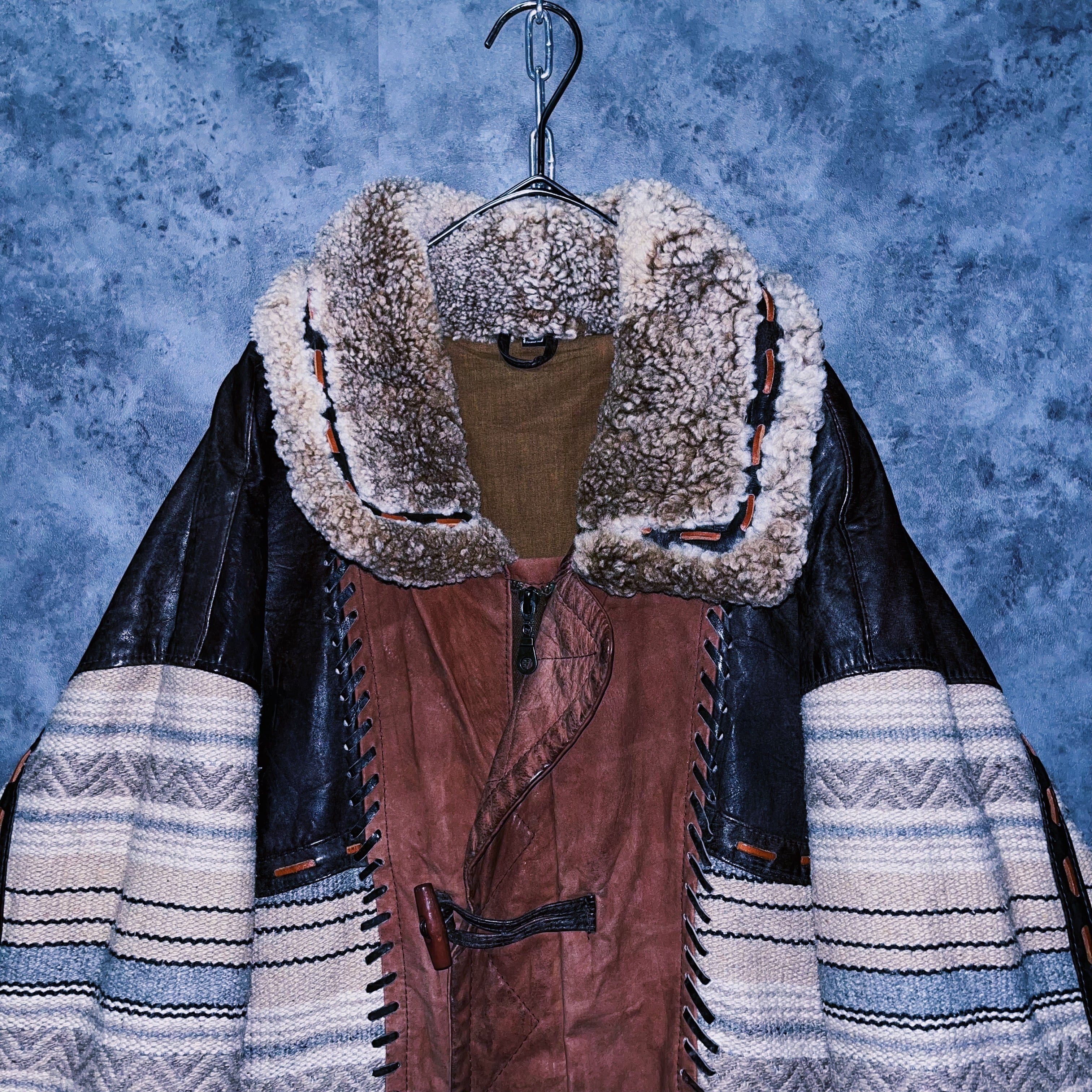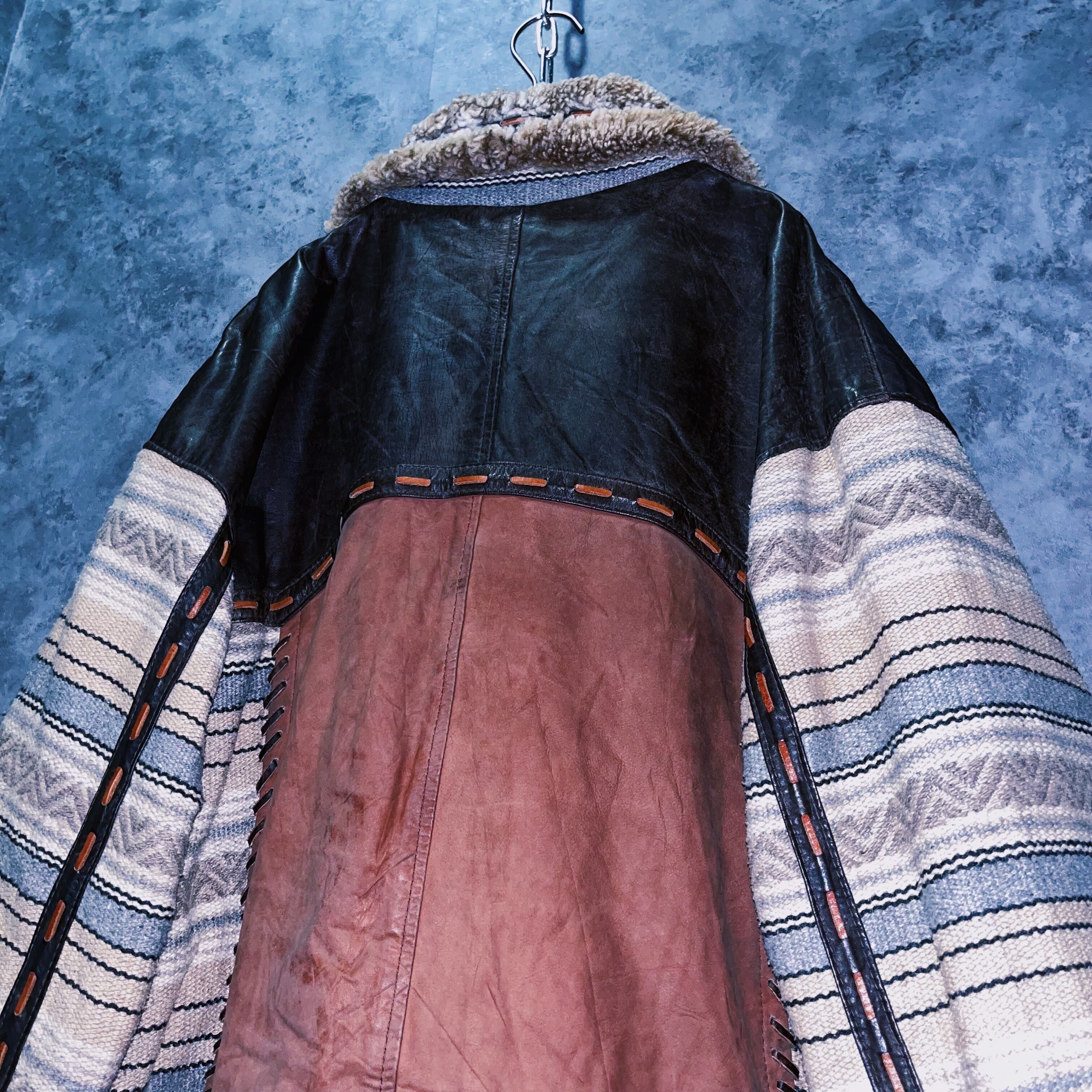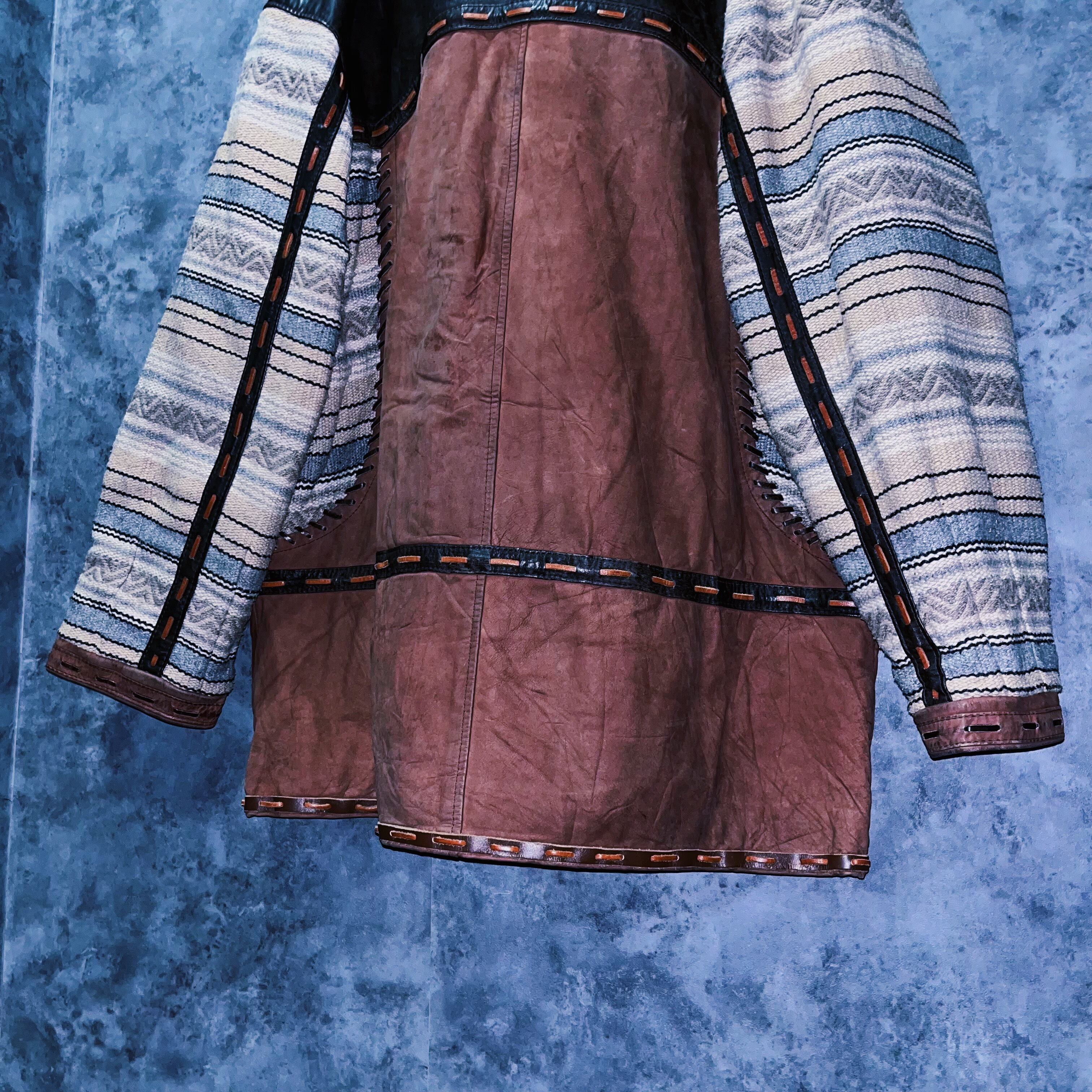 ユーロヴィンテージネイティブパターンブラウンレザーボアジャケット