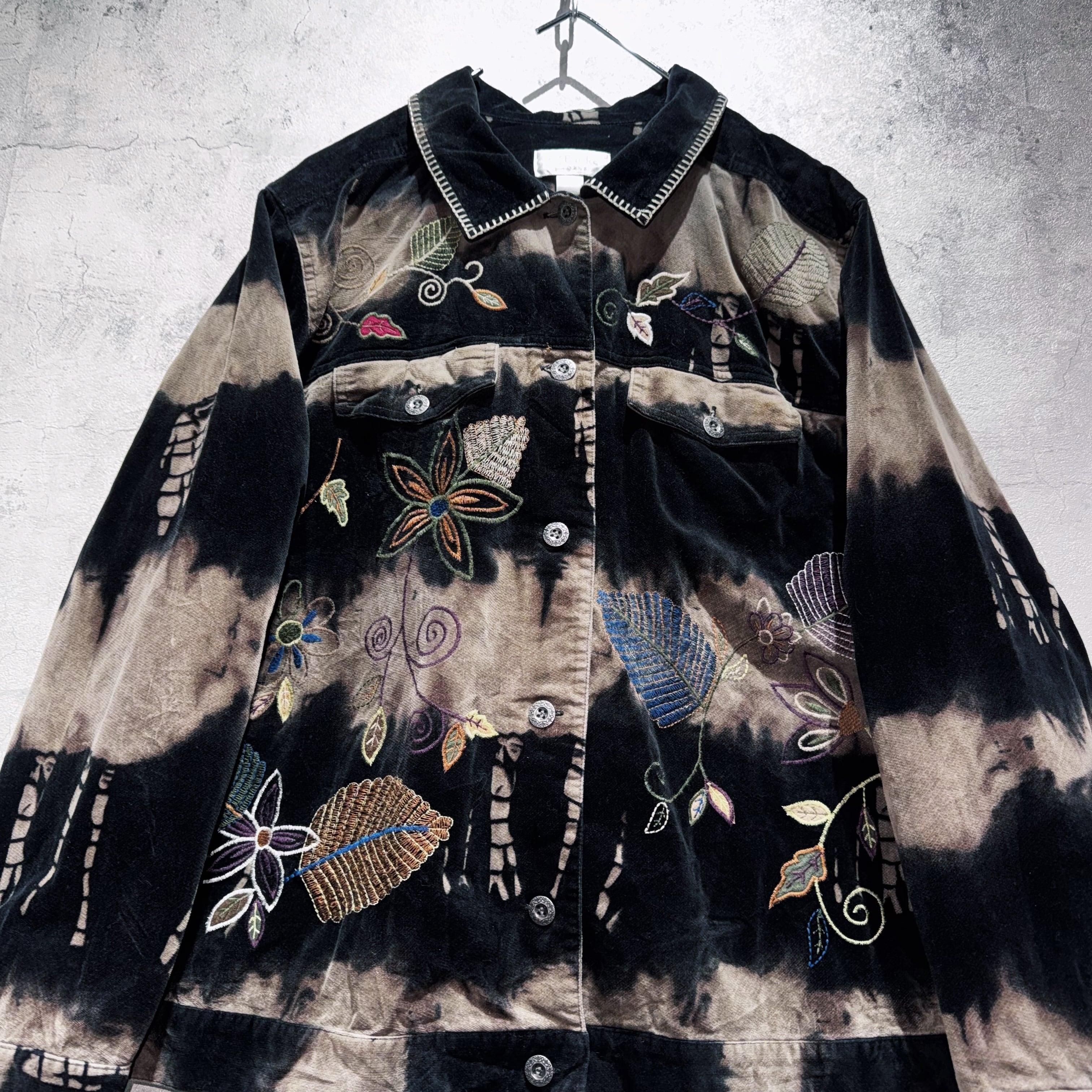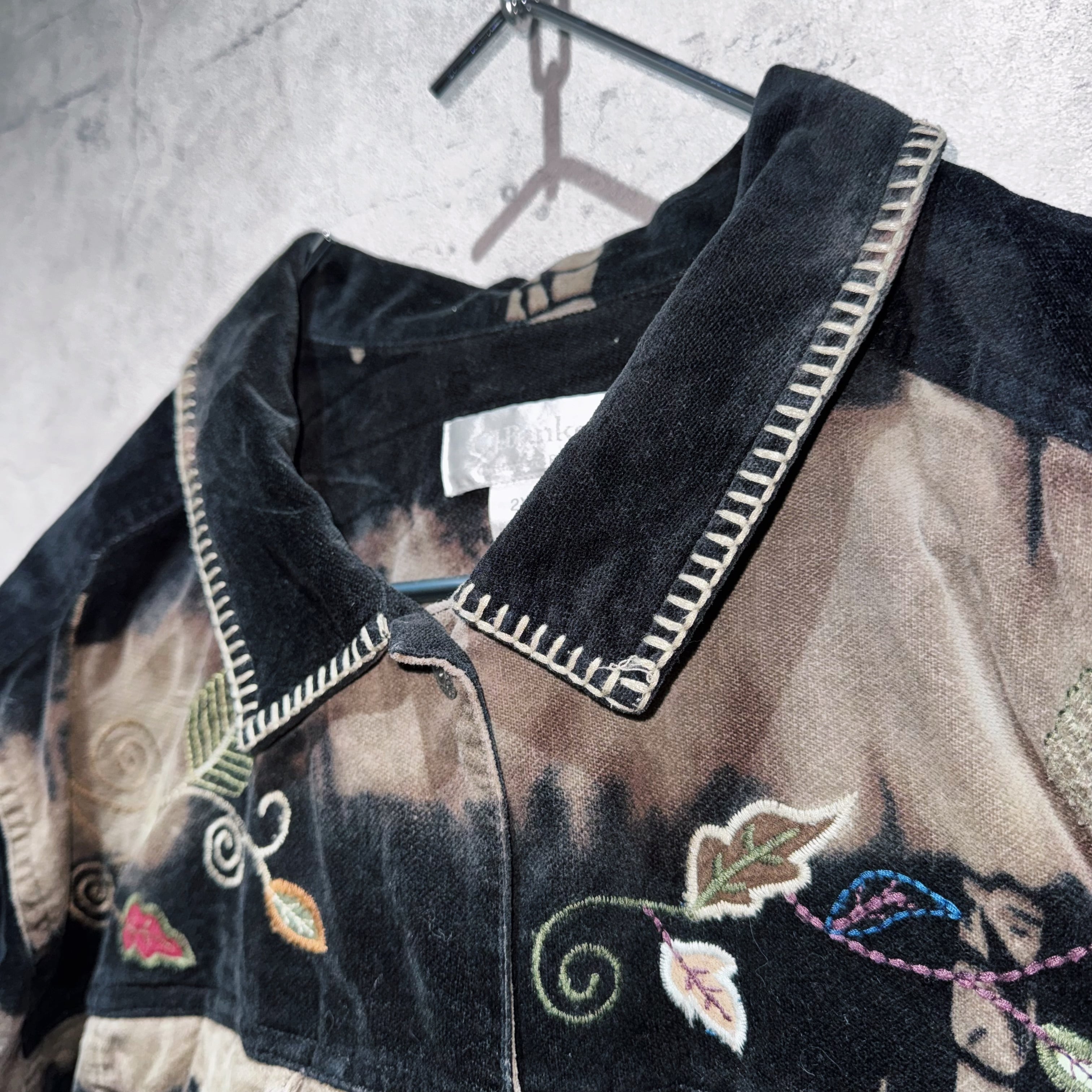 ヴィンテージボタニカルエンブロイダリーデザインブリーチベルベットジャケット