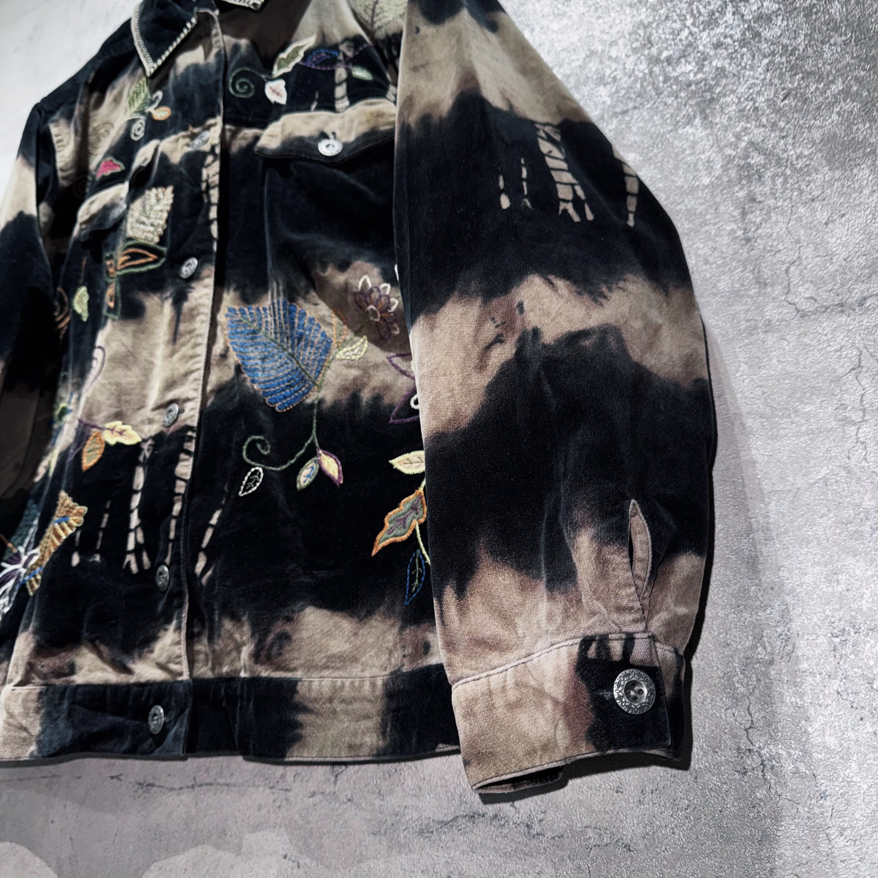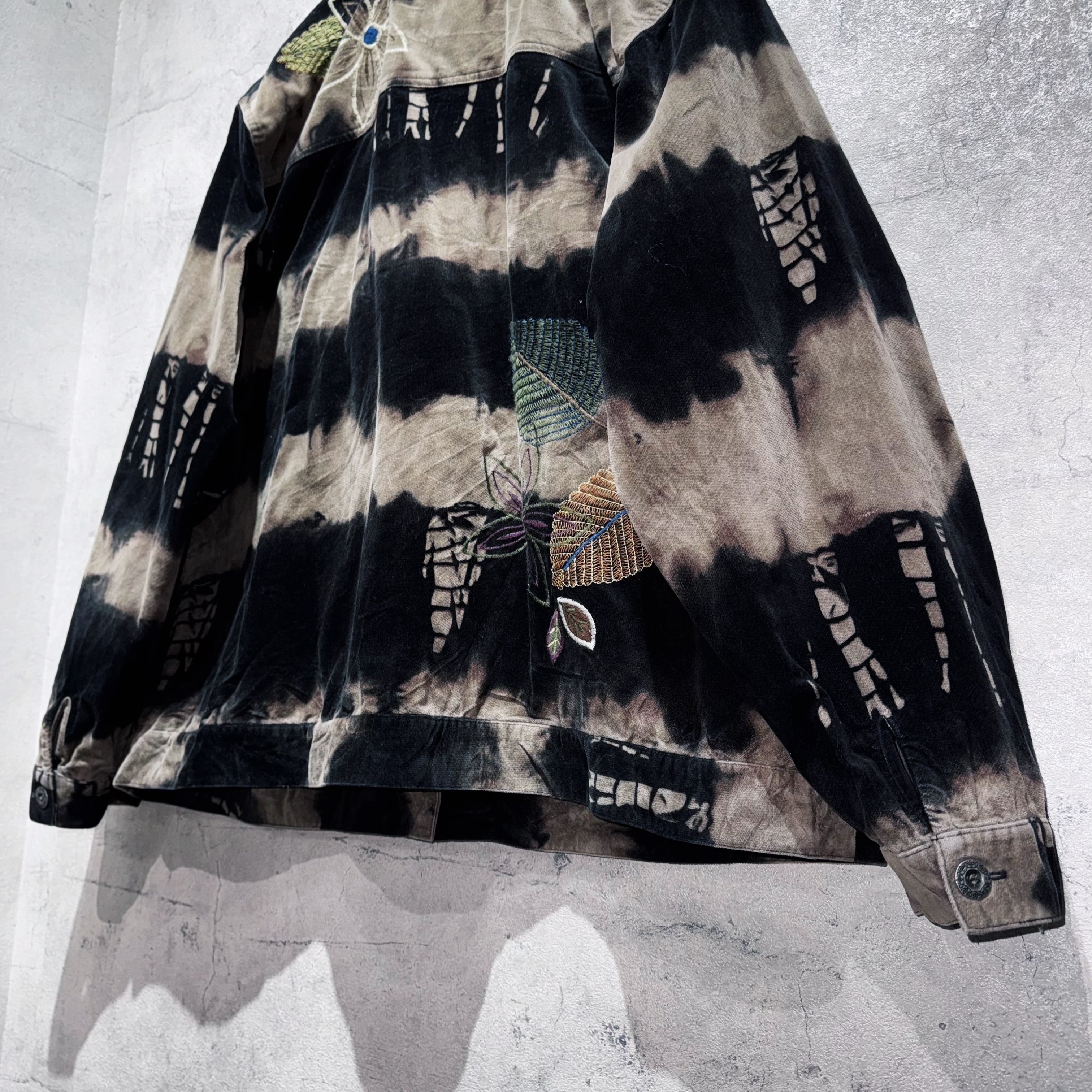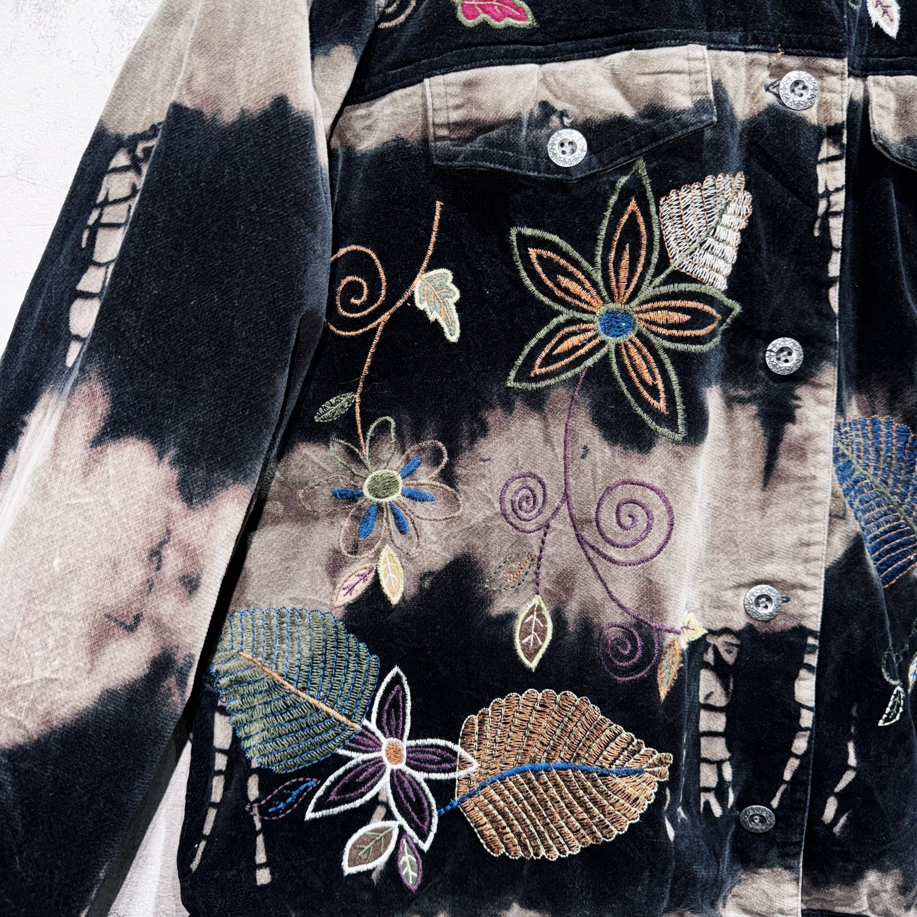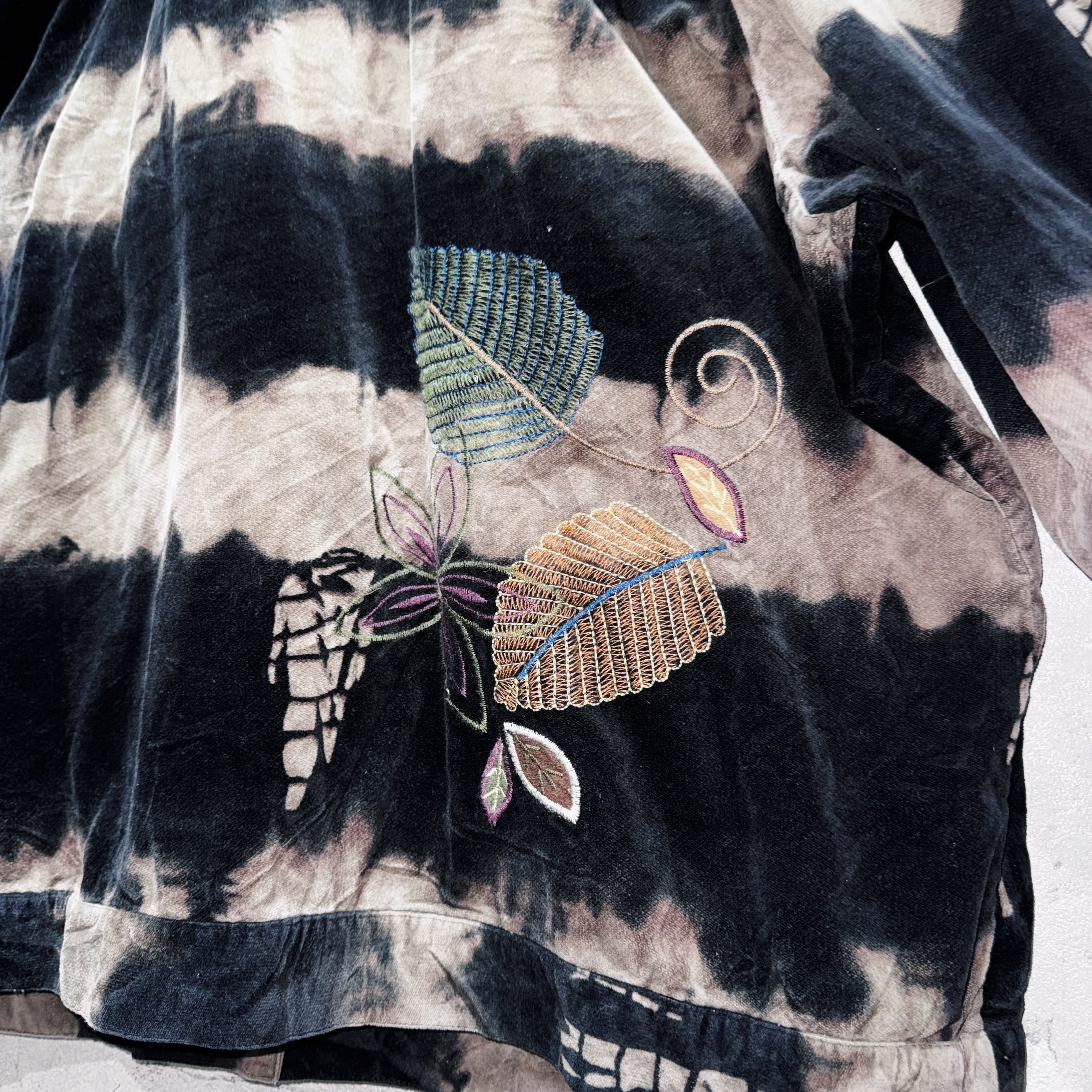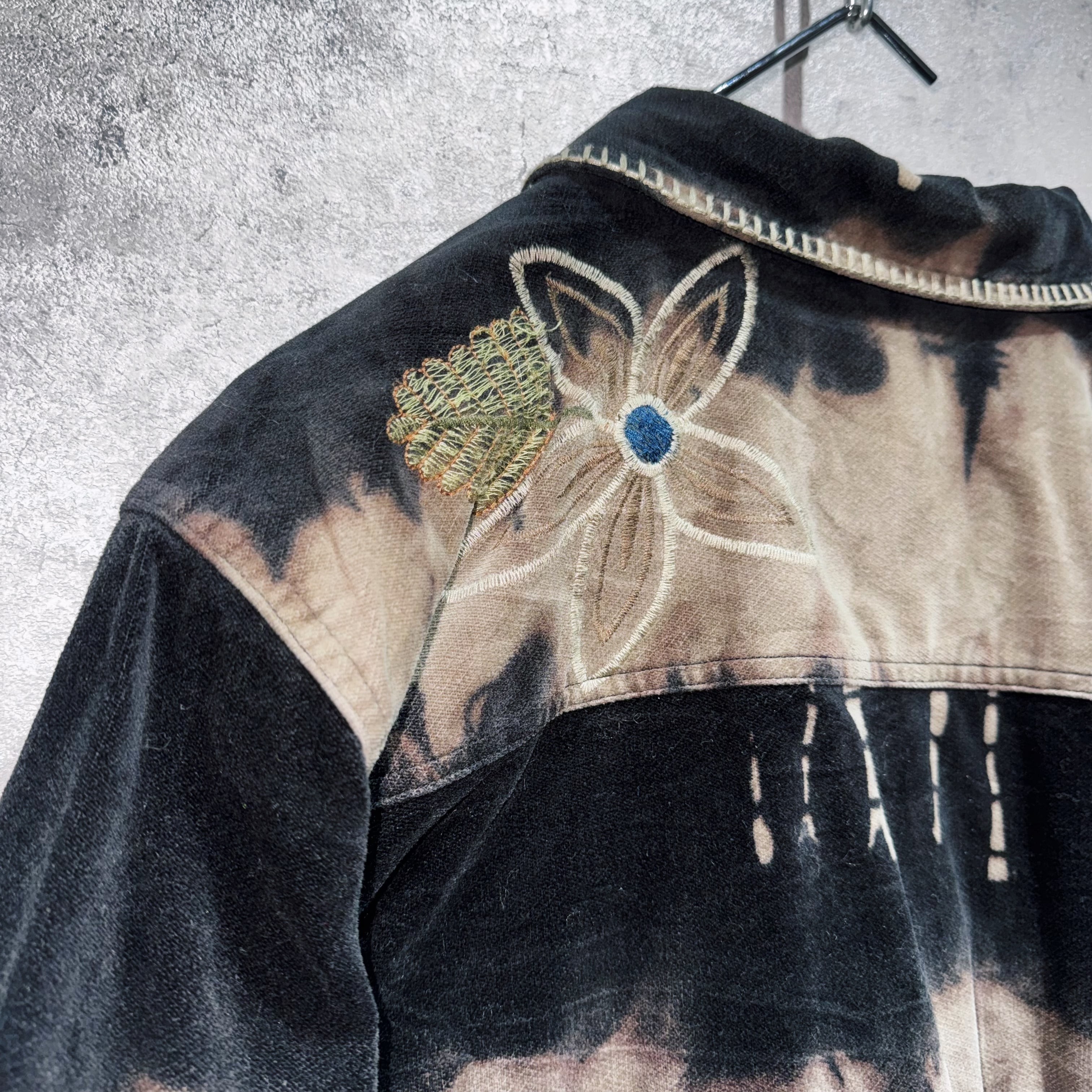 vintage botanical embroidery design bleach velvet jacket