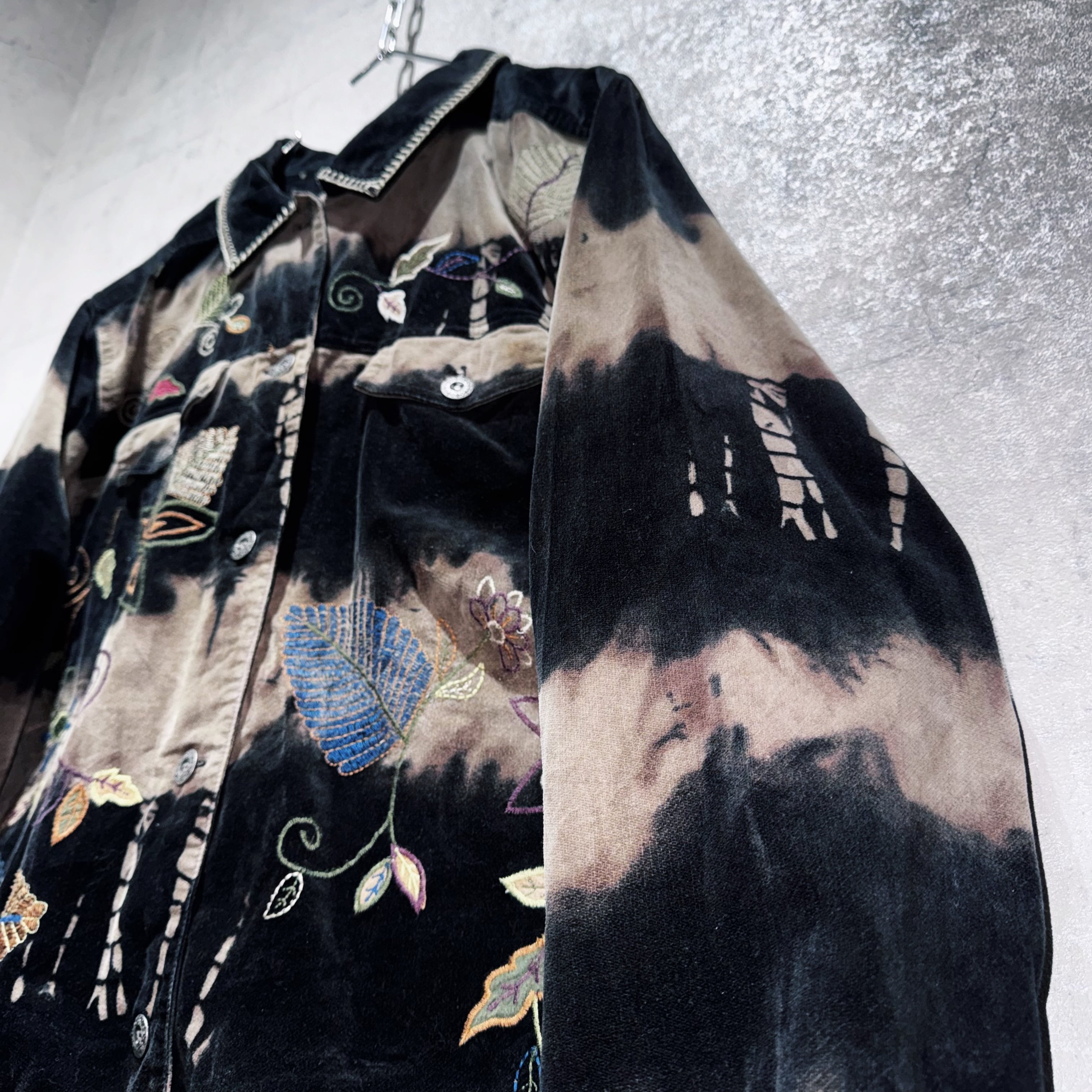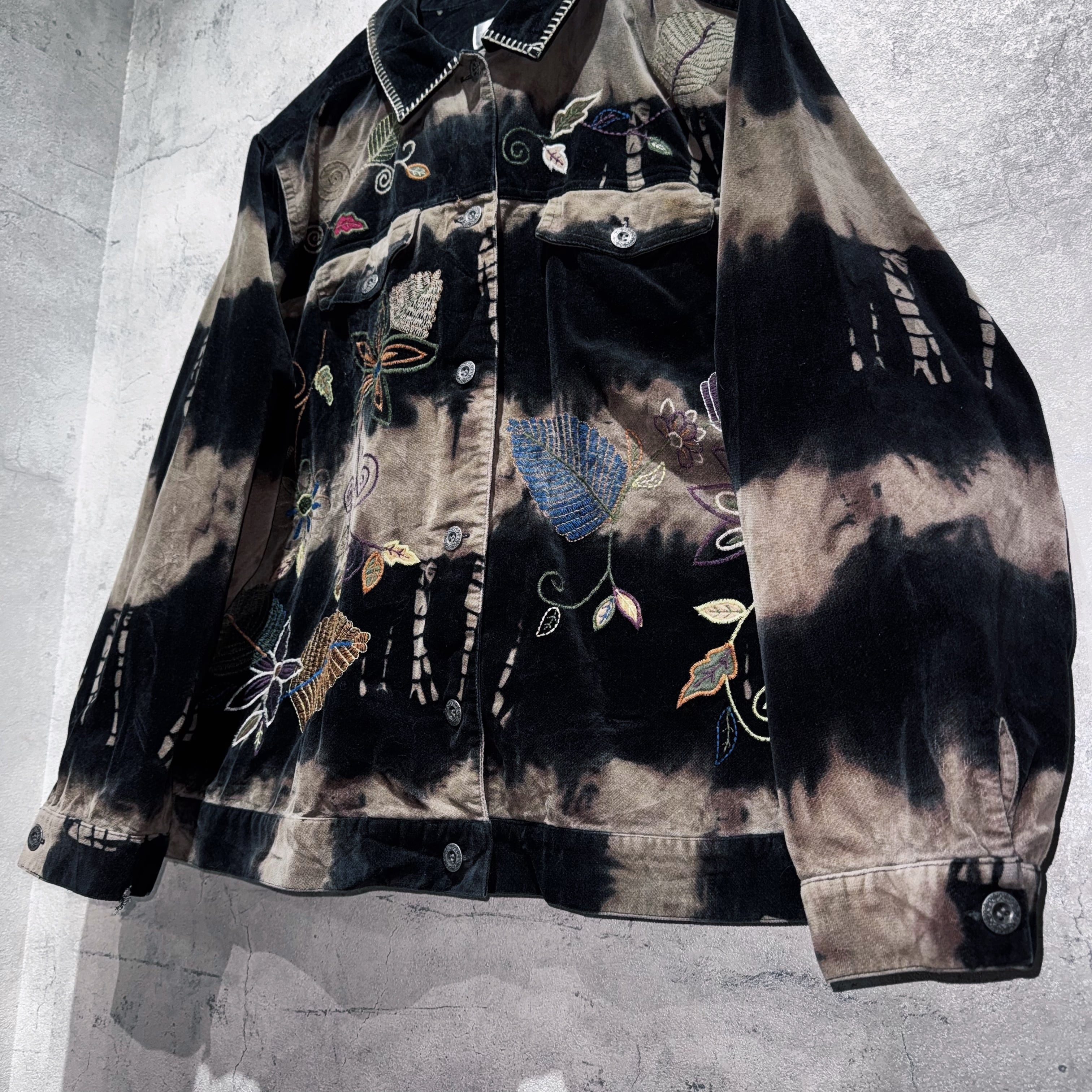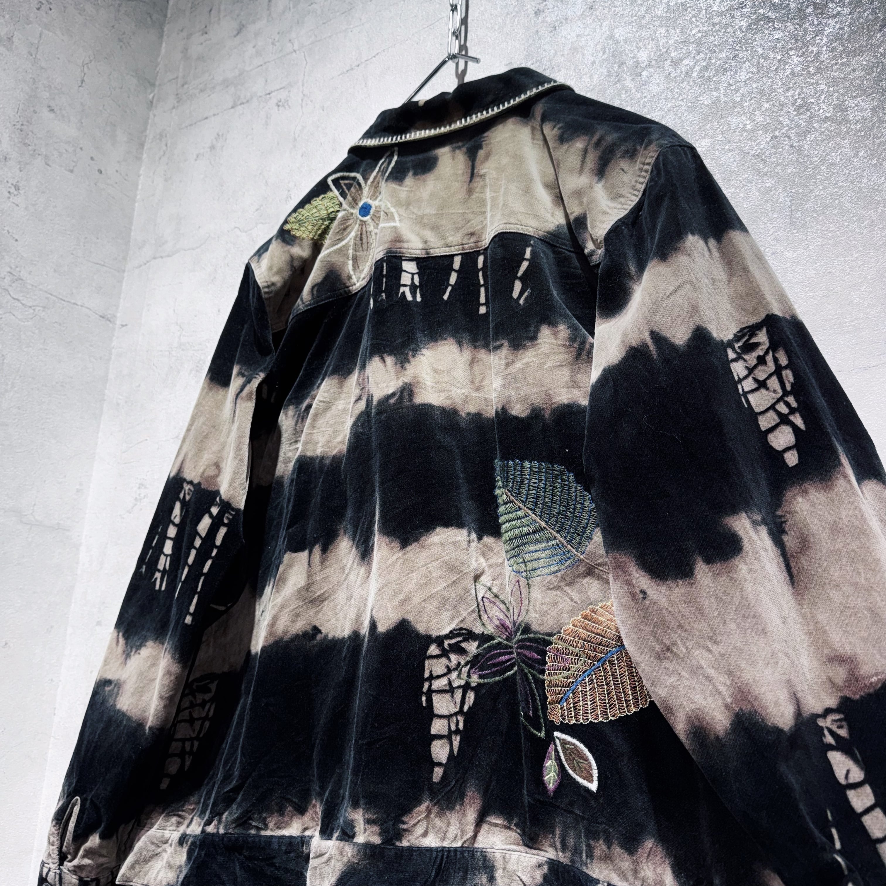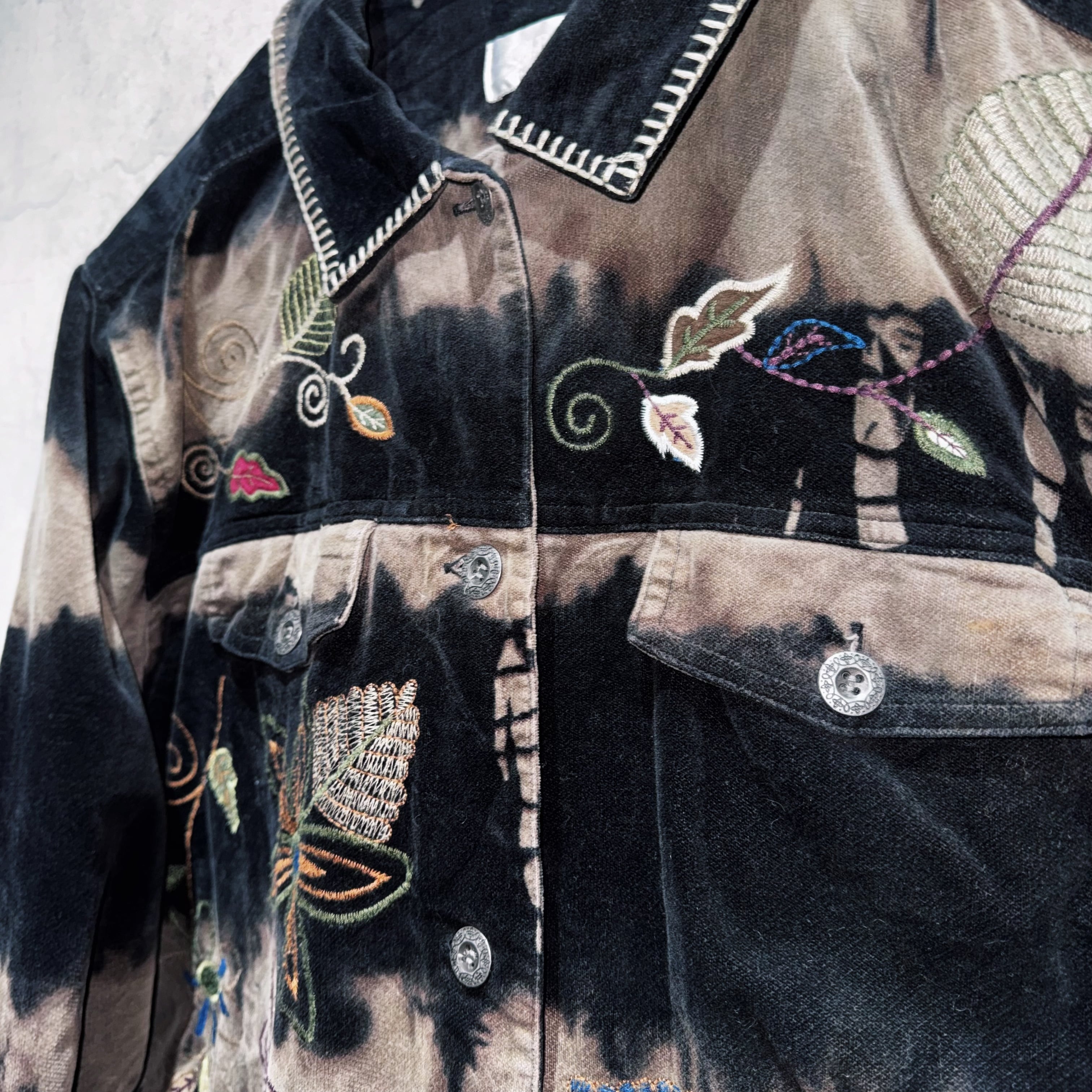 vintage botanical embroidery design bleach velvet jacket