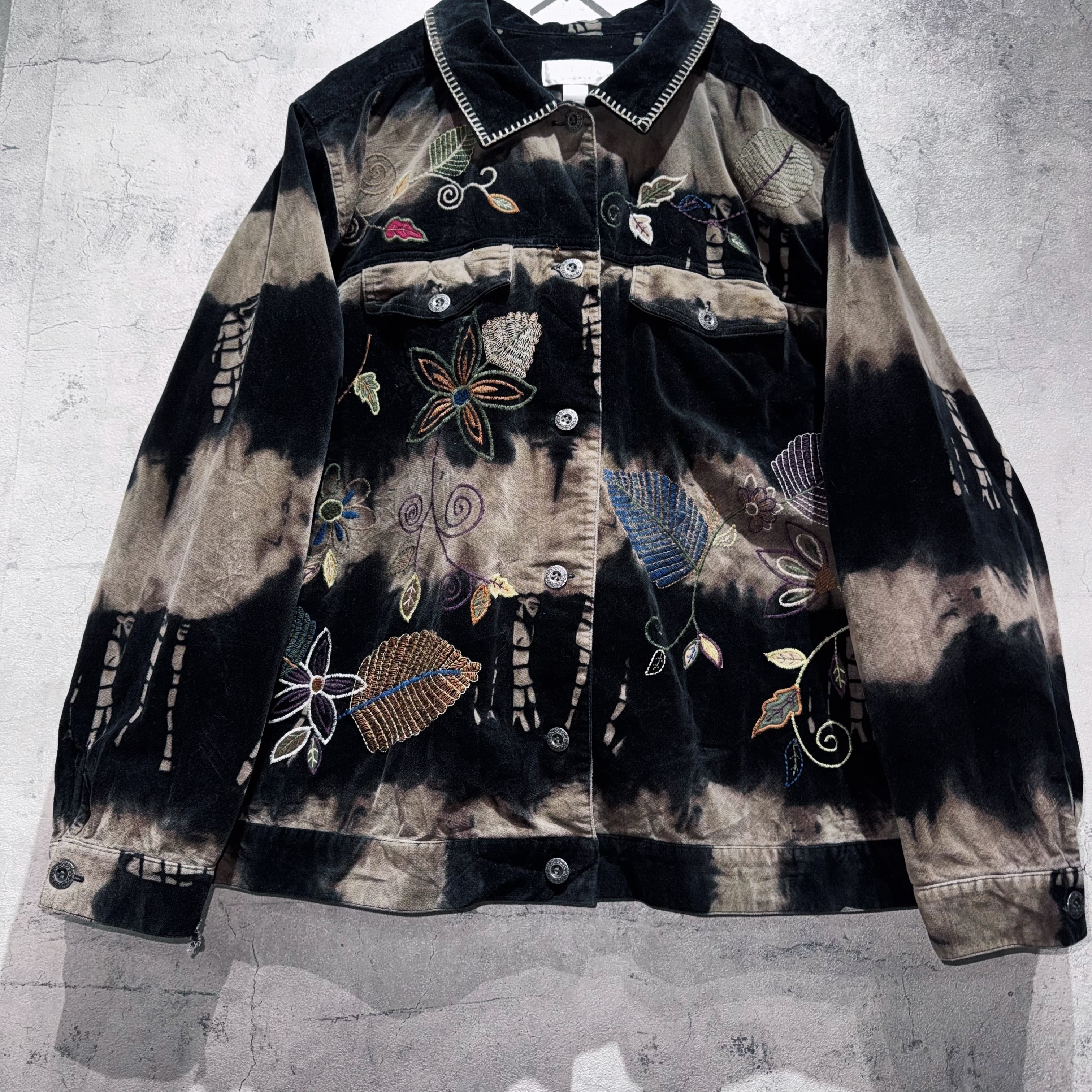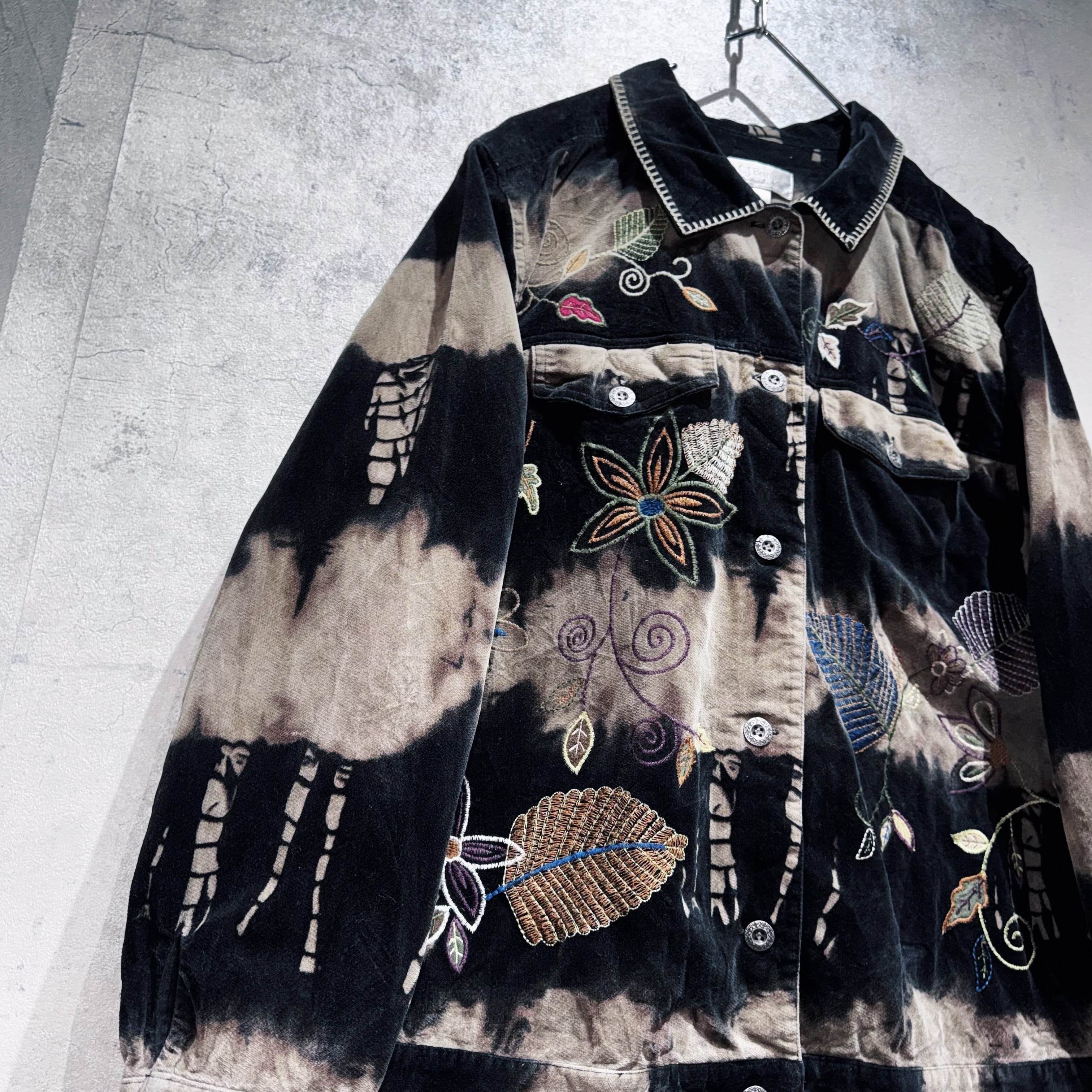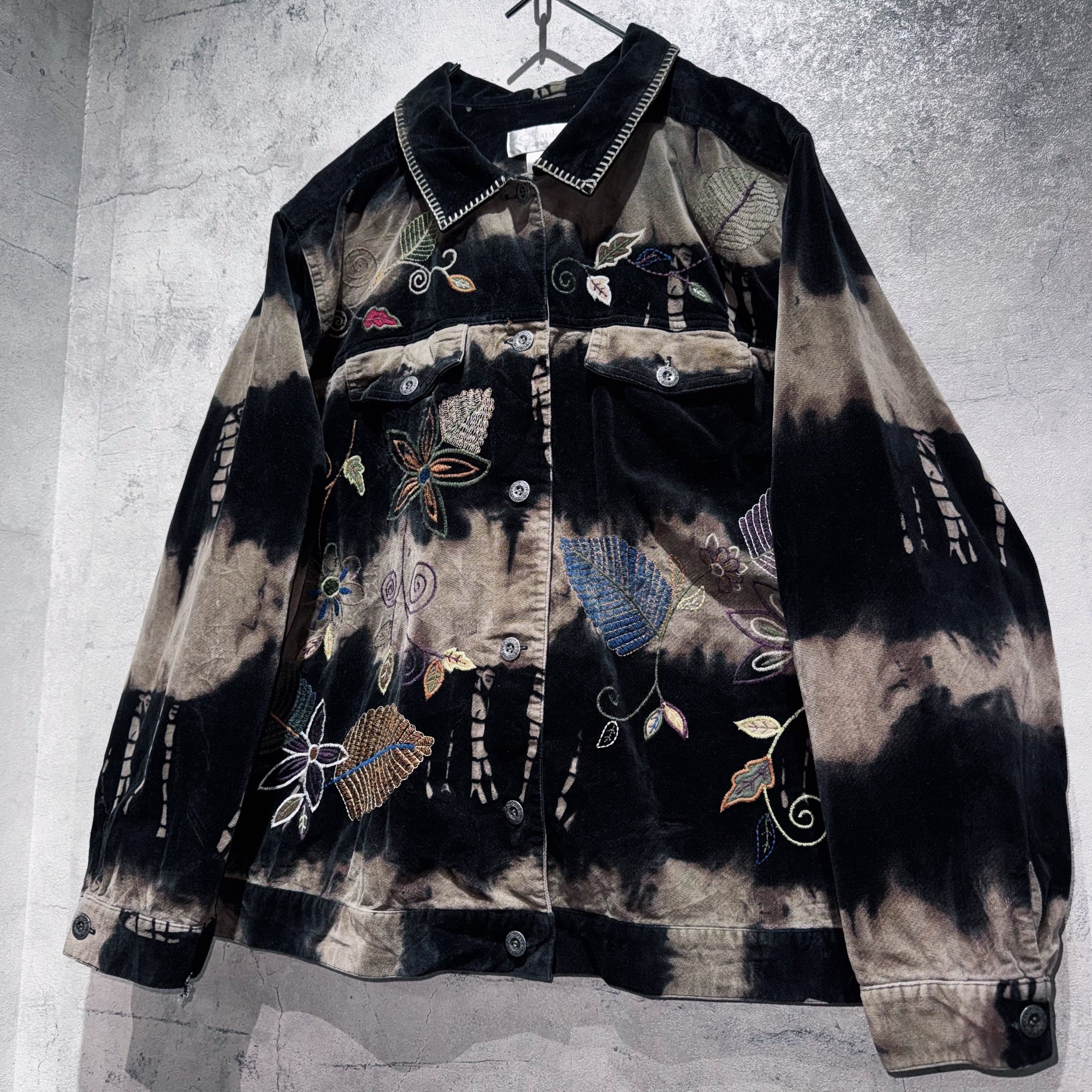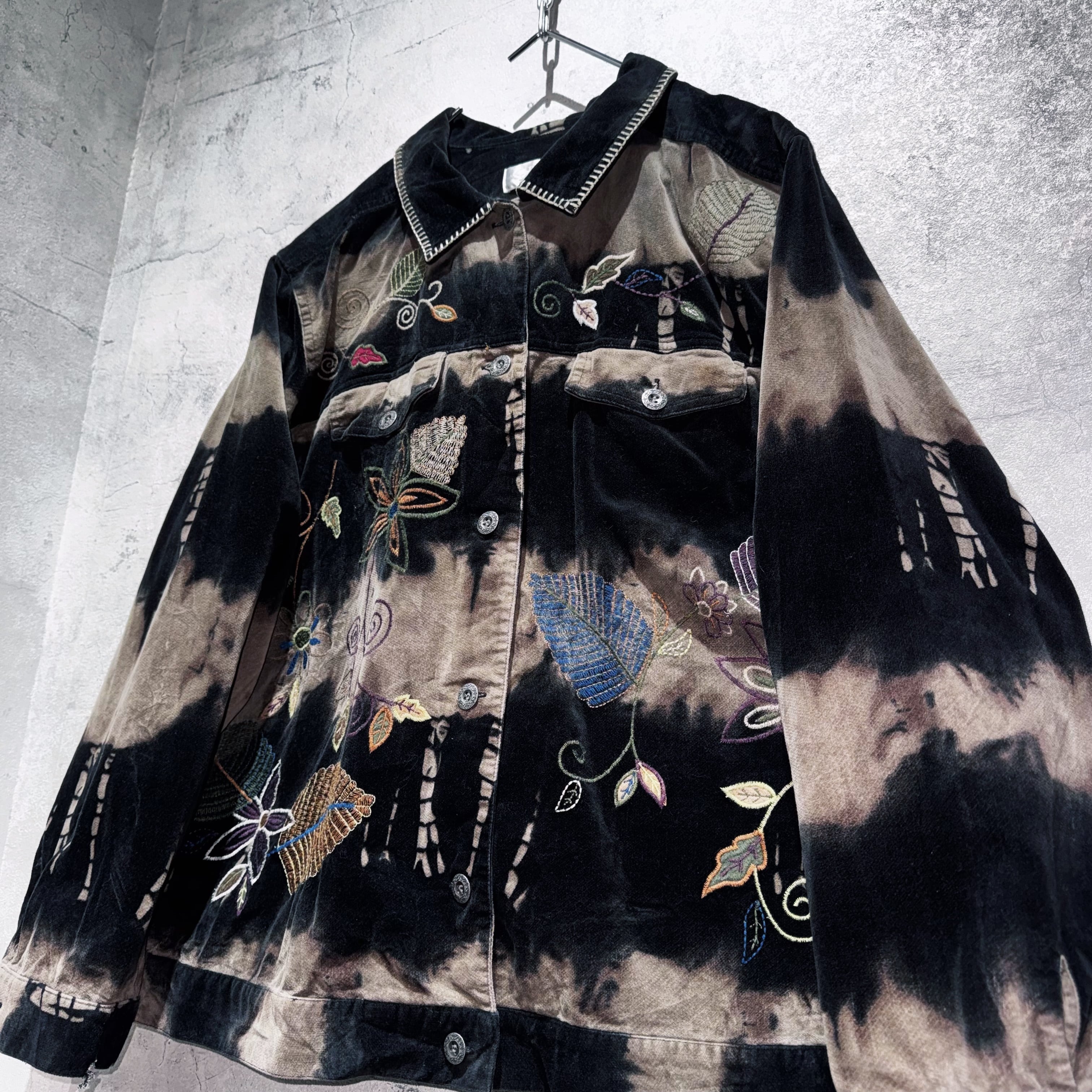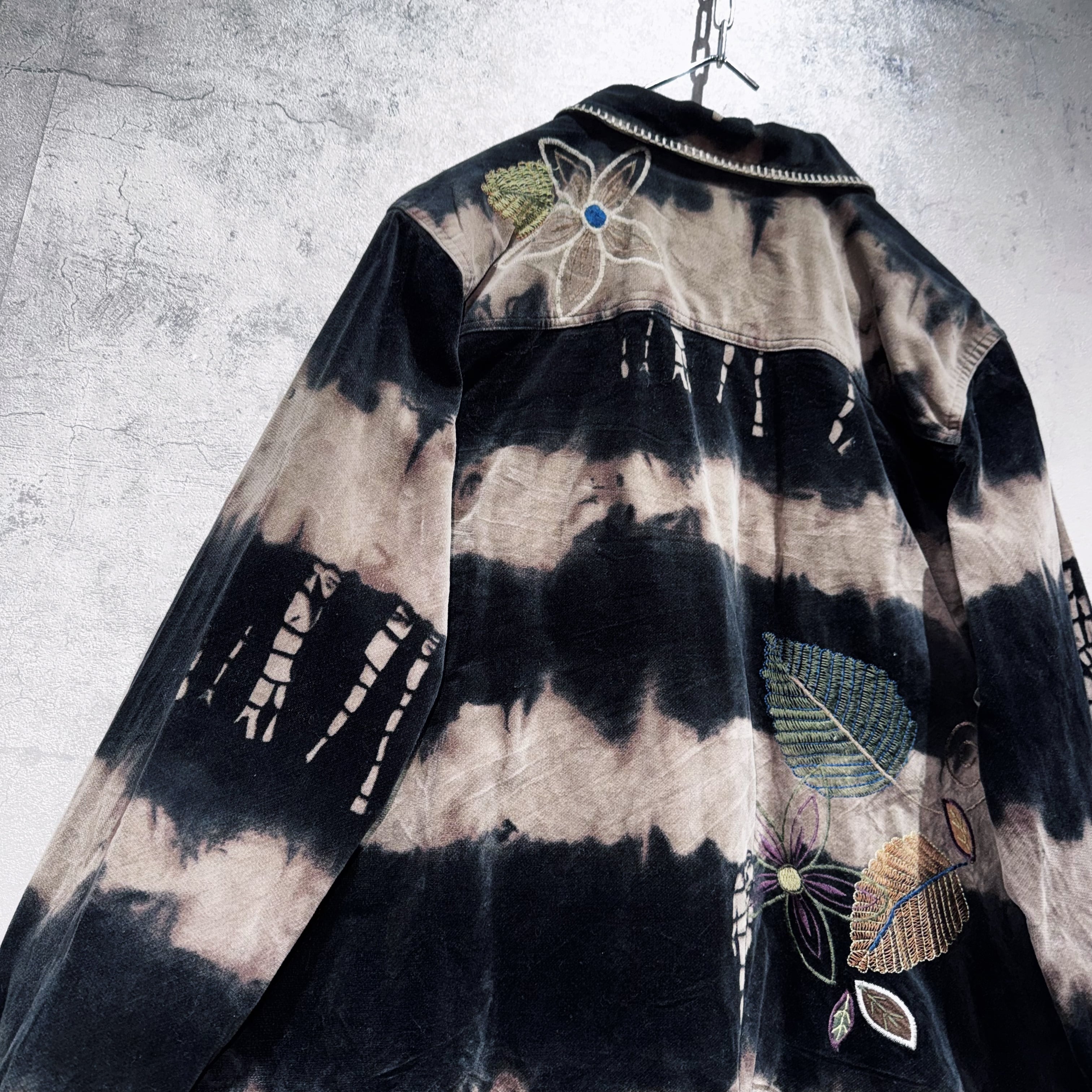 vintage botanical embroidery design bleach velvet jacket