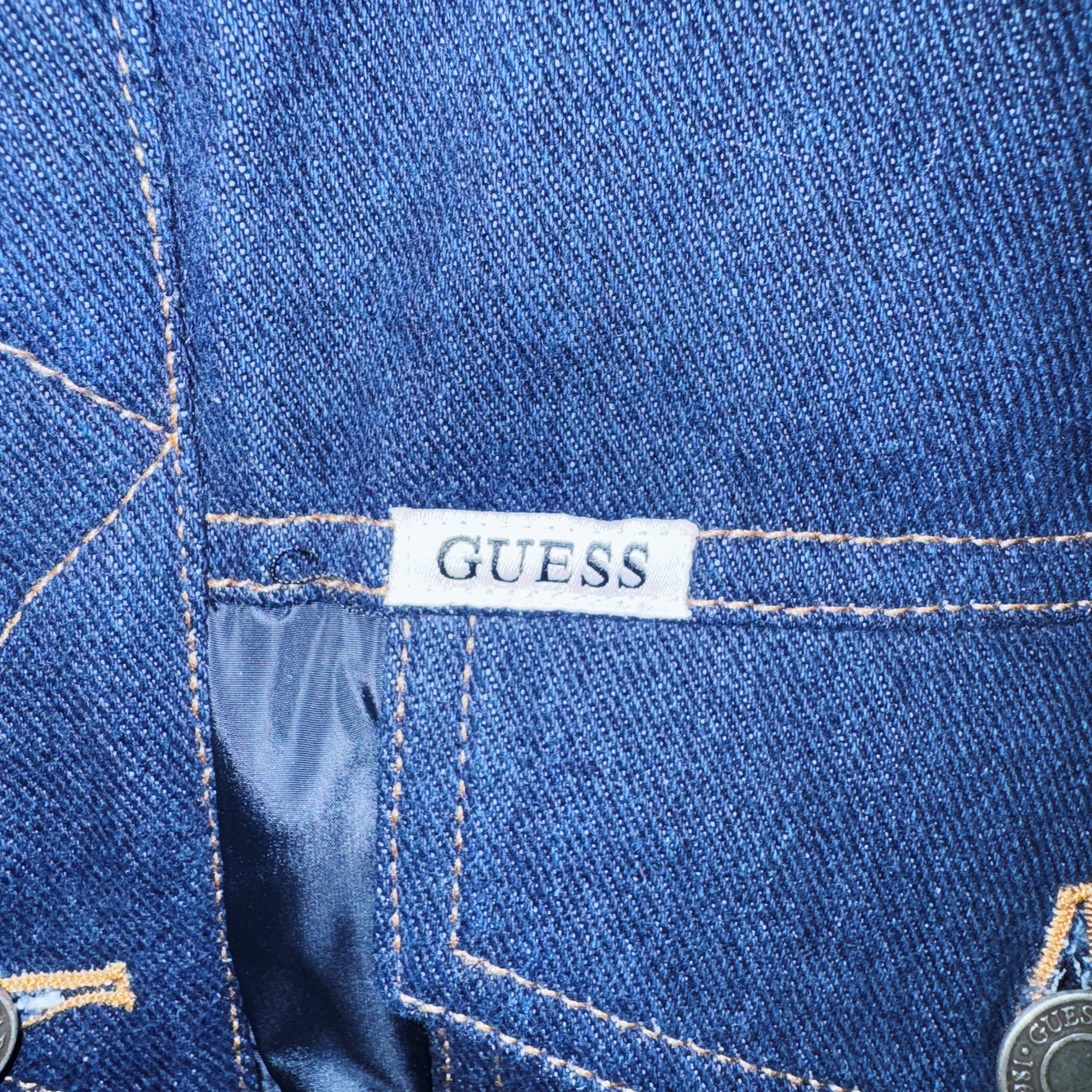 裾にはGUESSといえばの逆三角形のブランドロゴマークがあしらわれアイコニックな仕上がりに。ボタン一つひとつにもブランド名が刻まれているなど細部までの拘りには思わず脱帽…