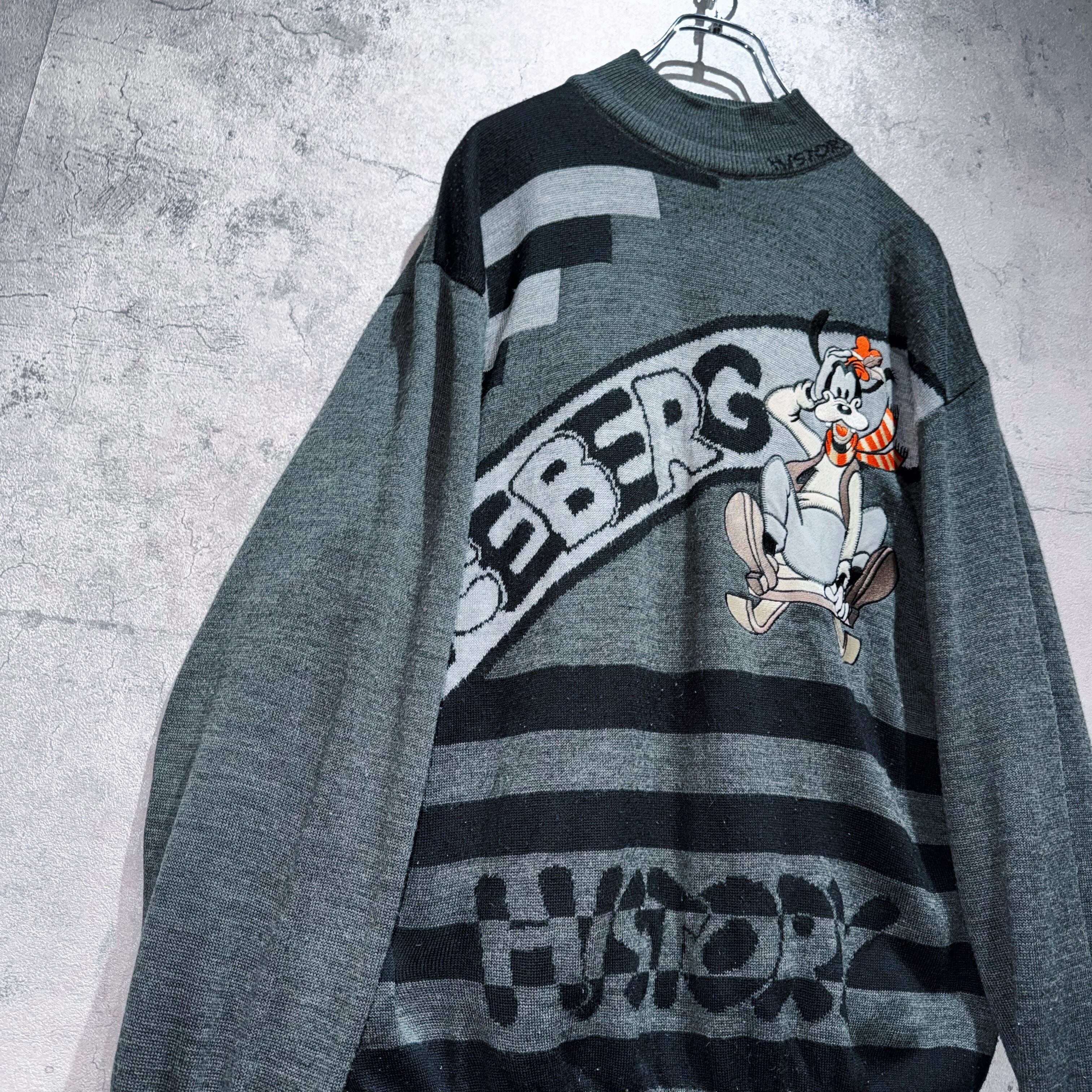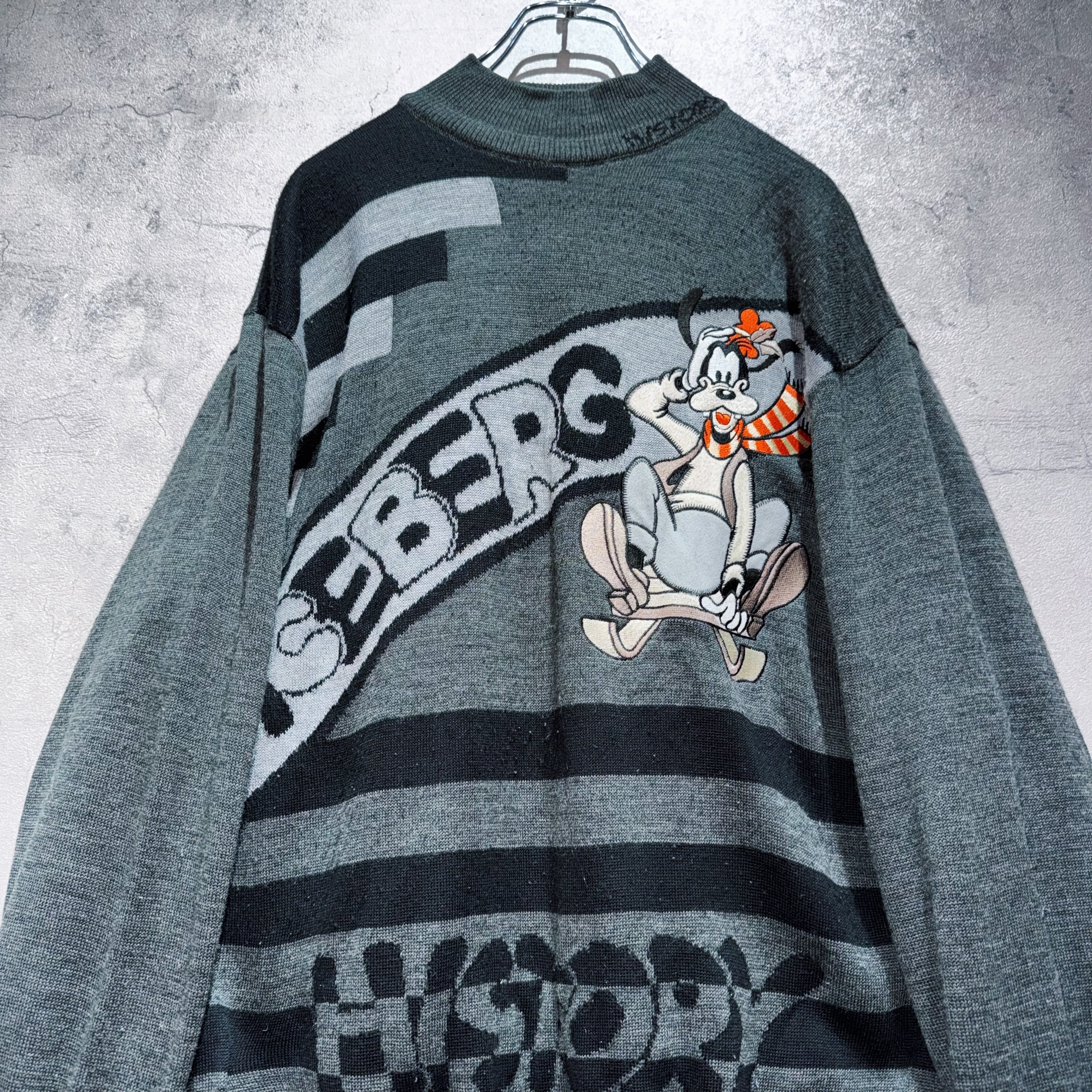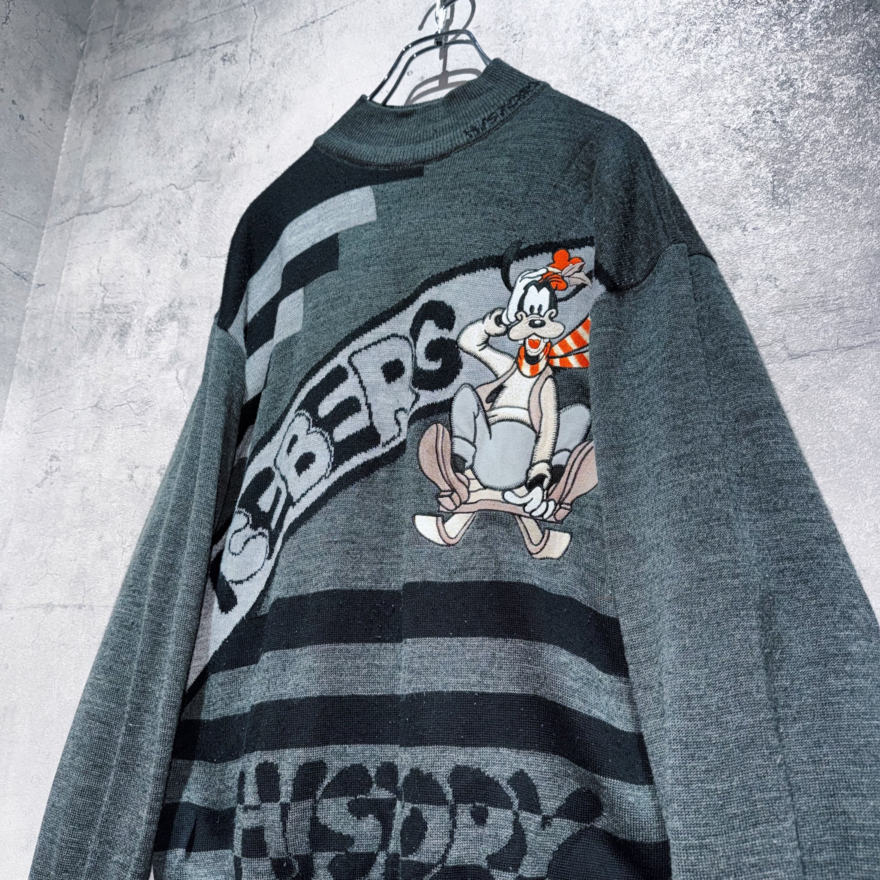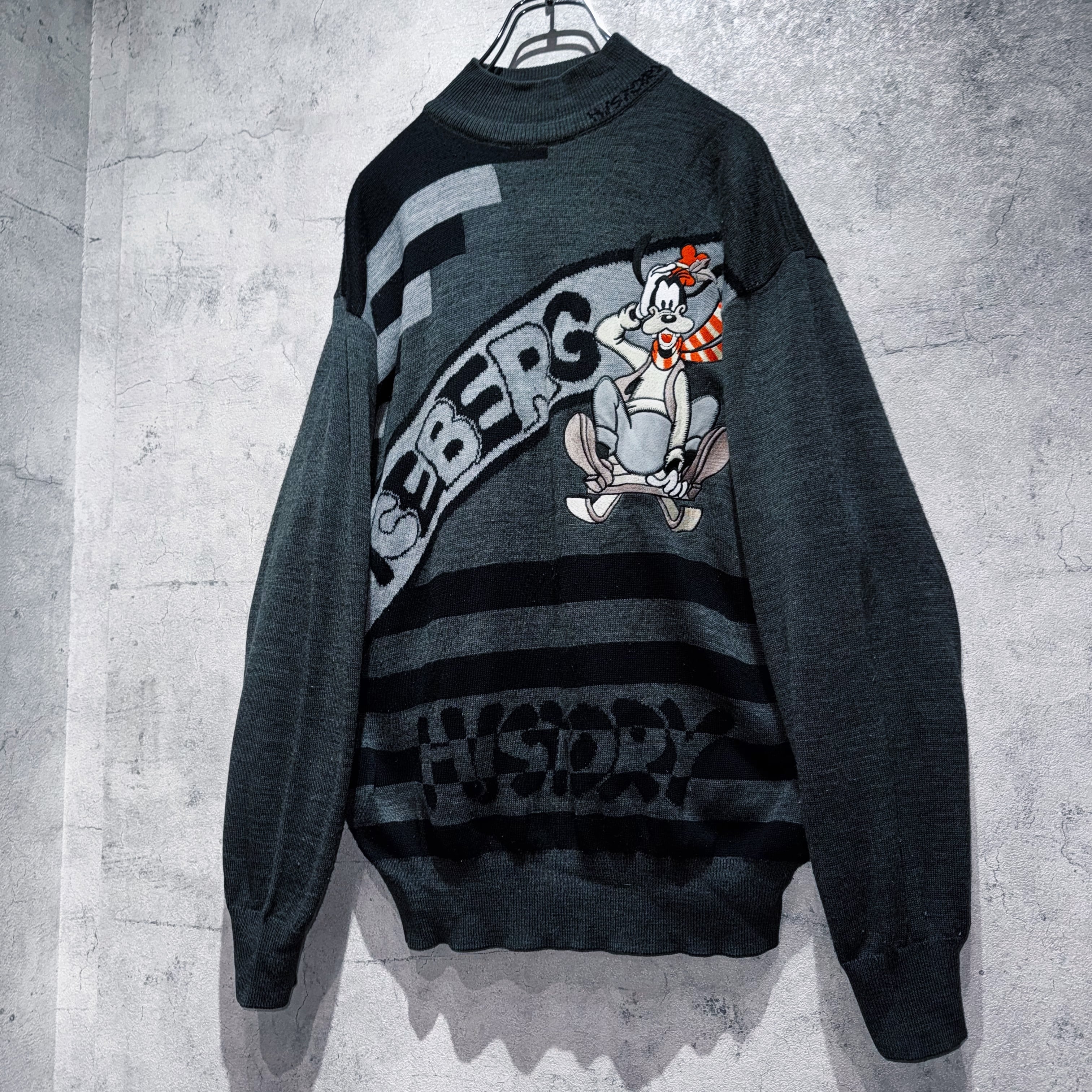 "アイスバーグ"×"ディズニー"グーフィーエンブロイダリーデザインモックネックニット