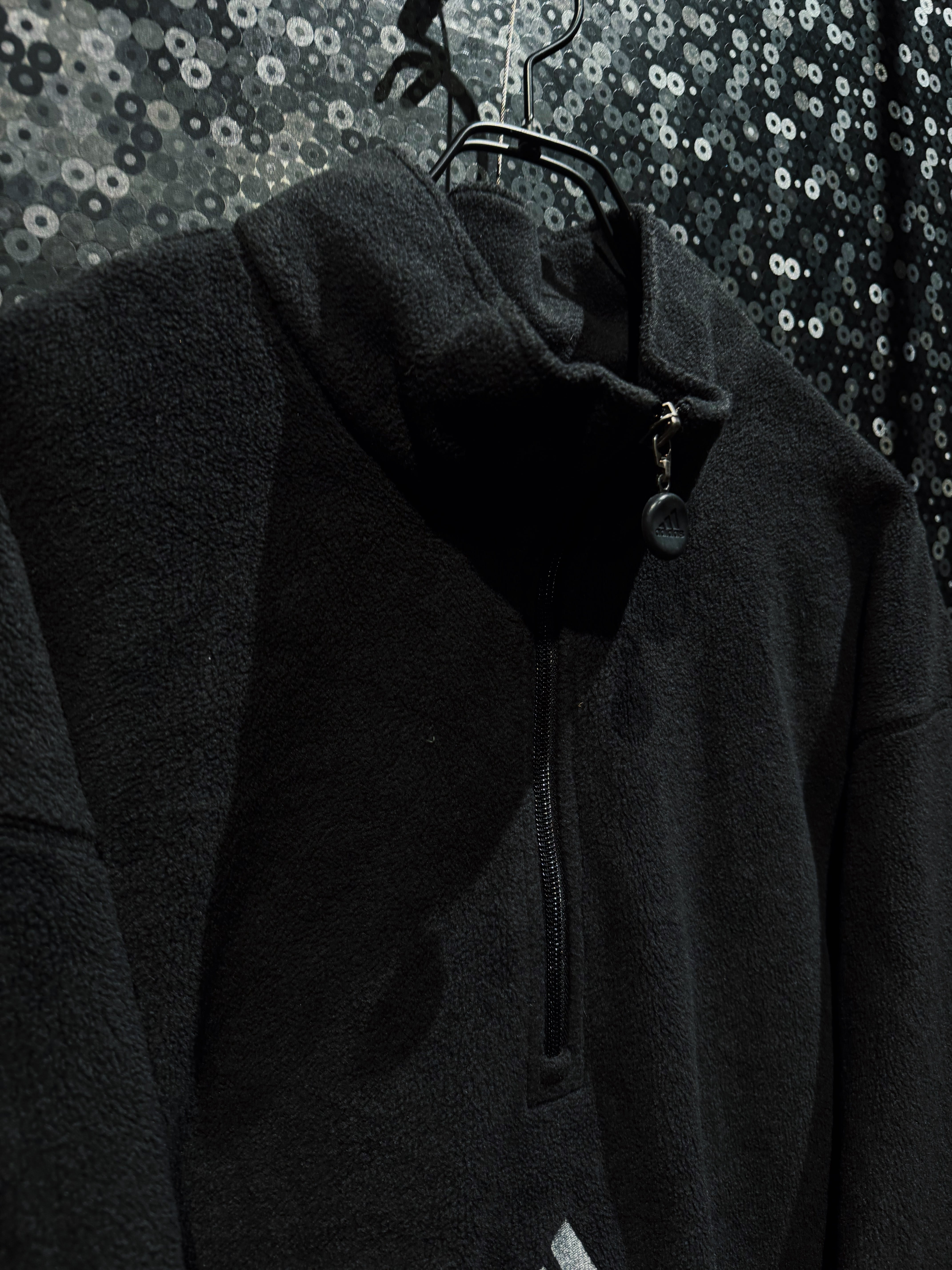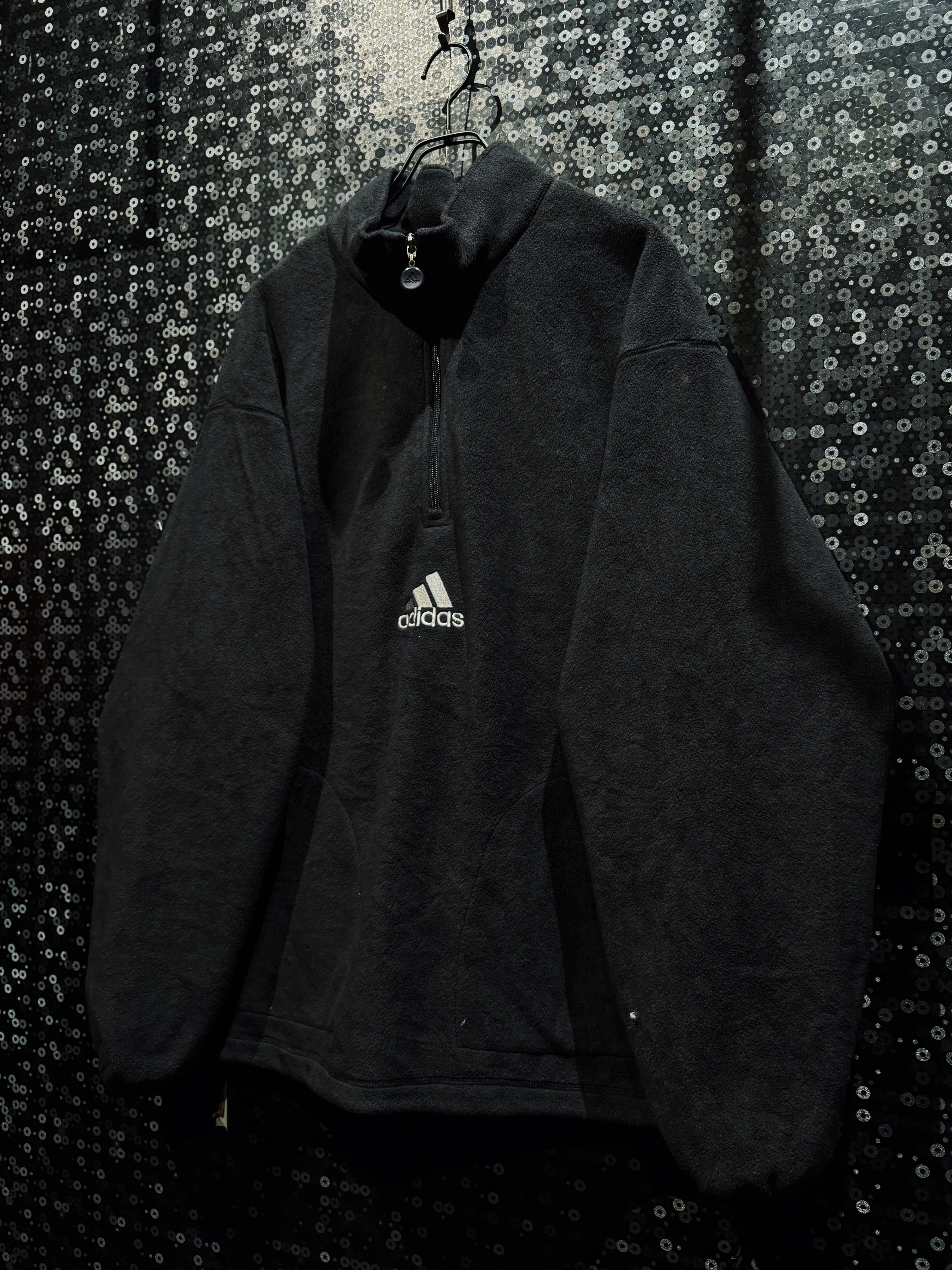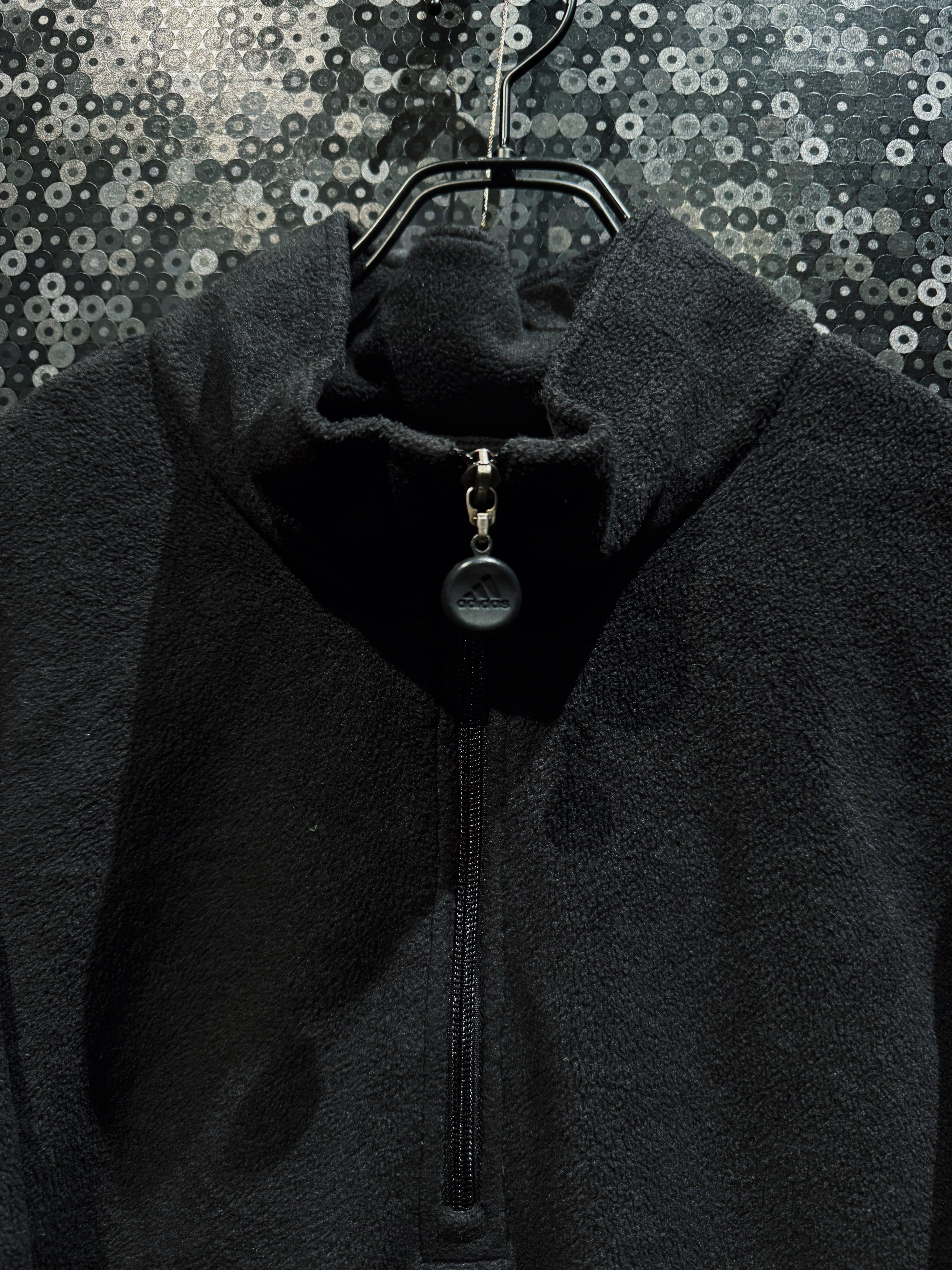 【ÆIEM】“adidas” vintage performance logo black fleece half zip pullover