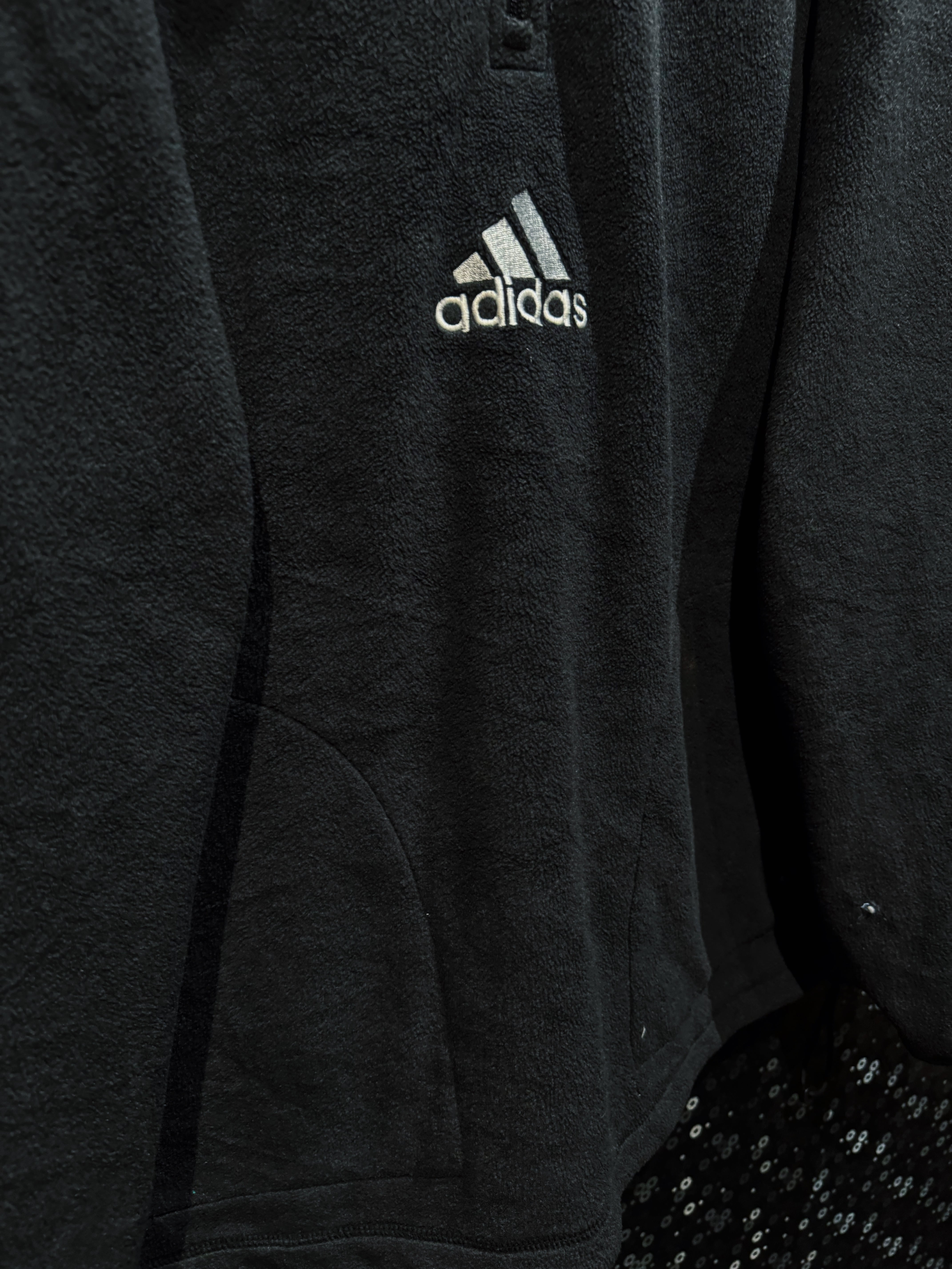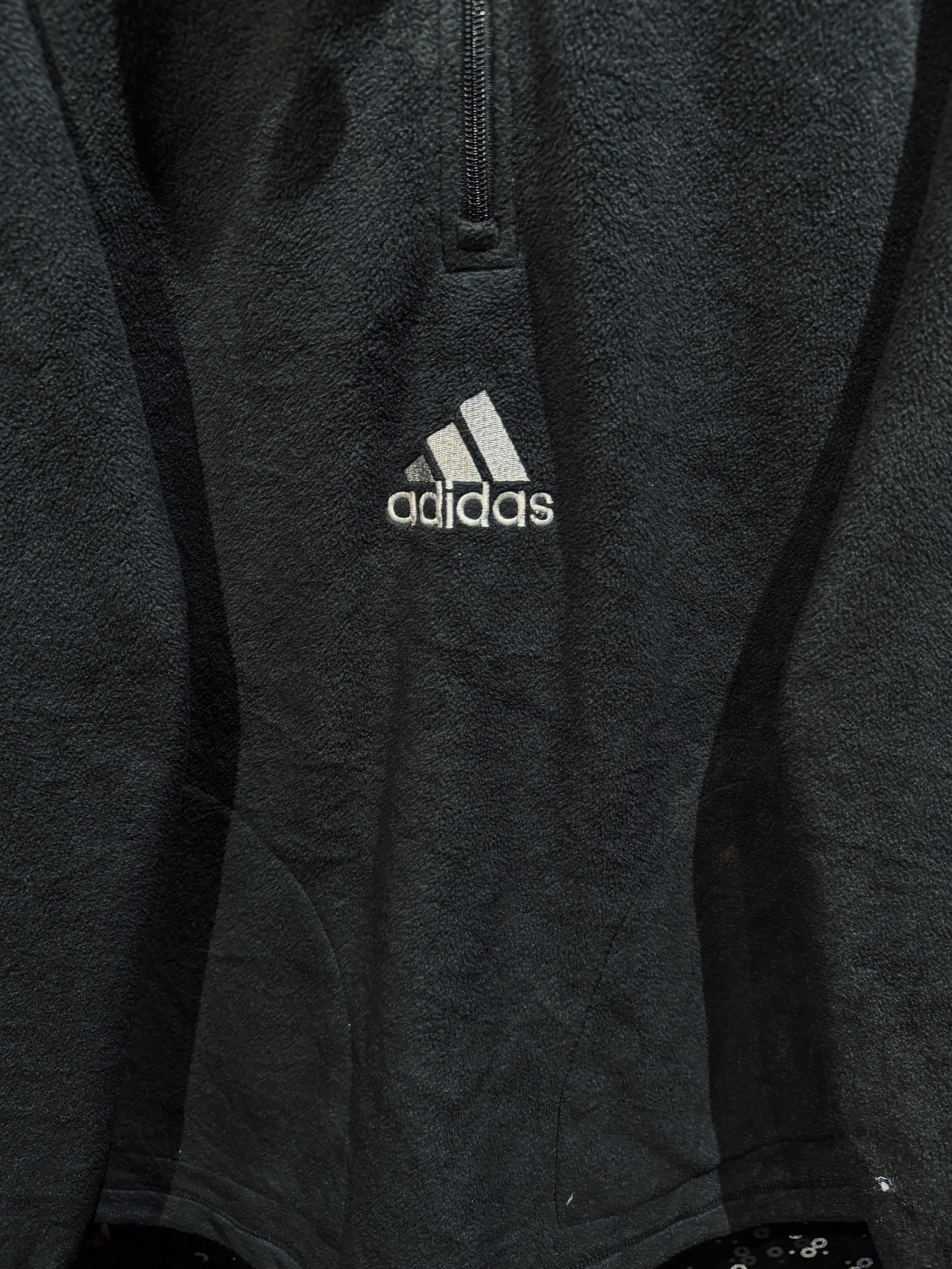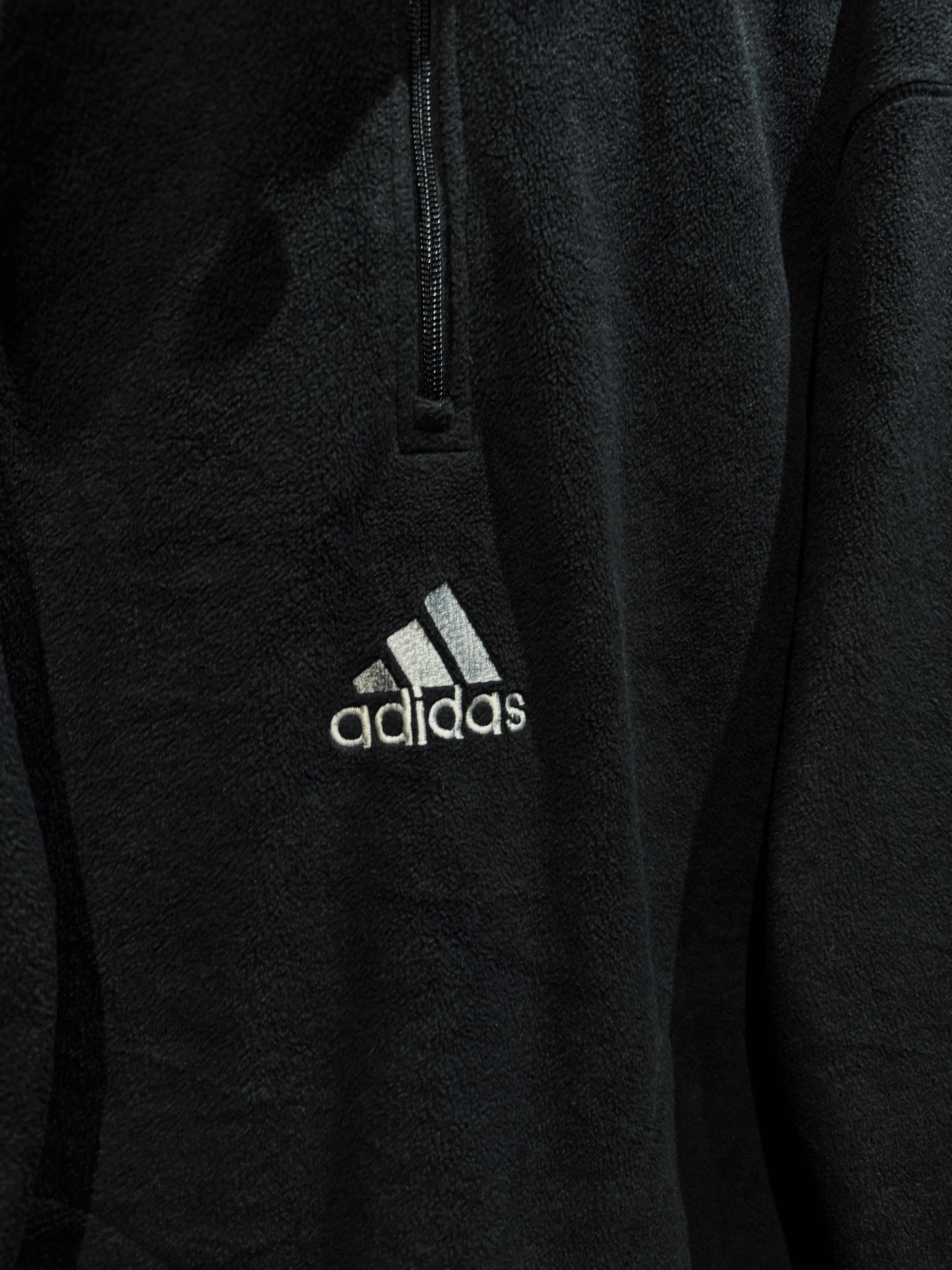 【ÆIEM】“adidas” vintage performance logo black fleece half zip pullover