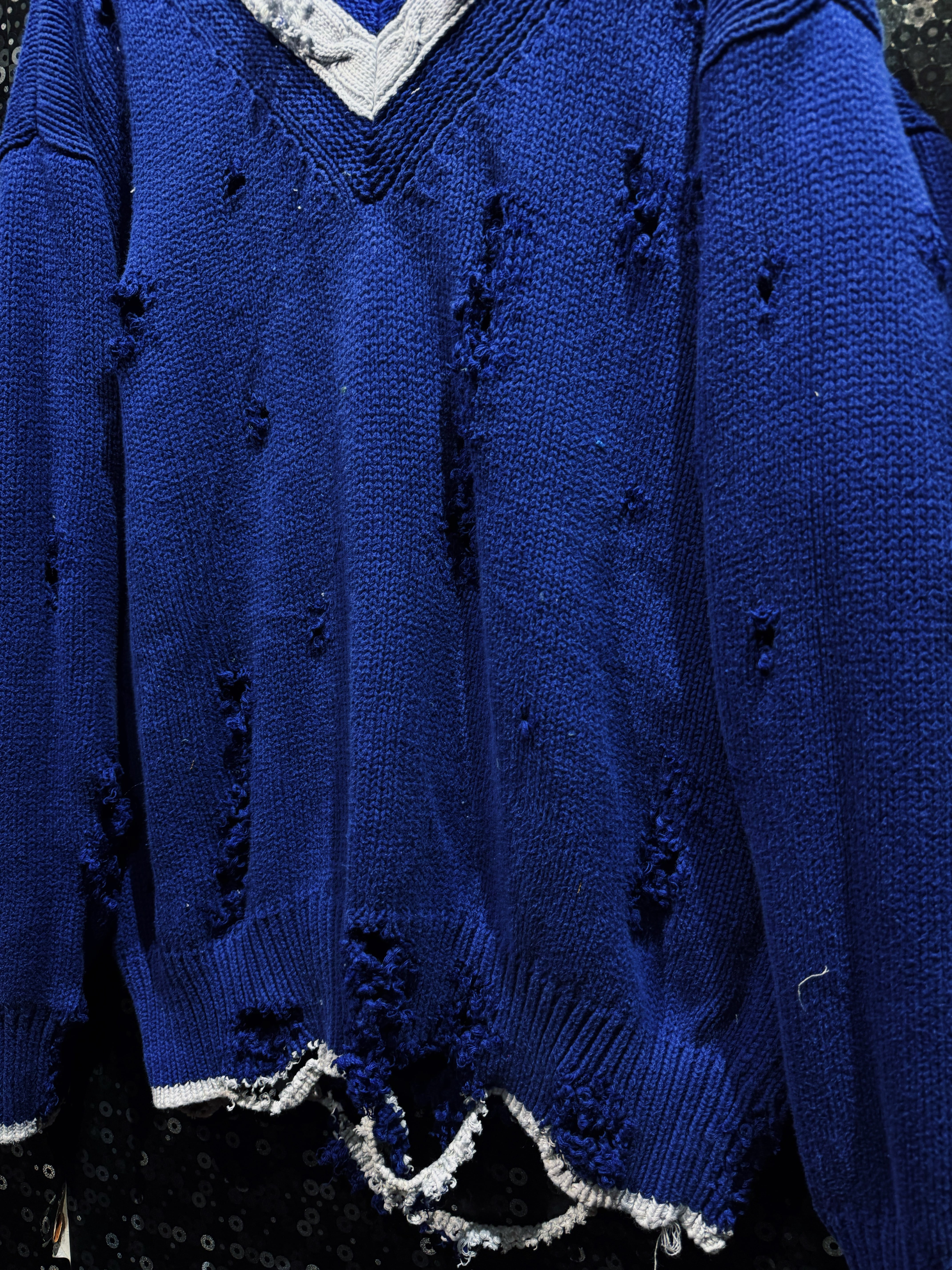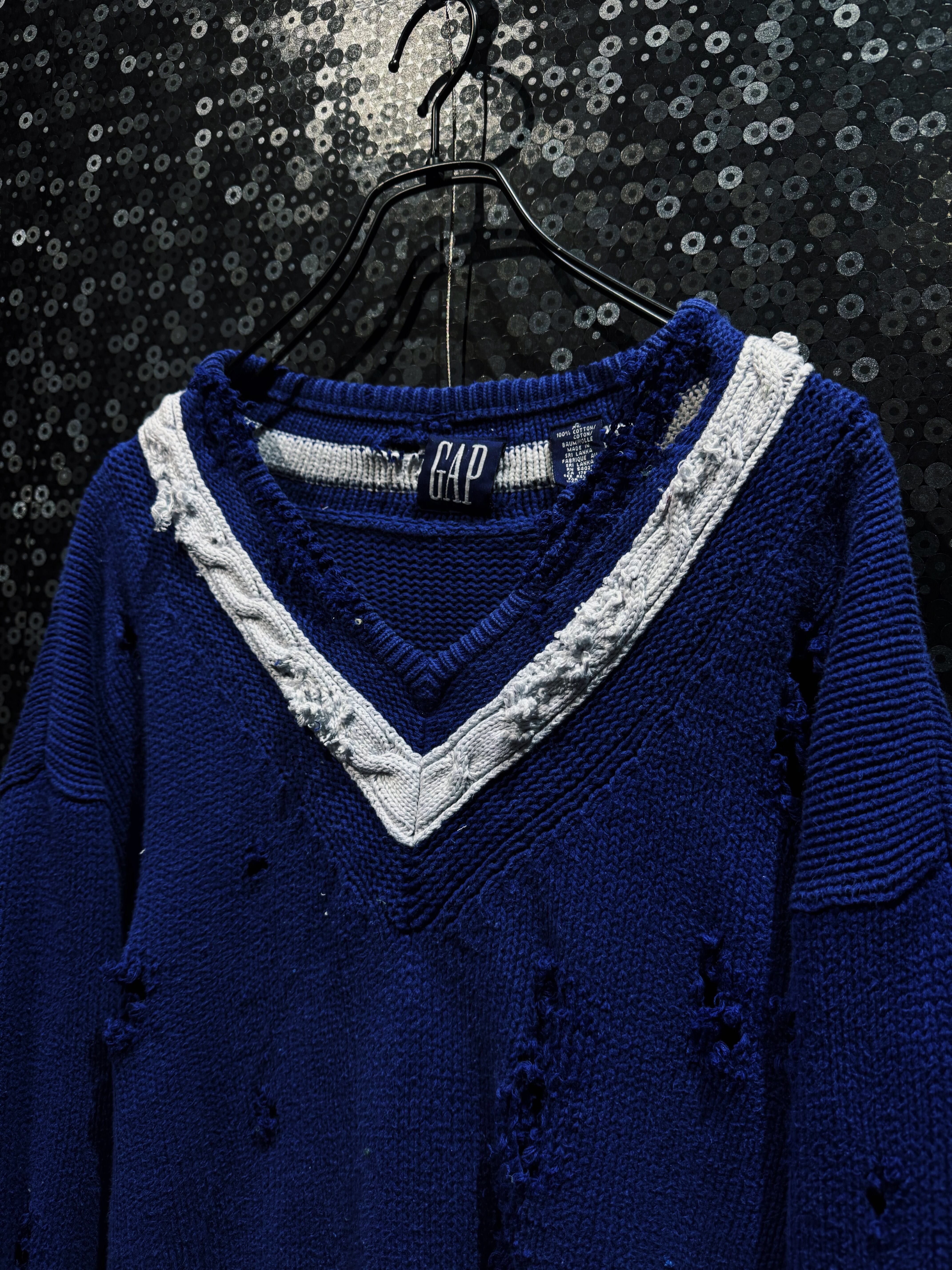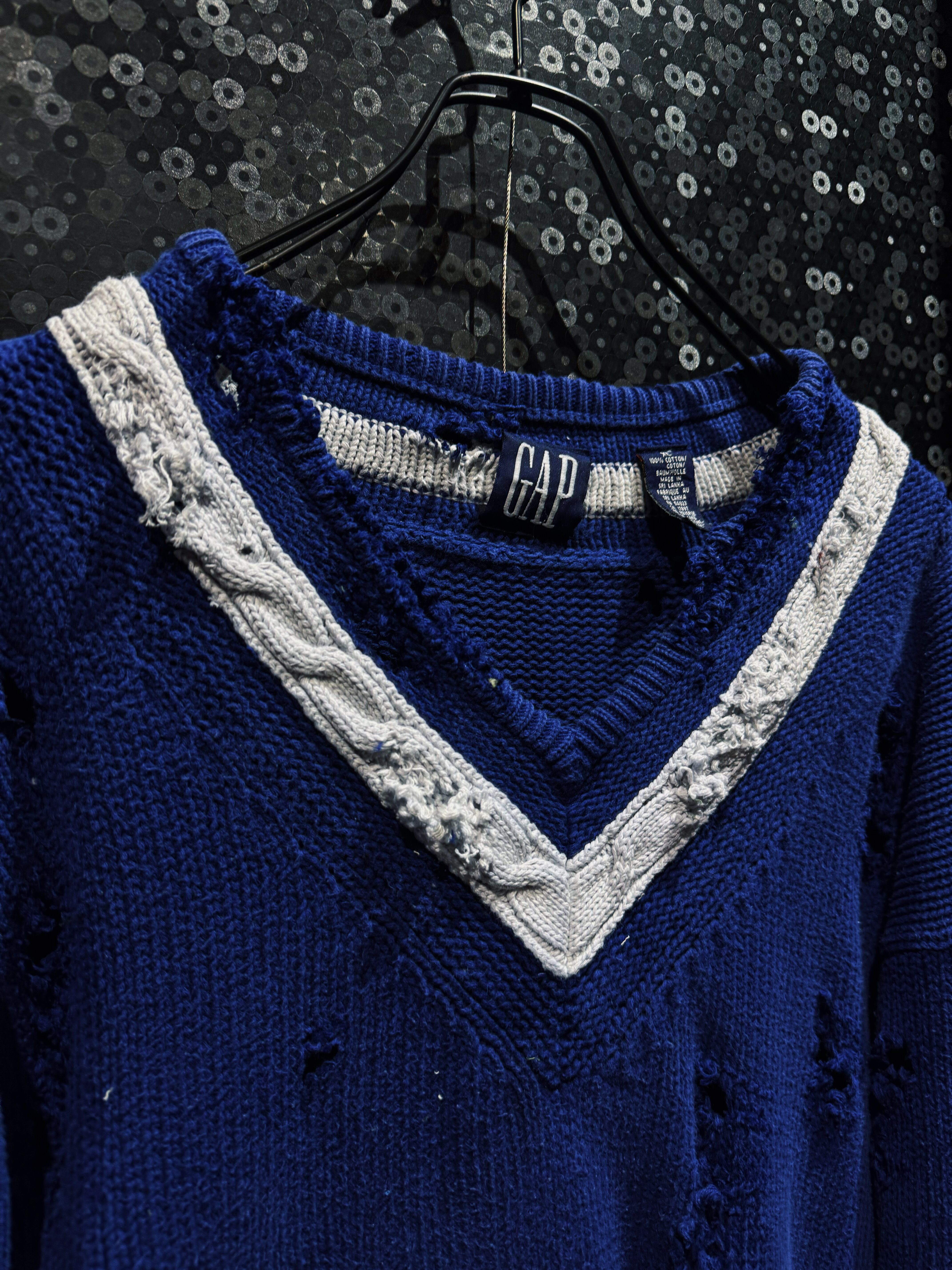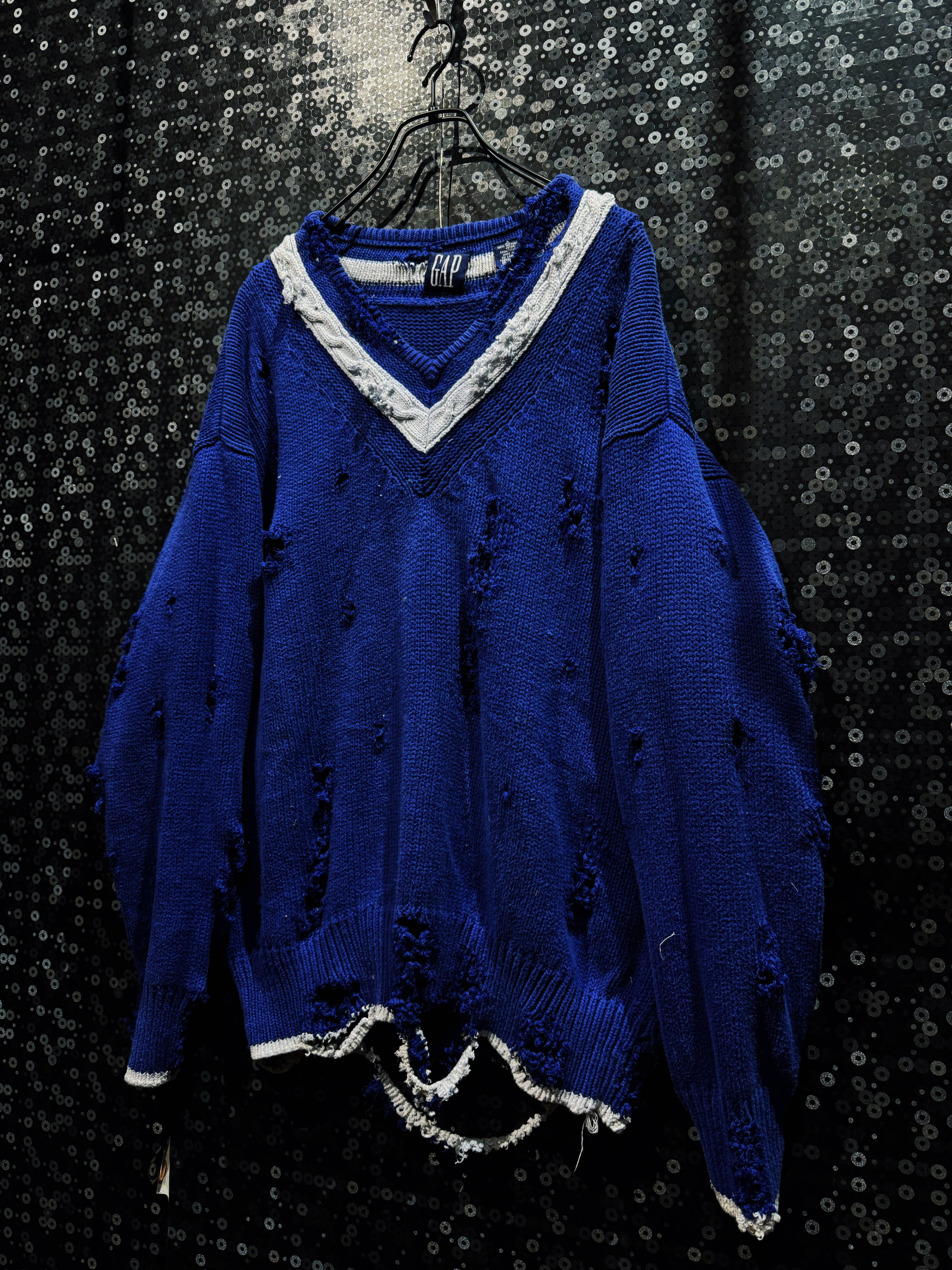 【ÆIEM】original “re:make” boro “GAP” royal blue V-neck damaged knit sweater