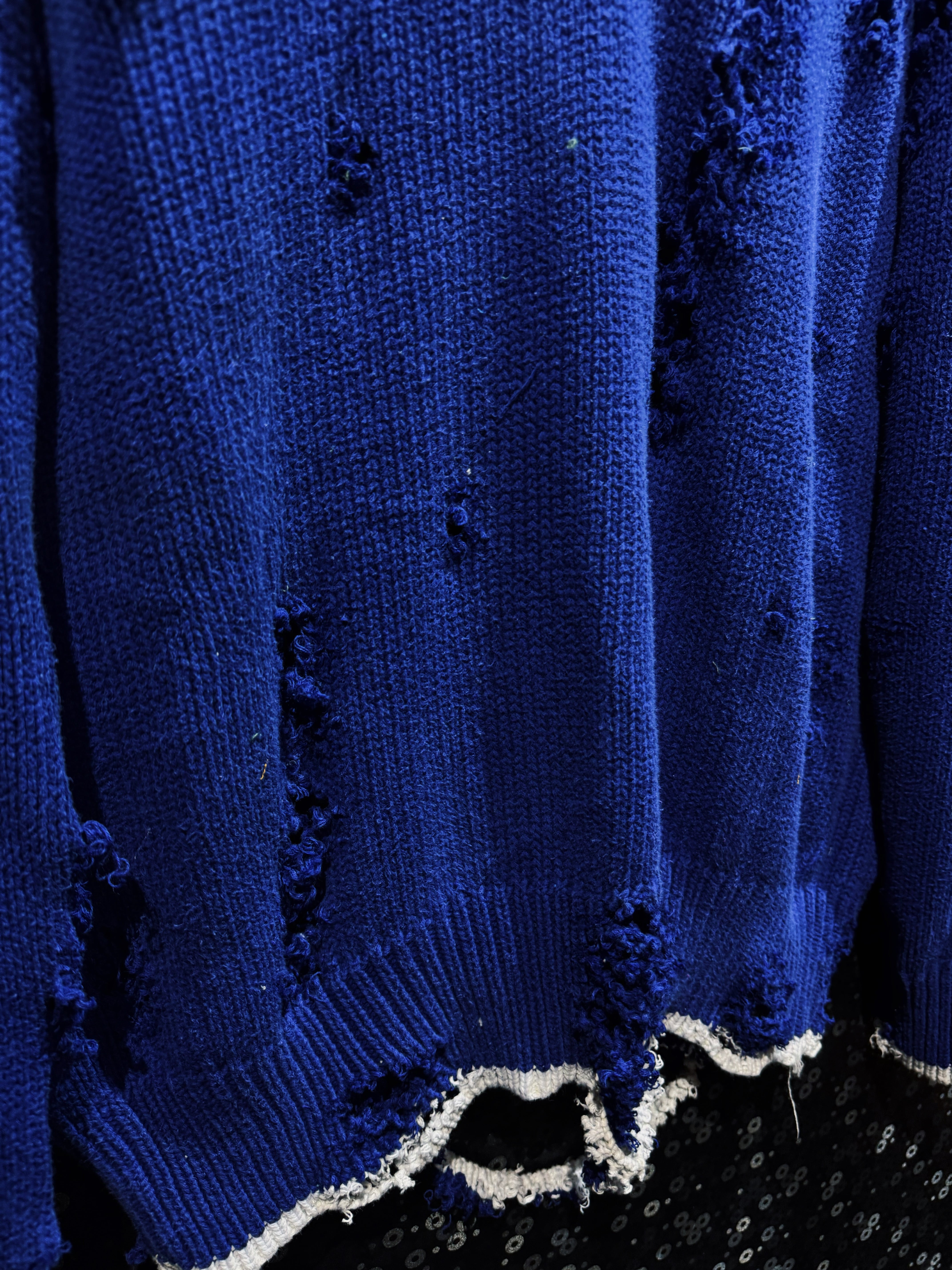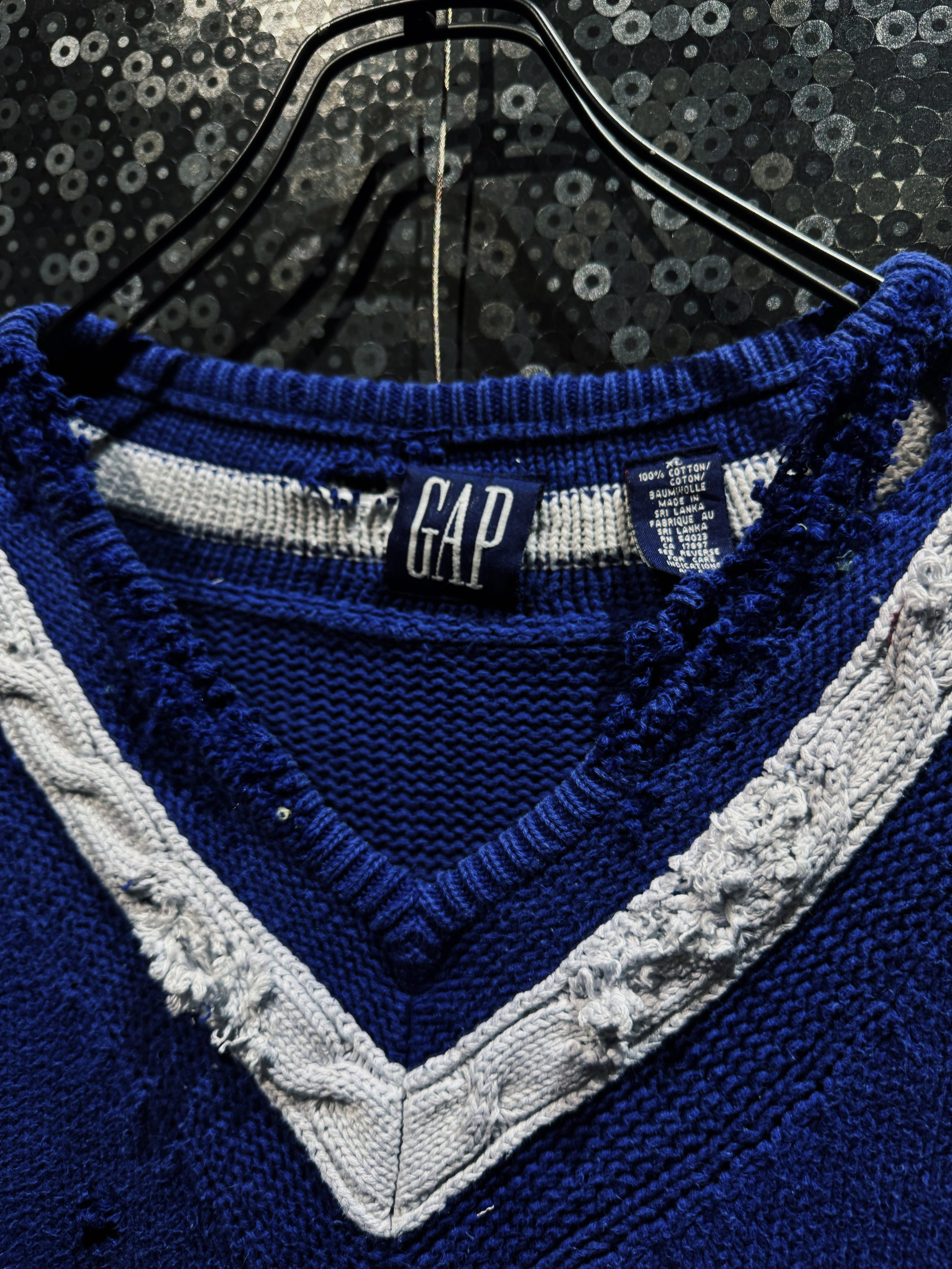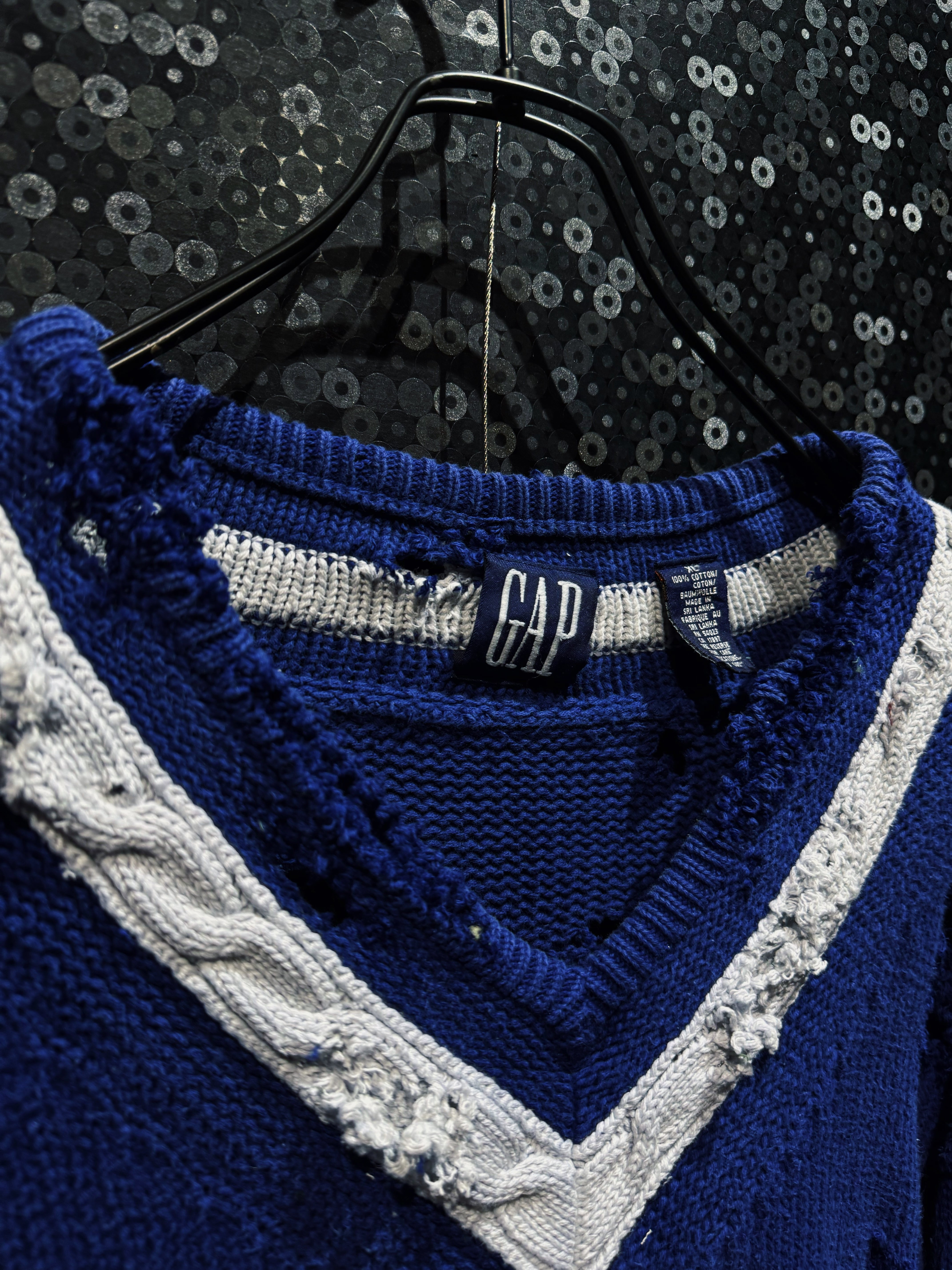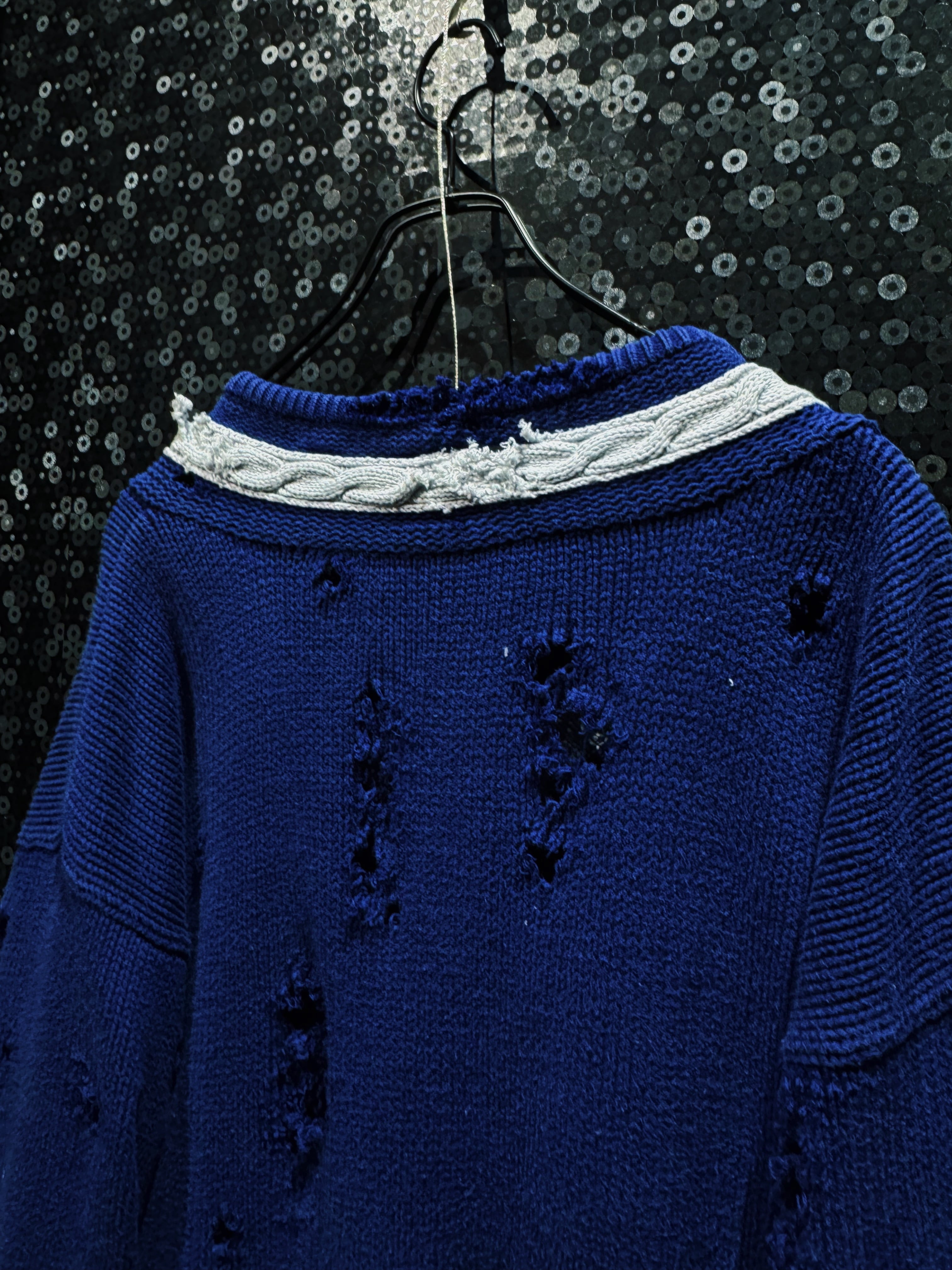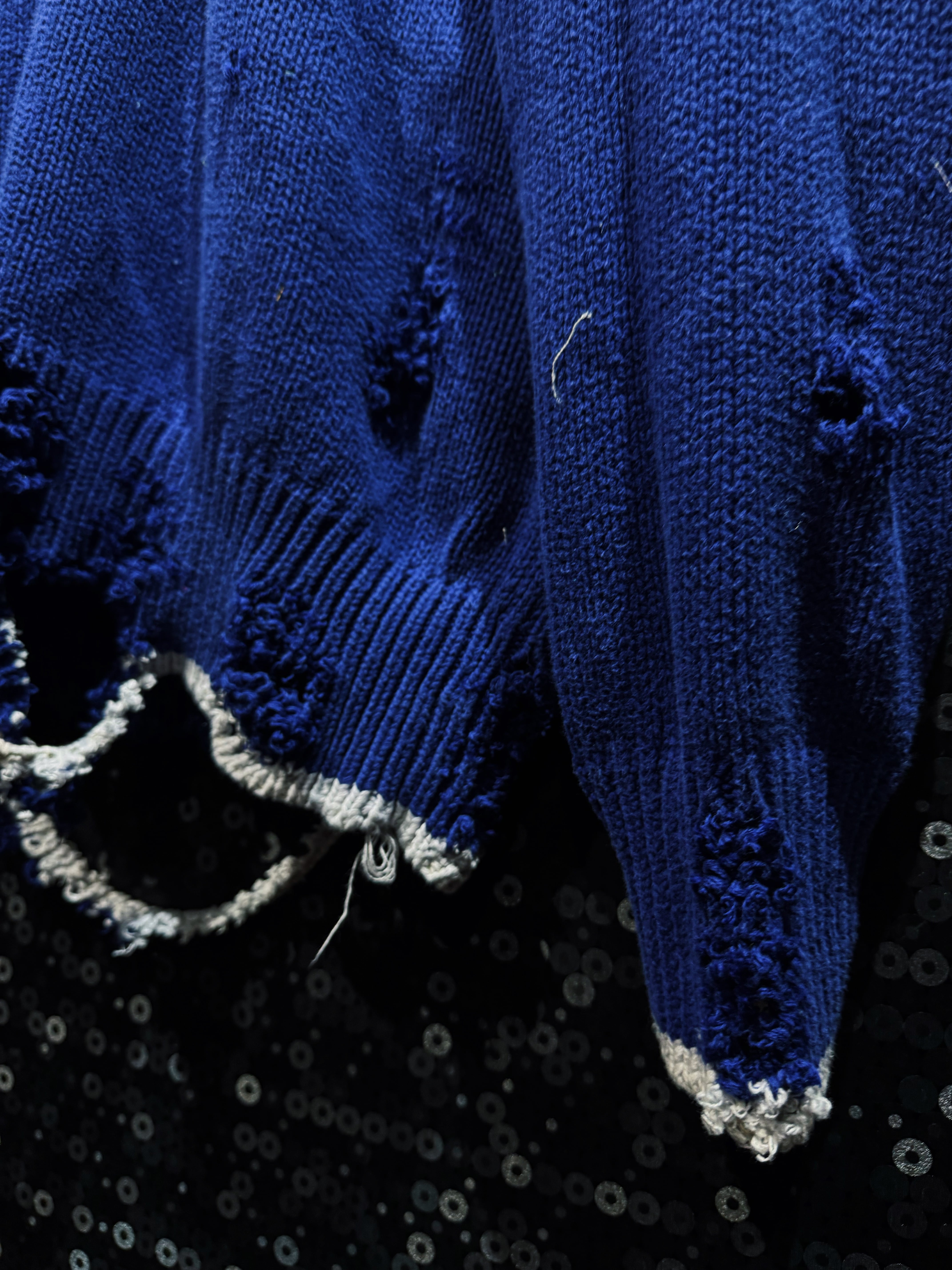 【ÆIEM】original “re:make” boro “GAP” royal blue V-neck damaged knit sweater