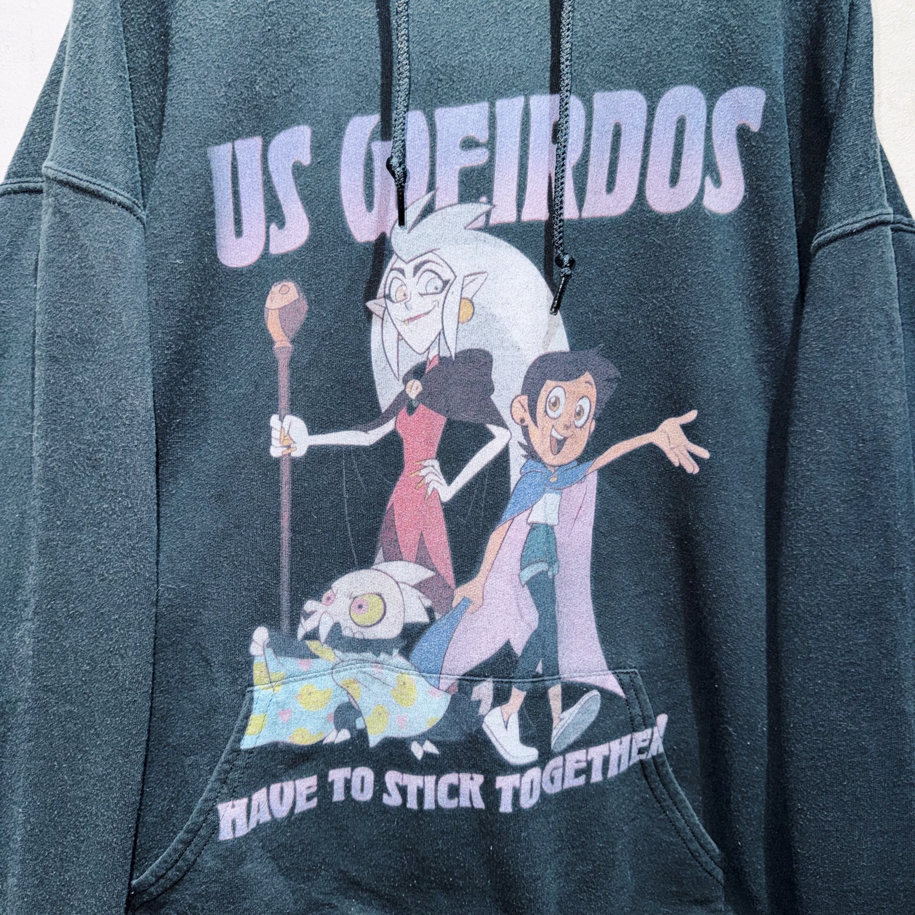 こちらは2020年からディズニー・チャンネルで放送が開始されたアニメーション番組『アウルハウス』のプルオーバーフーディー。2022年からは日本でもDisney +で見れるようになっている作品です。