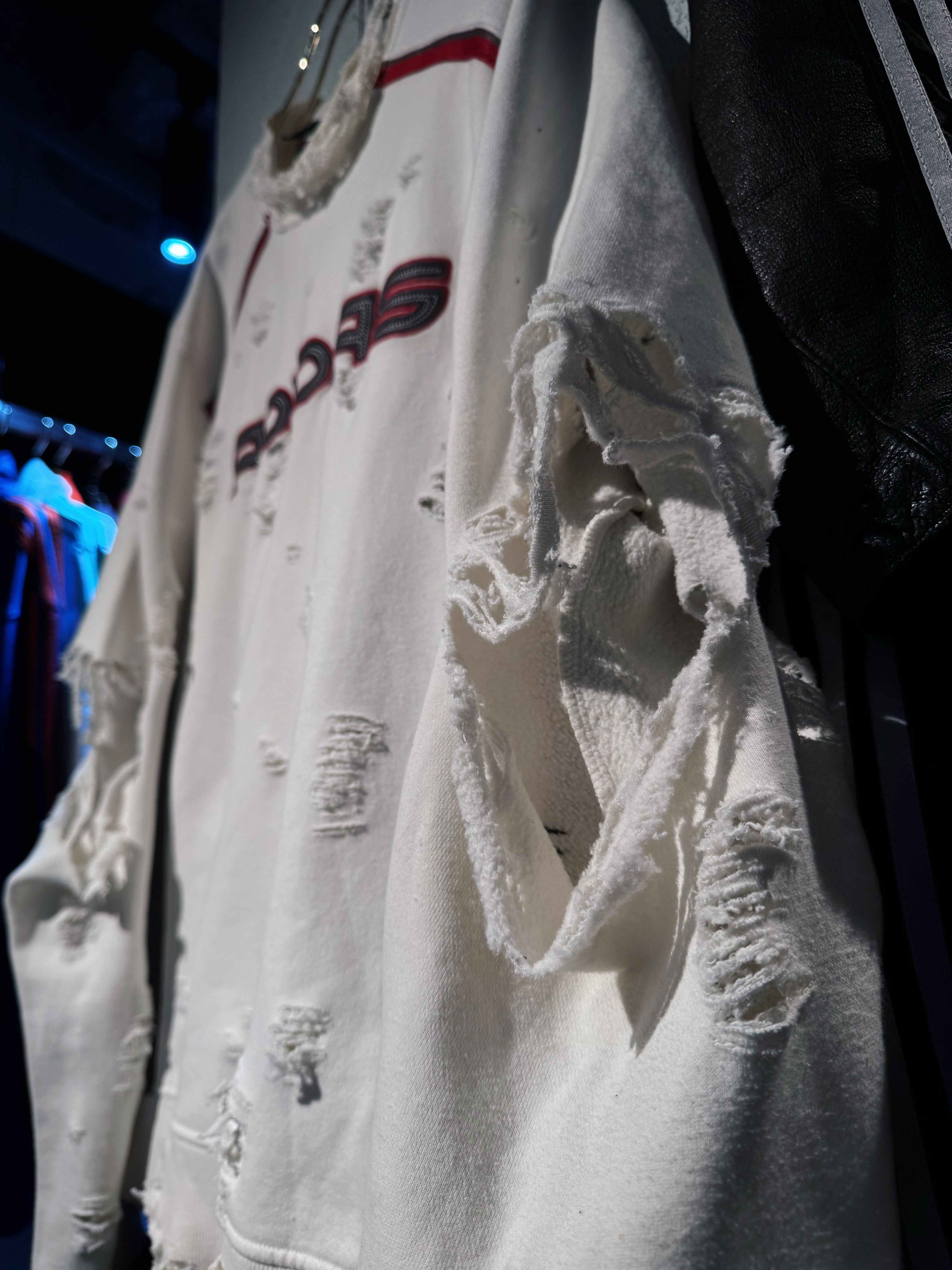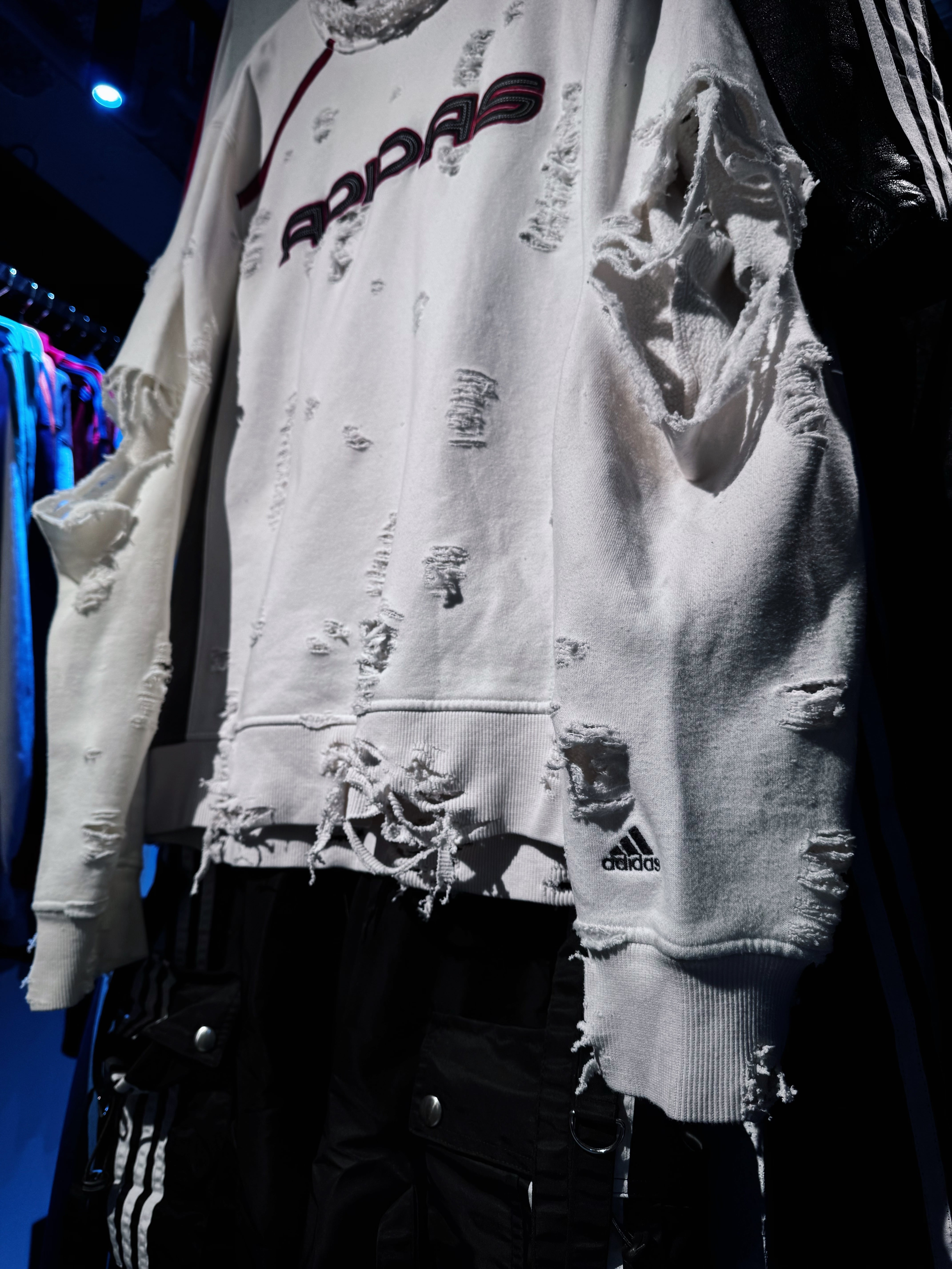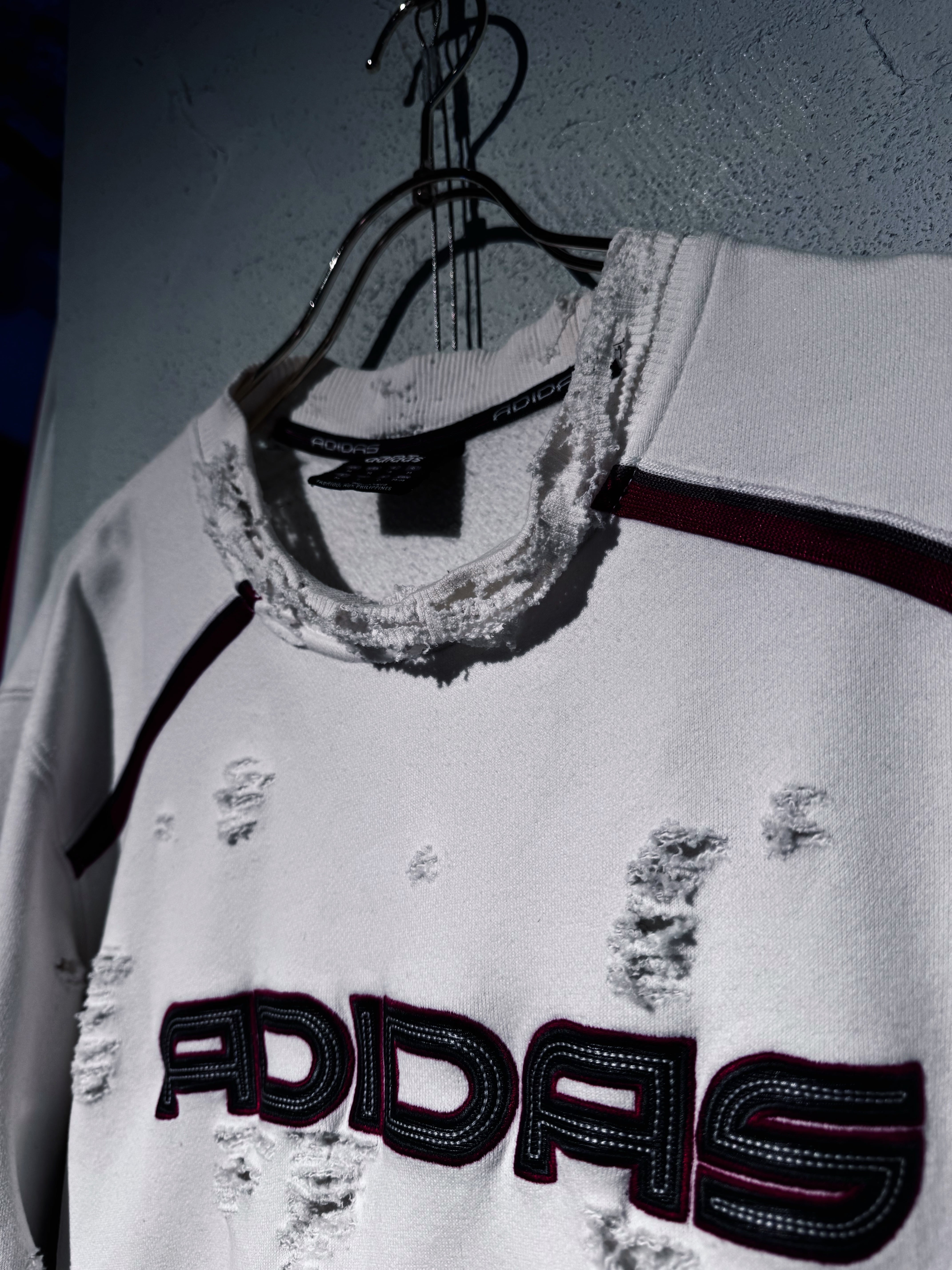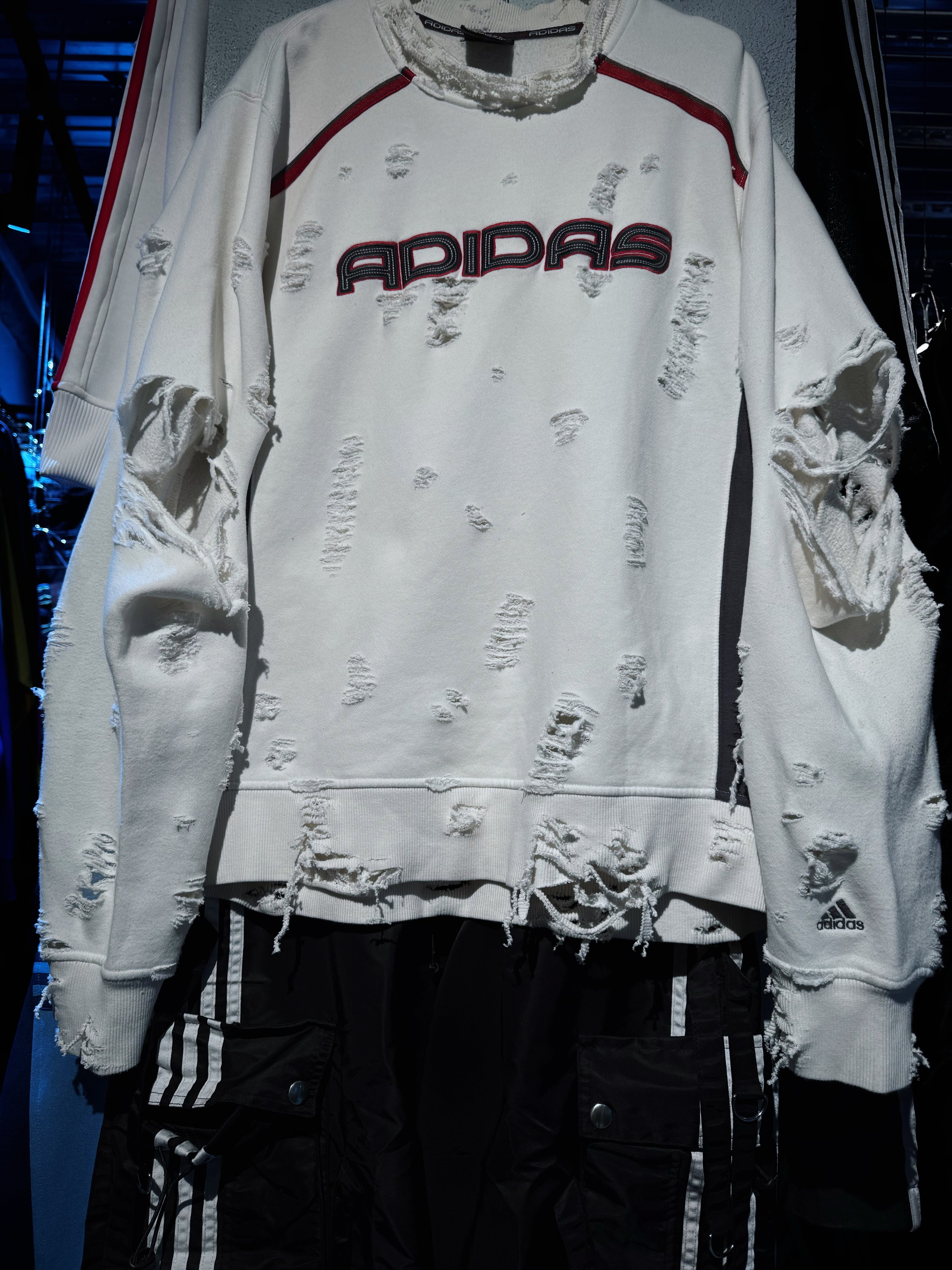 "ADIDAS"のボディを贅沢に採用したボロスウェット。デザイナーズブランドでもダメージアイテムが近年増えてきていますが、それに引けを取らない精密なダメージ技術は間違いなく一流。