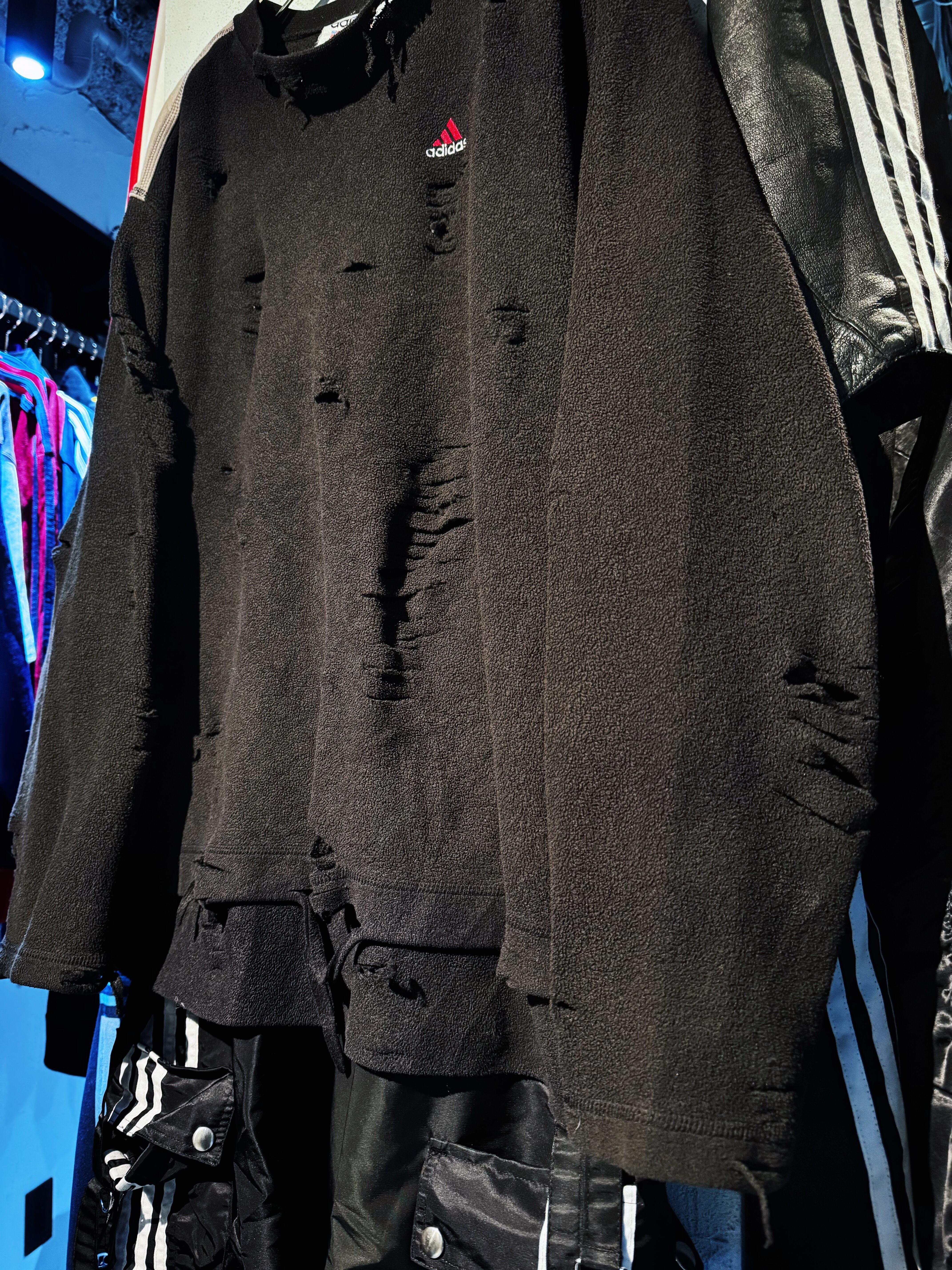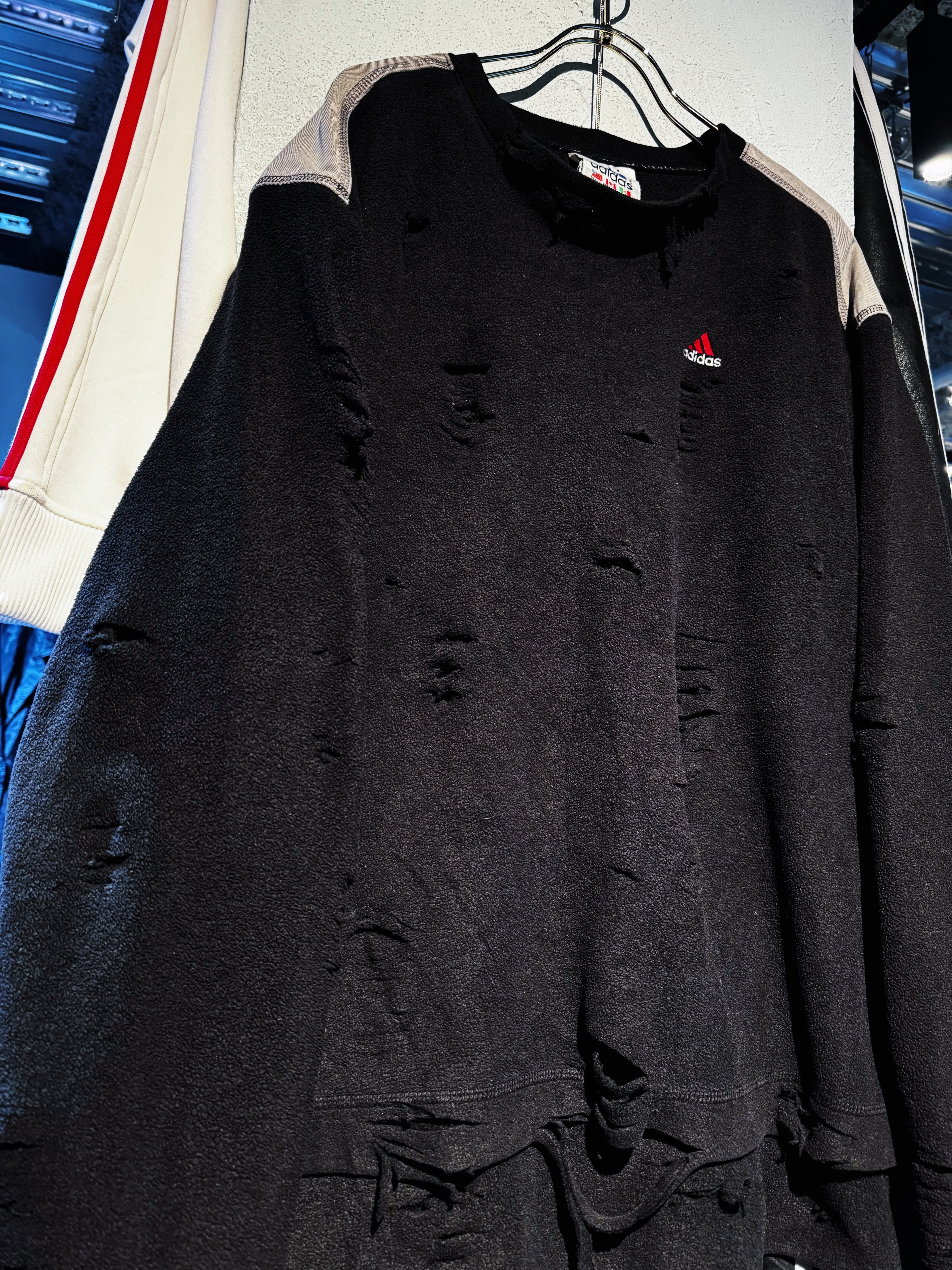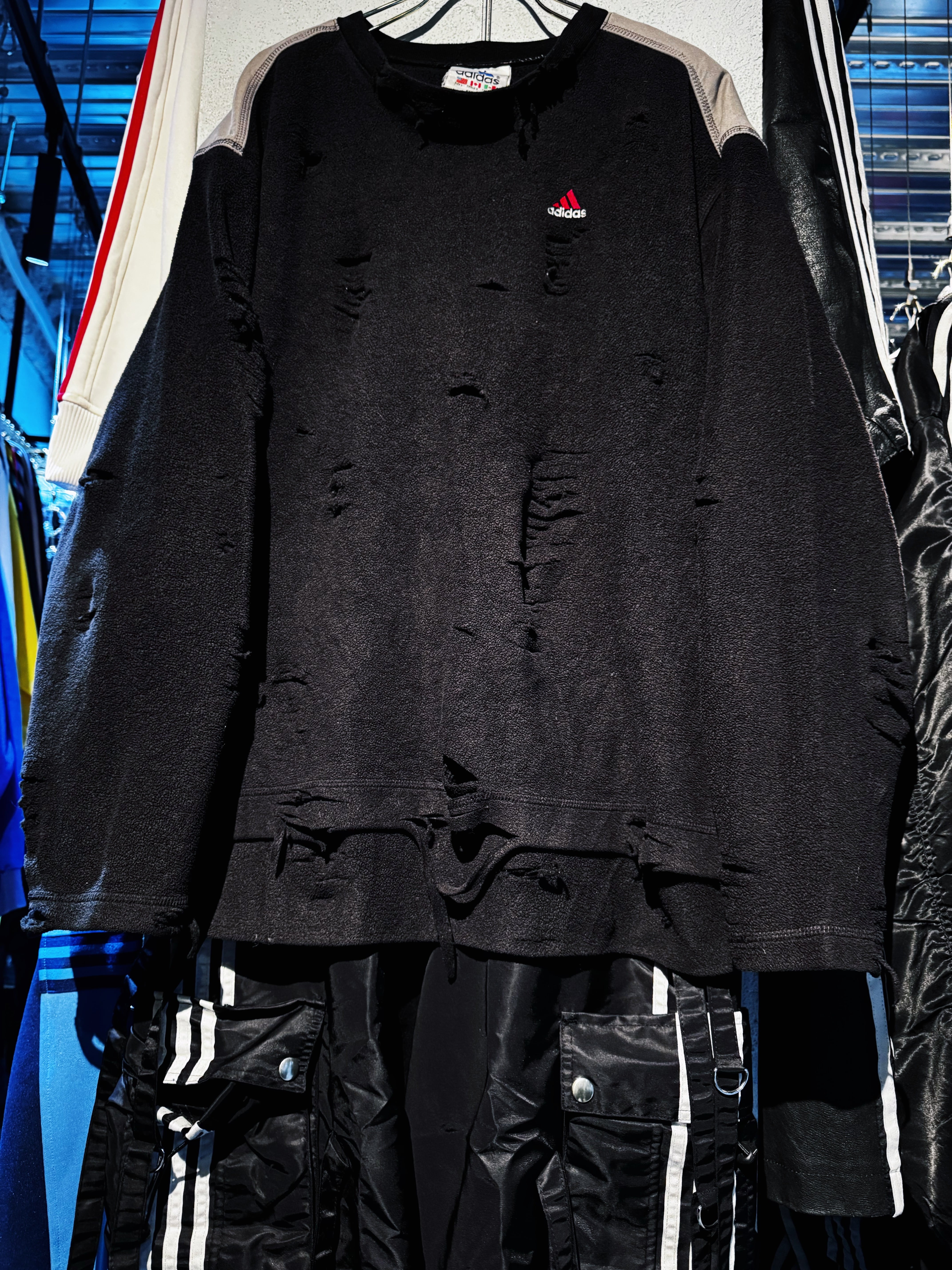 "ADIDAS"のボディを贅沢に採用したボロスウェット。デザイナーズブランドでもダメージアイテムが近年増えてきていますが、それに引けを取らない精密なダメージ技術は間違いなく一流。