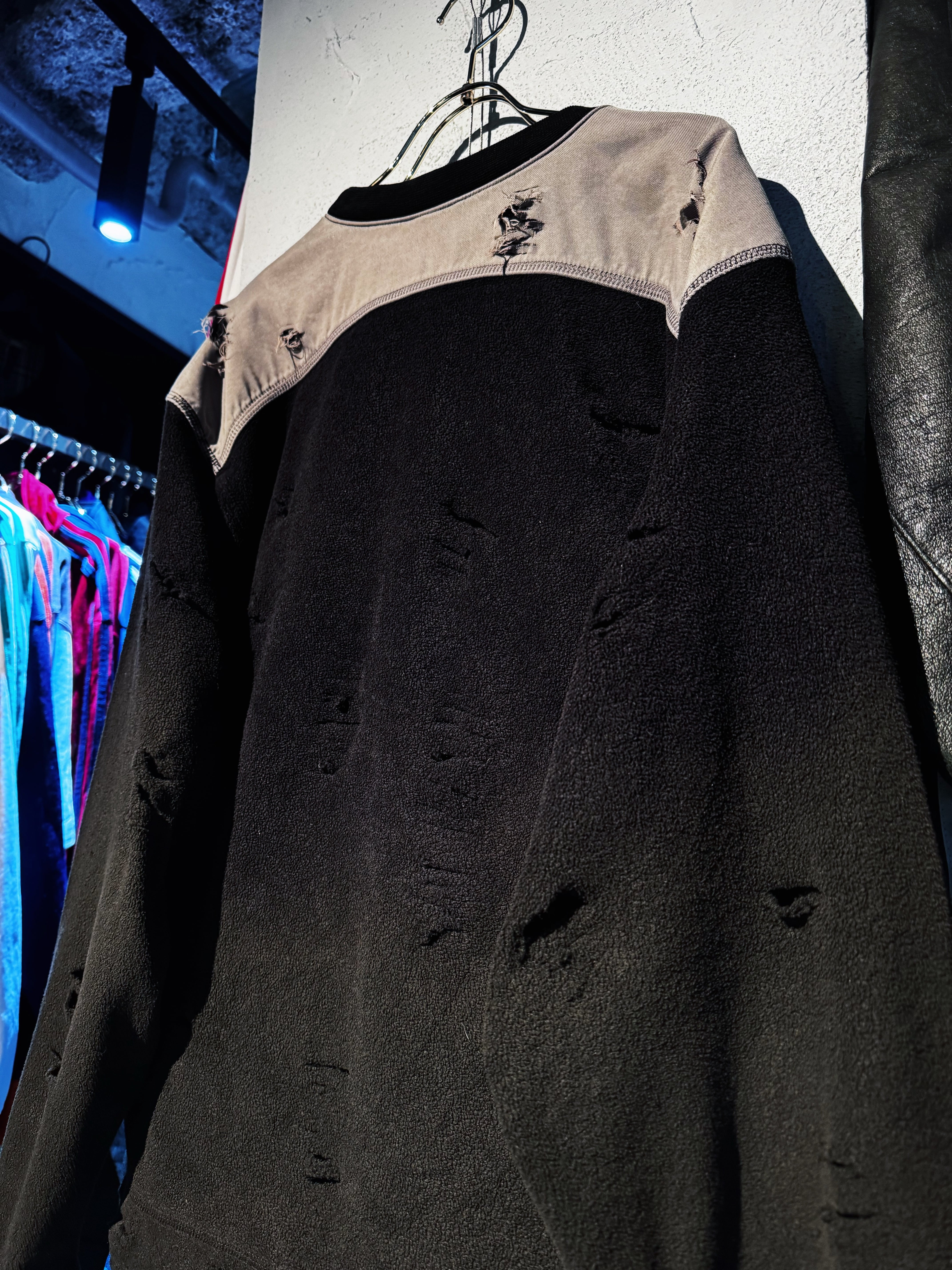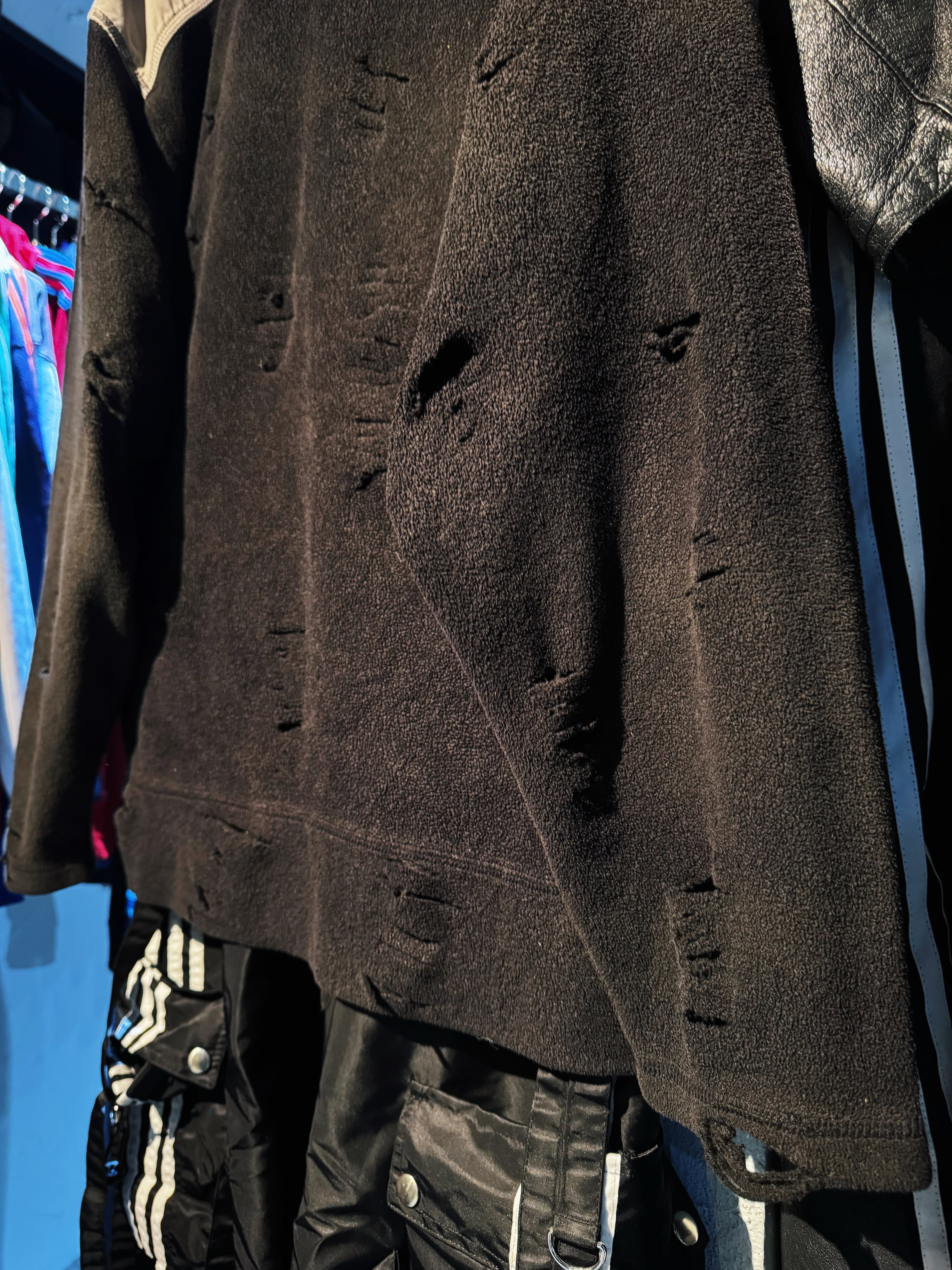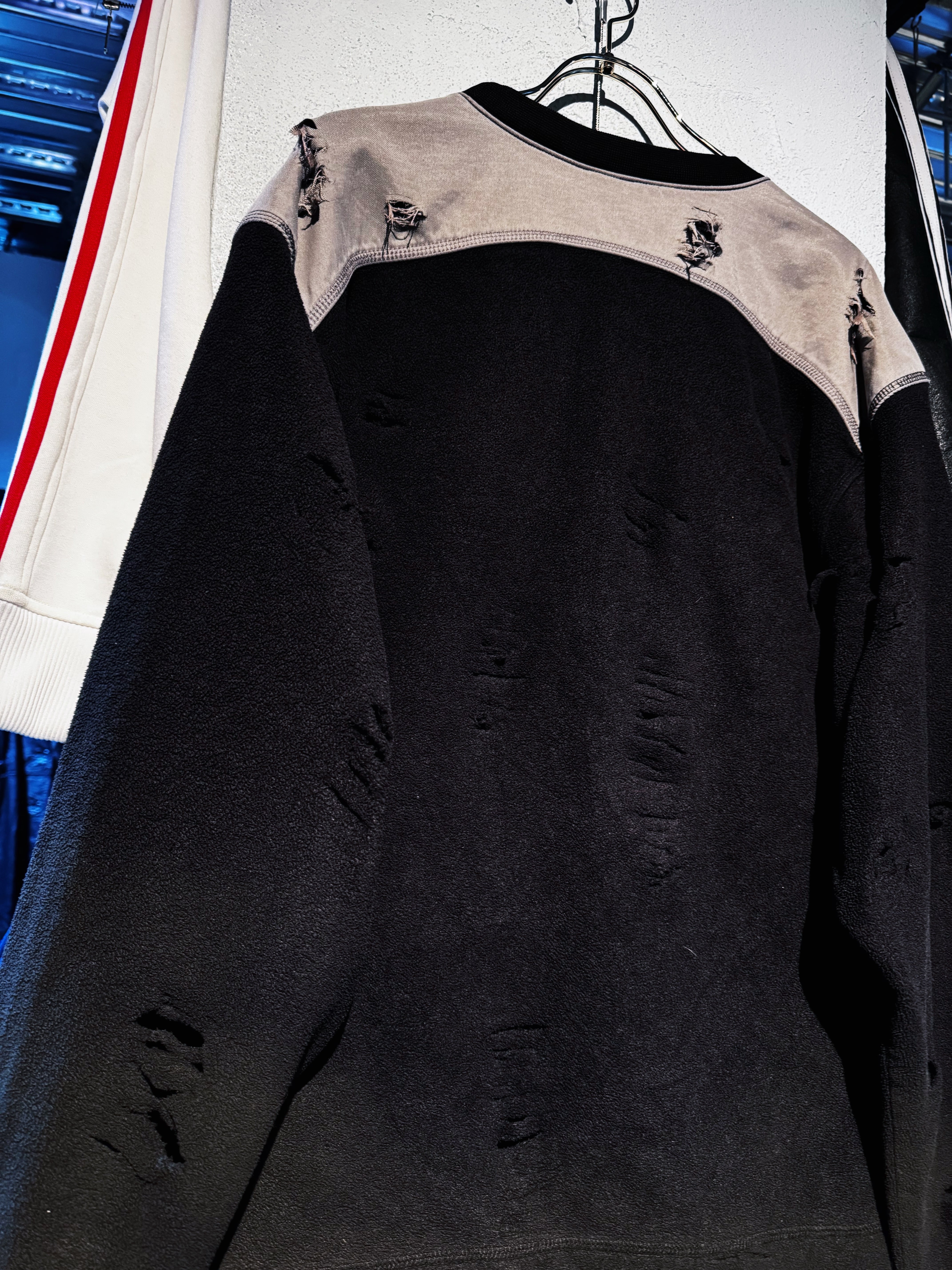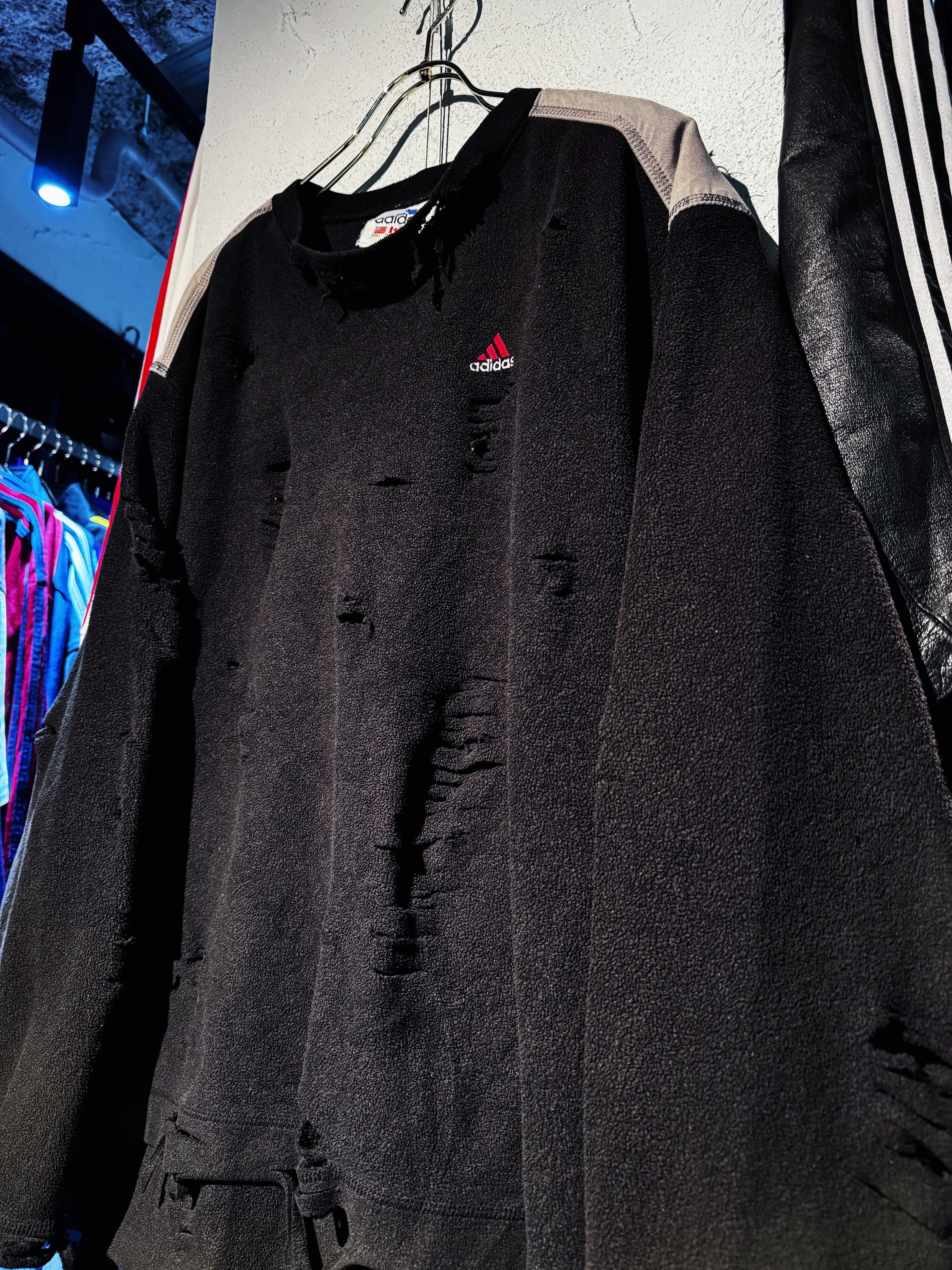 "ADIDAS"のボディを贅沢に採用したボロスウェット。デザイナーズブランドでもダメージアイテムが近年増えてきていますが、それに引けを取らない精密なダメージ技術は間違いなく一流。