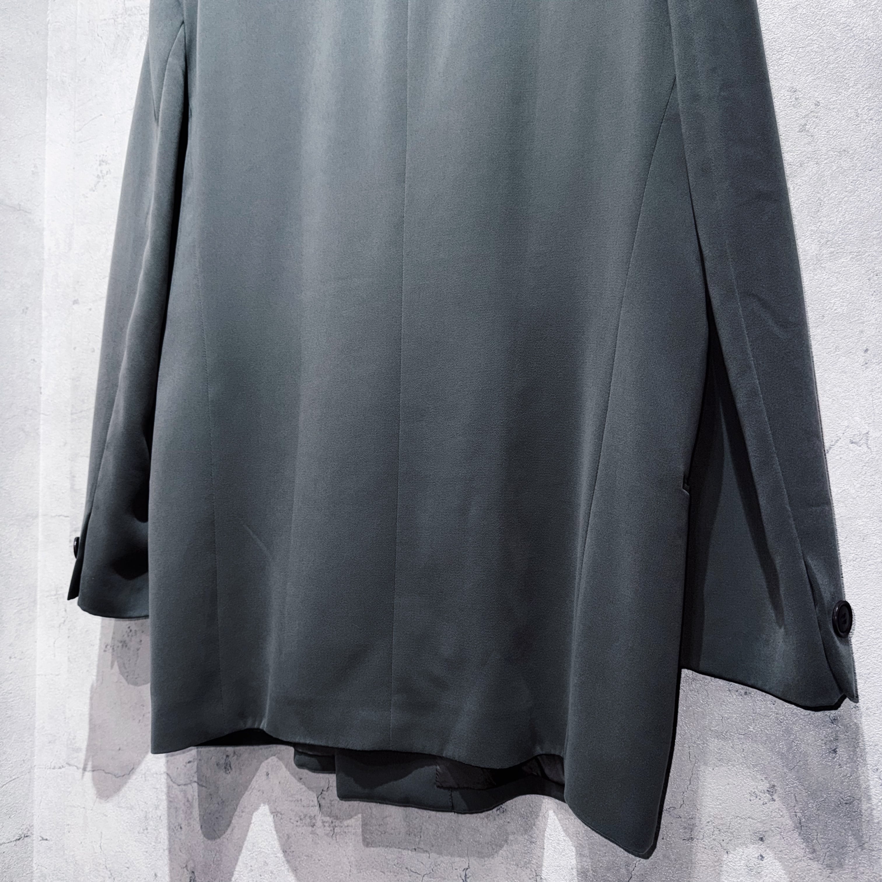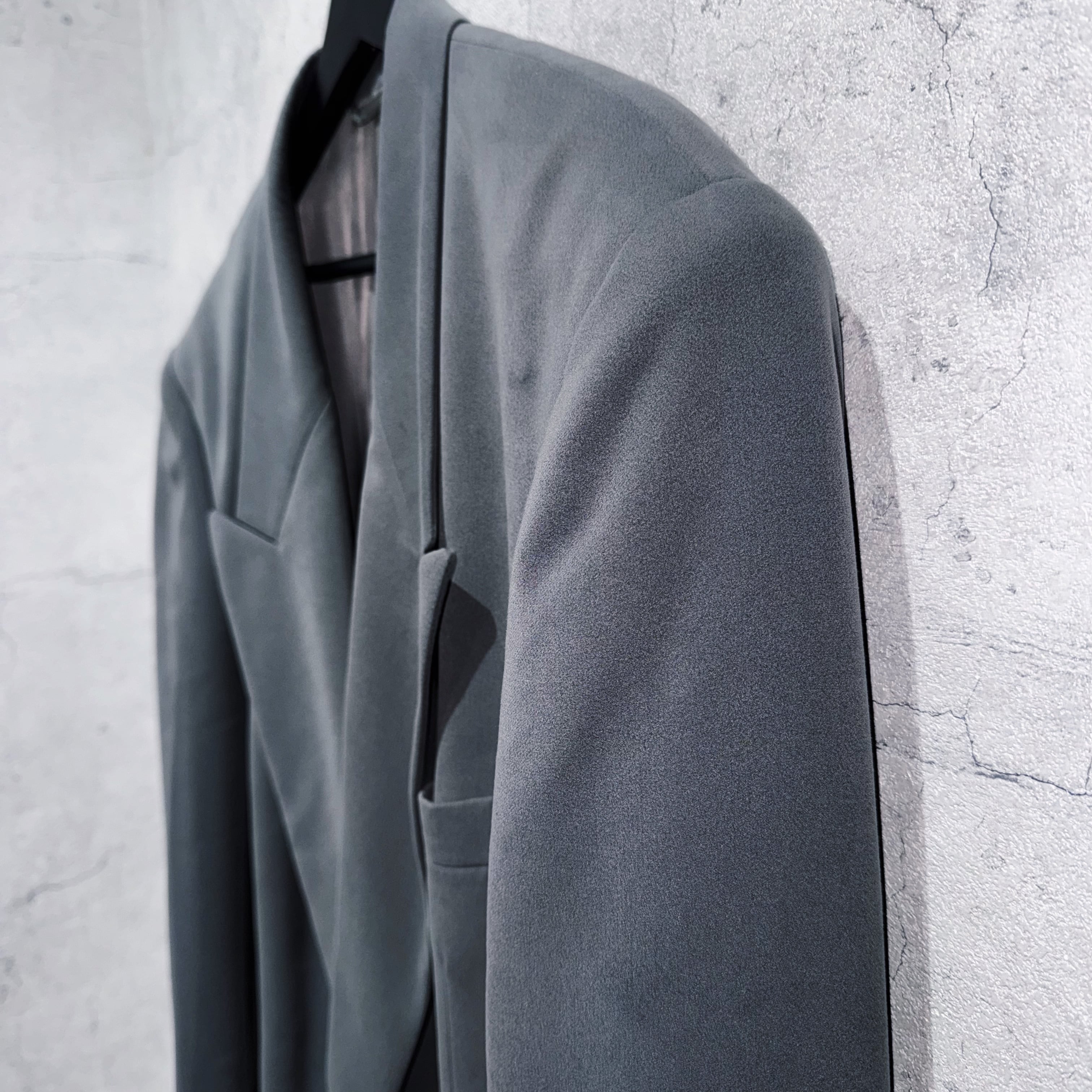 重厚感と高級感を兼ね備えたマットグレーカラーを身に纏ったセットアップ。2Bでダブルブレスト、ピークドラペルに加え立体感を生み出してくれるパワーショルダーで圧巻の着こなしを叶えます。