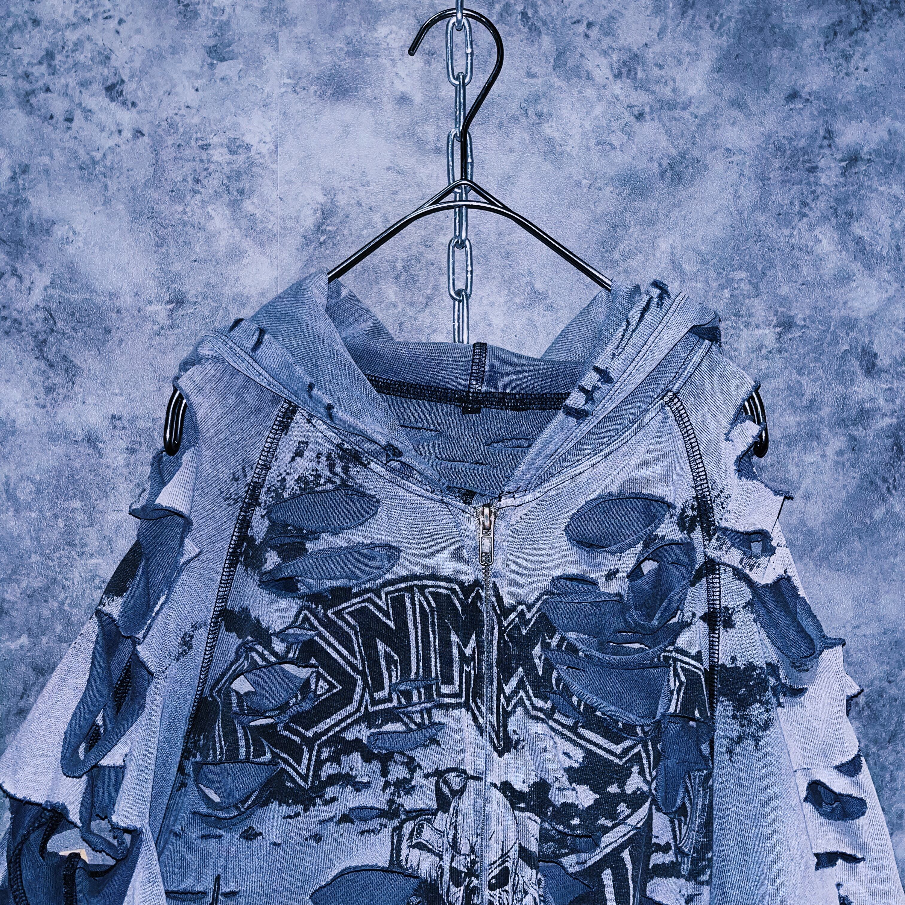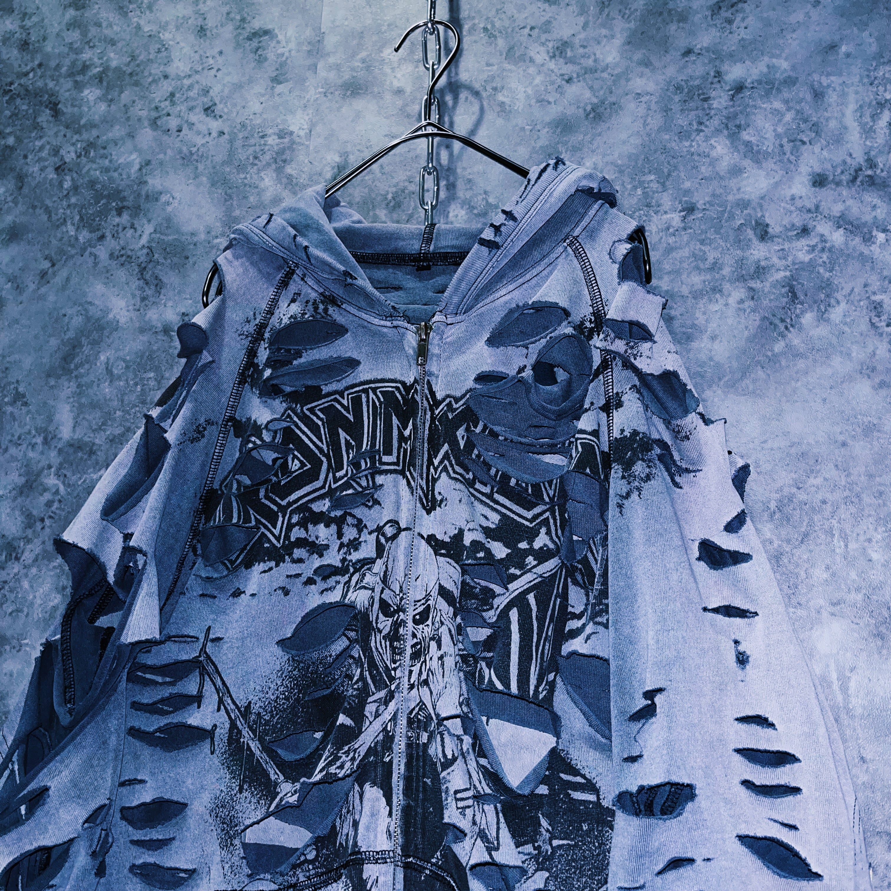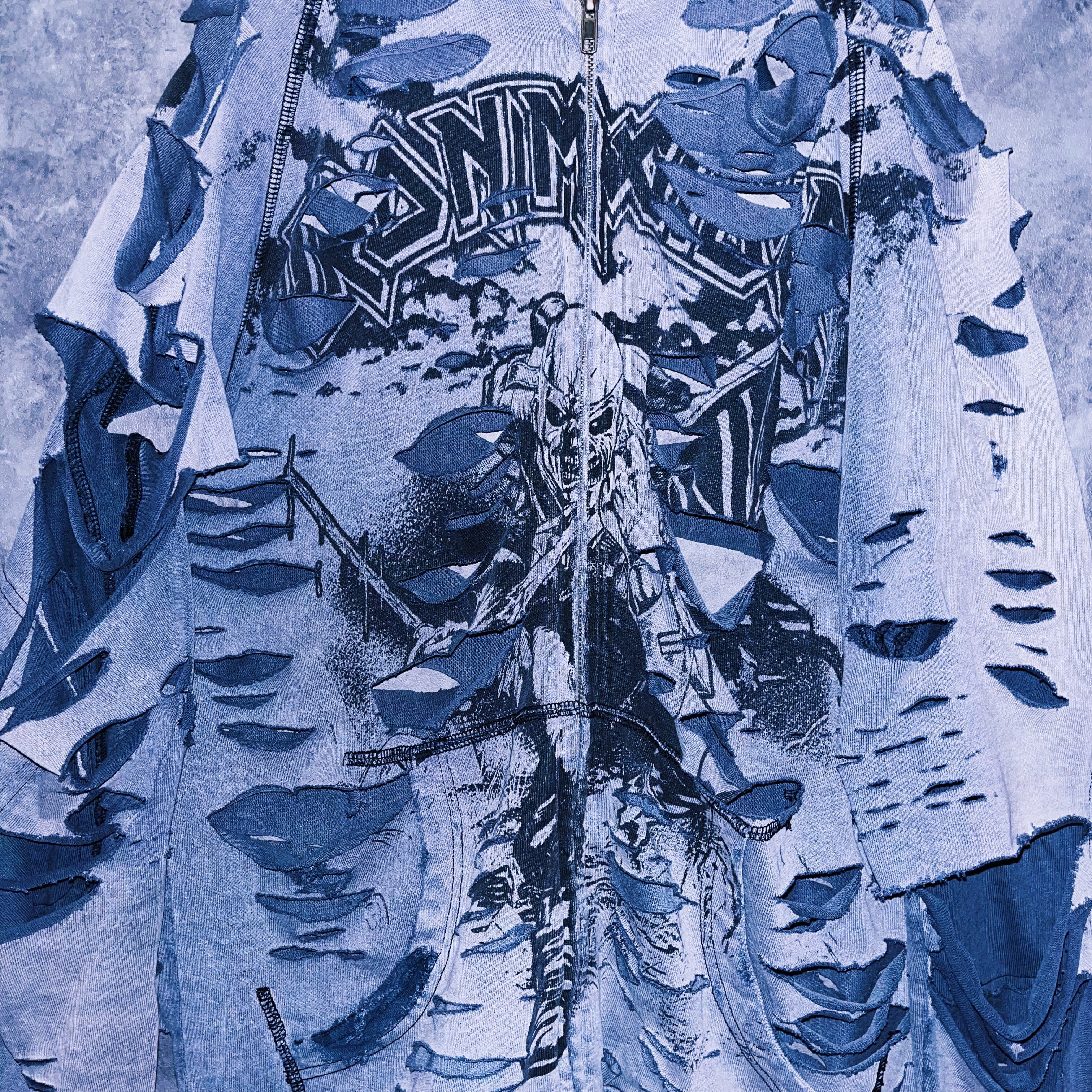 ヴィンテージ“IRON MAIDEN”プリントデザインクラッシュドカスタムジップアップフーディ