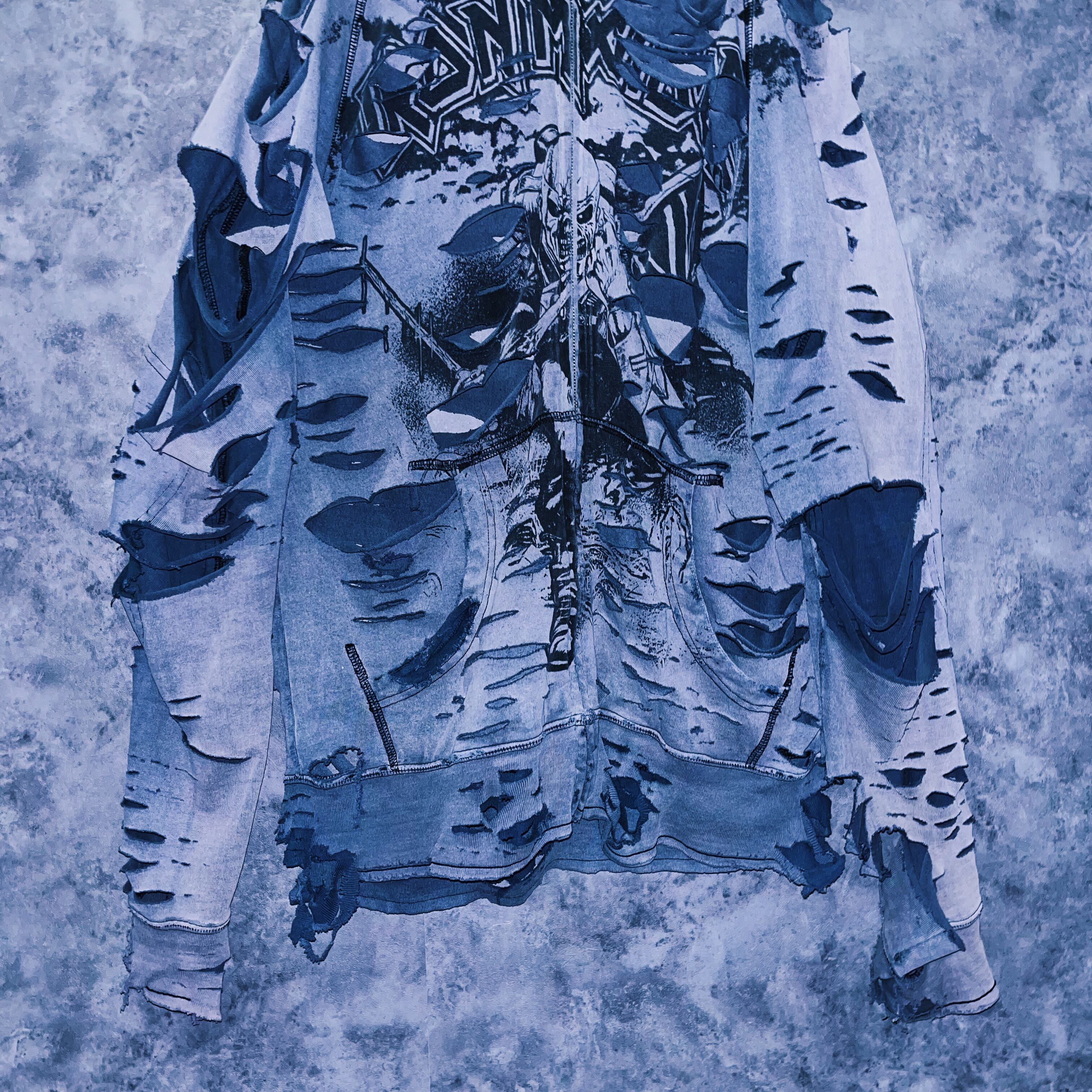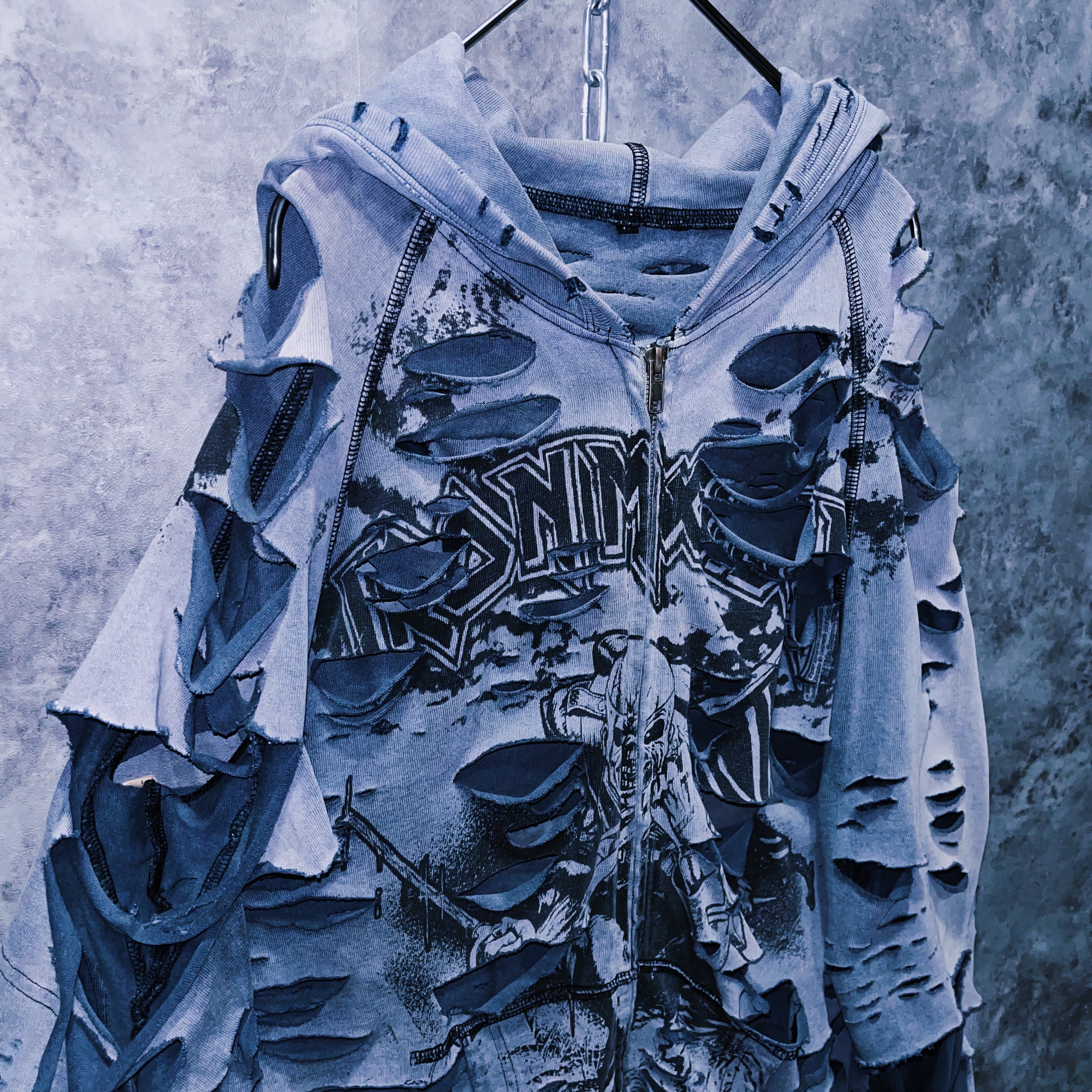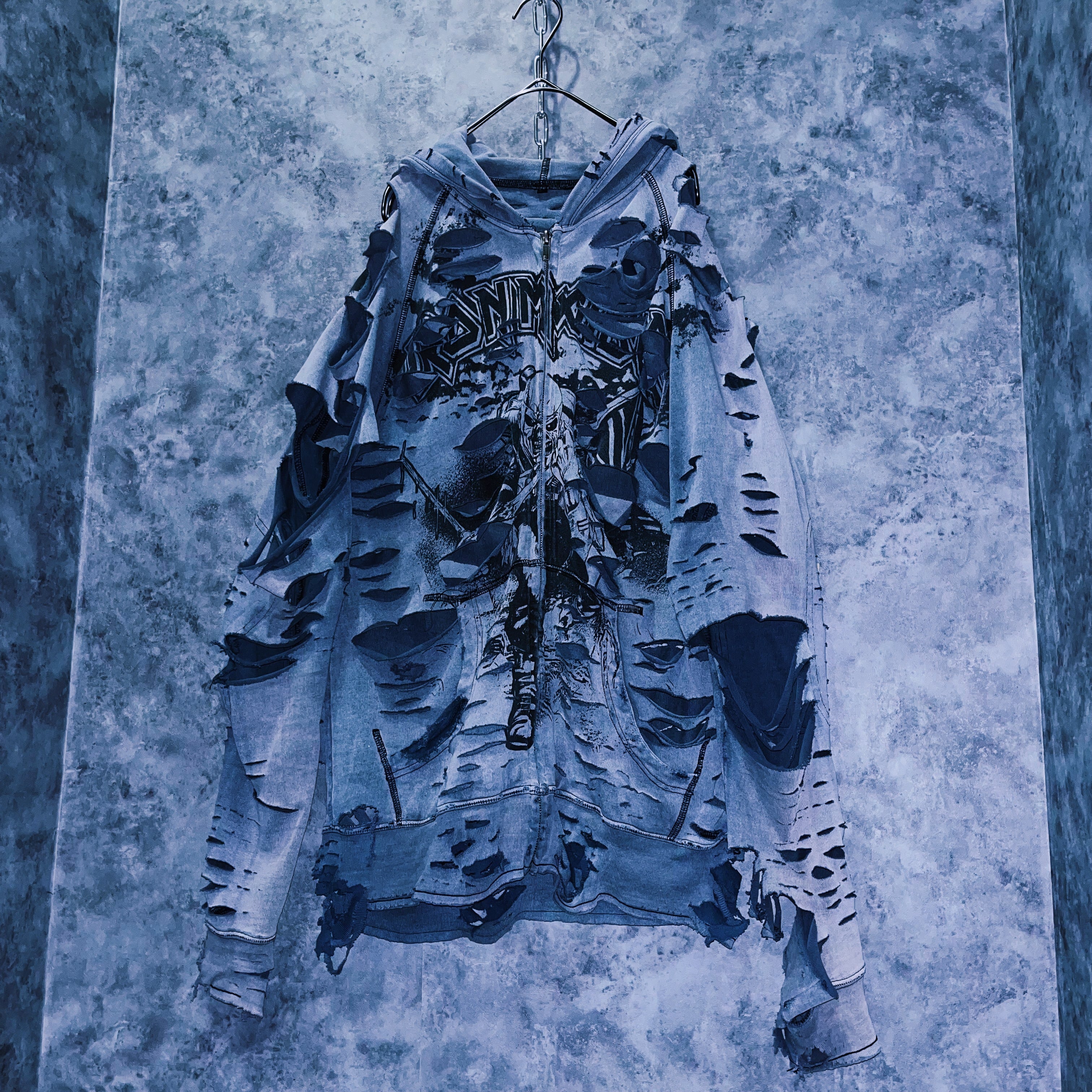 ヴィンテージ“IRON MAIDEN”プリントデザインクラッシュドカスタムジップアップフーディ