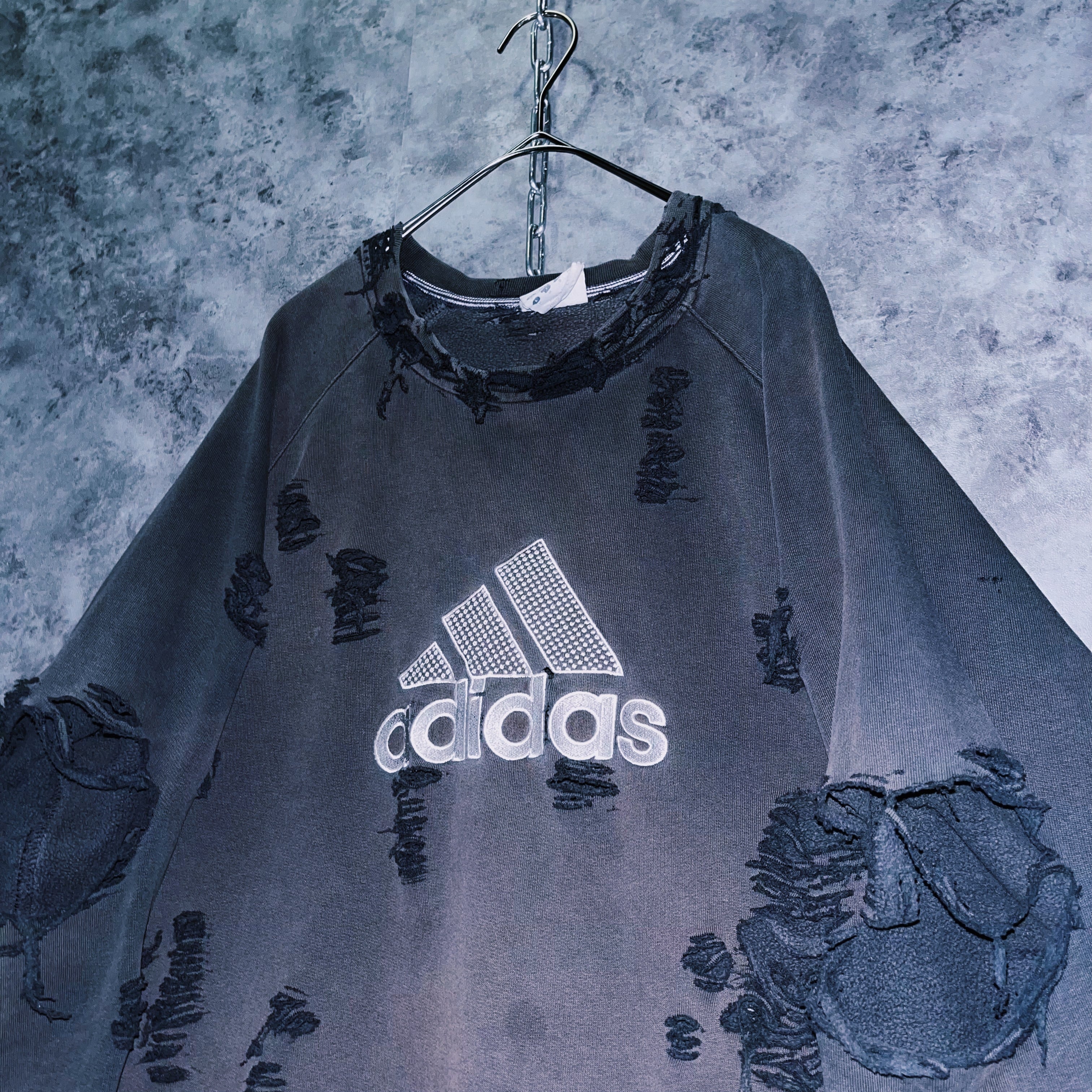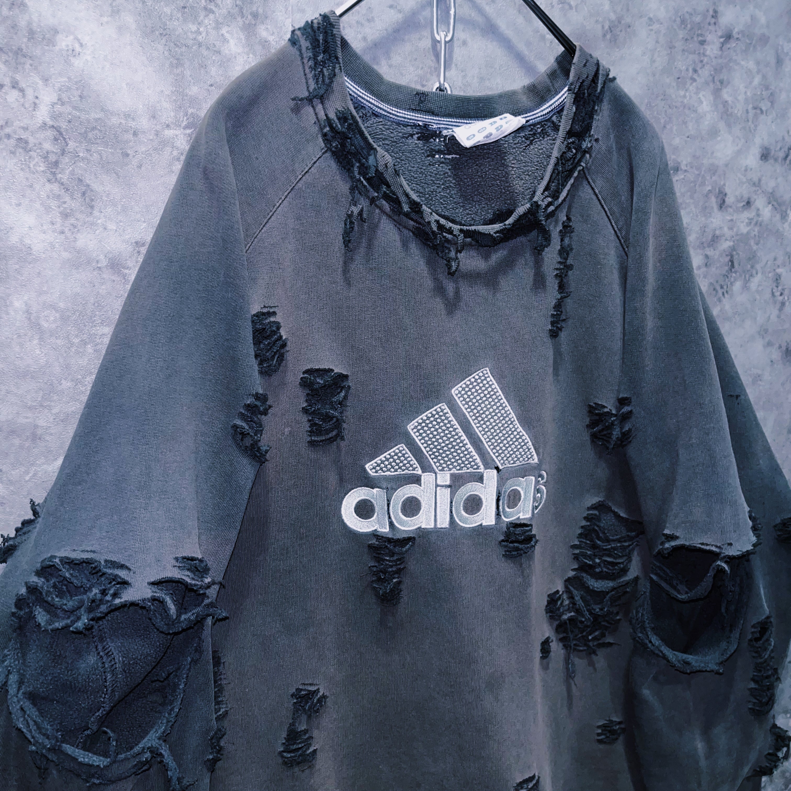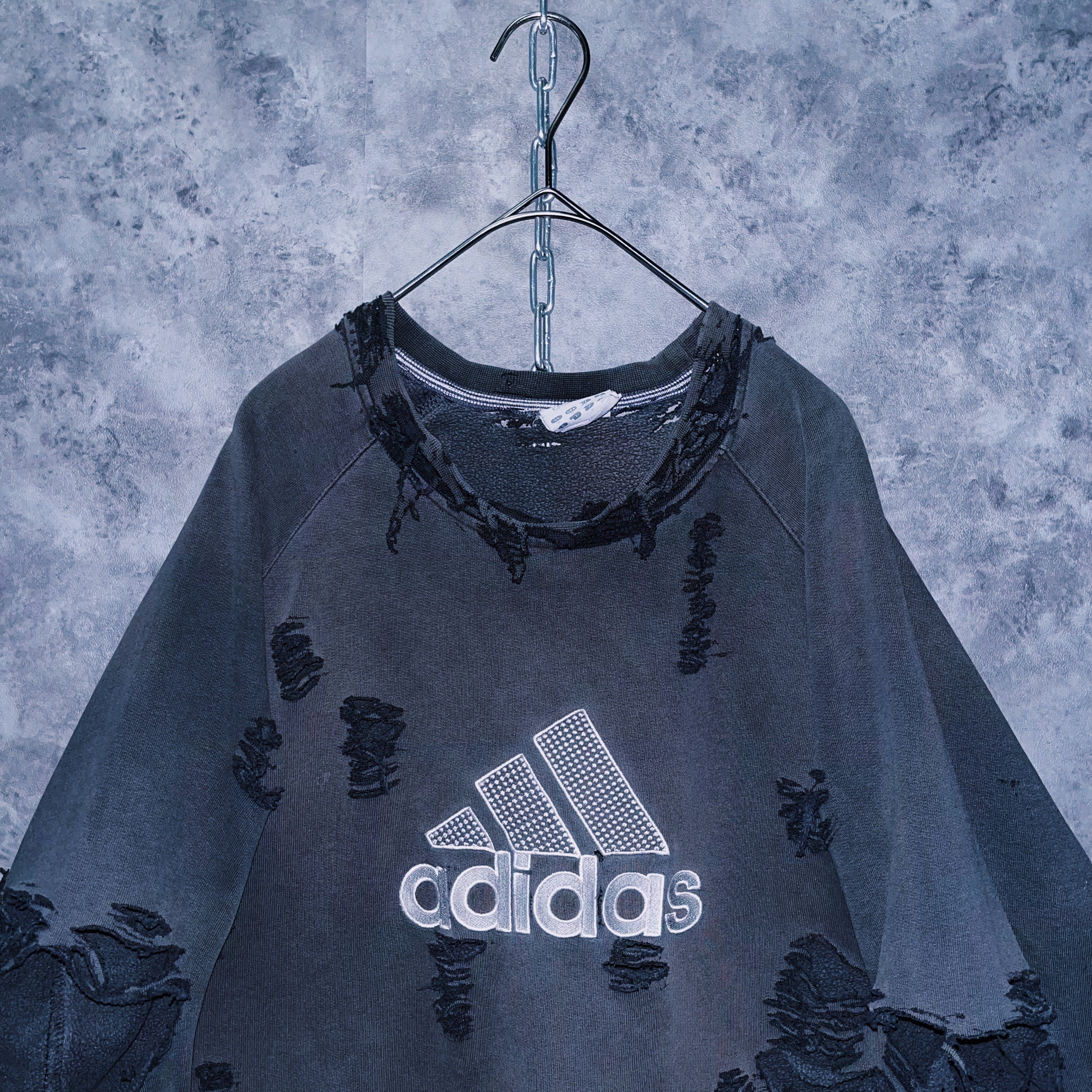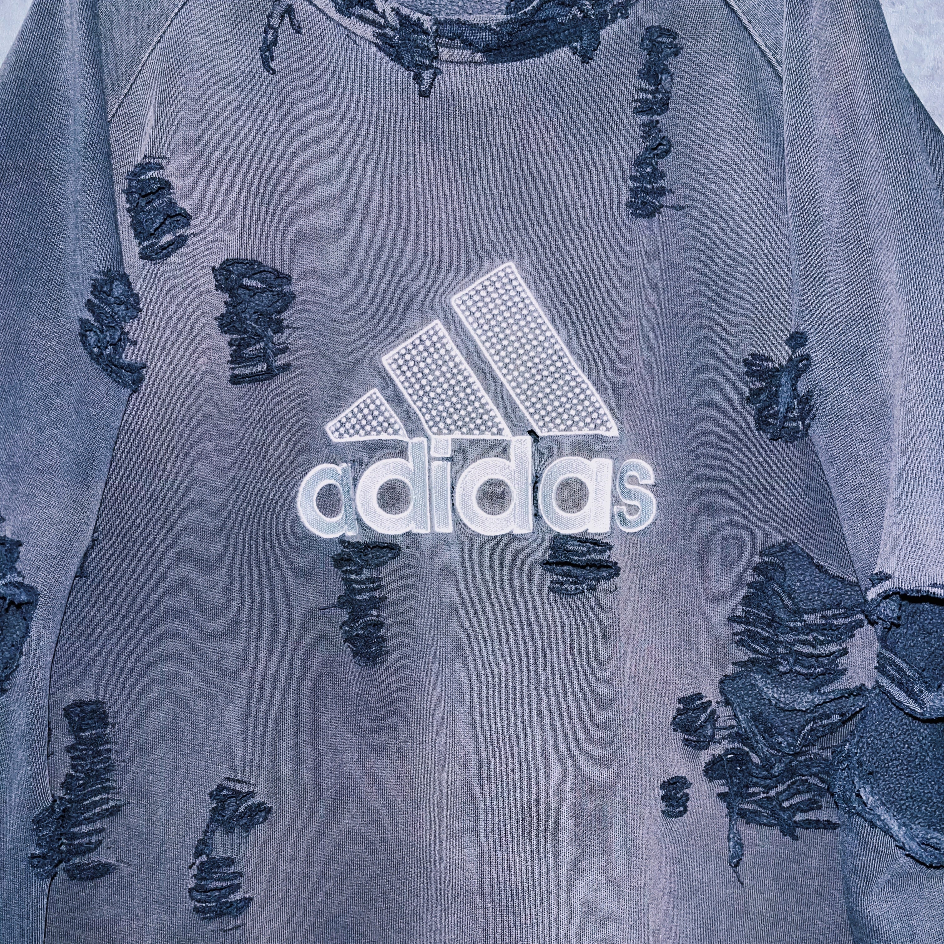 90’s vintage “adidas” performance logo design boro custom sweat pullover