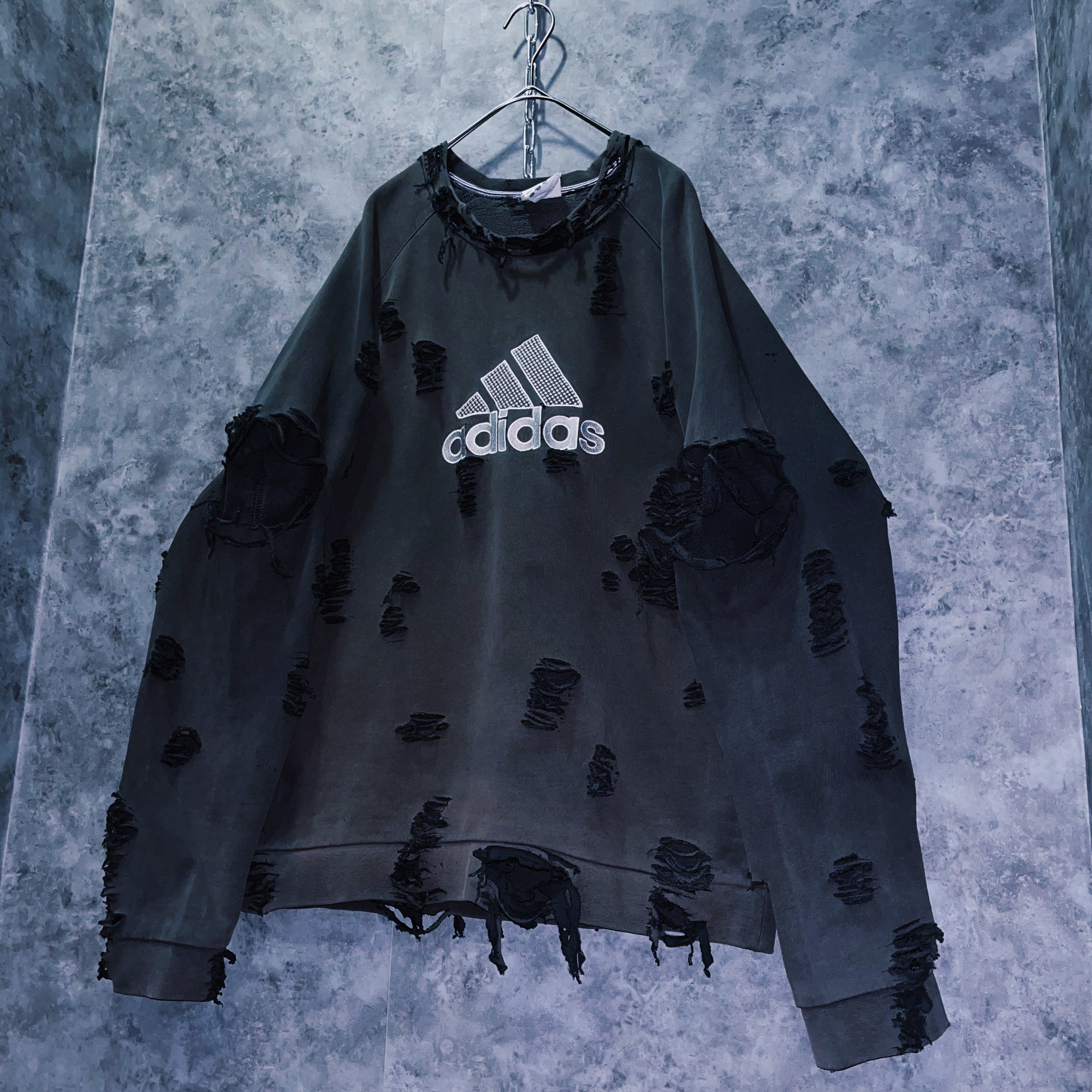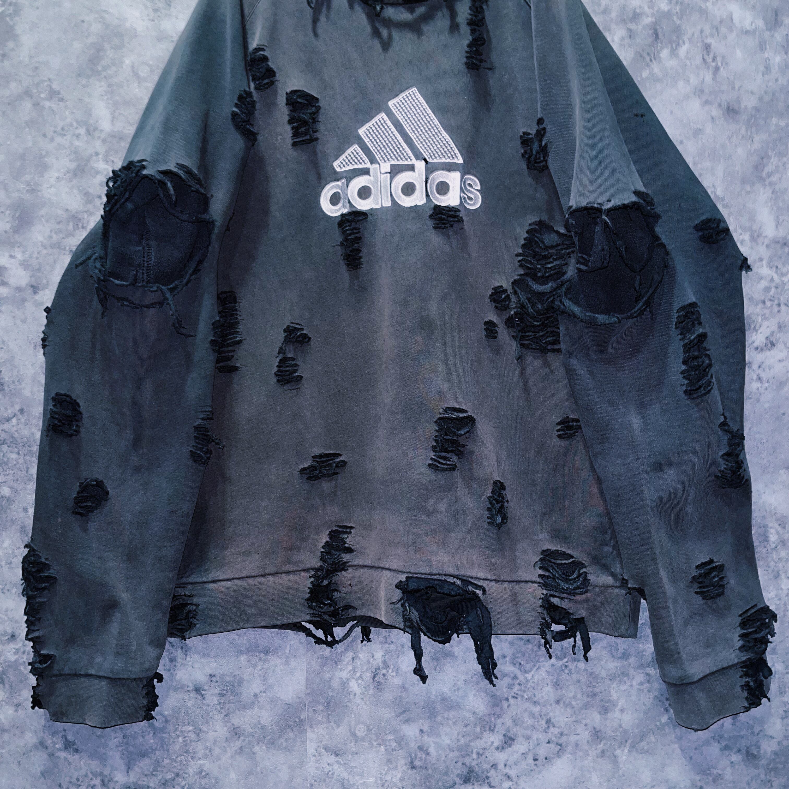 90’sヴィンテージ“adidas”パフォーマンスロゴデザインボロカスタムスウェットプルオーバー