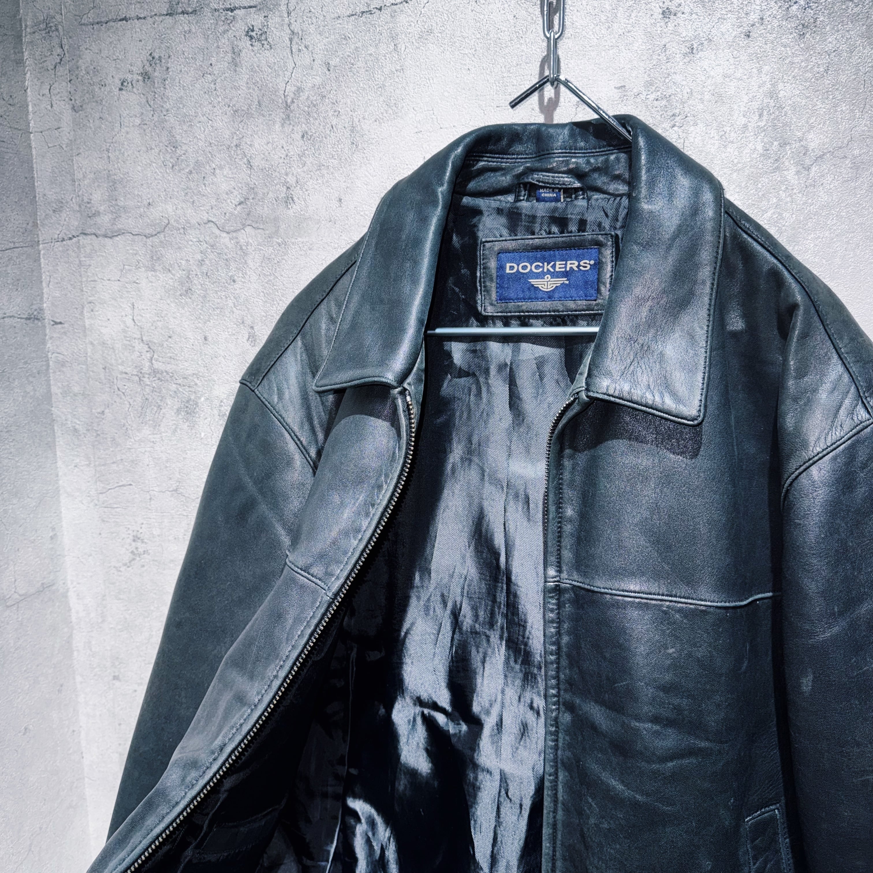 90's vintage lamb leather zip-up design jacket