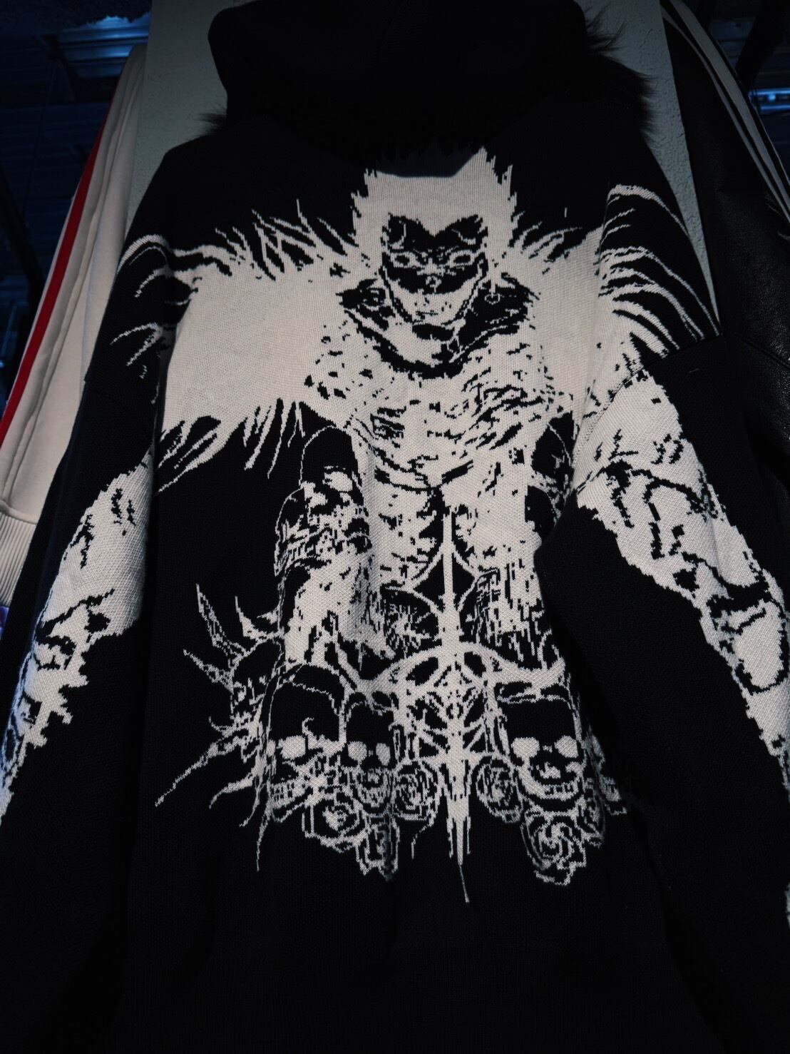 今回はかなりのスペシャル。背面にリュークのデザインがあしらわれたインパクのある1着。ロック感とホラー感があり死神らしく異質な存在感を放っています。