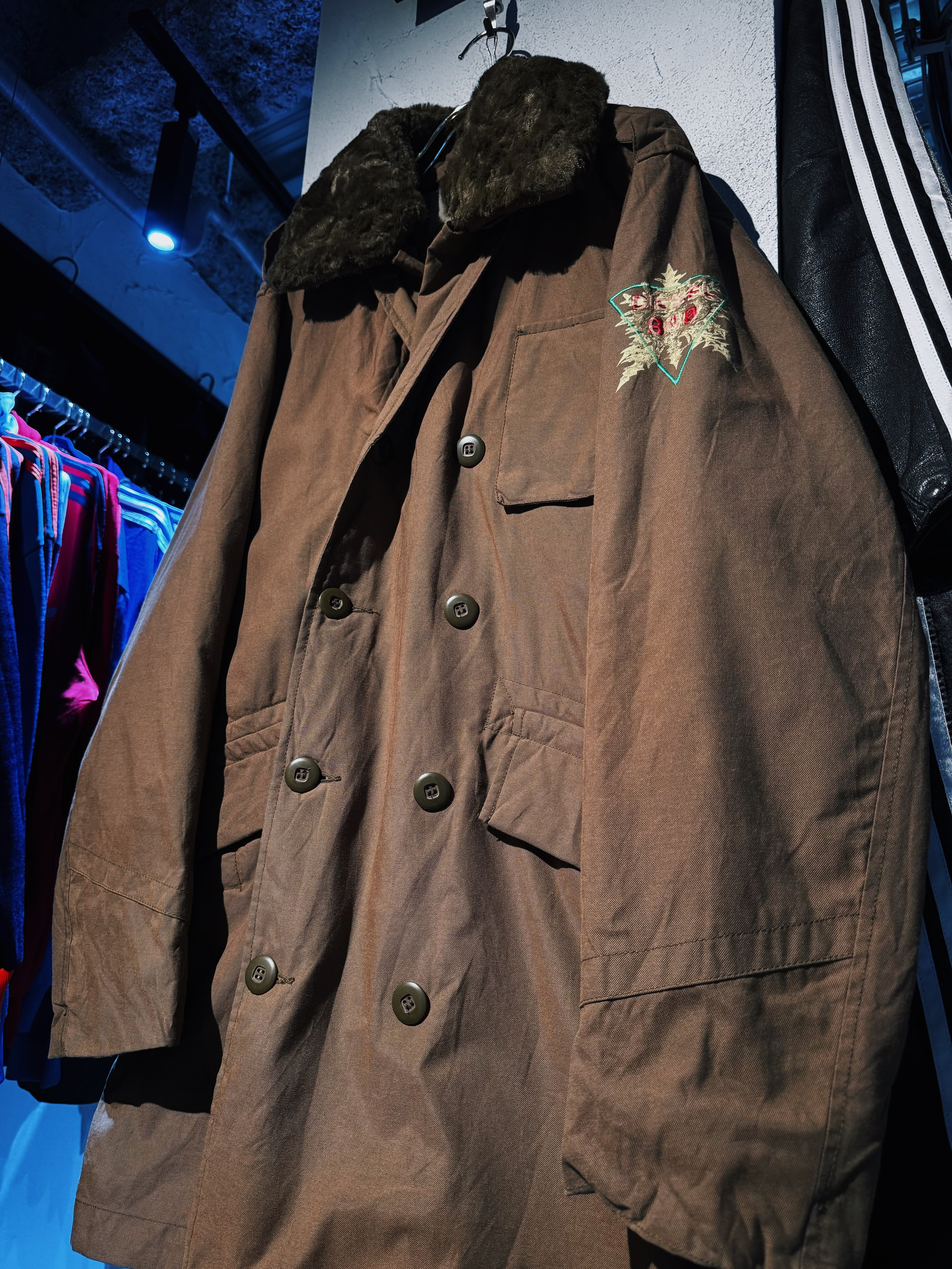 ミドル丈でダブルブレストのミリタリージャケット。ディーゼルは90〜00の間でいろんなミリタリージャケットが出ており、どれもハイクオリティです。