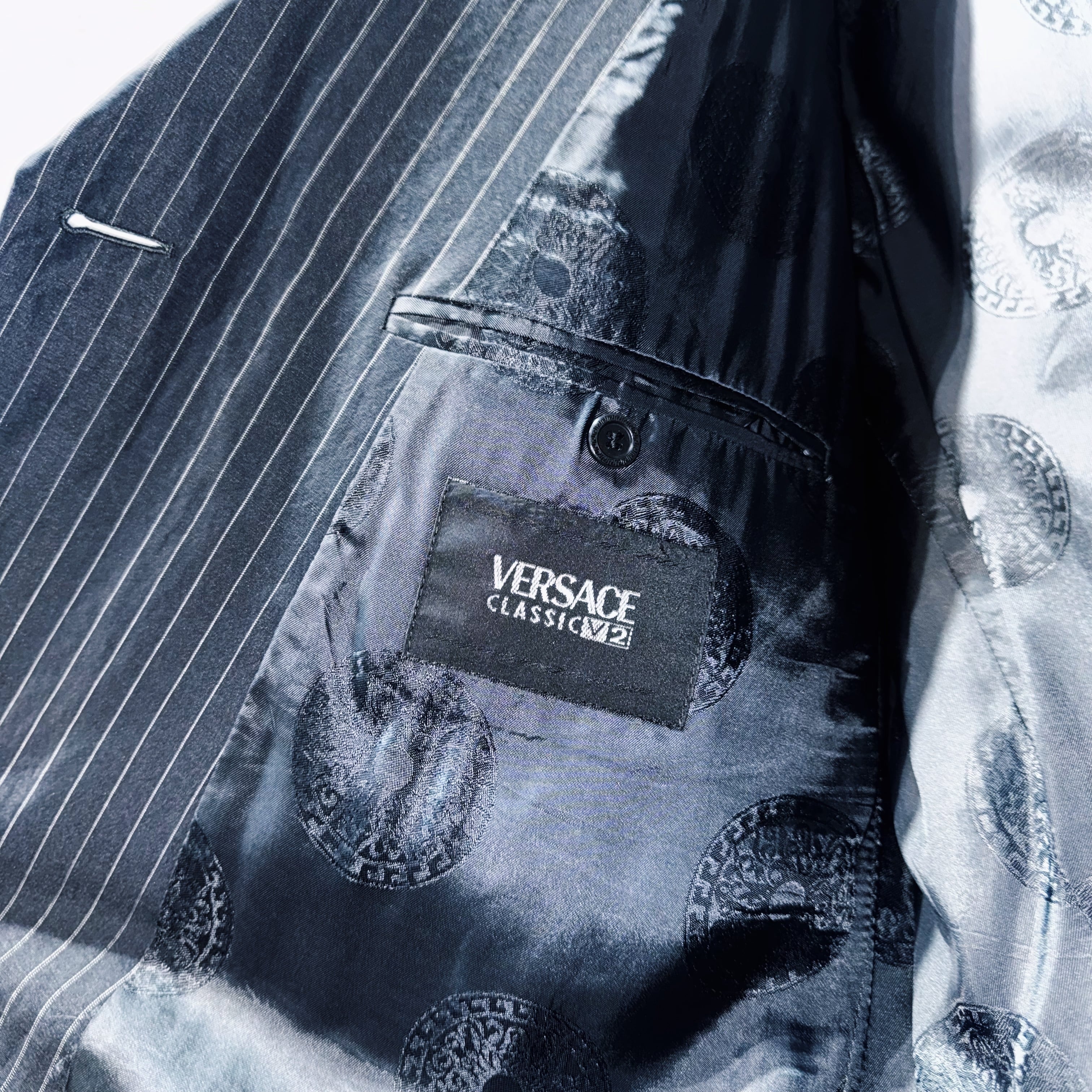 "ヴェルサーチクラシックV2"エイトボタンダブルブレストストライプパターンセットアップ
