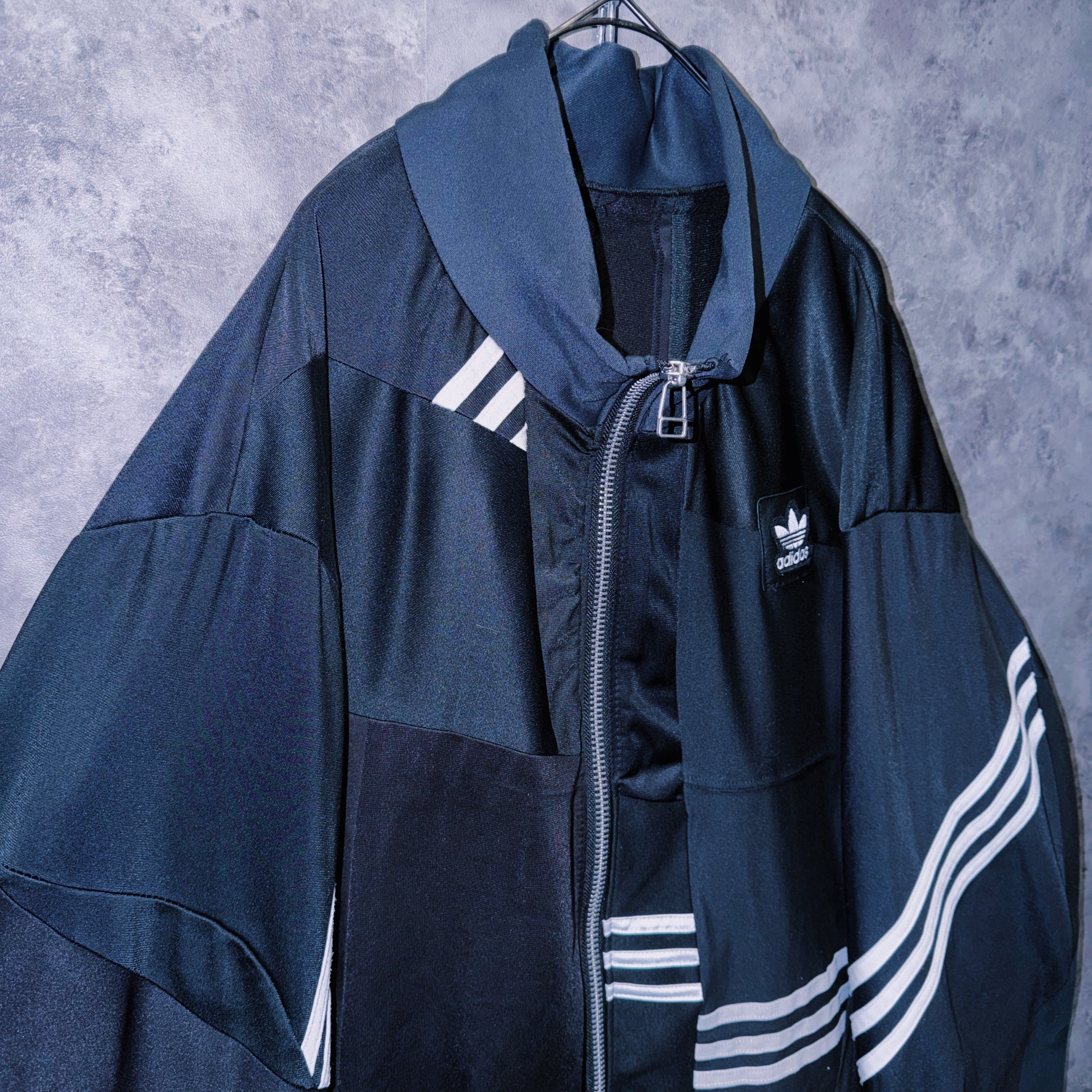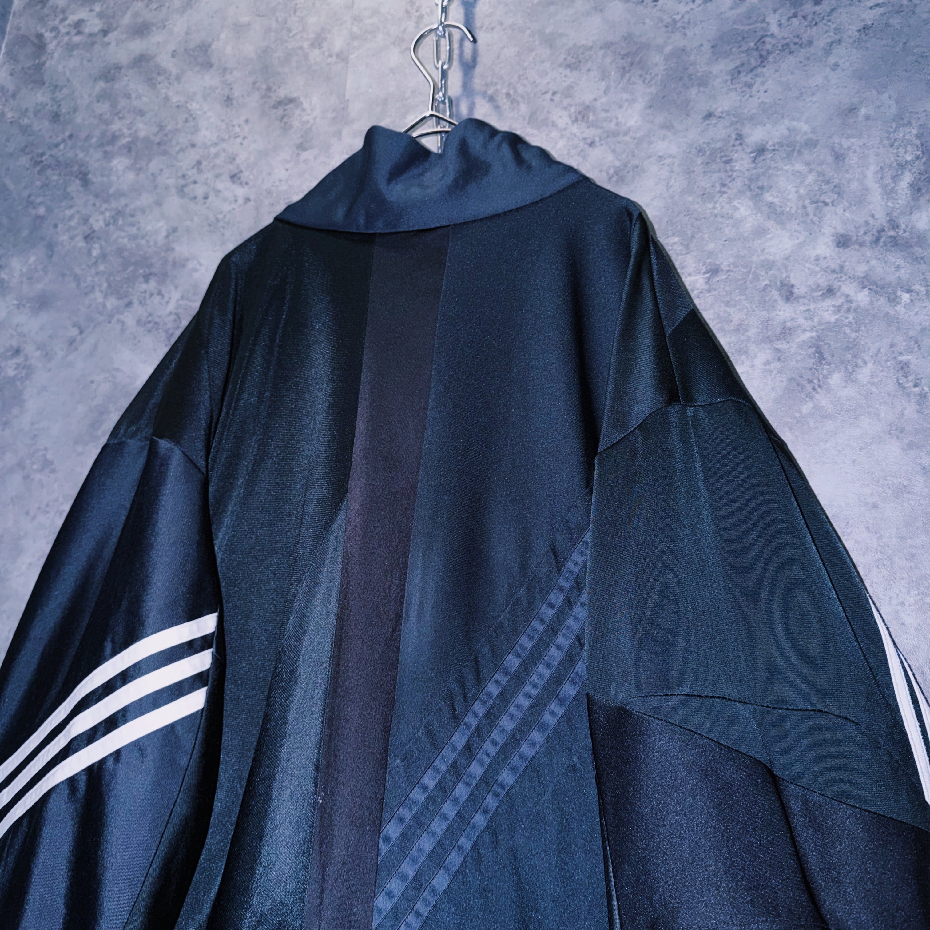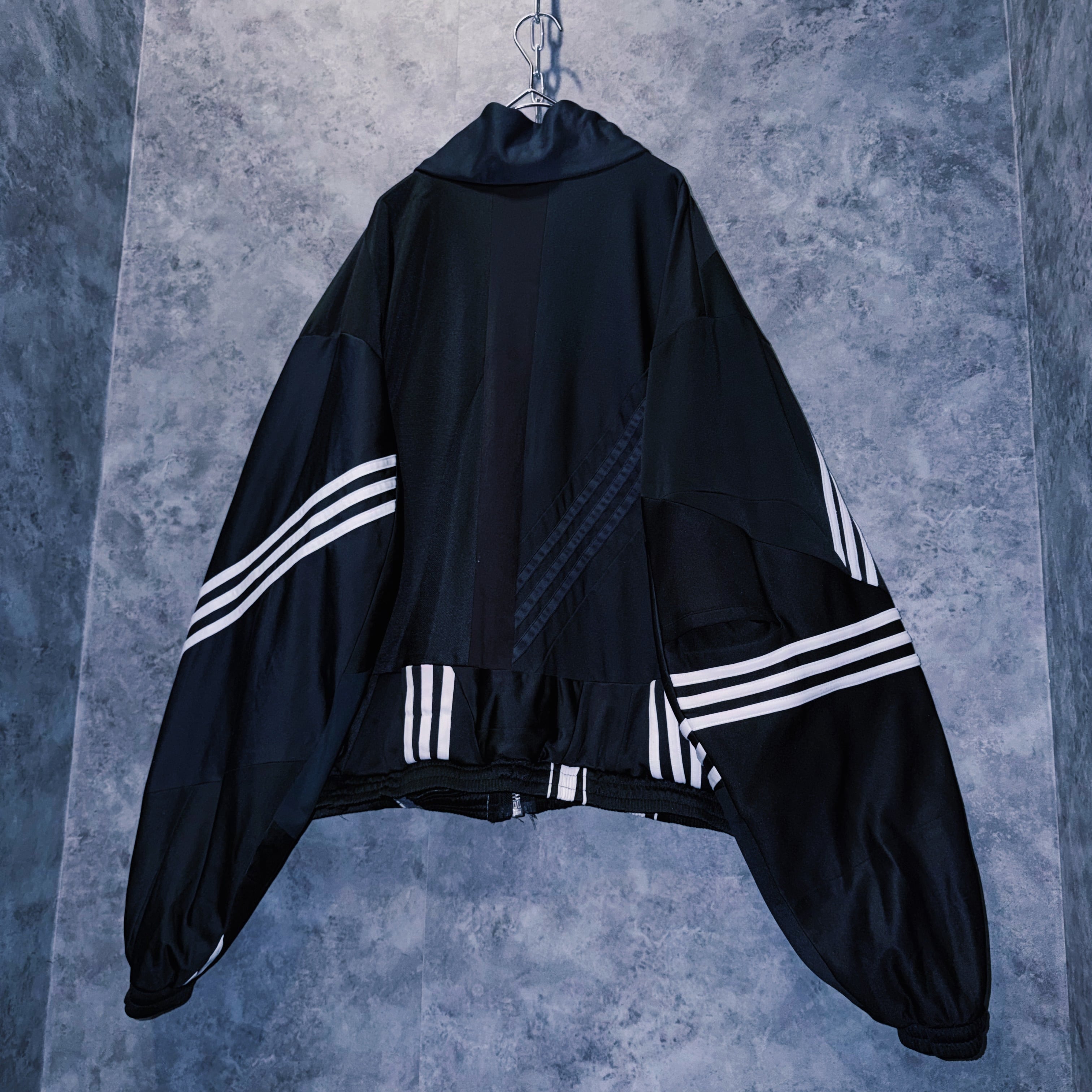 他数のトラックジャケットをパッチワークでデザインを施しており、全てバラバラで圧巻の存在感。無数のトラックジャケットで中には名チームや企業などのチームウェアも存在している個体もあります。