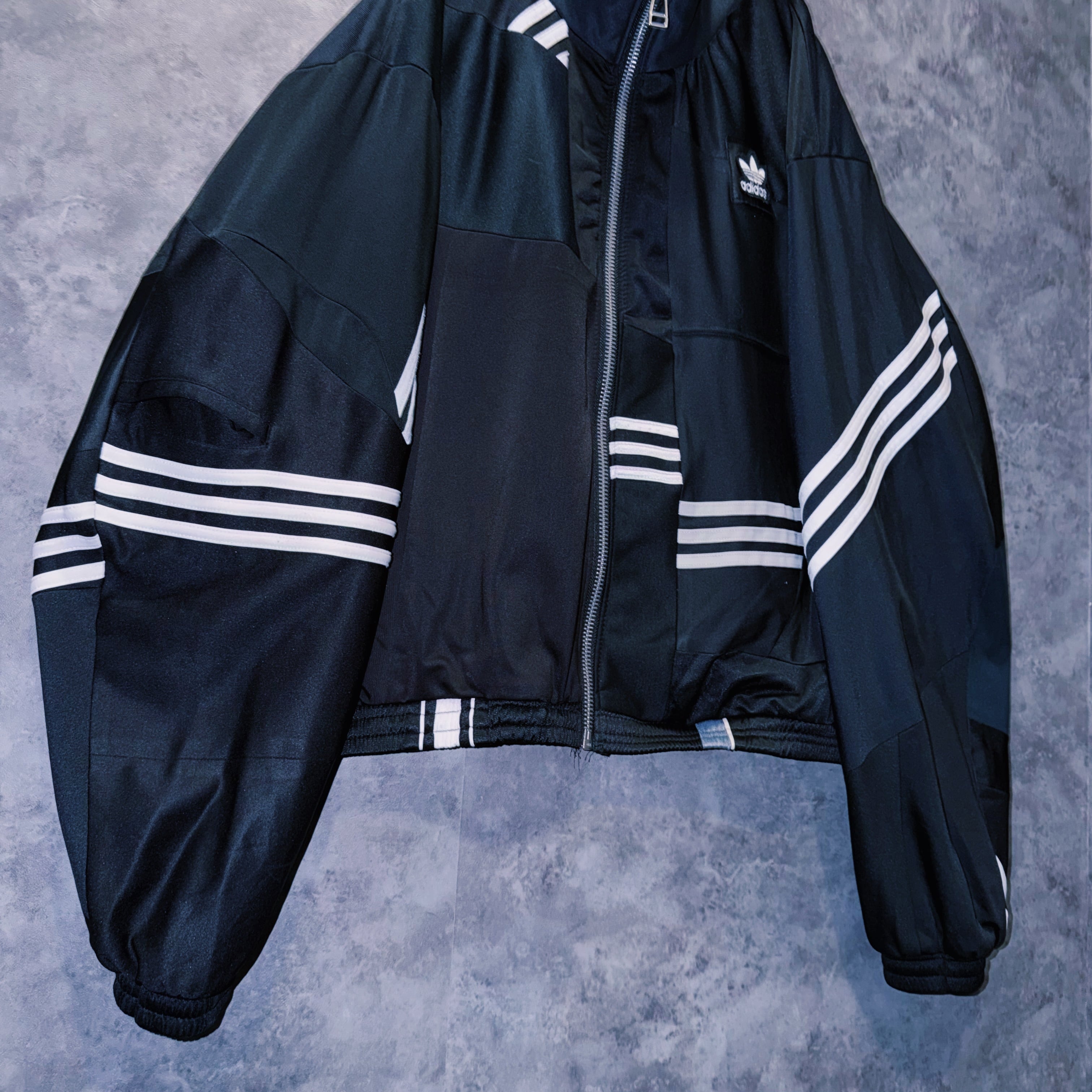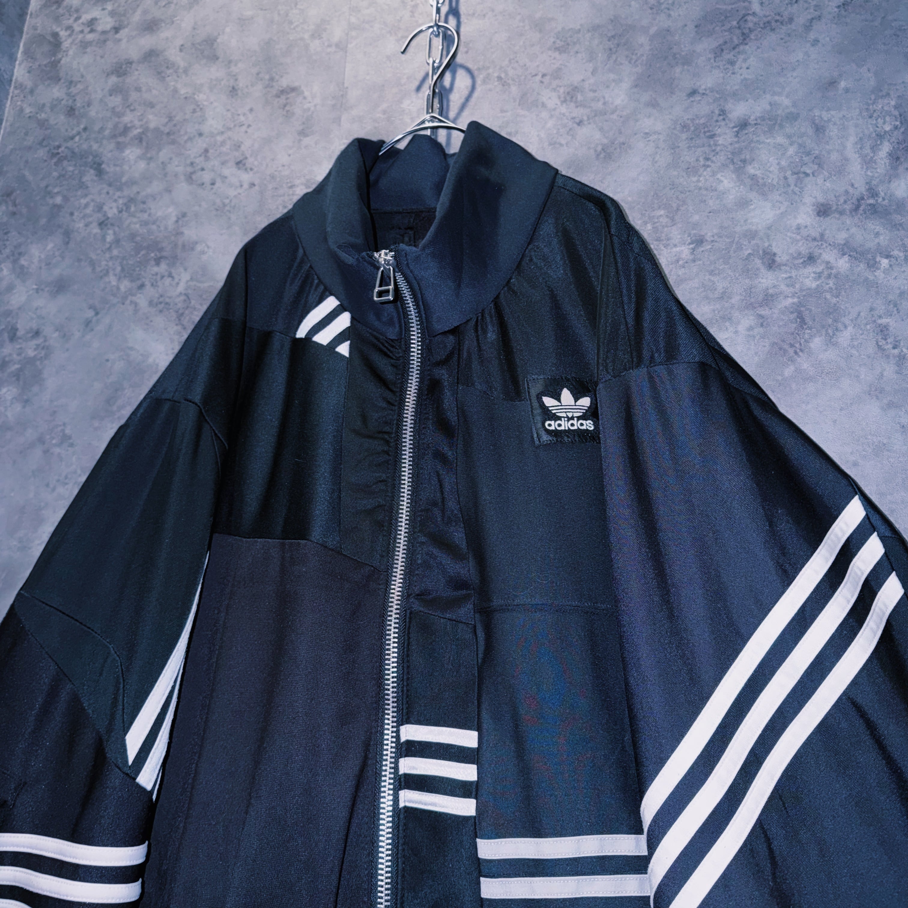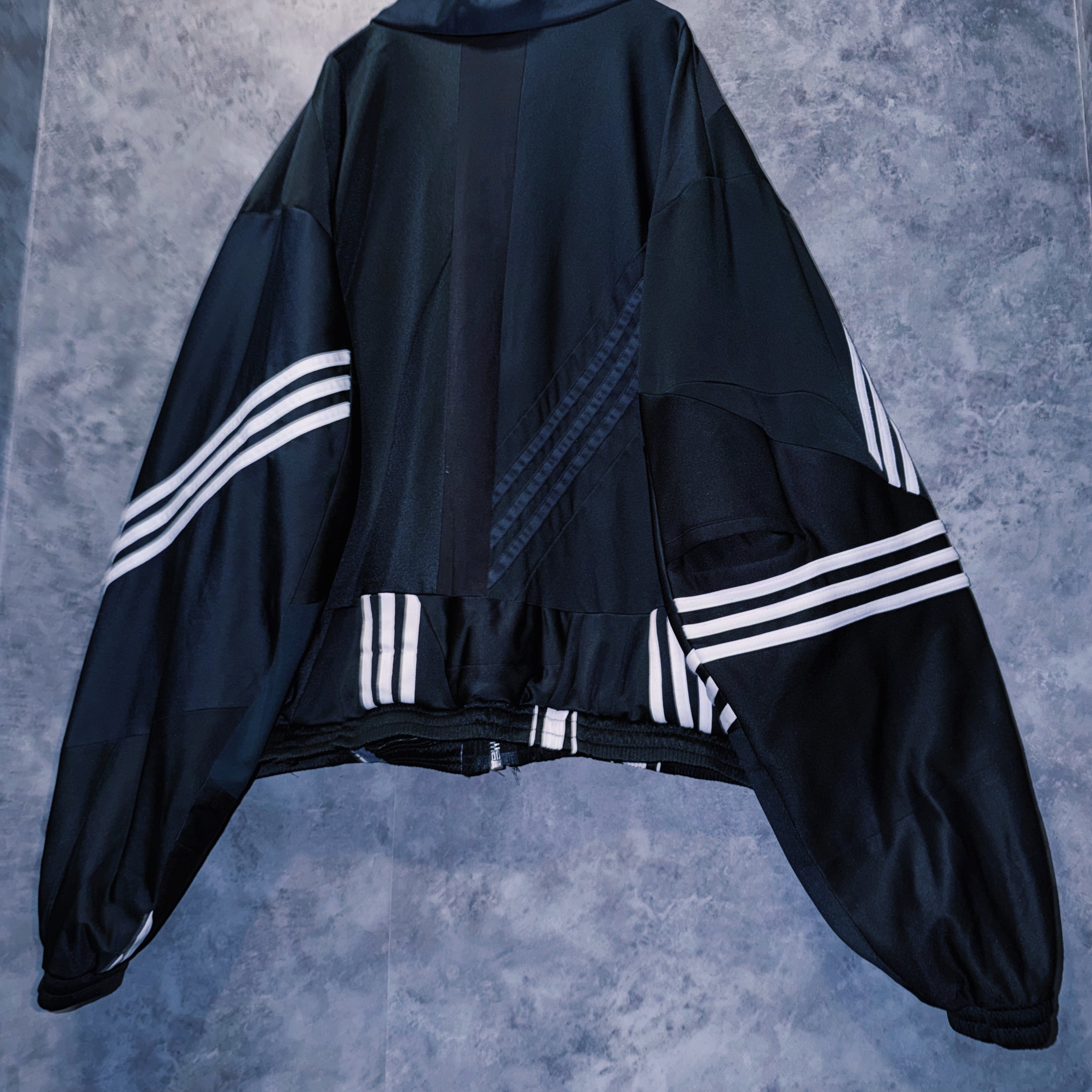他数のトラックジャケットをパッチワークでデザインを施しており、全てバラバラで圧巻の存在感。無数のトラックジャケットで中には名チームや企業などのチームウェアも存在している個体もあります。
