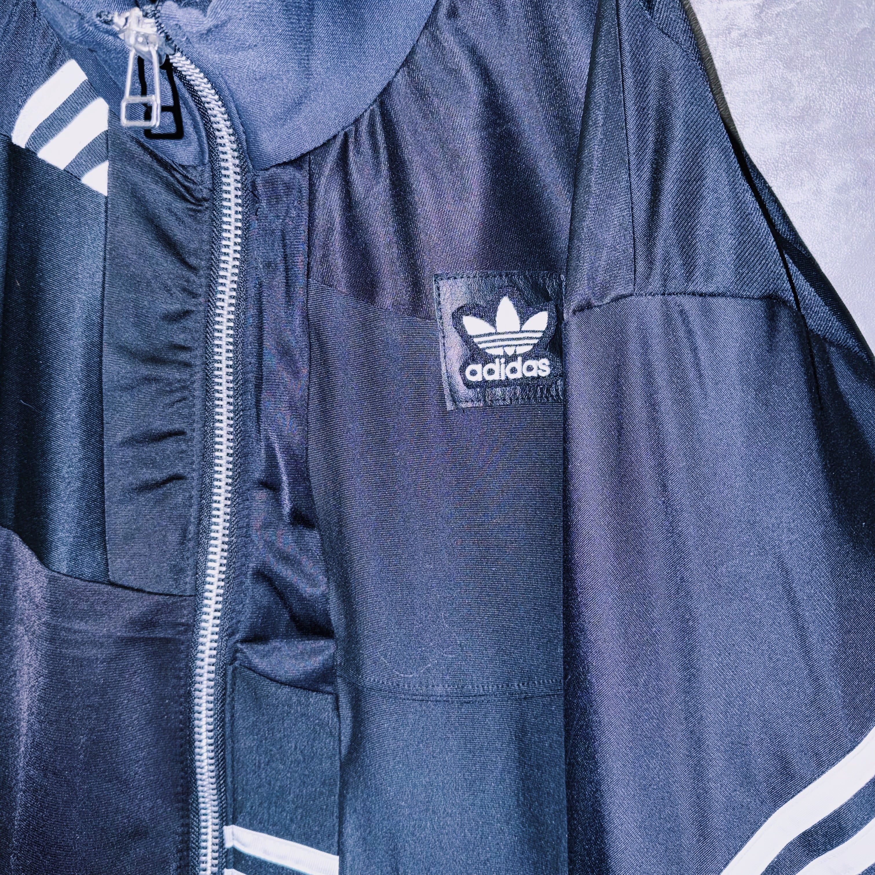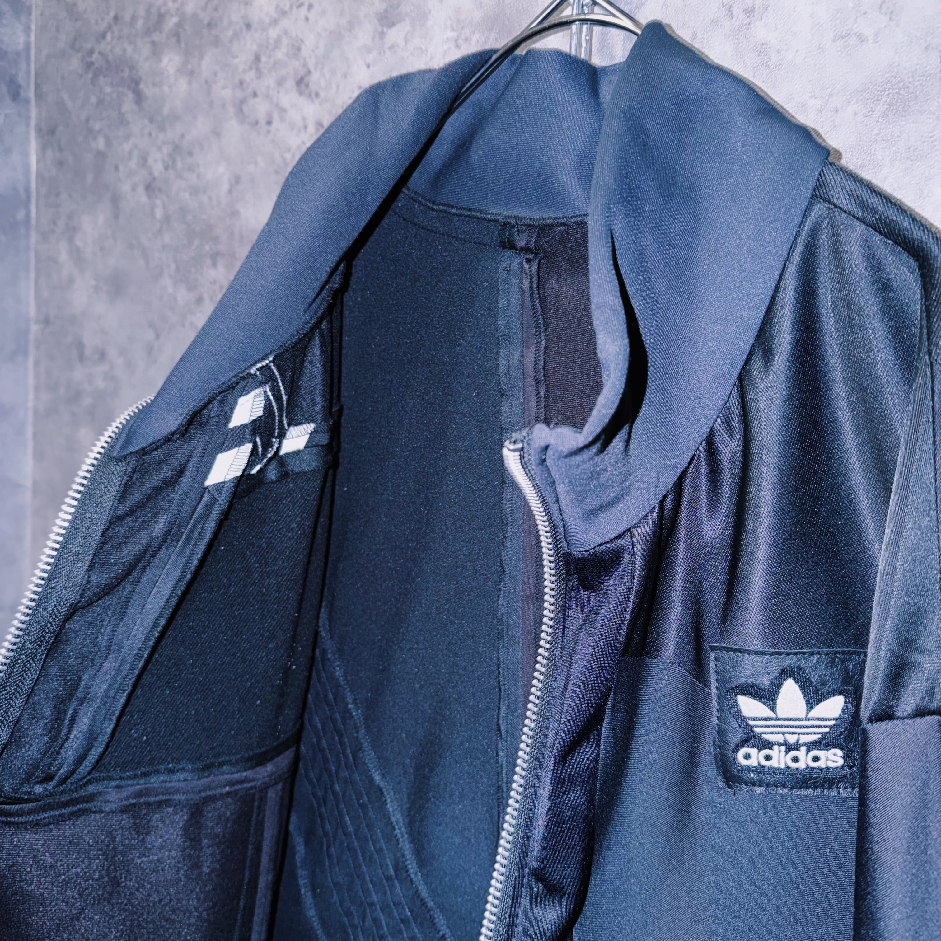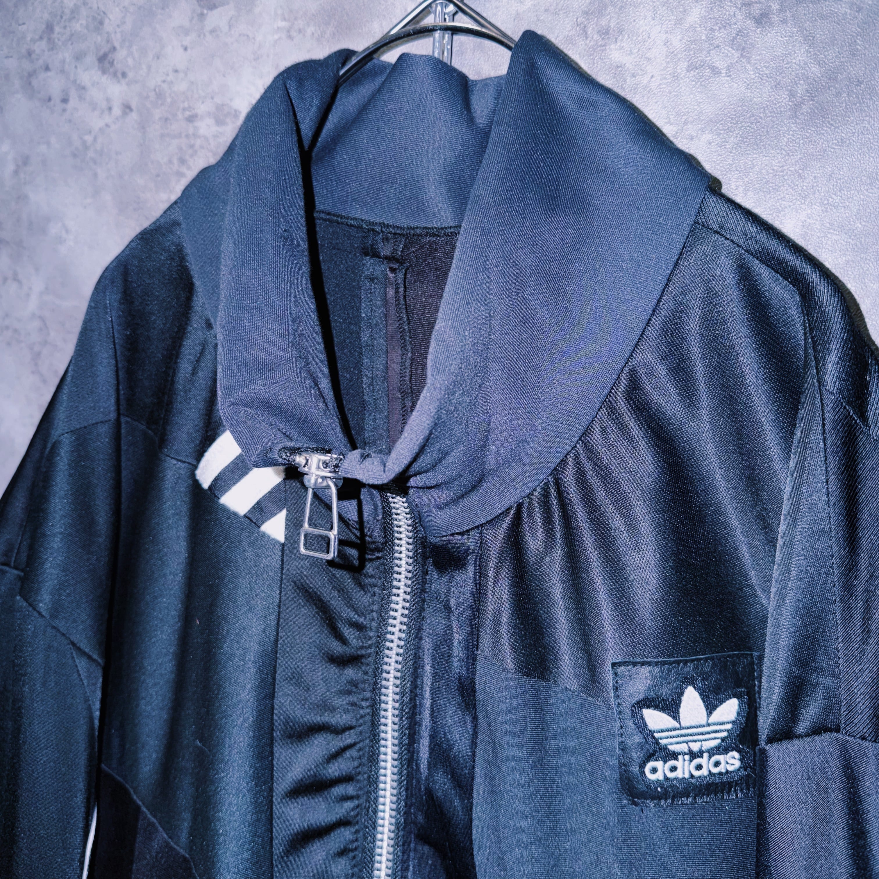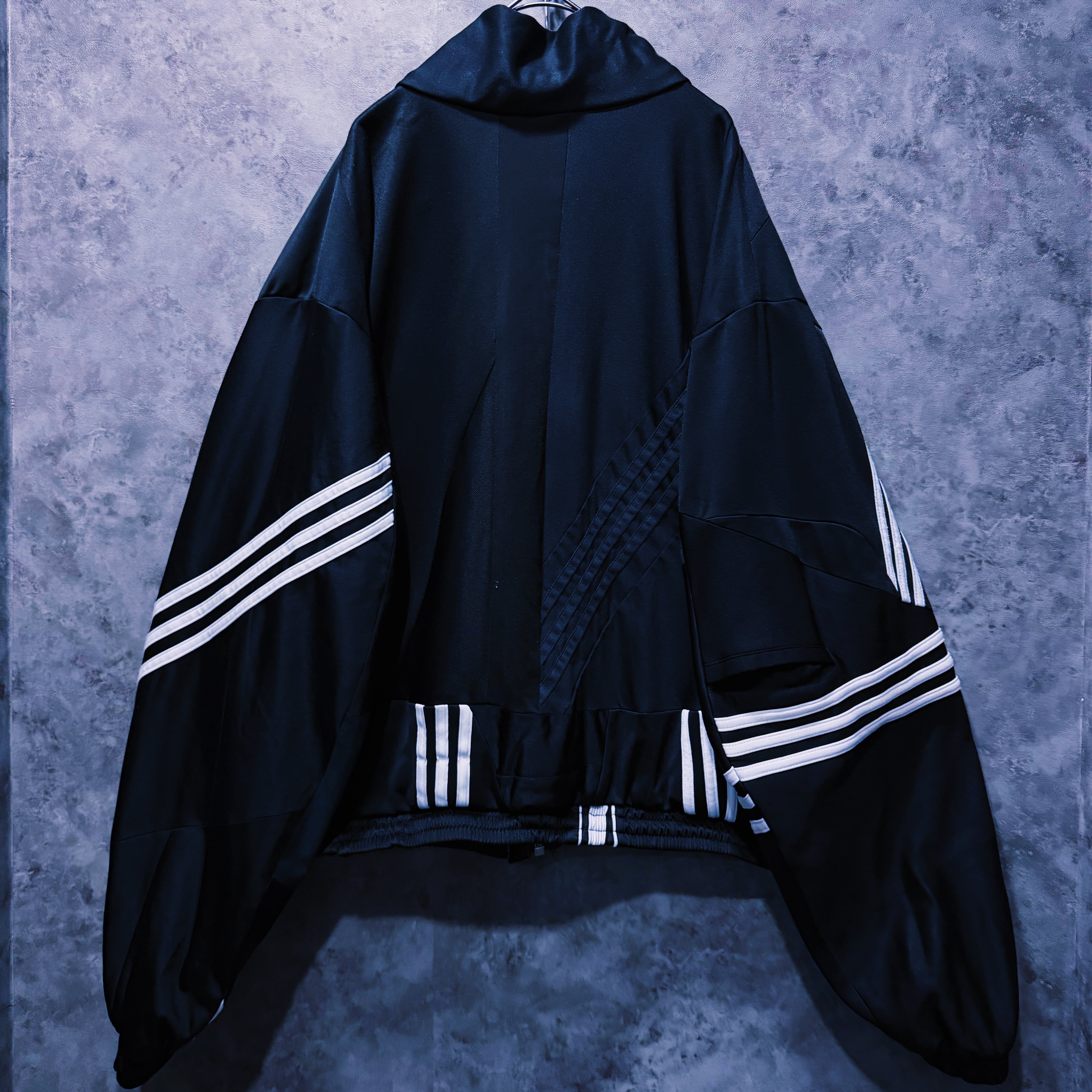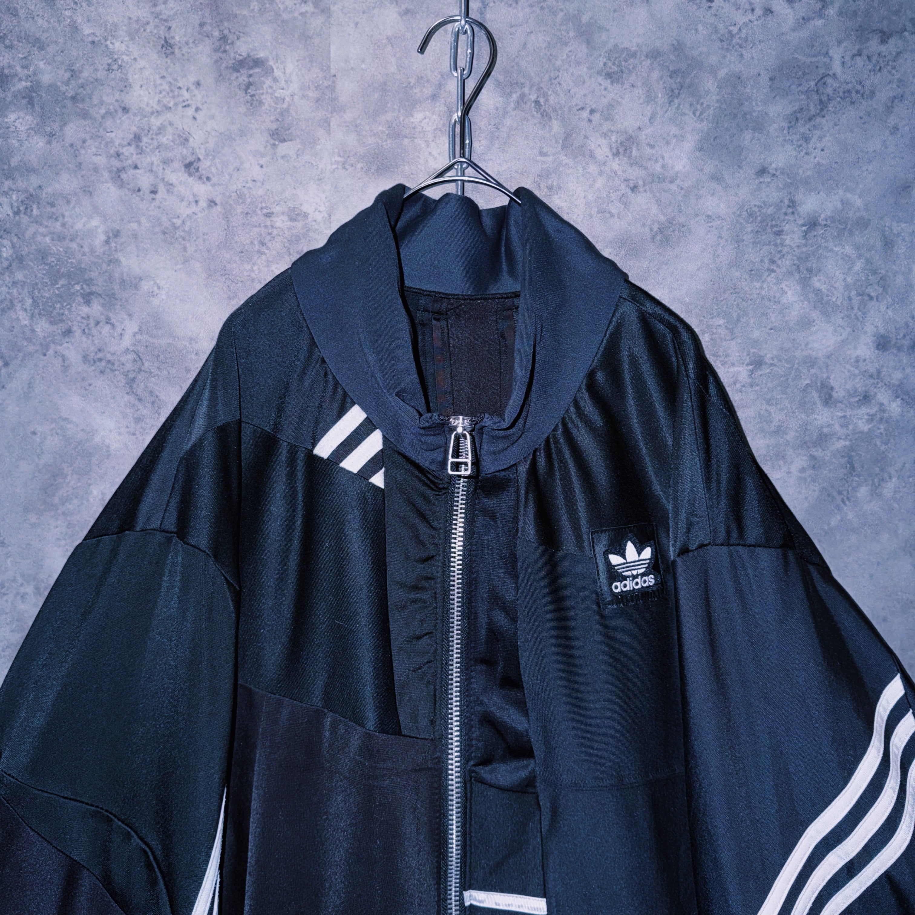 スラックスはもちろん、デニムやカーゴ、リメイクパンツなど合わせるアイテムで様々な表情を見せてくれる当店のトラックジャケットの中でも一際存在感のある逸品。