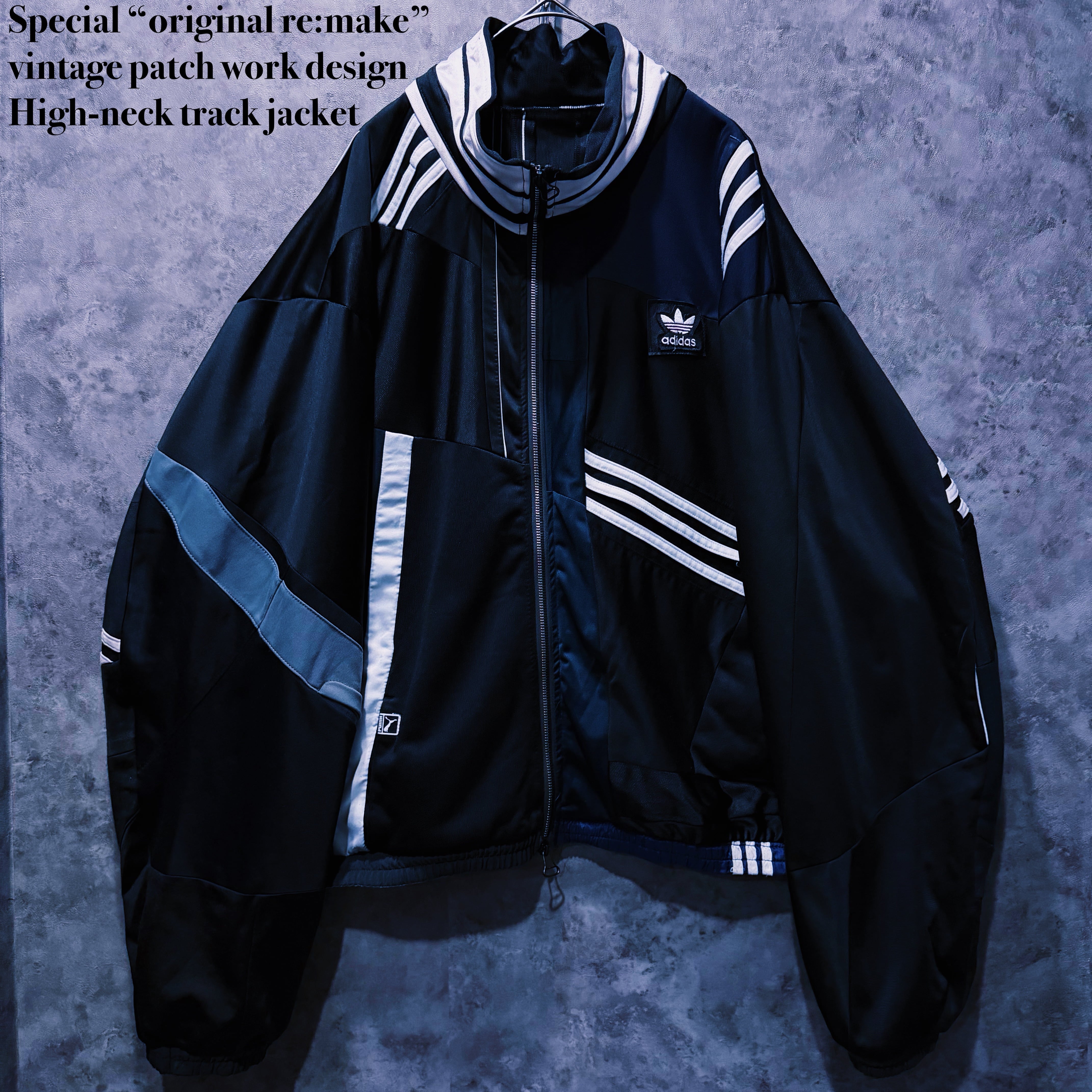 Special “original re:make” vintage patch work design High-neck track jacket