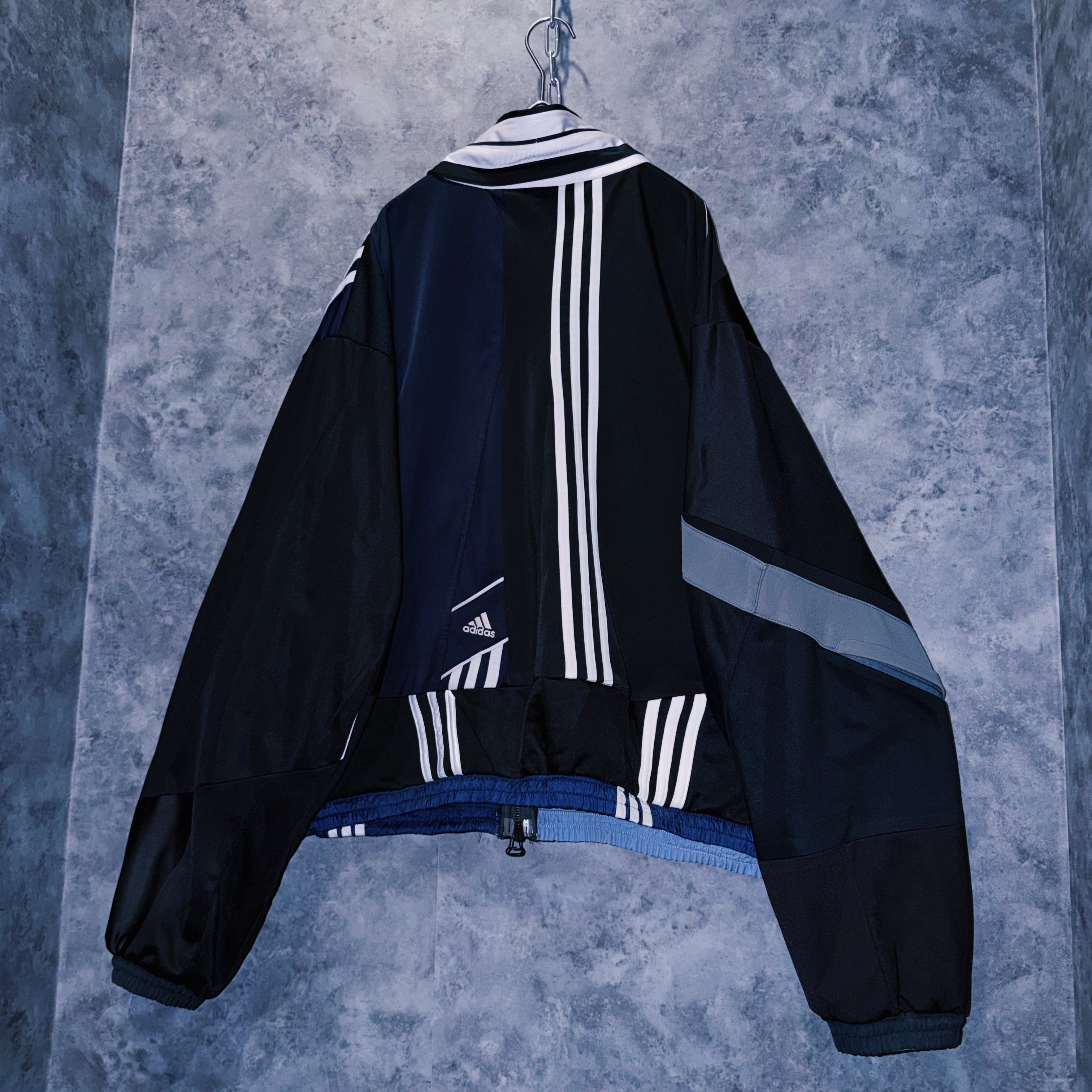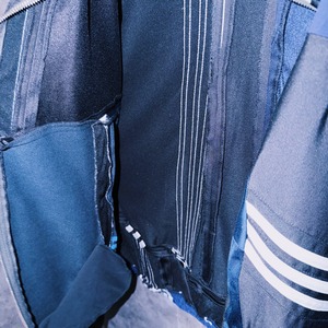 他数のトラックジャケットをパッチワークでデザインを施しており、全てバラバラで圧巻の存在感。無数のトラックジャケットで中には名チームや企業などのチームウェアも存在している個体もあります。
